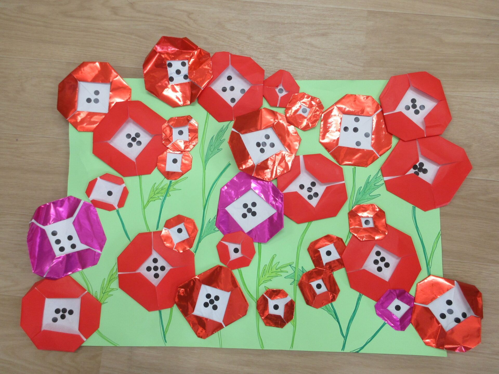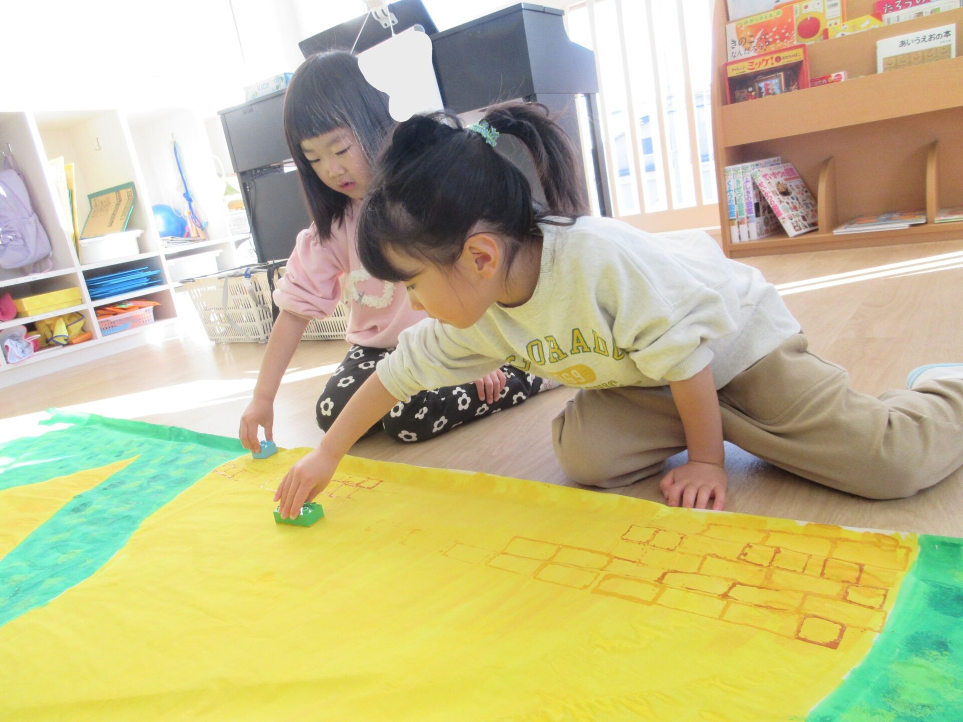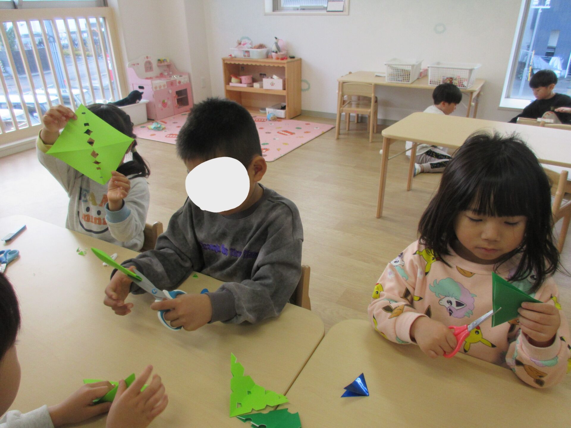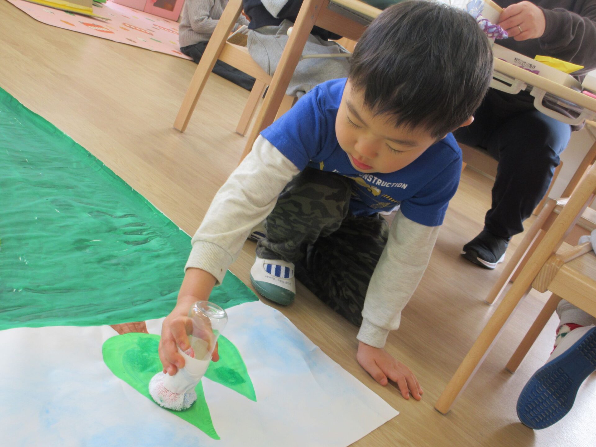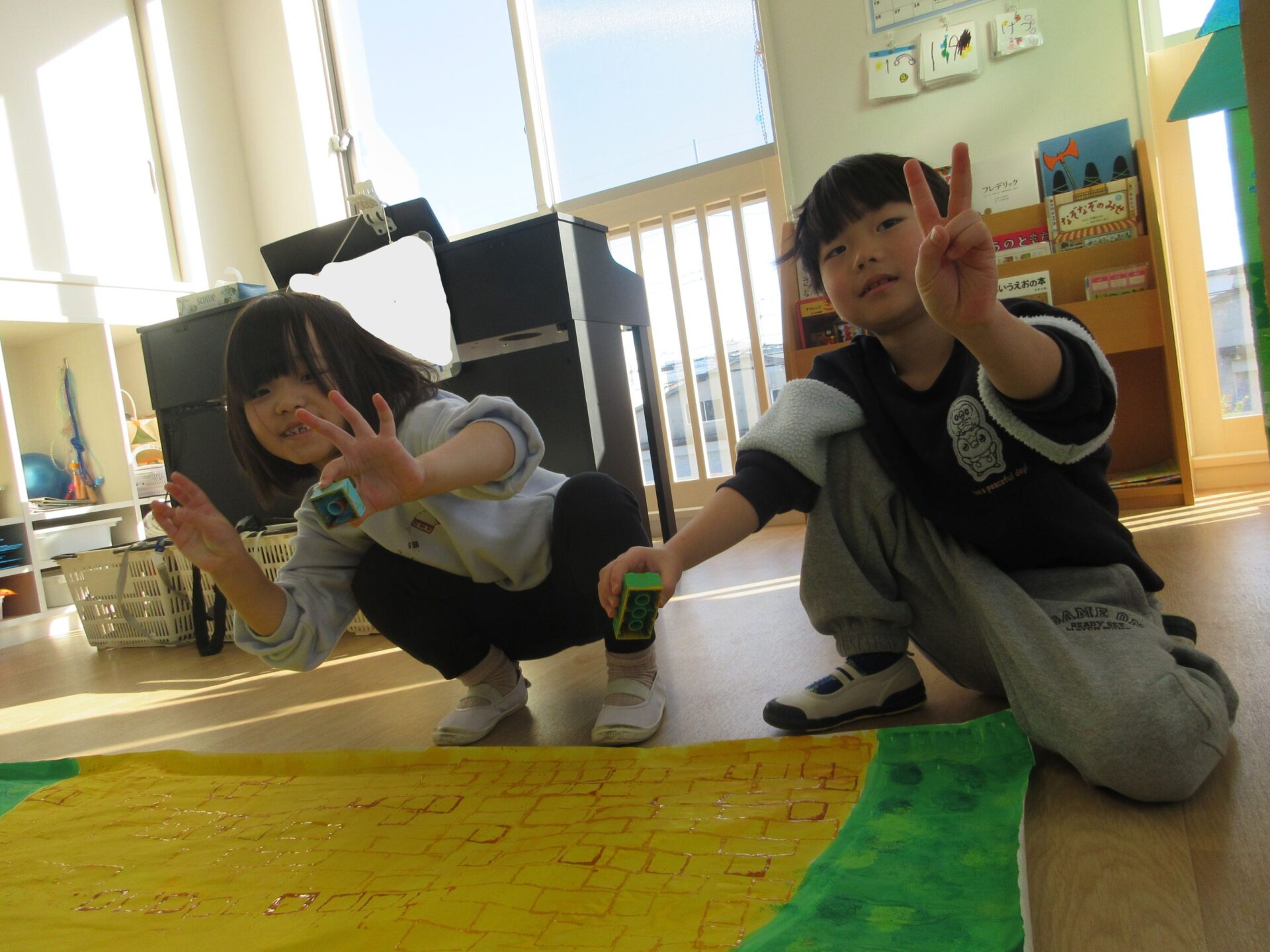 2026.02.10 ブログ 園だより 発表会準備~オズの世界ができるまで🌈~ (5歳 くじら組) 年末頃から少しずつ進めていた、発表会大道具製作。その一部は子どもたちで作りました! 劇中でも印象強い、オズの魔法使いがいる「エメラルドの都」を作りました。折り紙を自由に切り絵していきます。 切ったものを破れないように貼っていきます✨同じ模様は一つもありません!ちなみに、エメラルドの都では、住んでいる人も緑色で包まれているのです!(^^)!本番はかわいいダンスにもご注目くださいね♪ こちらはエメラルドの都に向かう、黄色いレンガの道の背景作りの様子です✨ タンポで立体感を出しています(^▽^)/ そして、黄色い道にレンガの模様を1つずつスタンプしていきます。 隣に、また隣に…地道にスタンプしていきました。ずれないように真剣です…!綺麗な背景は本番をお楽しみに☆ こちらは大きな虹の背景作りです。皆で一つひとつ丁寧に貼っていきながら、完成させることができました🌈 遊んでいる最中に、劇中に出てくる船を作ってくれました🚢 小道具として出てきますので、お見逃しなく♪ かかしに関係のある「けしの花」です🌹折り紙得意!という子たちが率先して折ってくれました♪ 大道具の木の幹に付いている枝は、秋のどんぐり探しと共に拾ってきたものを付けました!葉っぱも自分たちで手作りしましたよ🍃 こうして出来上がったオズの世界の中で、セリフや動きの練習に一生懸命取り組んでいます!本番まで、あとわずかとなりました🌟くじら組でお届けするオズの魔法使い、お楽しみに!!✨🌈 一覧へ戻る