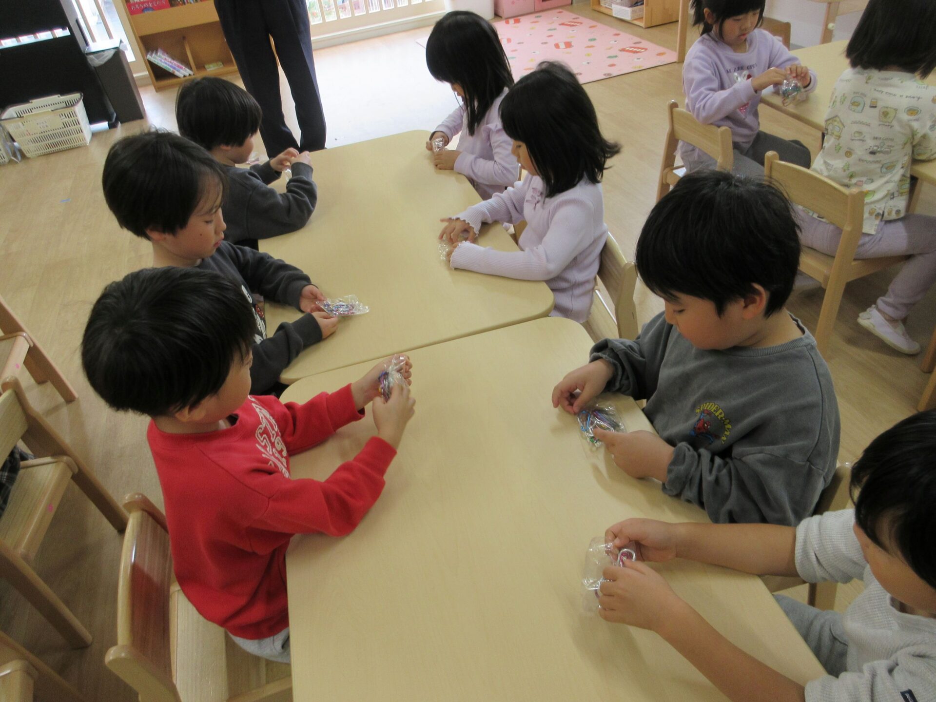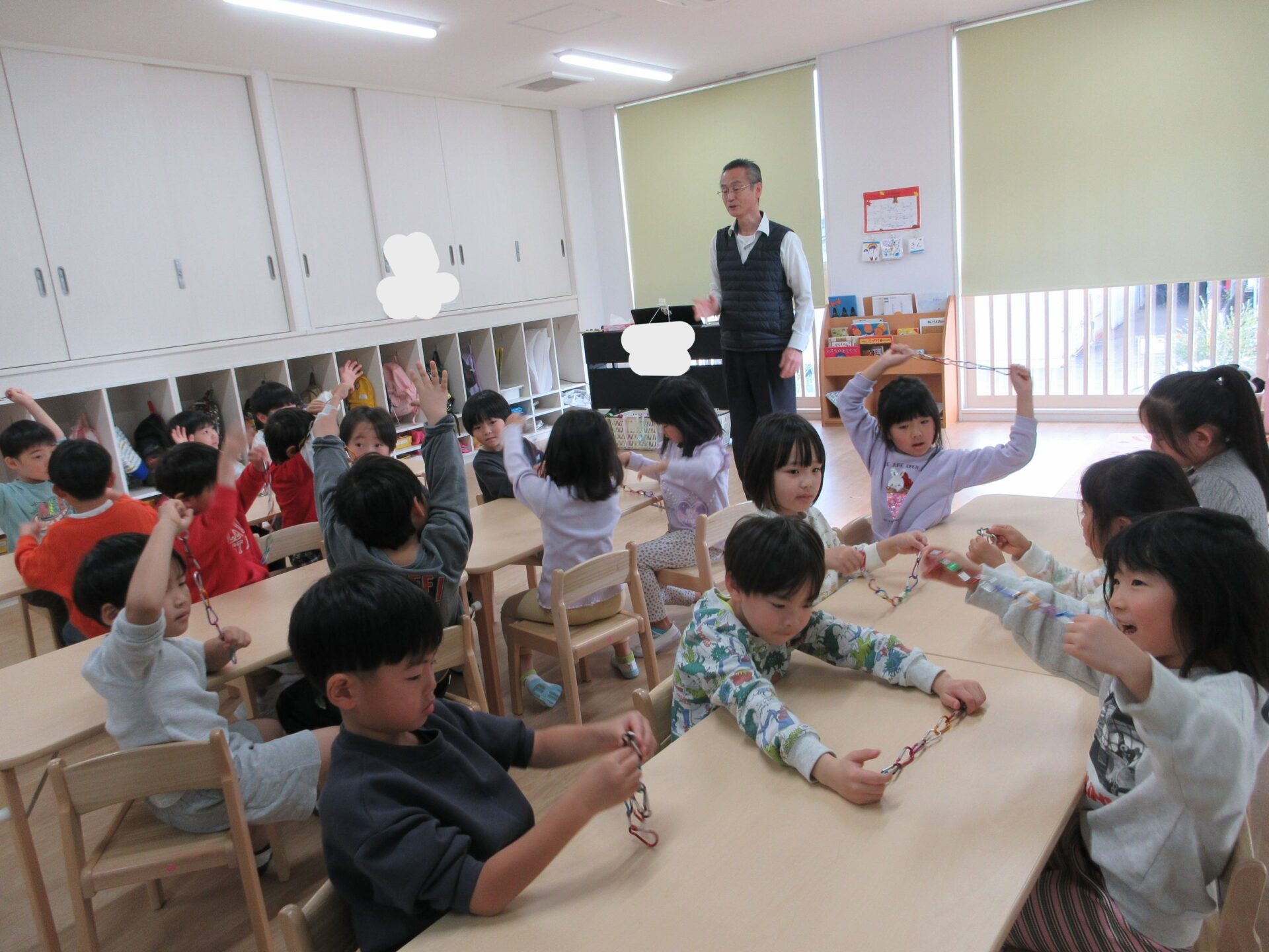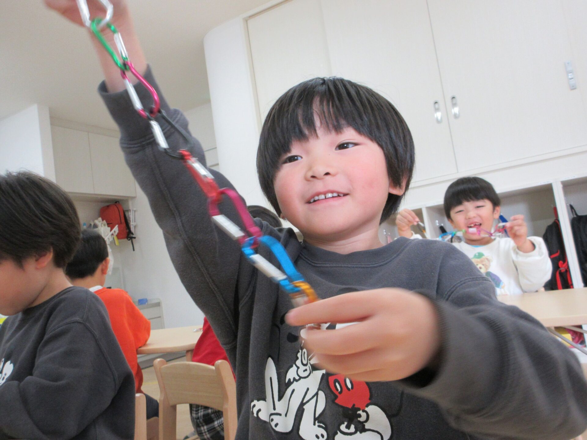 2026.02.20 ブログ 園だより 未来のゲルニカ製作🐳🌟 (5歳 くじら組) 12月頃、くじら組で未来のゲルニカ製作をしました🐳園長先生から子どもたちにゲルニカについてのお話をしてもらいました! 子どもたちに渡されたのは、10本程の「カラビナ」 カラフルなカラビナを一本につなぎ合わせていきます。 平和へのメッセージを込めて…という思いから始まった、くじらゲルニカ。今回のテーマは「未来」です✨ 全国のくじらの園の子どもたちが繋げたものが集まり、今年は此処、美園くじらこども園に飾られます。 3月、思いが込められた大きなくじらを見られるのが私たちも楽しみです🐳🌟 「できたっ!✨」 自分で繋げたカラビナは、くじらのどの部分になるのかな?☺ 「じゃーん!!」 当日、おやすみしていた子たちは別日に行いました♪ これからも様々な形で、平和への思い、子どもたちの未来へ向けた取り組みへ、繋がることができたらと思います🌈 未来のゲルニカ、お楽しみに!!🐳🌟 一覧へ戻る