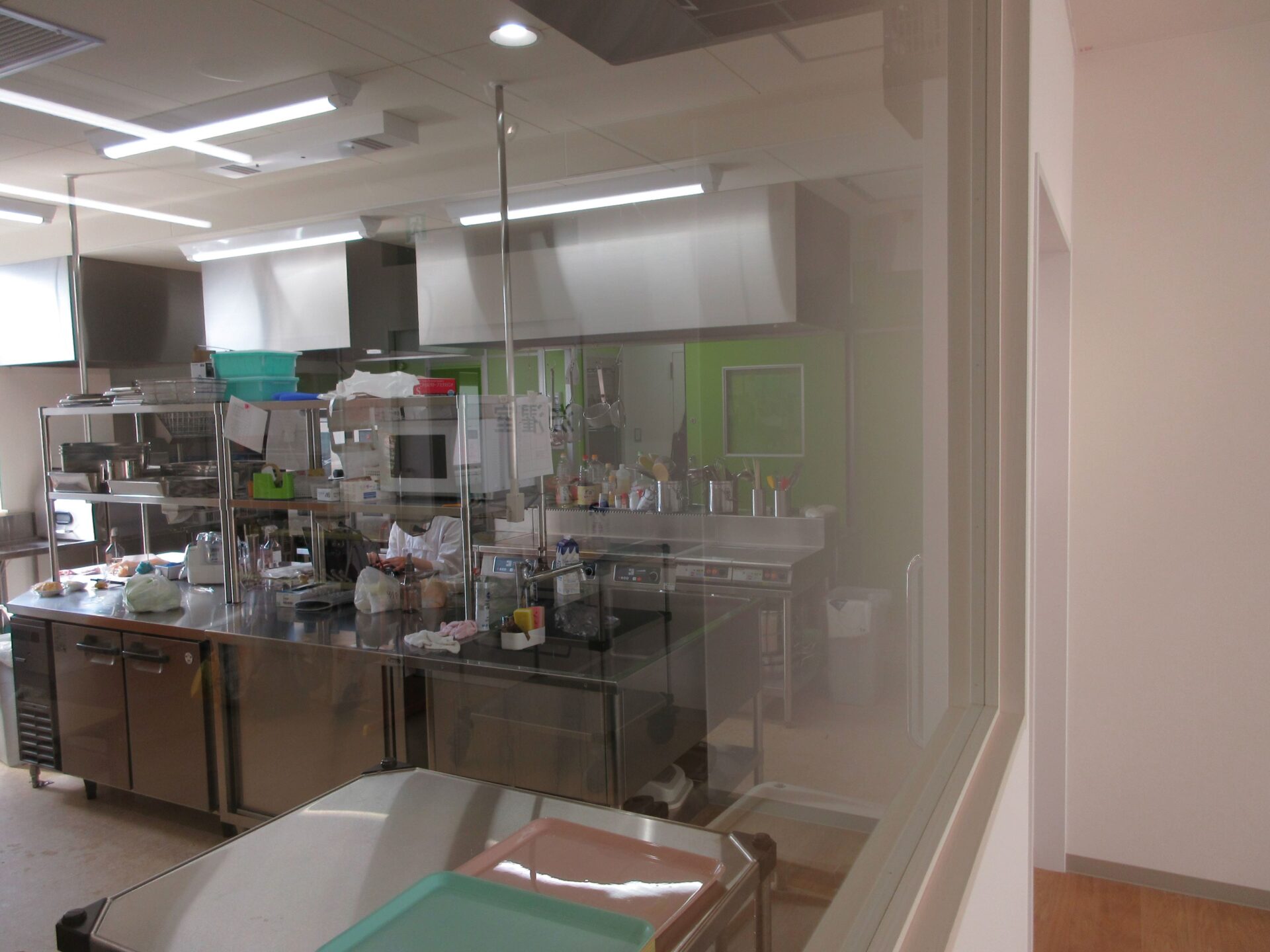 園の中の調理室で調理しています。