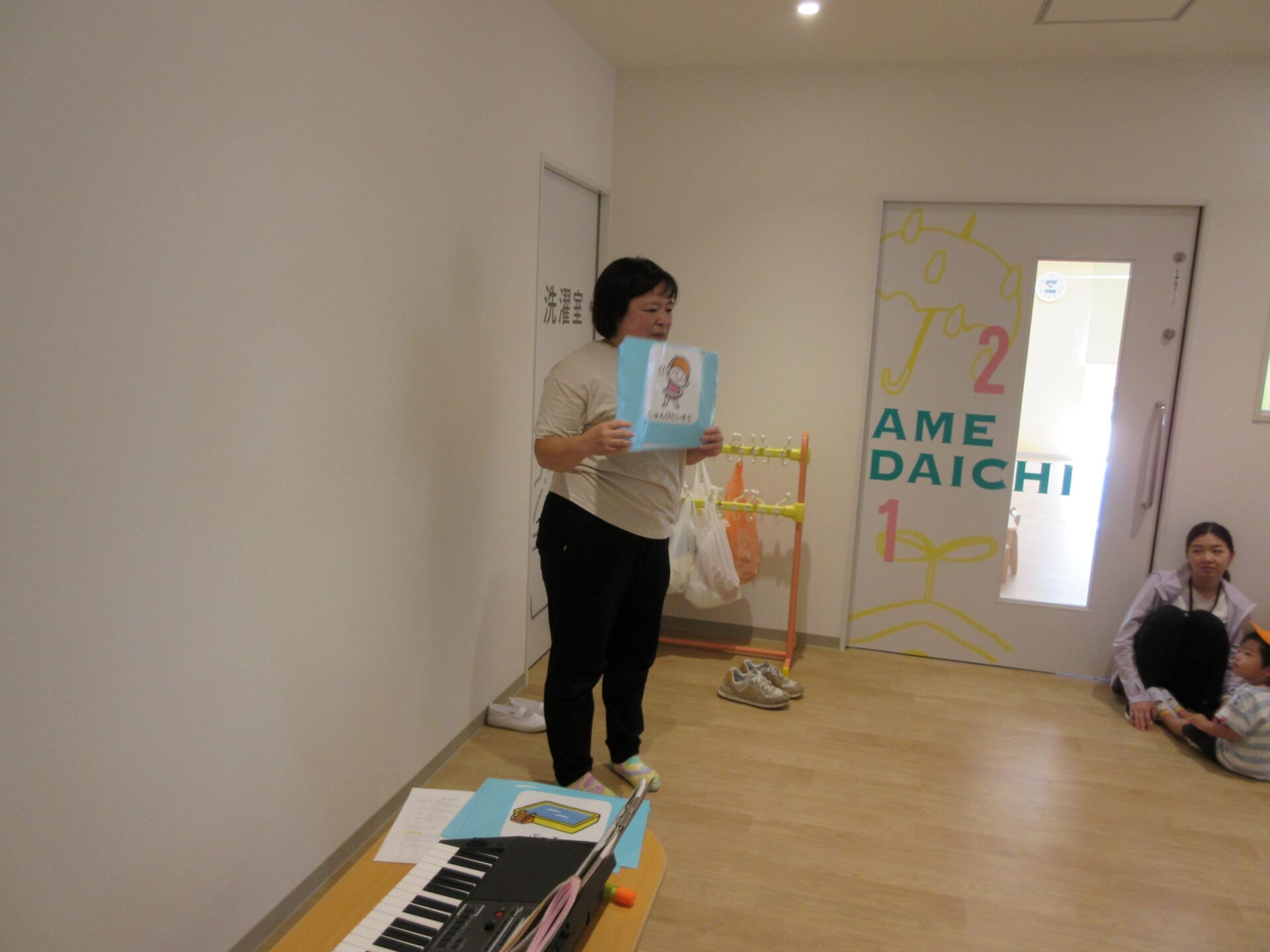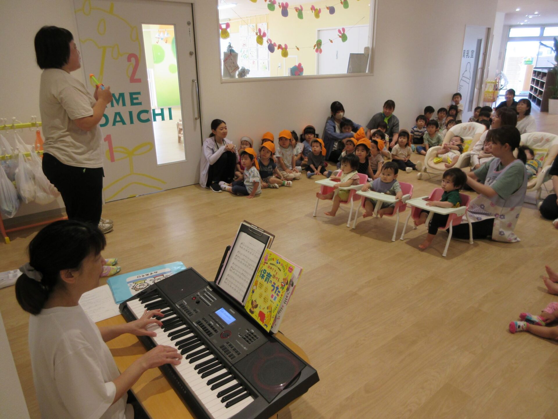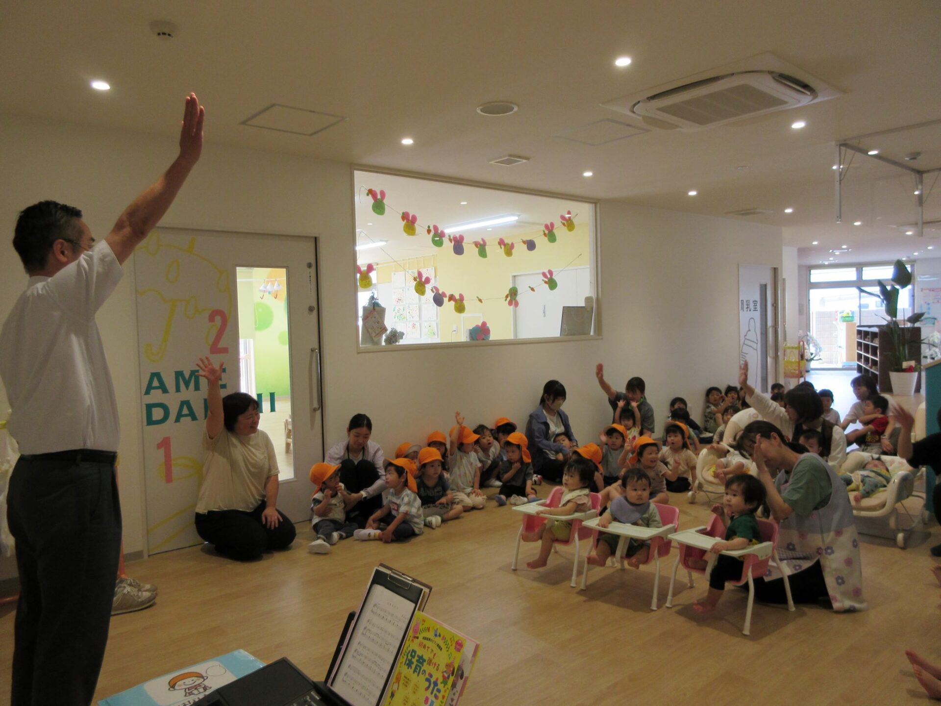 主任が「みずあそび」の歌を演奏して、みんなで歌いました。