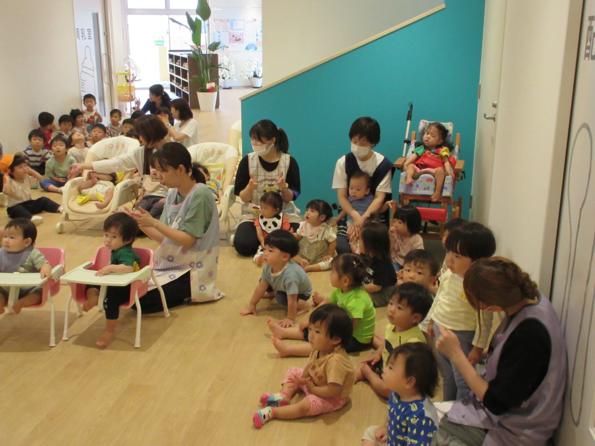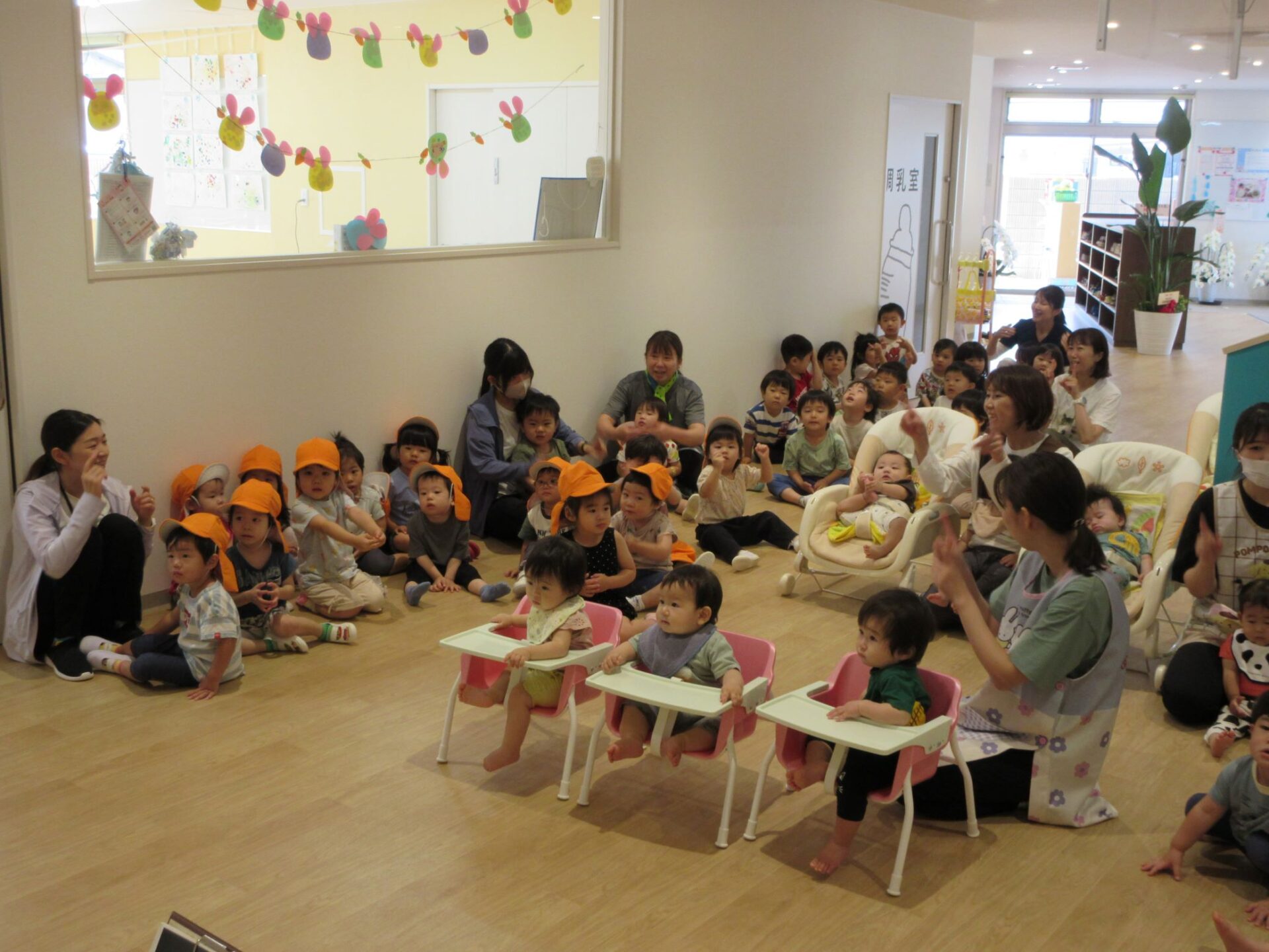 みんな、しっかりと聞いていましたね。正面は、うみ組。向かって右側は、あめ組。その後ろは、にじ組です。