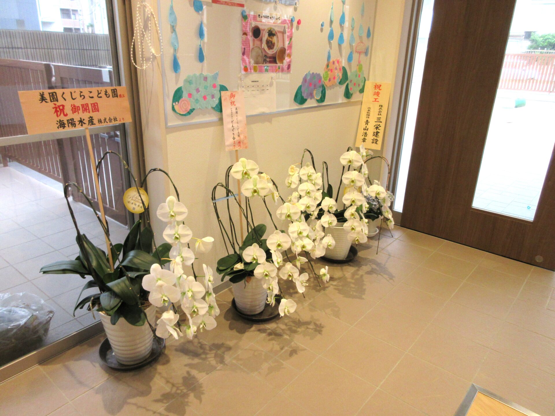 2023.06.23 お知らせ ブログ 蘭に新しい花が咲きました。 4月の開園のお祝いに、胡蝶蘭を4鉢いただきました。 贈ってくださった方々に感謝しながら、育ててきました。 そのうちの1鉢から新しい枝が伸び、つぼみがついてきました。 花が二つ咲き、つぼみもあと三つ。園がスタートしてから、新しく生まれた花とつぼみです。嬉しい。 元気なまま花が落ちていることもあります。お皿の水で、少しでも長く咲いていてほしい。 一覧へ戻る