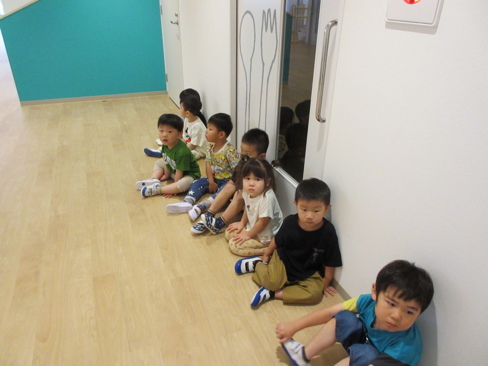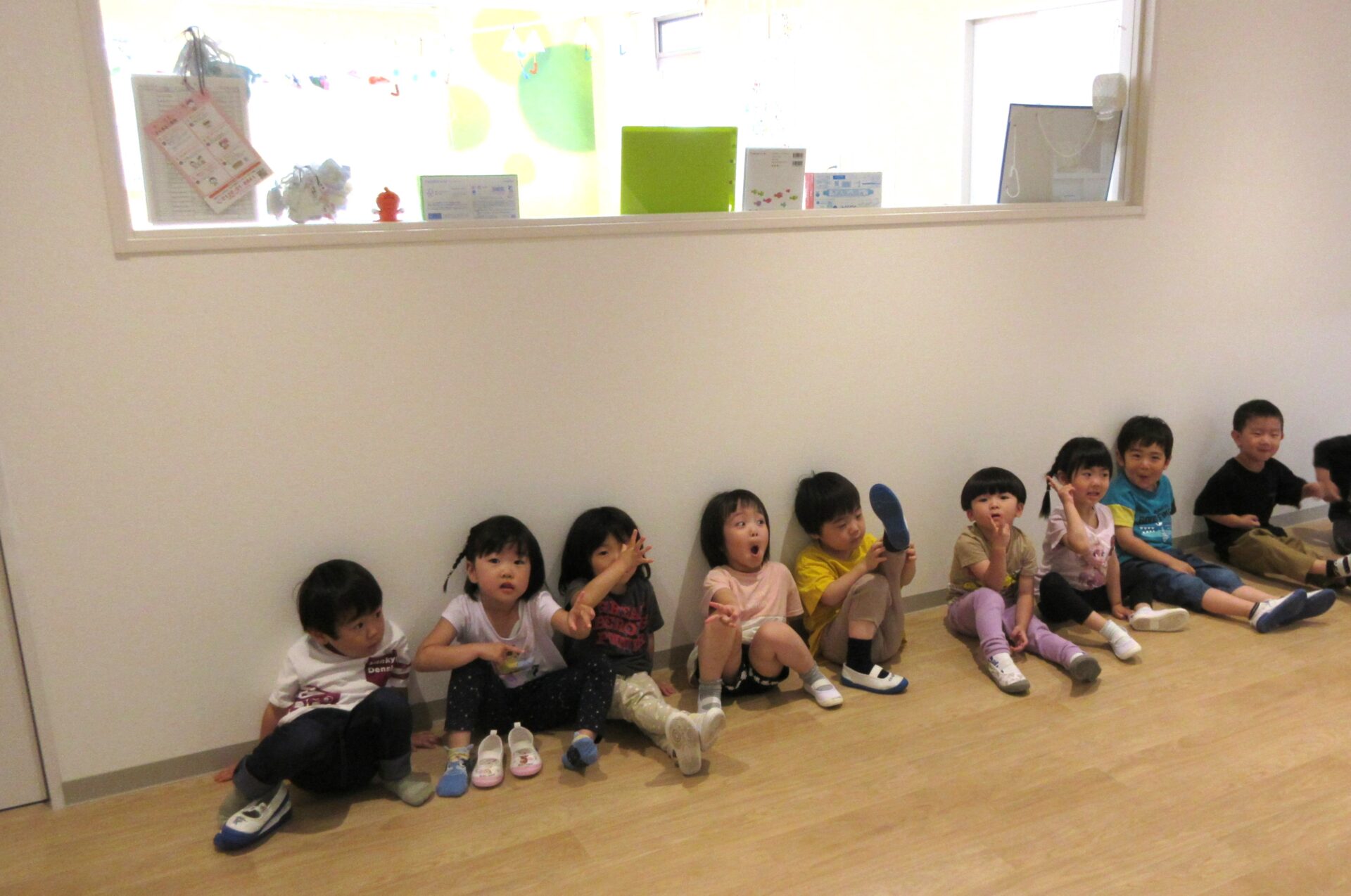 0歳うみ組から始まりました。内科検診とはちがった雰囲気に緊張気味の様子でした。