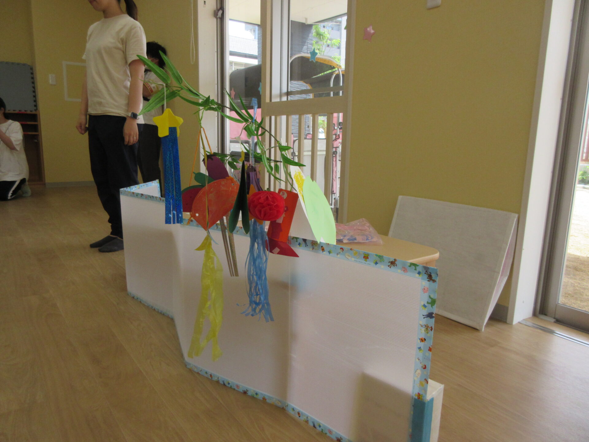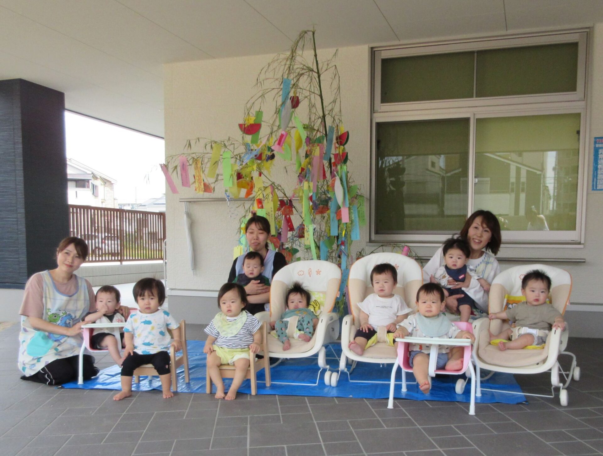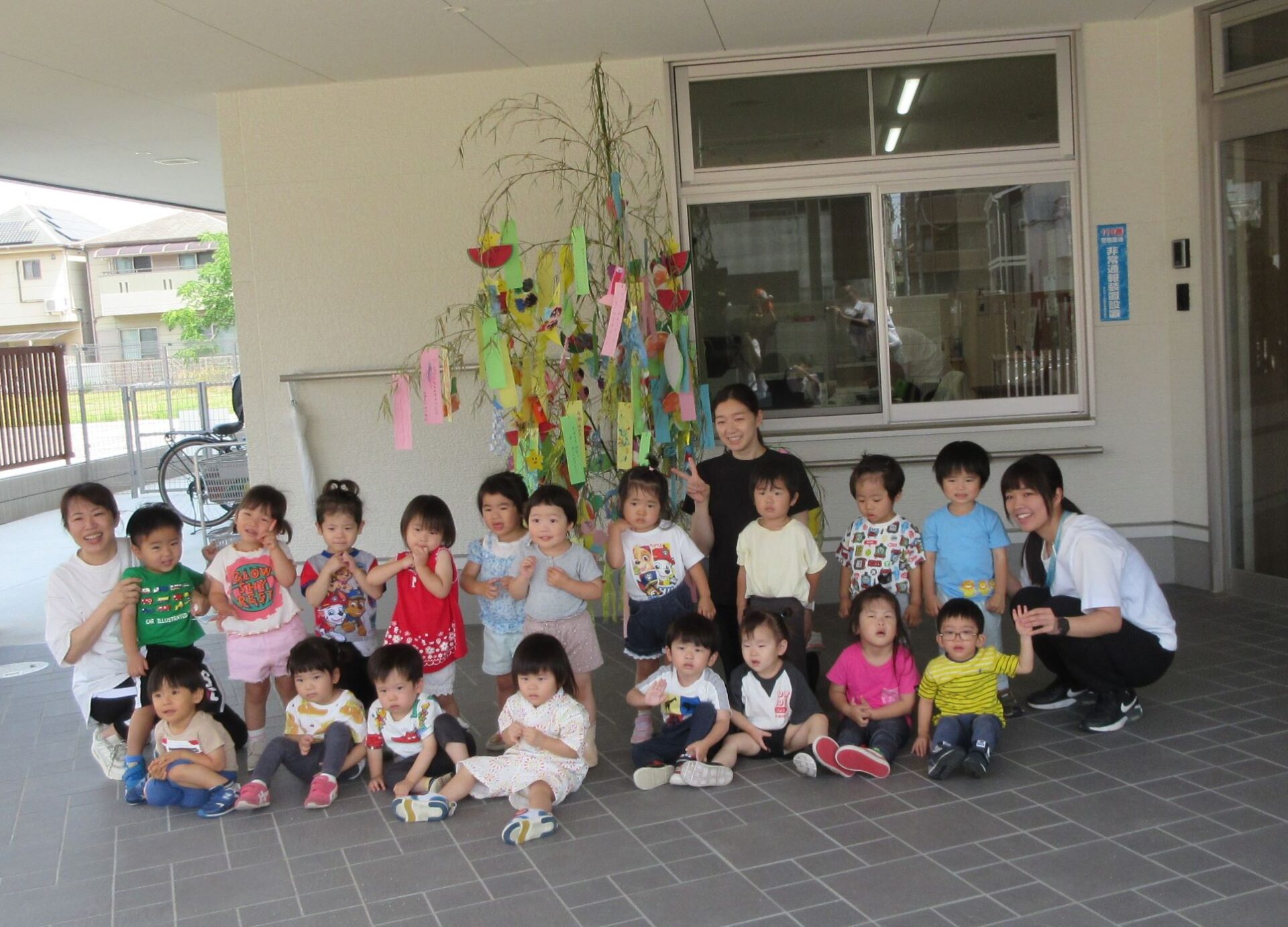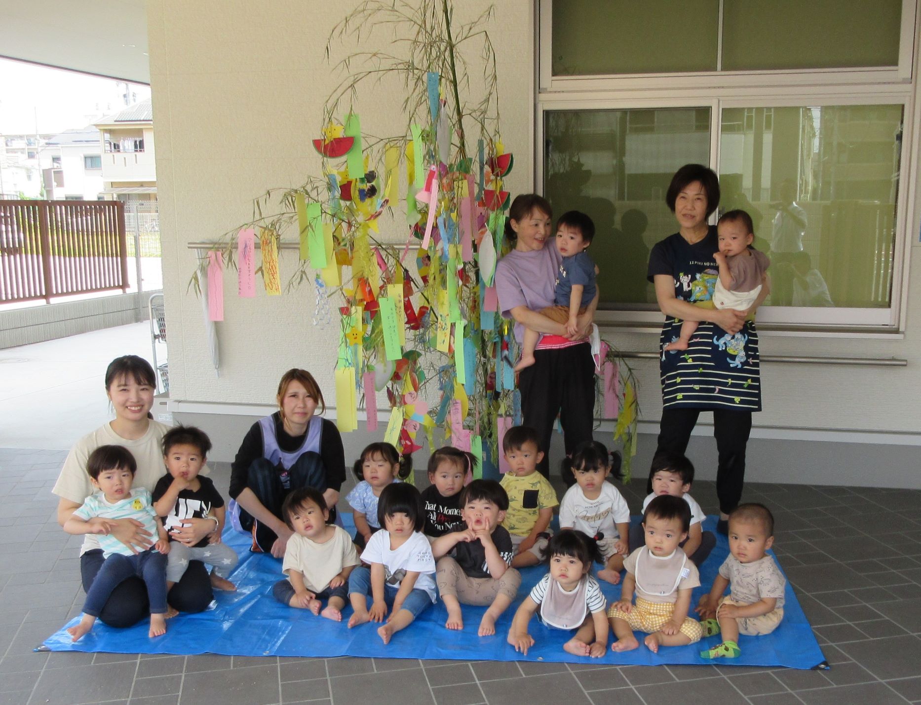 2023.07.07 お知らせ ブログ 今日は、七夕のつどい 10時から全園児が集まって、たなばたのつどいをしました。 はじめに、担当の先生からお話を聞きました。 そのあと、ペープサートで、おり姫とひこ星のお話を聞きました。 お話に夢中です。 「天の川で、離ればなれになってしまい、おり姫とひこ星は会えなくなりました。」 お話の後、玄関のたなばた飾りの前で記念写真を撮りました。2歳あめ組。 1歳だいち組です。 0歳うみ組です。 今日は、「たなばた献立」。七夕そうめん、ゆかりご飯のおにぎり、ブロッコリーサラダ、フライドポテトでした。 一覧へ戻る