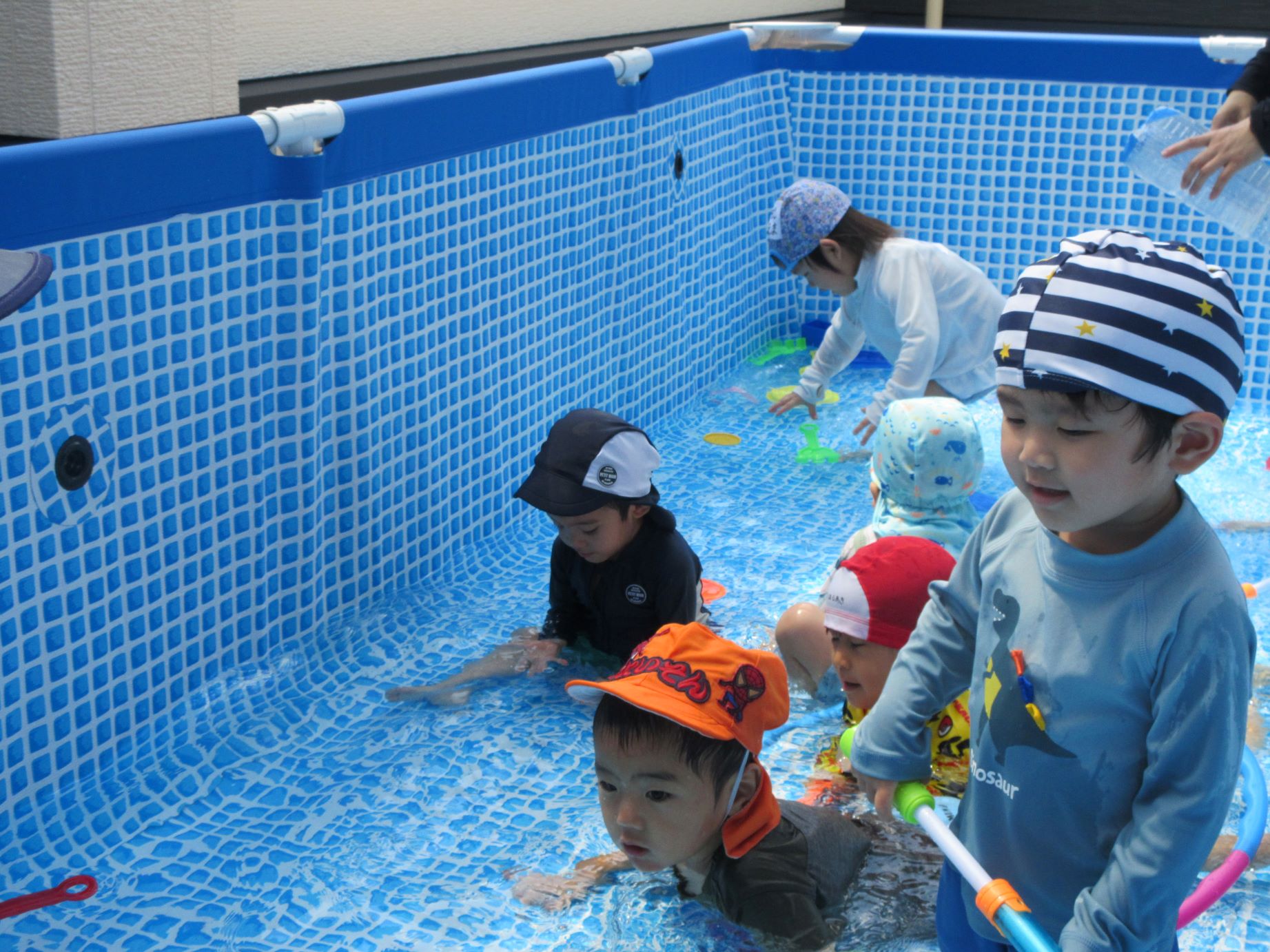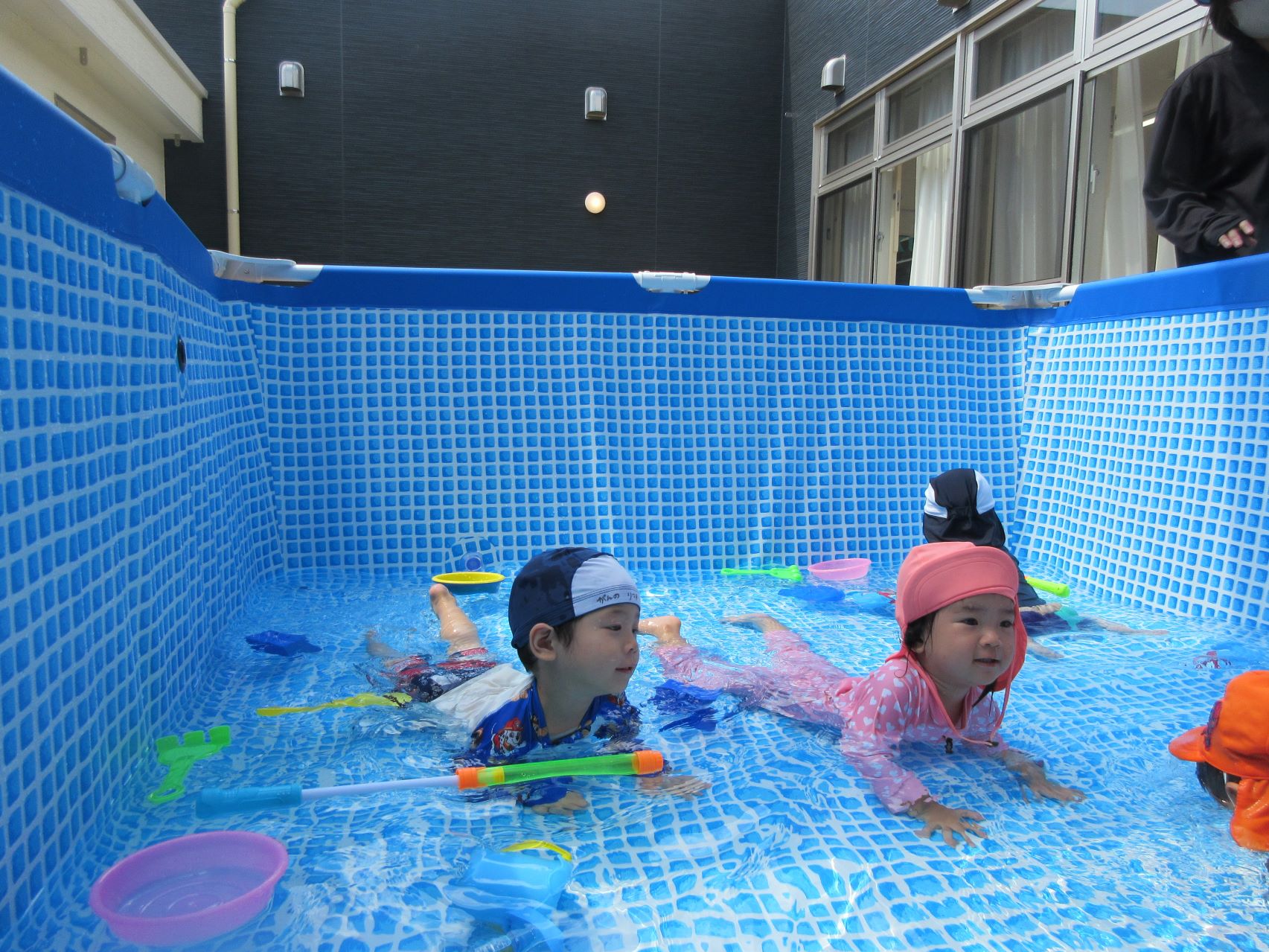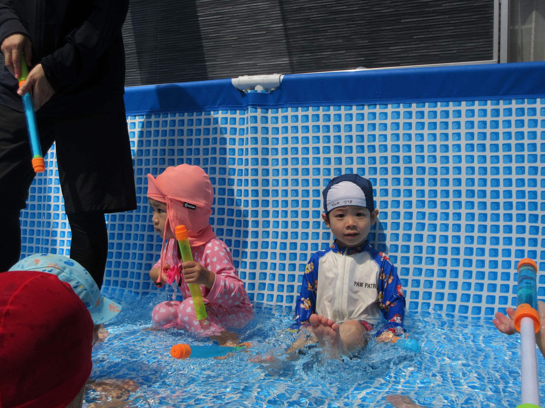 2023.07.26 お知らせ ブログ 今日のあめ組 昨日、撮影できなかった2歳あめ組は、10時から2階中庭でプール遊びをしました。 とても暑い日だったので、気持ちよさそうでした。 何度もプールで遊んでいるので、いろいろな遊びを楽しめています。 水にもすっかり慣れて、「ワニさん歩き」ができるようになってきました。 顔を水の中にしっかりつけれるお友だちもいます。 そして、だんだんワニさんが増えてきました。 上を向いて寝ころんで楽しんでいます。 一覧へ戻る