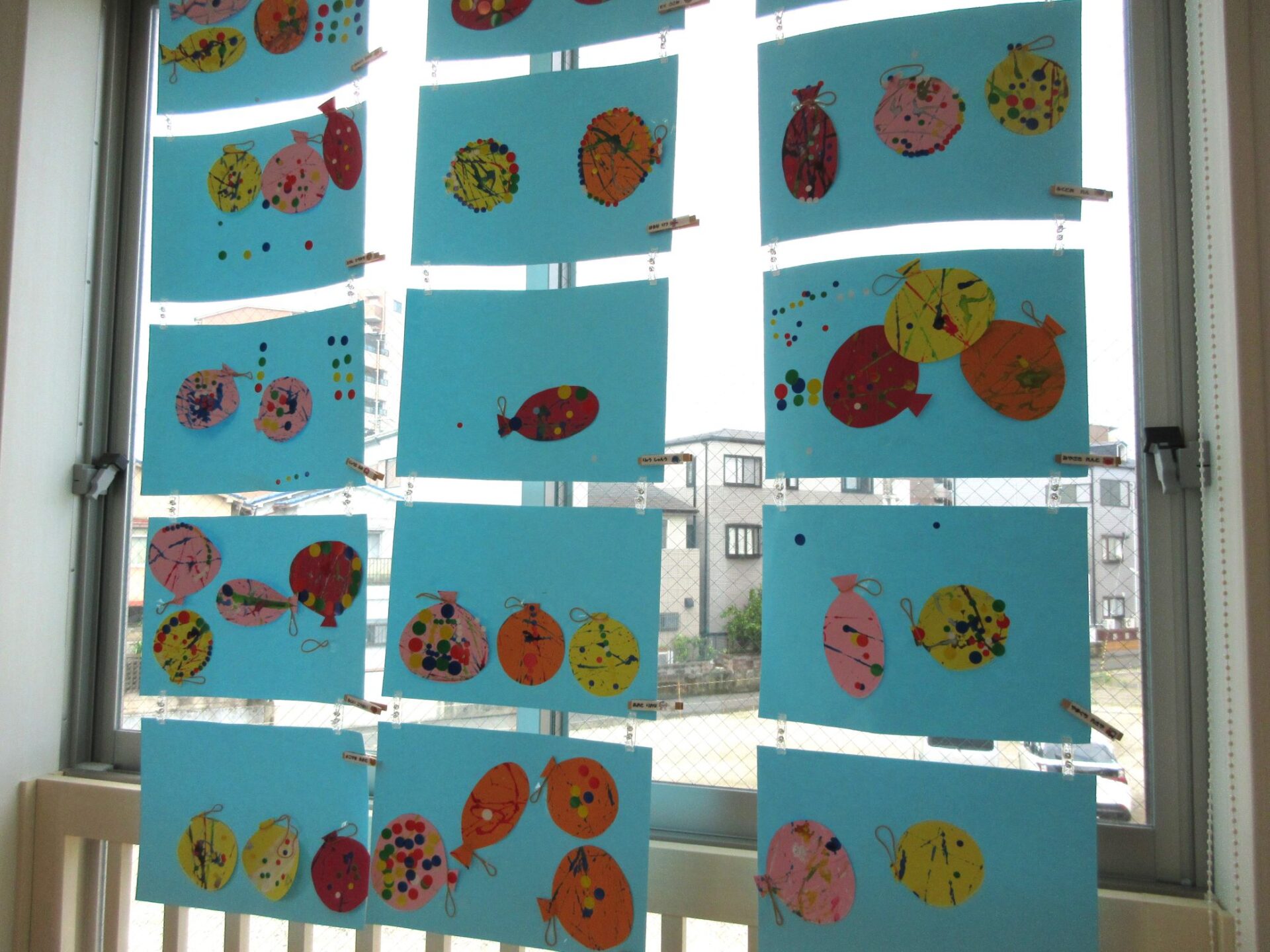 窓のところには、作品がありました。夜店のヨーヨーかな。