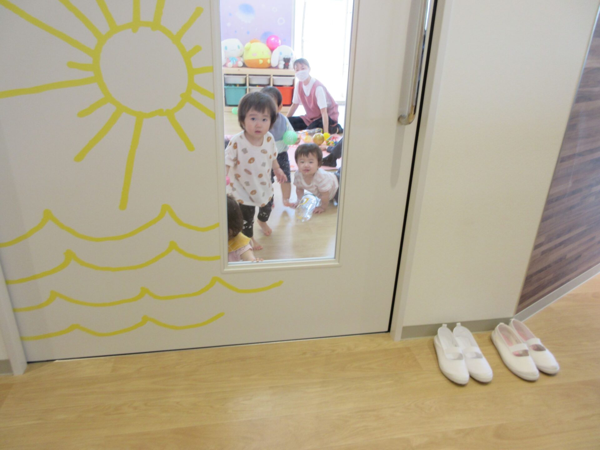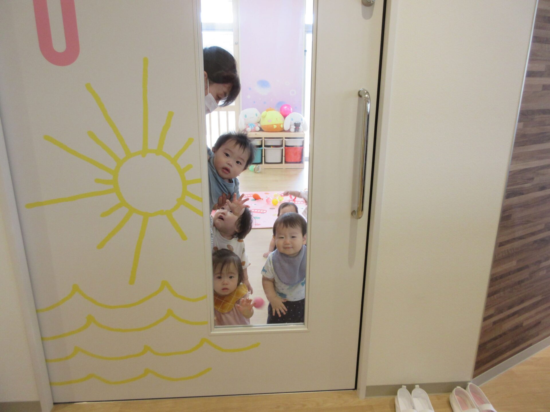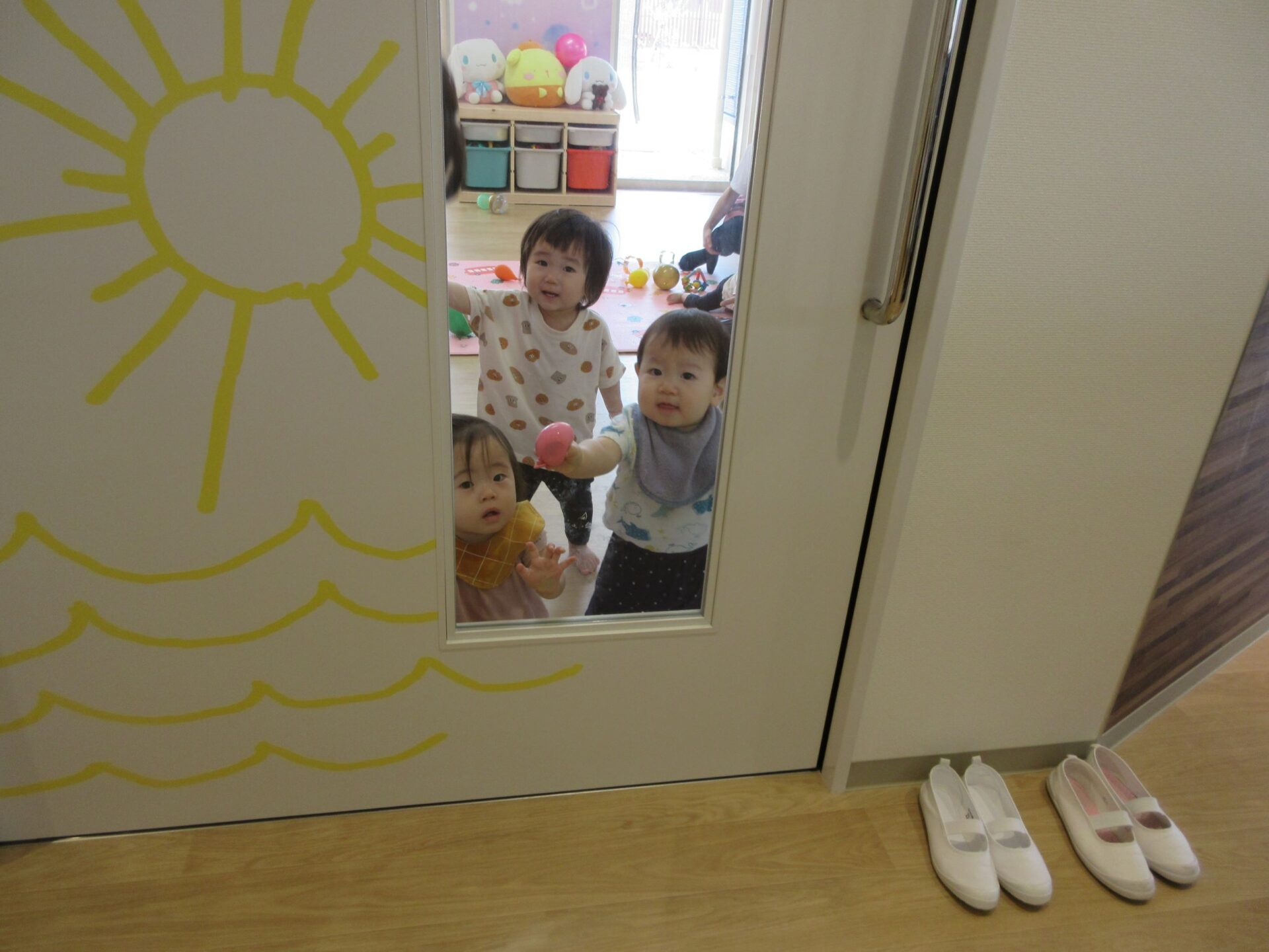 こちらは、0歳だいち組。窓の外から部屋の中を見ていると・・。