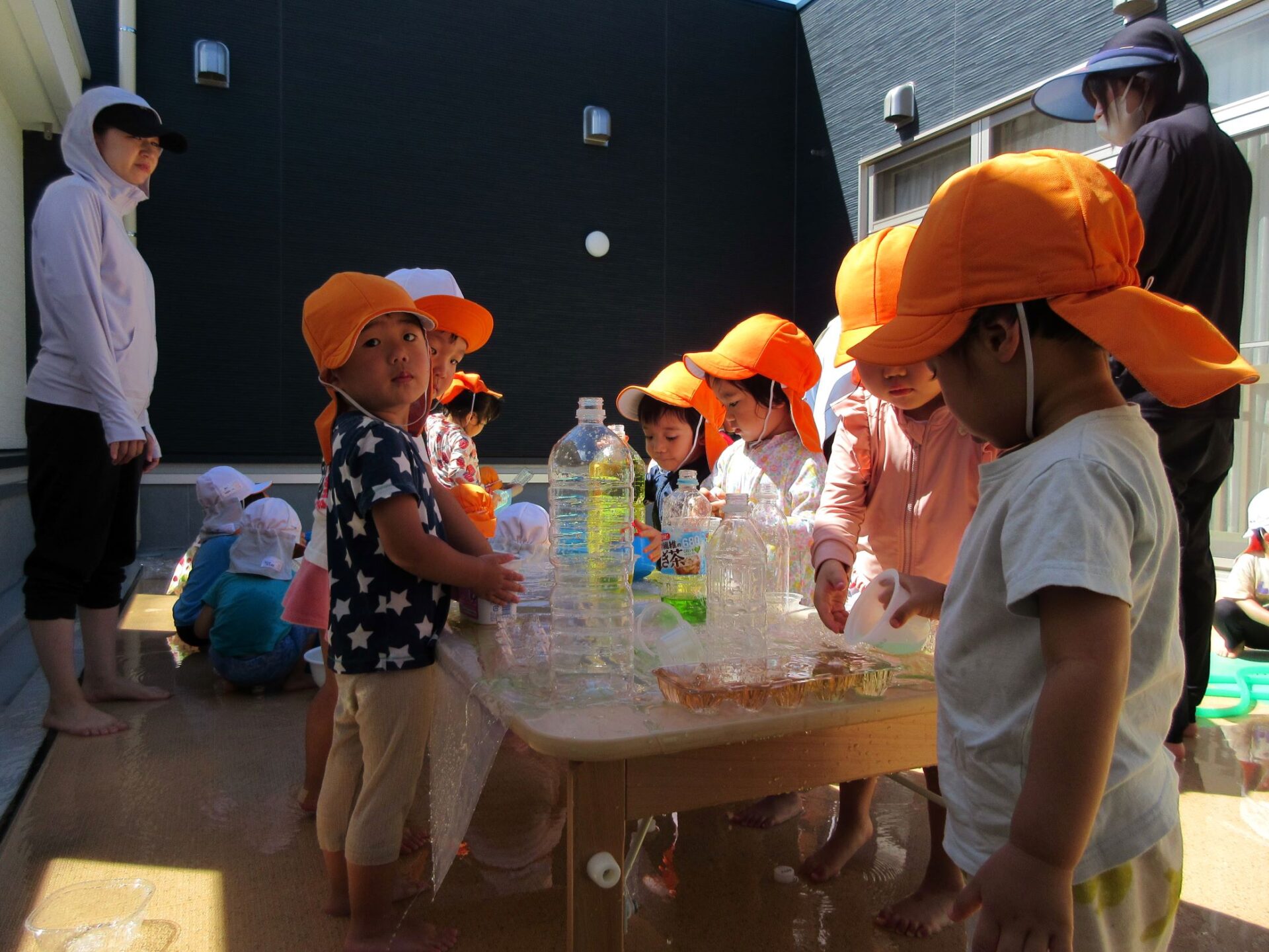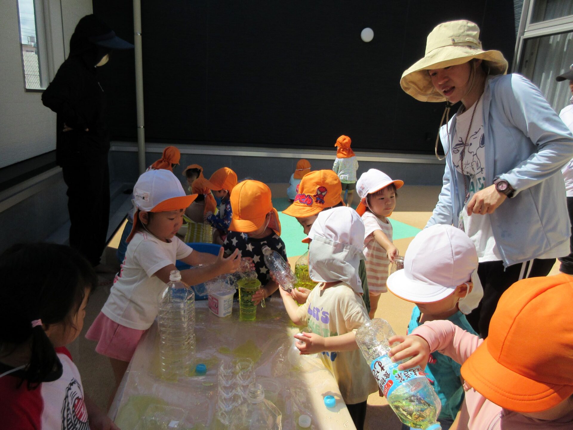 いろんな色の水で遊びました。