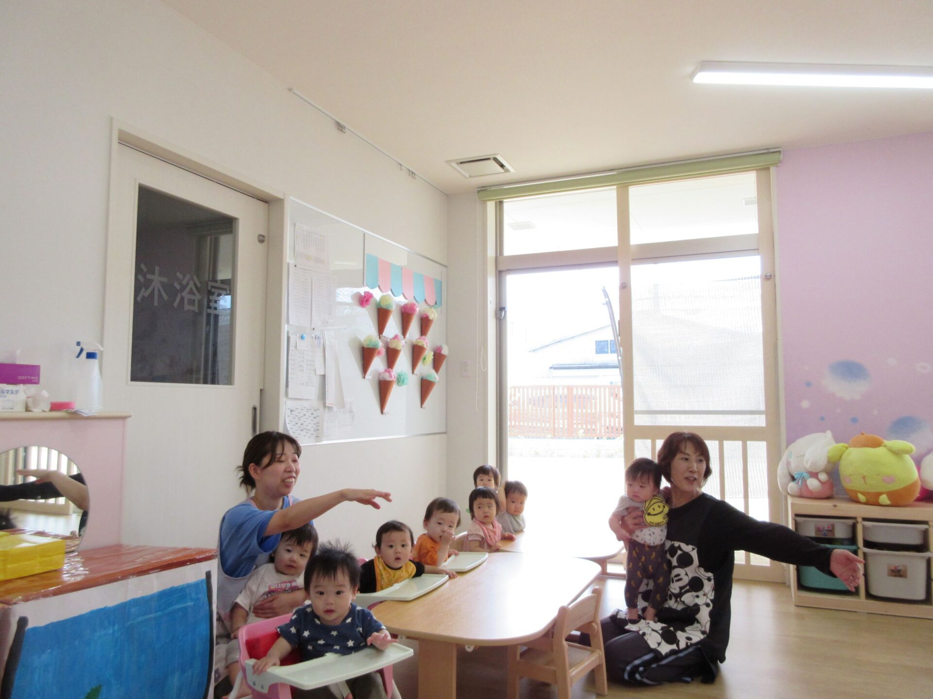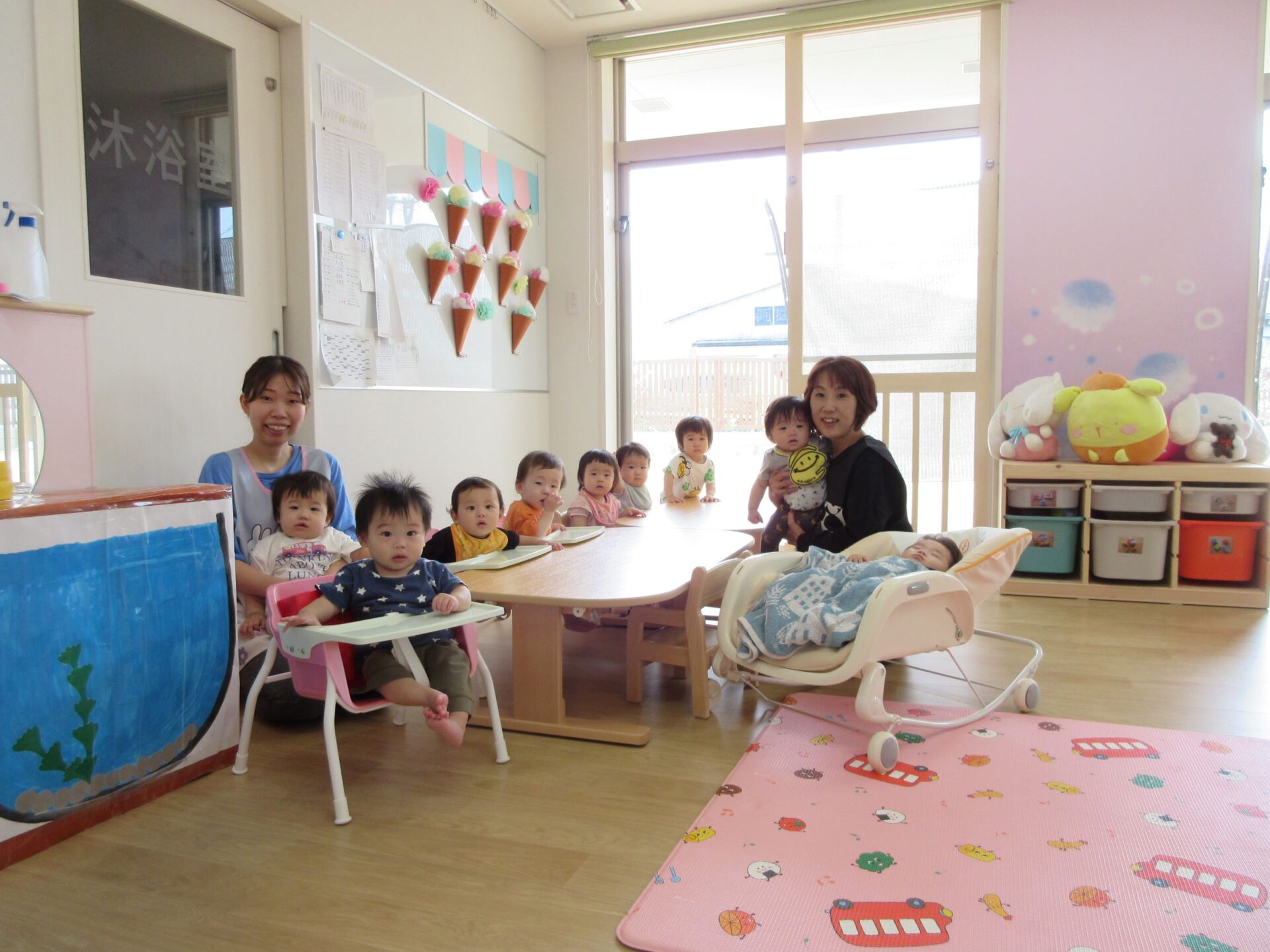 2023.08.25 お知らせ ブログ そろいました。 8月24日、0歳うみ組の部屋に入ると、先生たちがみんなを集め始めてくれました。 みんなカメラのほうを向いて、撮れるのでしょうか・・。 呼んでくれていますね。 そして、そろいました。きょうは、9人全員がそろった日でもありました。こっちを向いてくれていますね。 一覧へ戻る