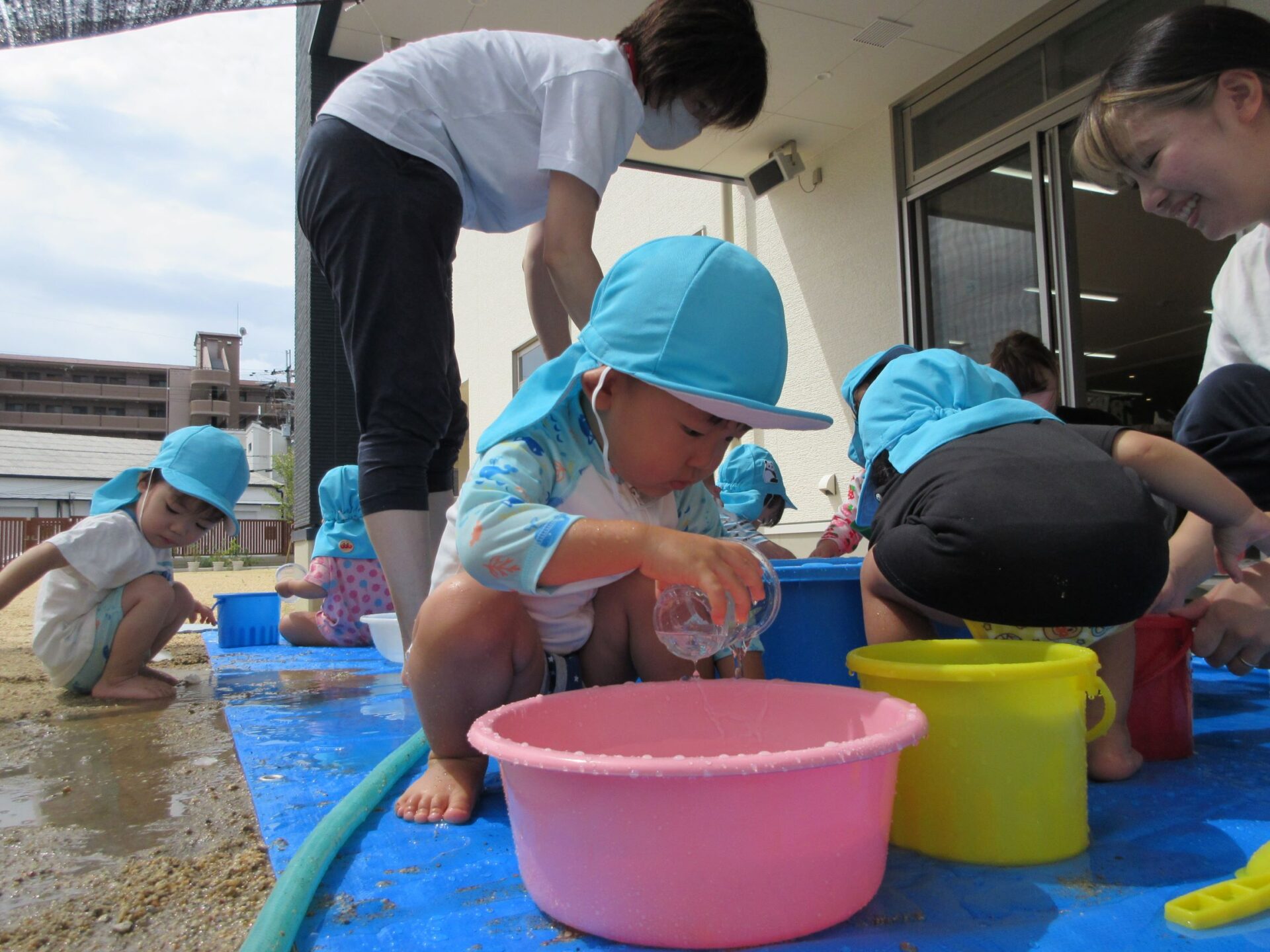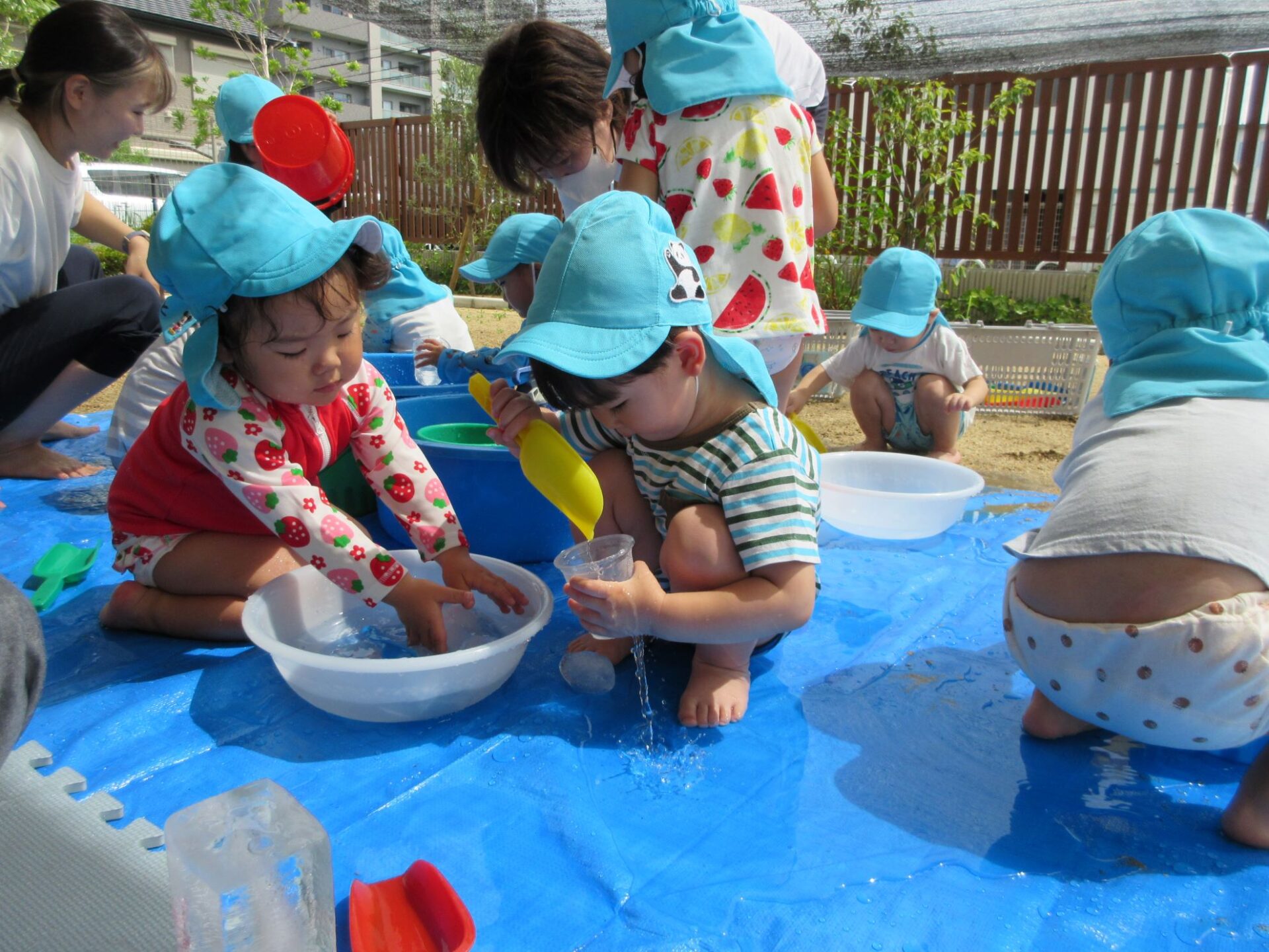 2023.08.31 お知らせ ブログ 水遊び、よく見ると・・。 30日、1歳だいち組が園庭で水遊びを始めました。よく見ると、かたまりがありますね。 氷ですね。 氷遊び? 冷たくて気持ちいいですね。 「はい。楽しいです。」 「楽しいですよ。」 「夢中です。」 「夢中です!」 一覧へ戻る