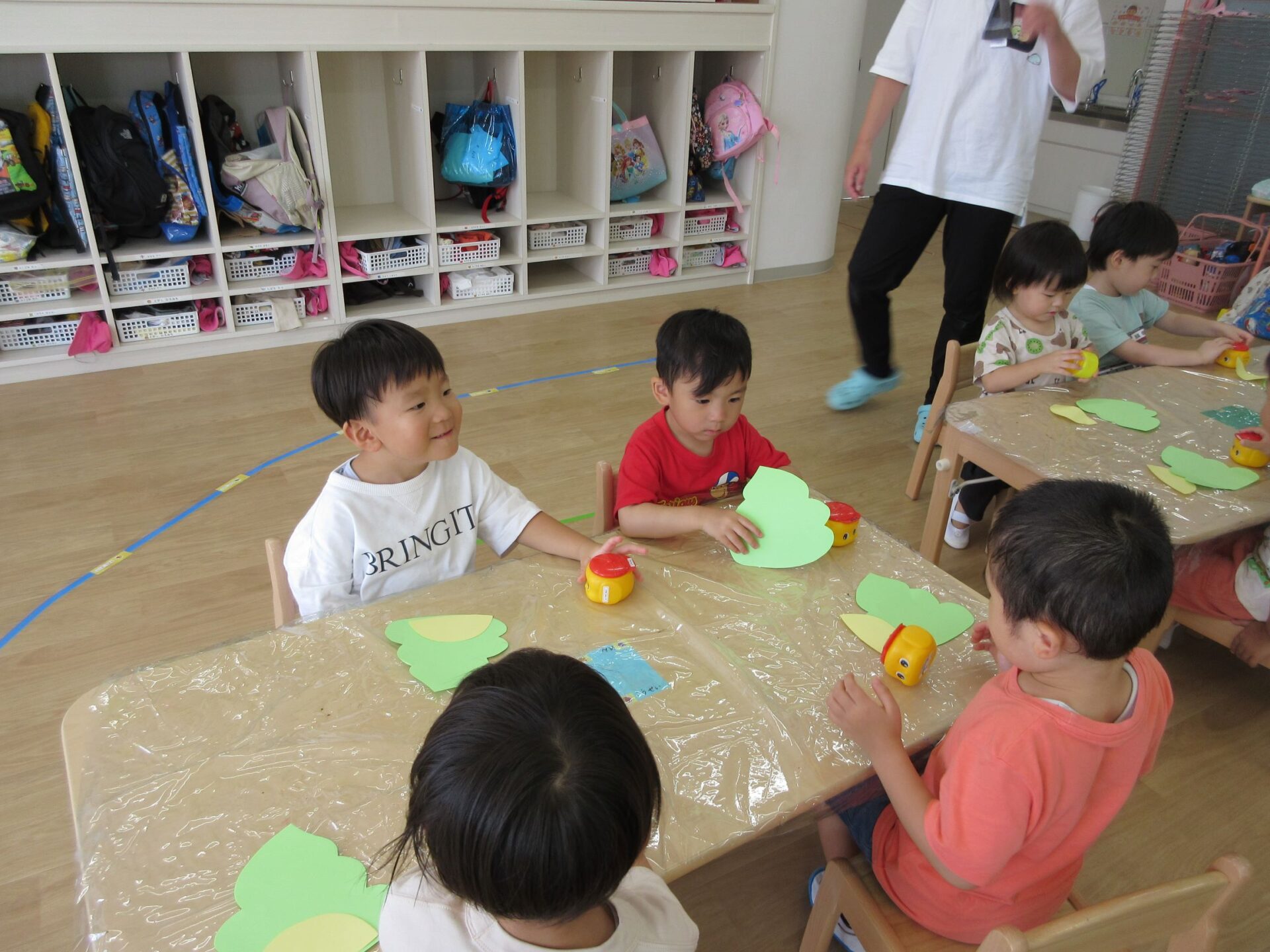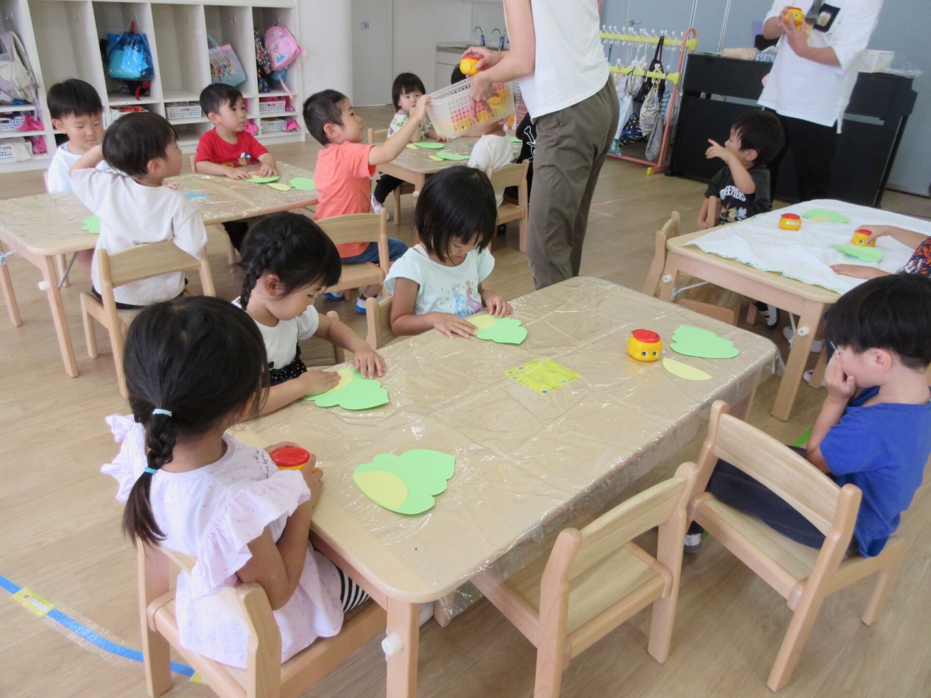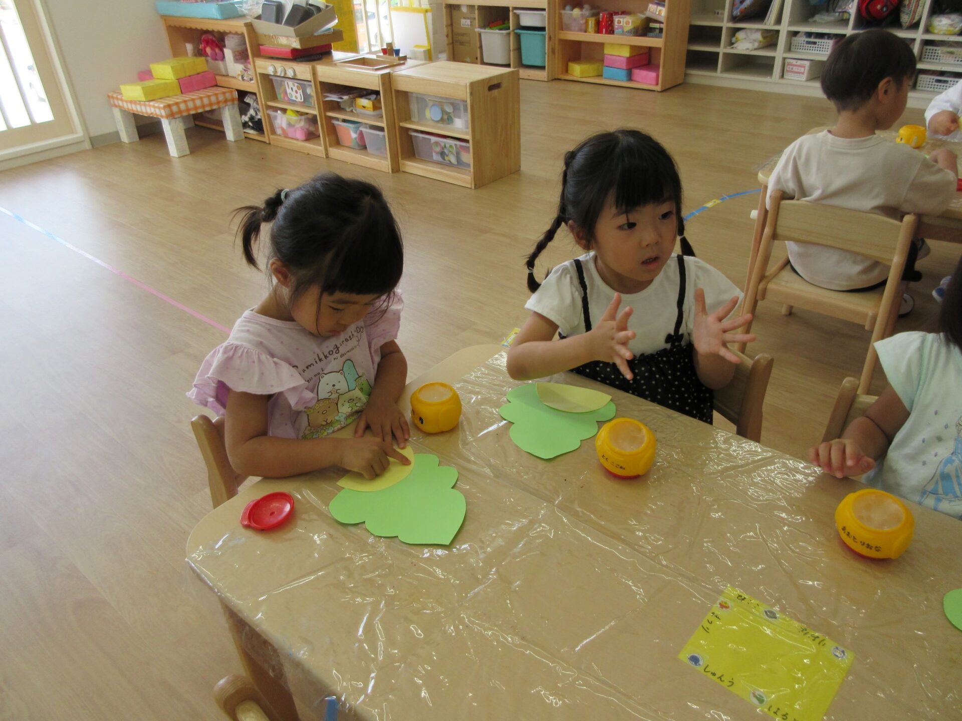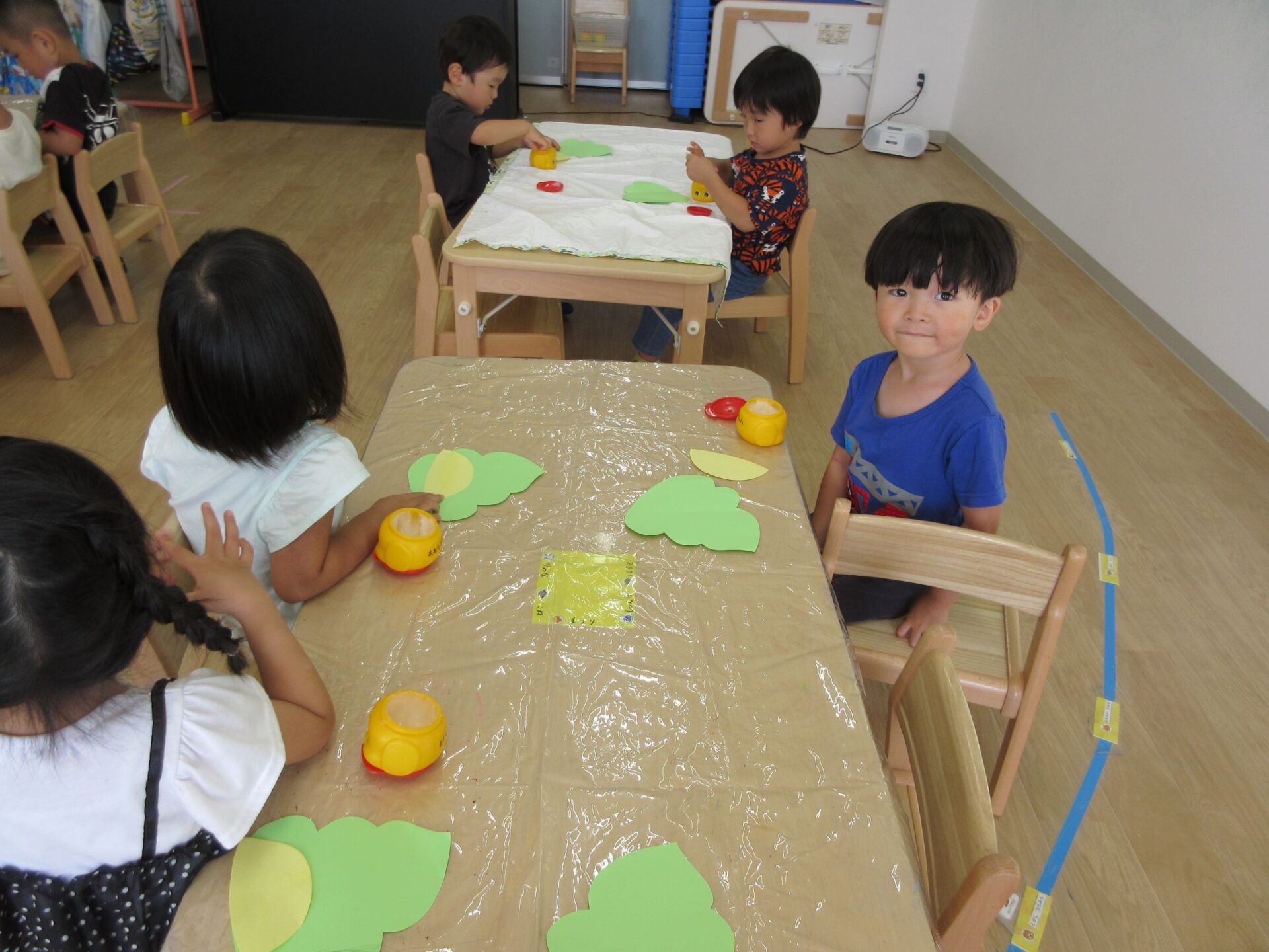 2023.09.01 お知らせ ブログ 何を作っているの? 8月31日、3歳にじ組の部屋に行くと、先生の説明を聞きながら何かを作っていました。 のりを使って、貼りつけるようです。 「何を作るの?」「・・・」なかなか教えてくれません。 のりを使って、くっつけるんですね。 まず、フタを開けて準備ですね。 「のり」だけでも楽しんでいますね。 みんな、しっかり作っていますね。 これだったんですね! 「やどかり」かな。どんな作品が完成するか、楽しみです。 一覧へ戻る