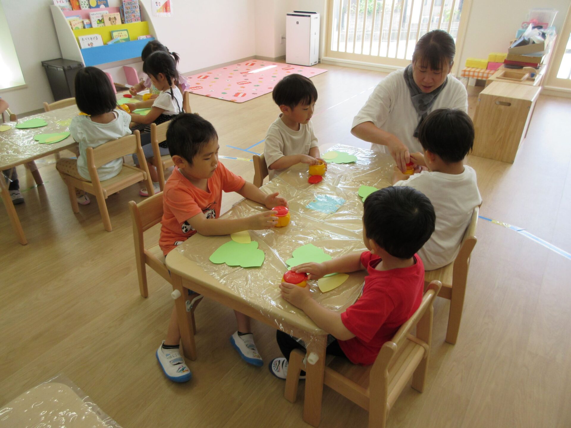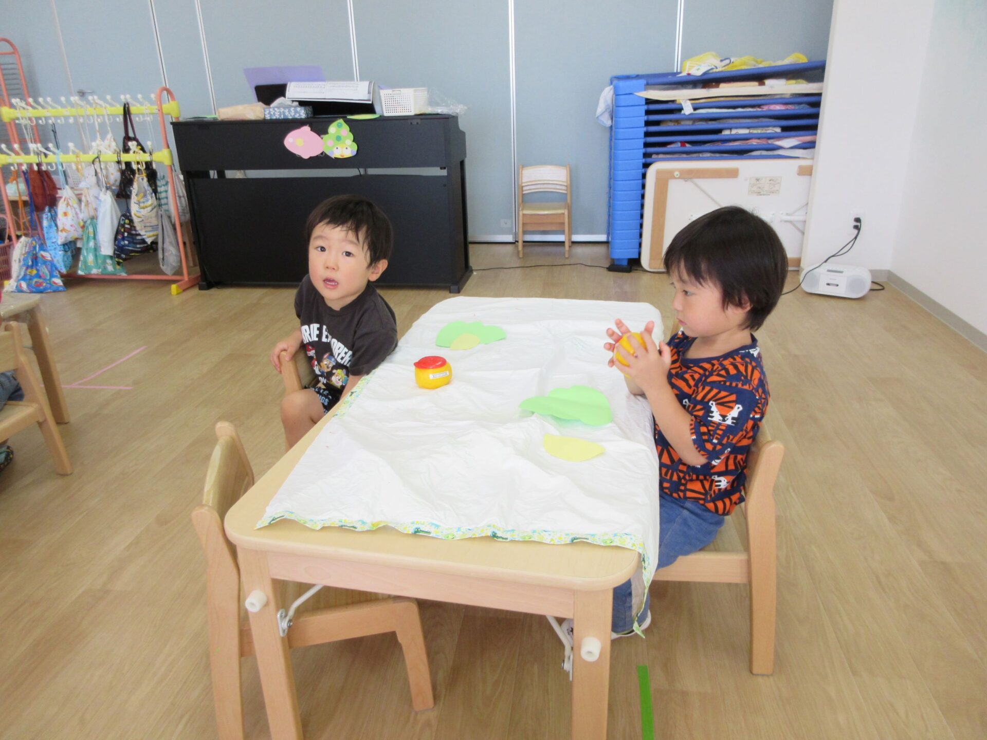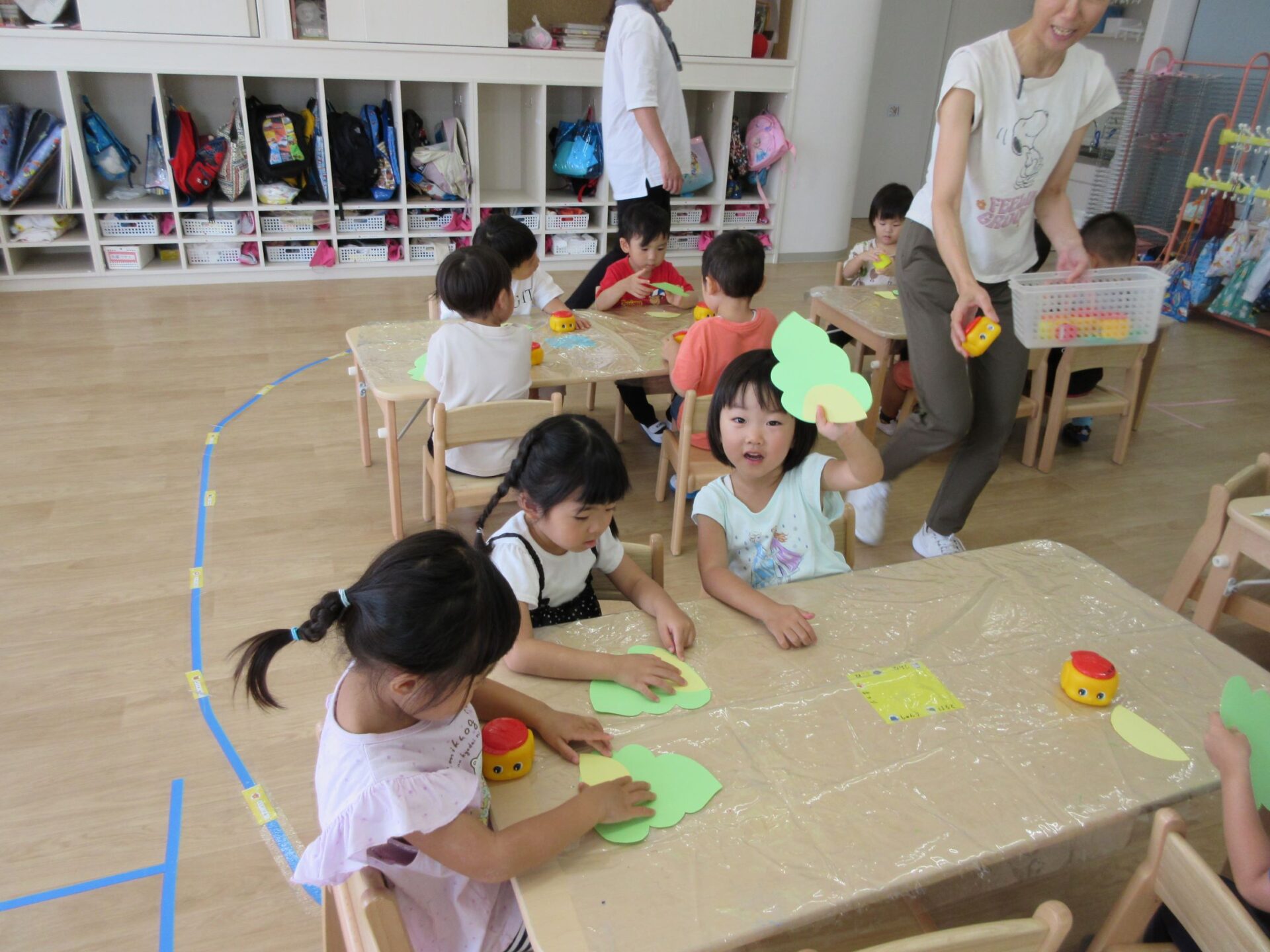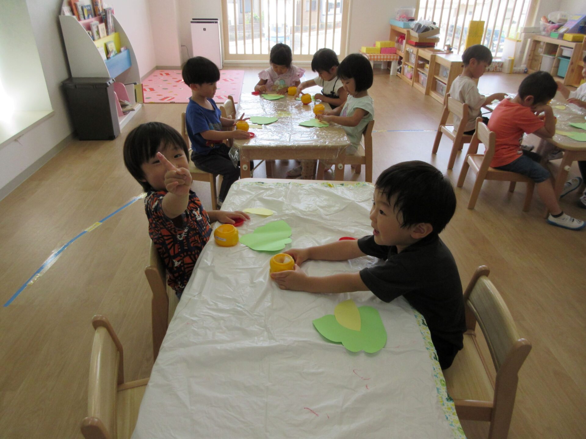 2023.09.01 お知らせ ブログ 何を作っているの? 8月31日、3歳にじ組の部屋に行くと、先生の説明を聞きながら何かを作っていました。 のりを使って、貼りつけるようです。 「何を作るの?」「・・・」なかなか教えてくれません。 のりを使って、くっつけるんですね。 まず、フタを開けて準備ですね。 「のり」だけでも楽しんでいますね。 みんな、しっかり作っていますね。 これだったんですね! 「やどかり」かな。どんな作品が完成するか、楽しみです。 一覧へ戻る