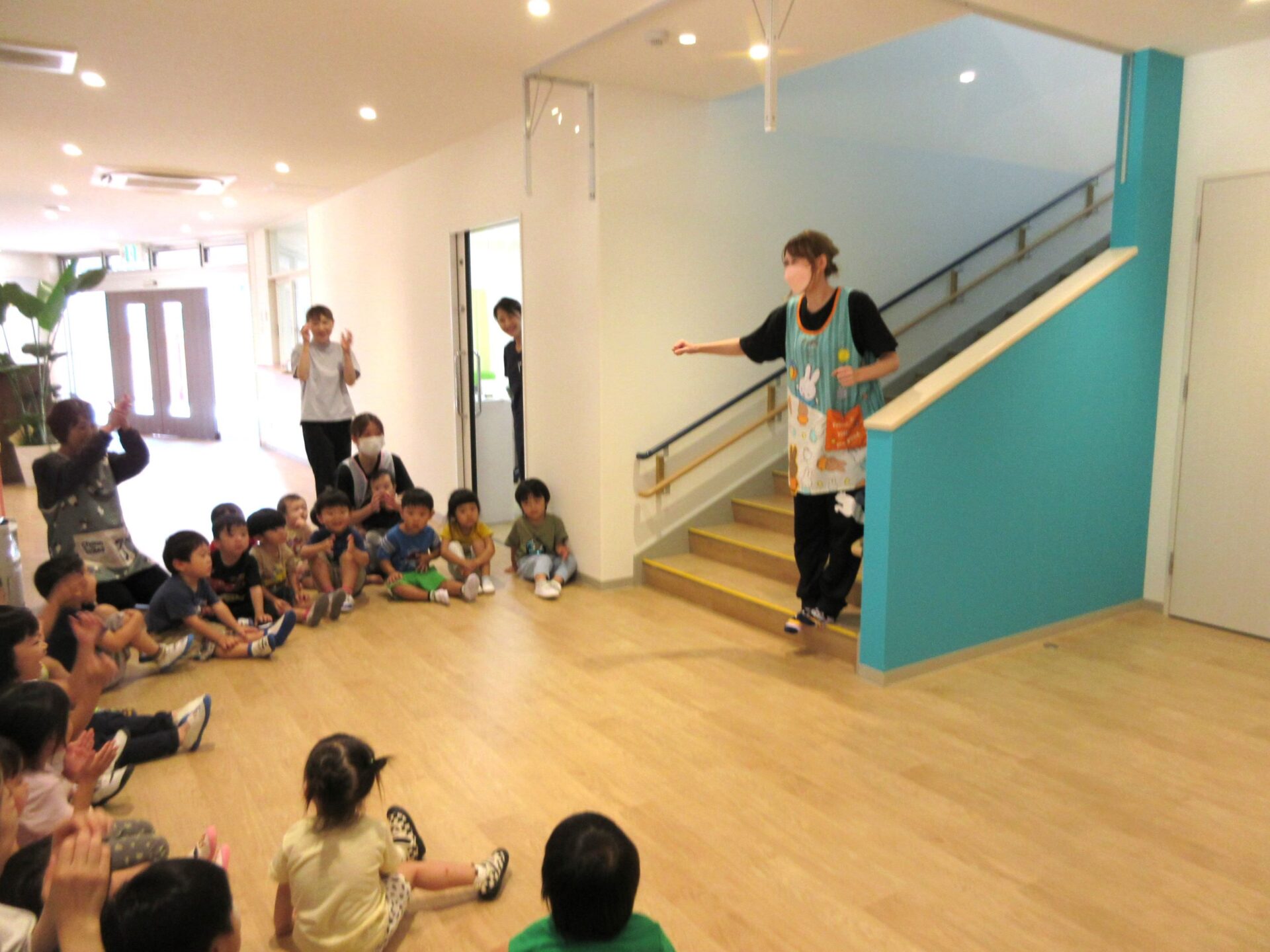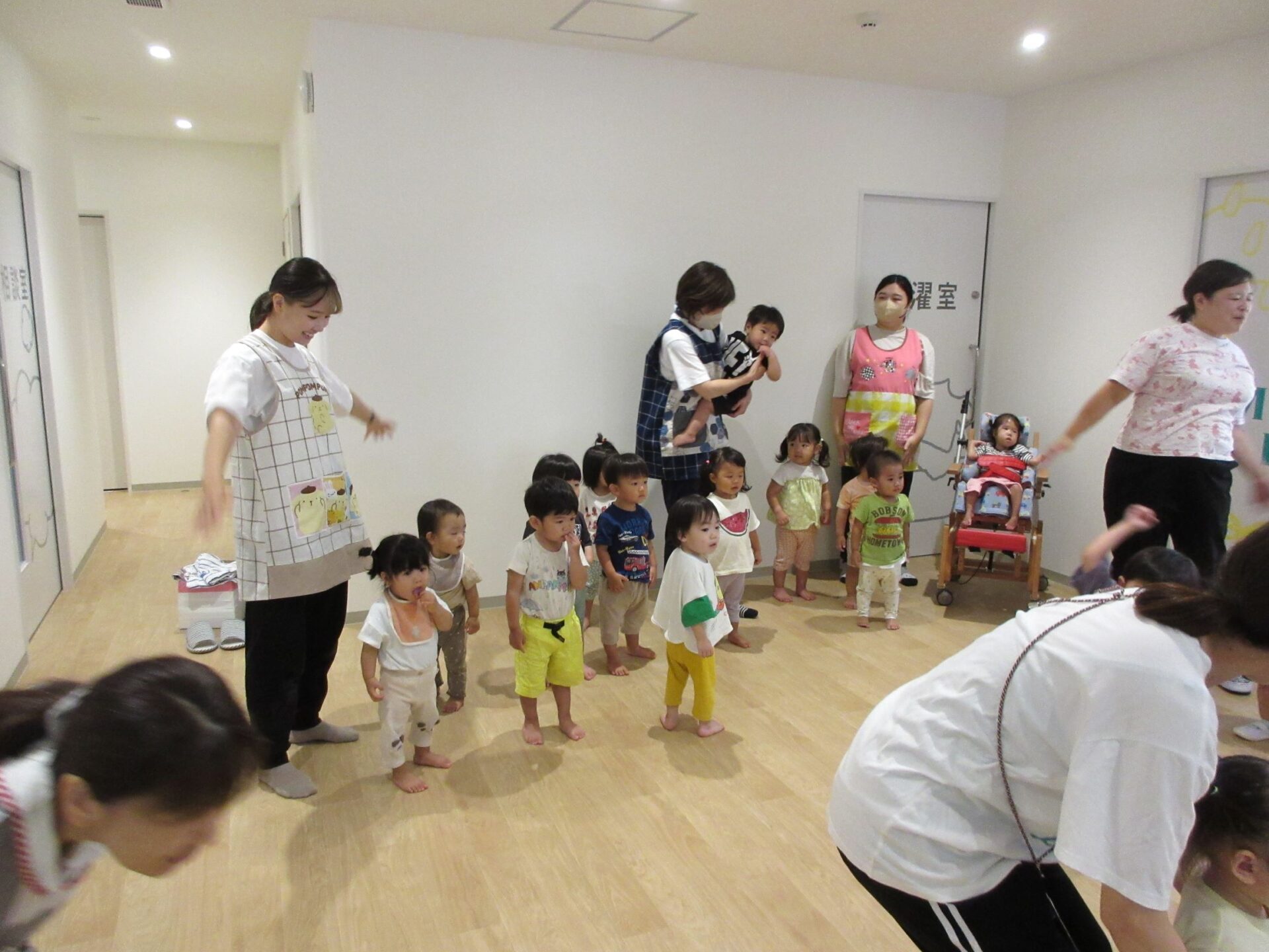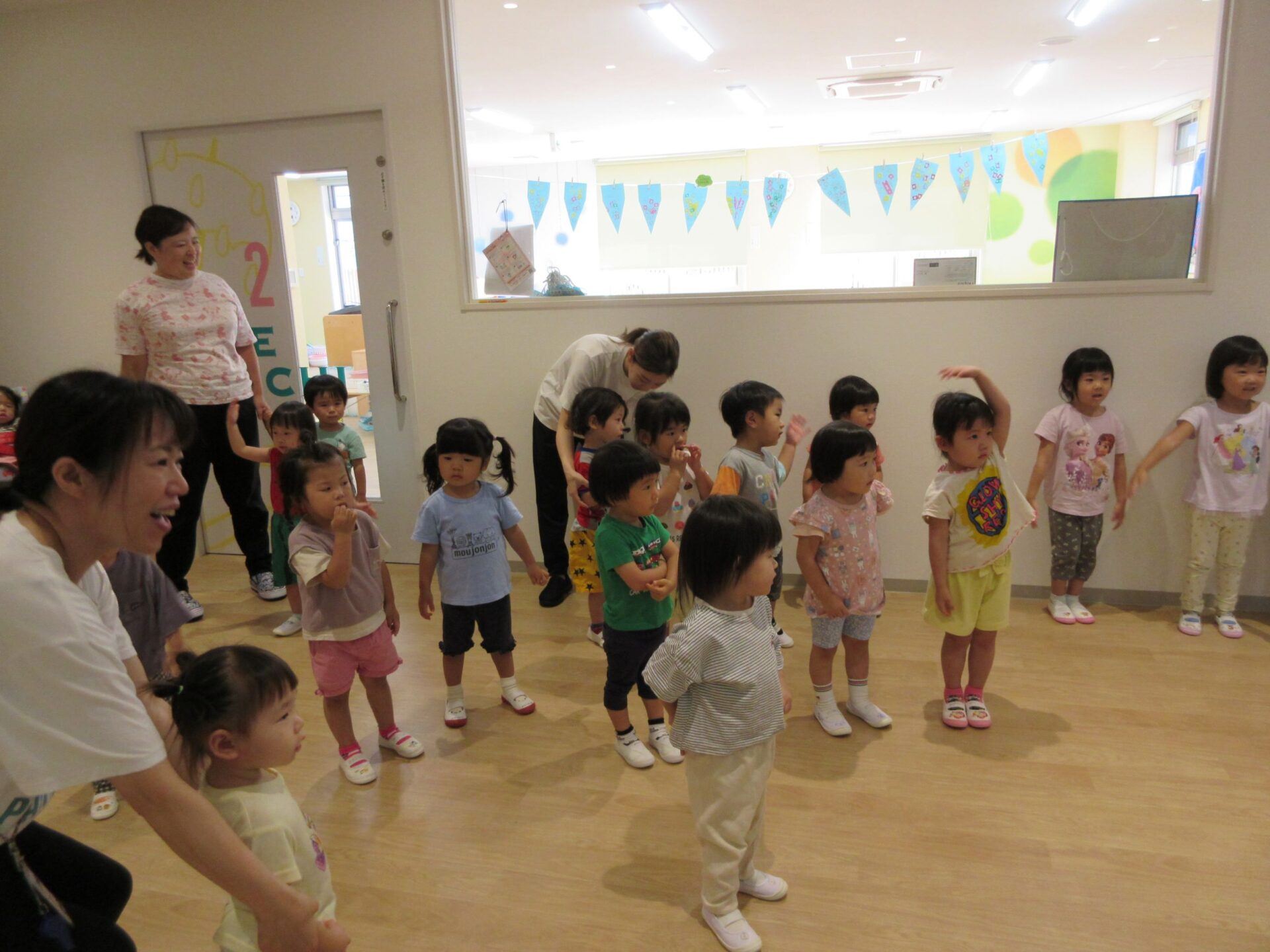 2023.09.05 お知らせ ブログ 運動会の体操 9月1日、全クラスの園児が1階エントランスに集まり、運動会の体操の初めての練習をしました。 はじめは先生からどんな体操なのかを見せてもらいました。 「〇〇〇」の音楽に合わせて、体を動かします。 どんな体操なのか、お楽しみに。 一覧へ戻る