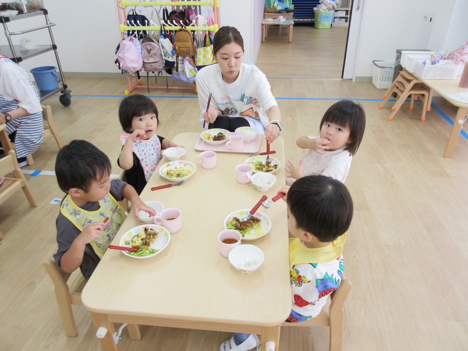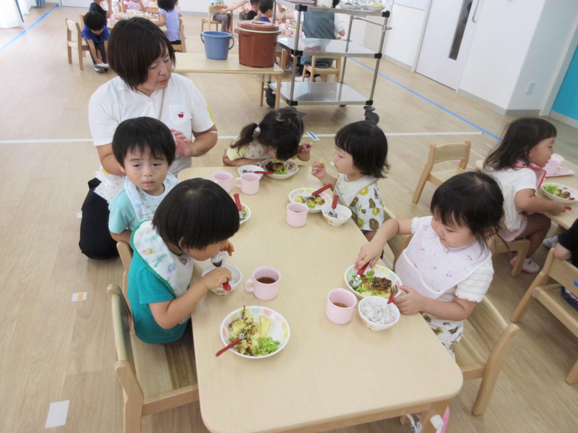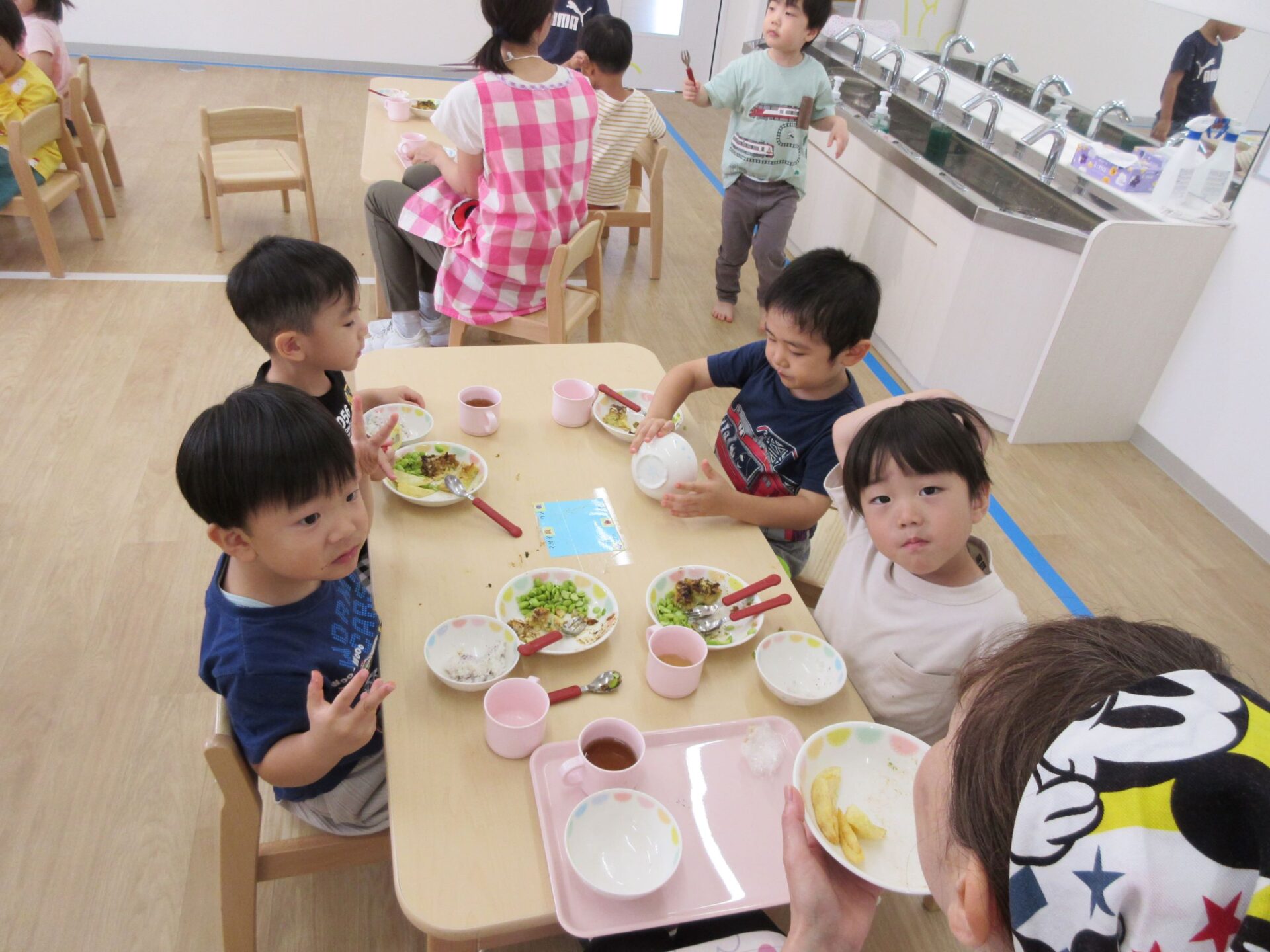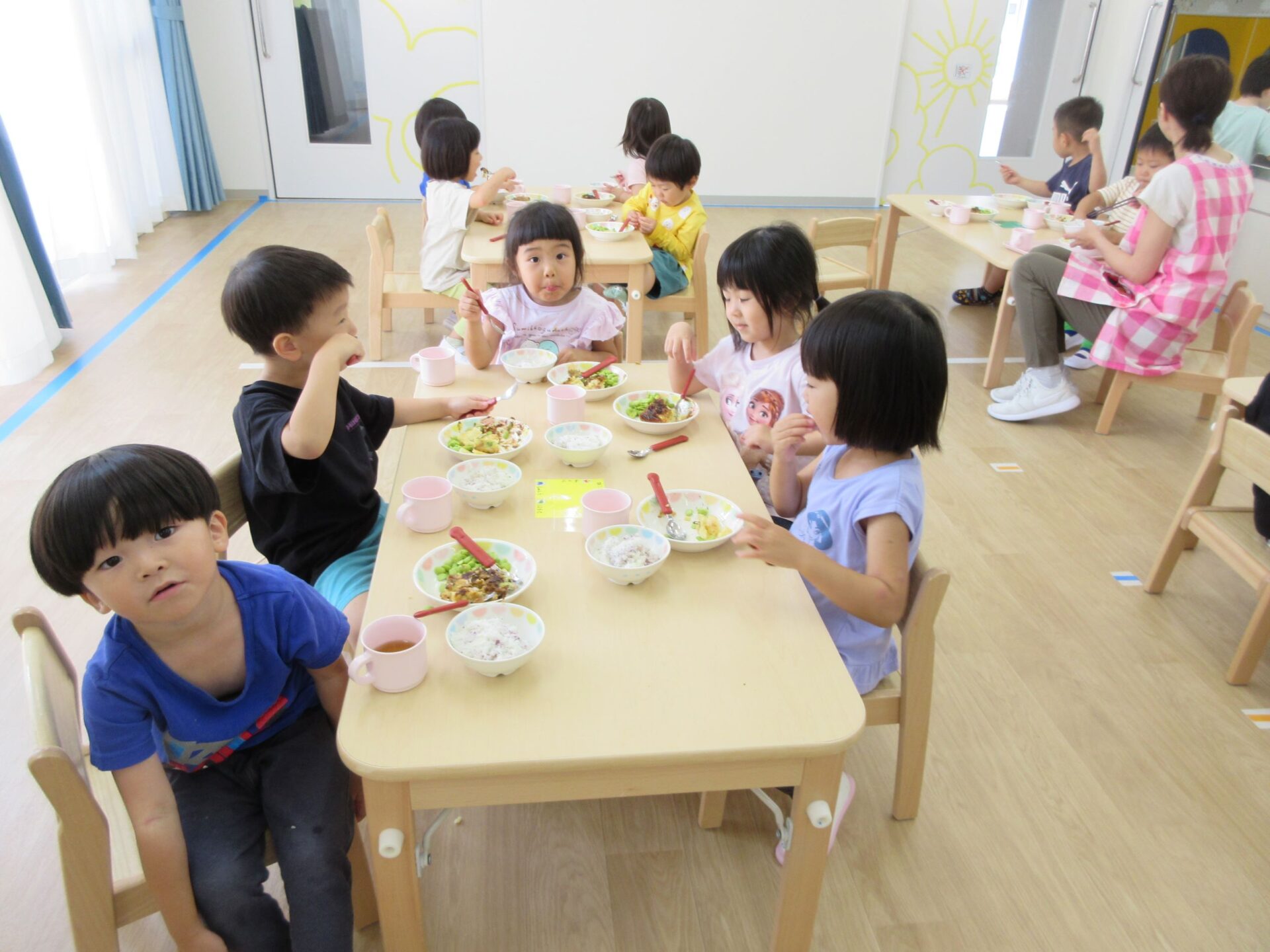 2023.09.19 お知らせ ブログ 郷土料理の日 9月19日、今日の給食は、郷土料理の日。今月は、大阪です。 2階のランチルームでは、2歳あめ組と3歳にじ組が食べています。大阪の食べ物といえば‥。 たこ焼き? いえ、今日は違います。 お好み焼きでした。 そして、八尾市では「八尾の枝豆」と有名です。 大阪では、お好み焼きは「おかず」(副食)です。 献立は、ゆかりご飯、お好み焼き、枝豆、フライドポテト。 一覧へ戻る
