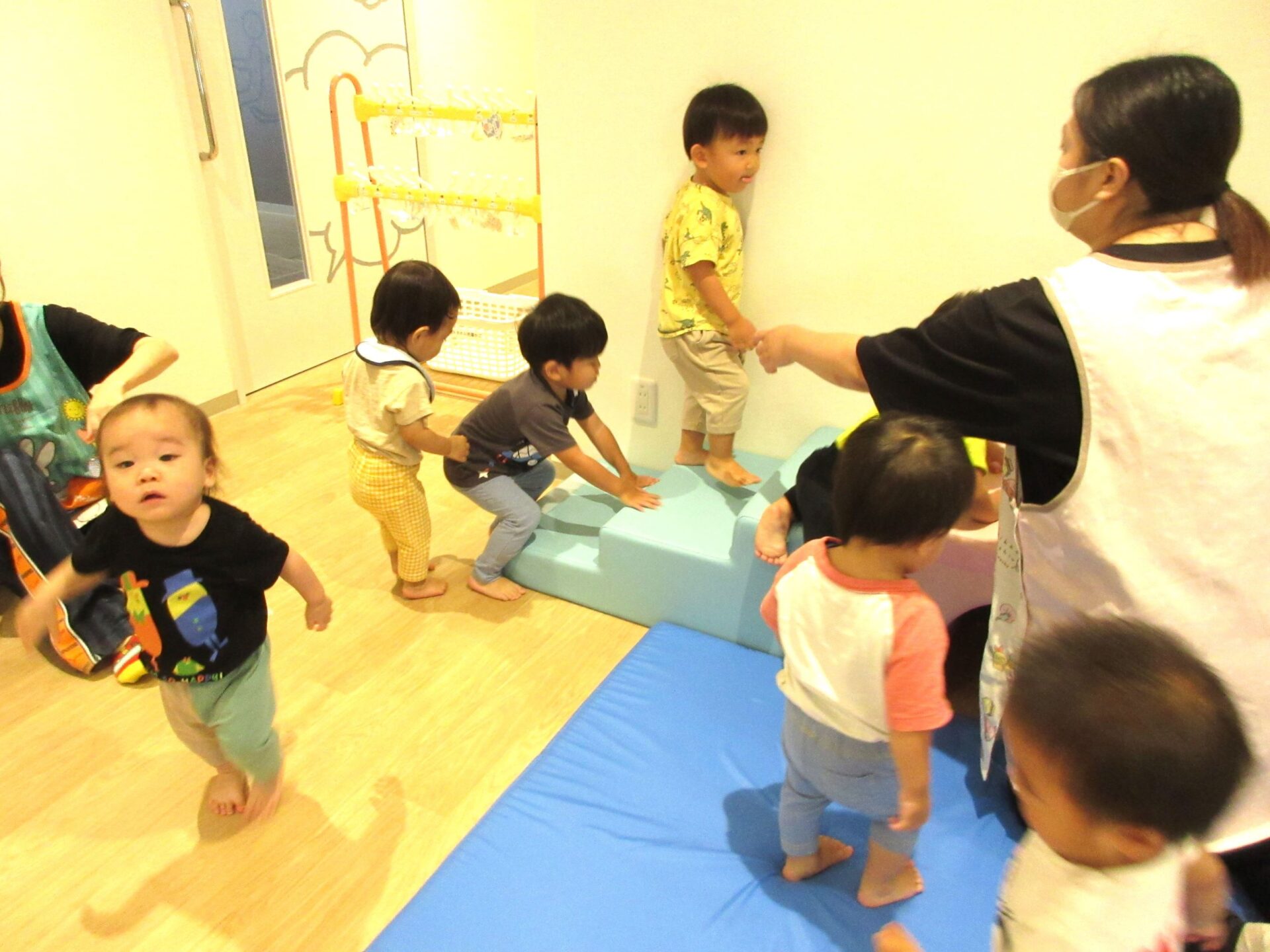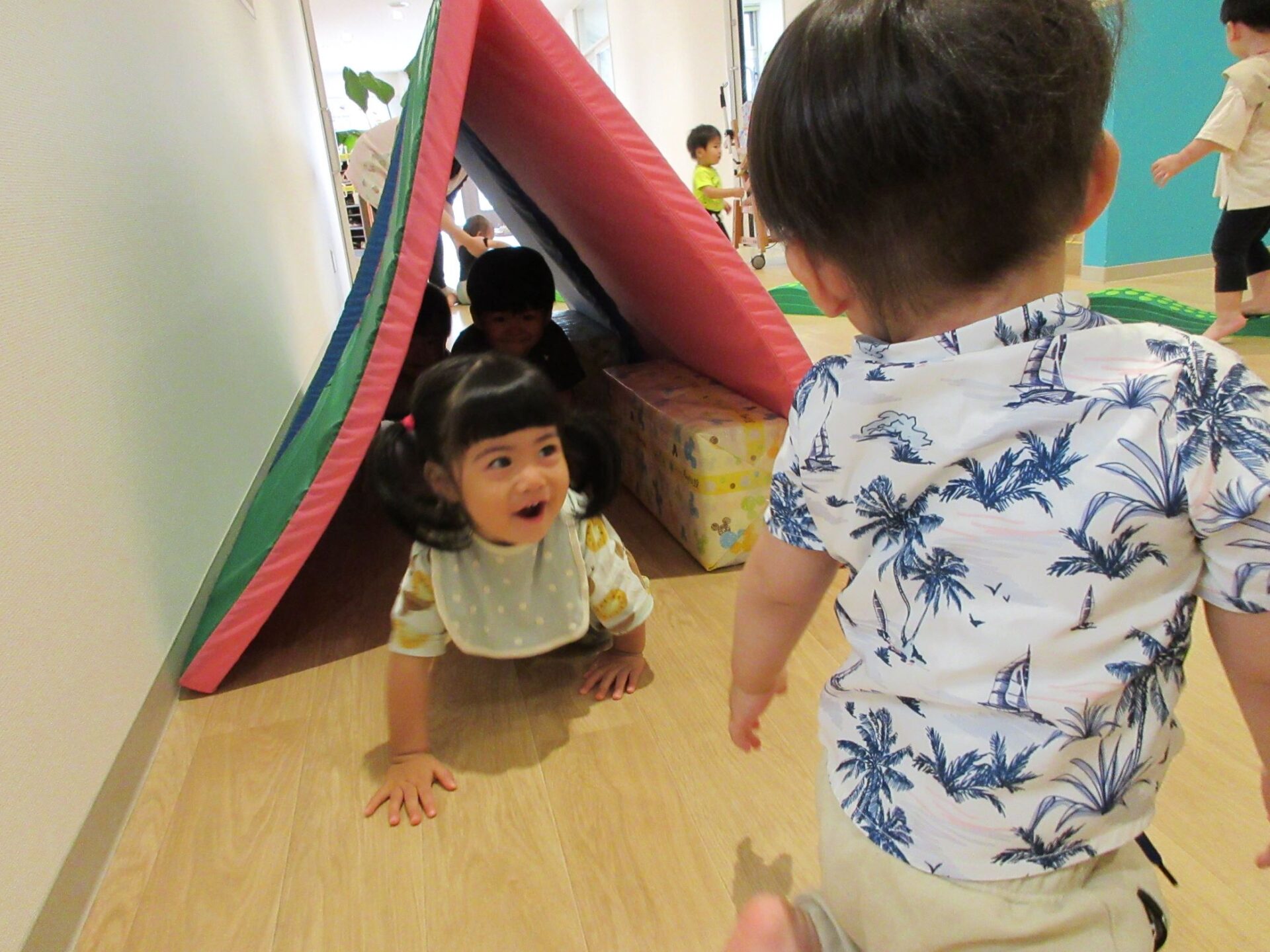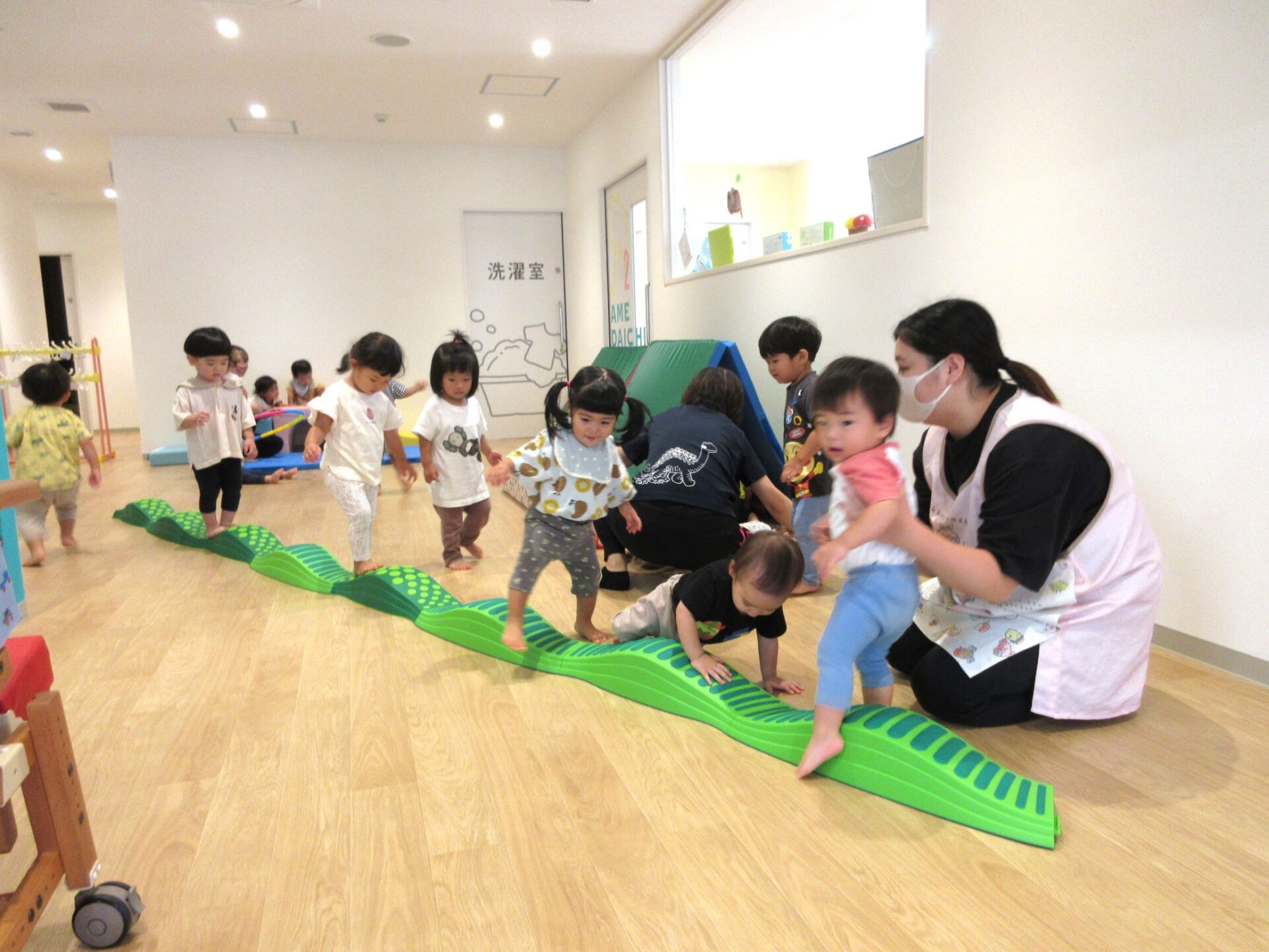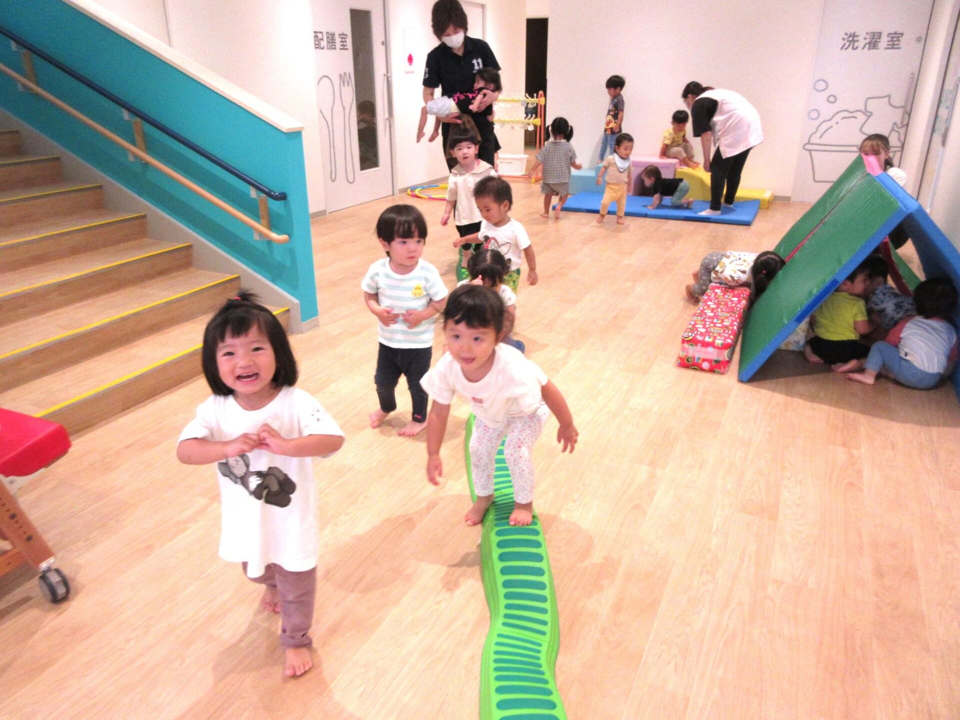 2023.09.22 お知らせ ブログ サーキット遊び 9月21日(木)、1歳だいち組は、1階エントランスで、サーキット遊びをしました。 1本橋(平均台)。 マットで作ったトンネル。 フープ。 ふわふわの階段と滑り台。 何度もぐるぐるまわって遊びました。 一覧へ戻る