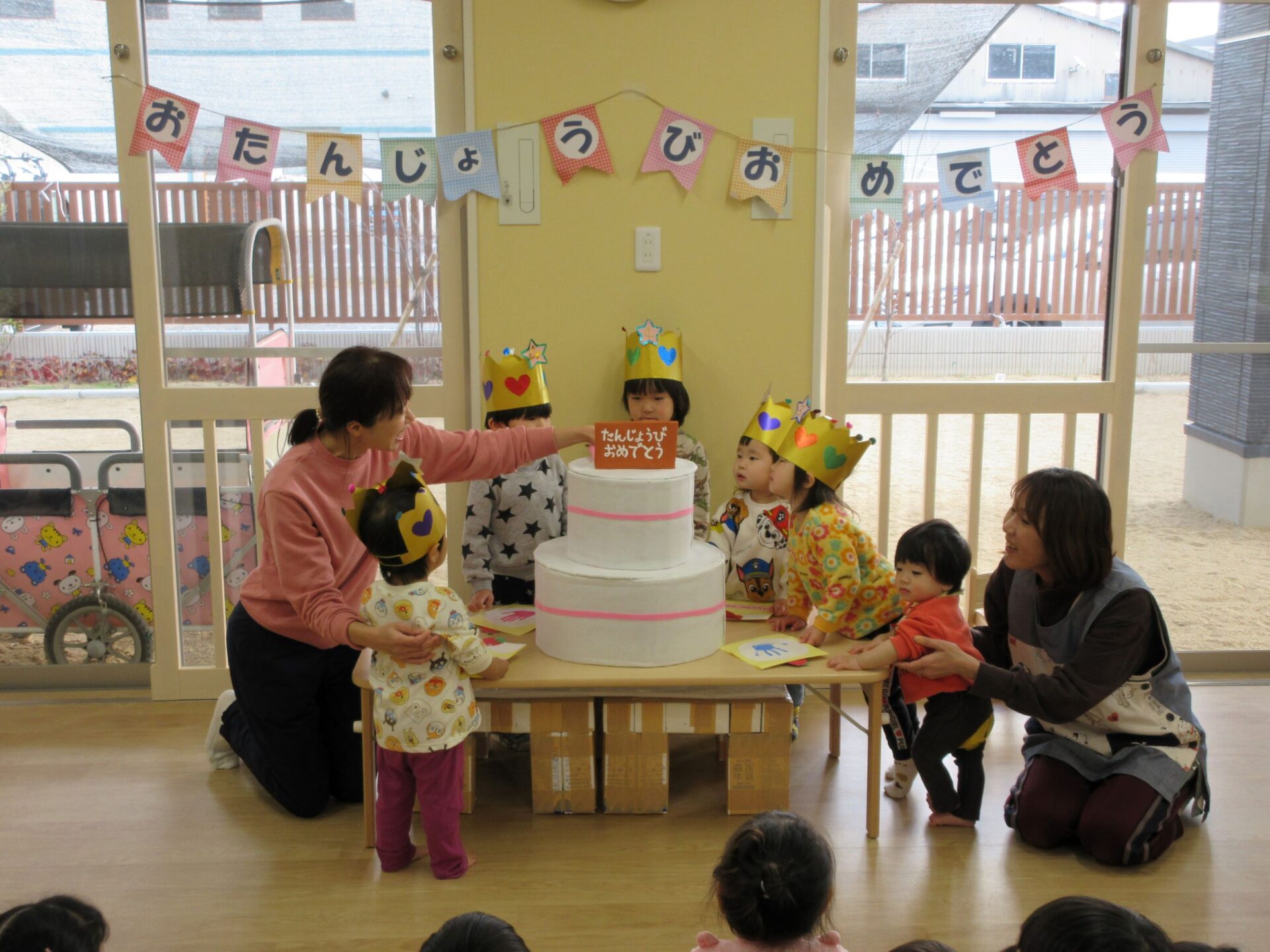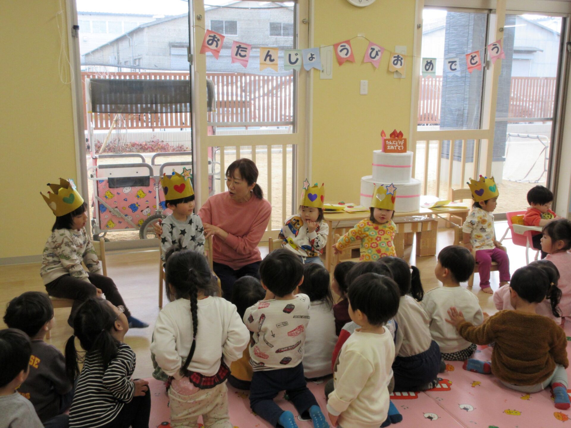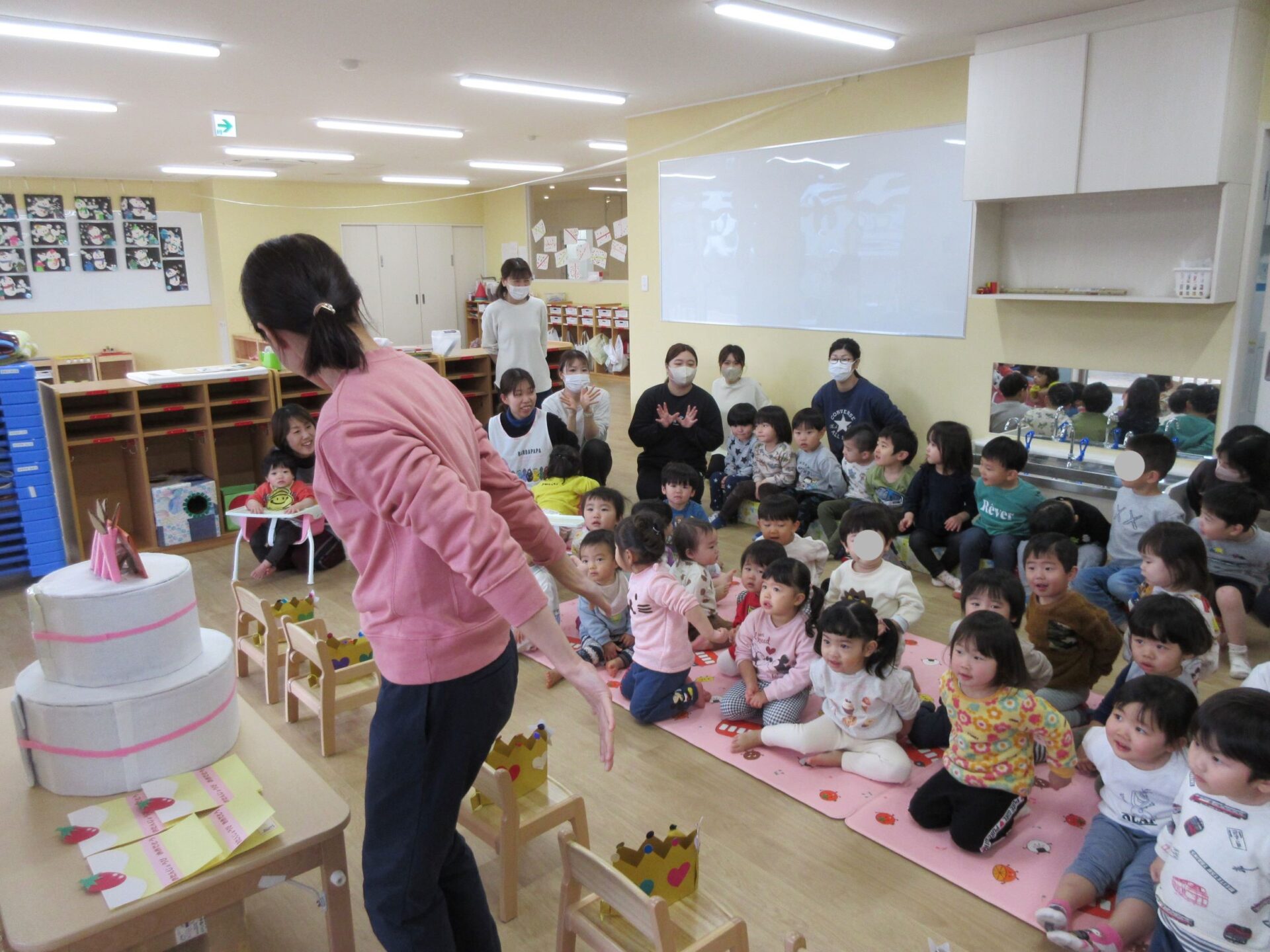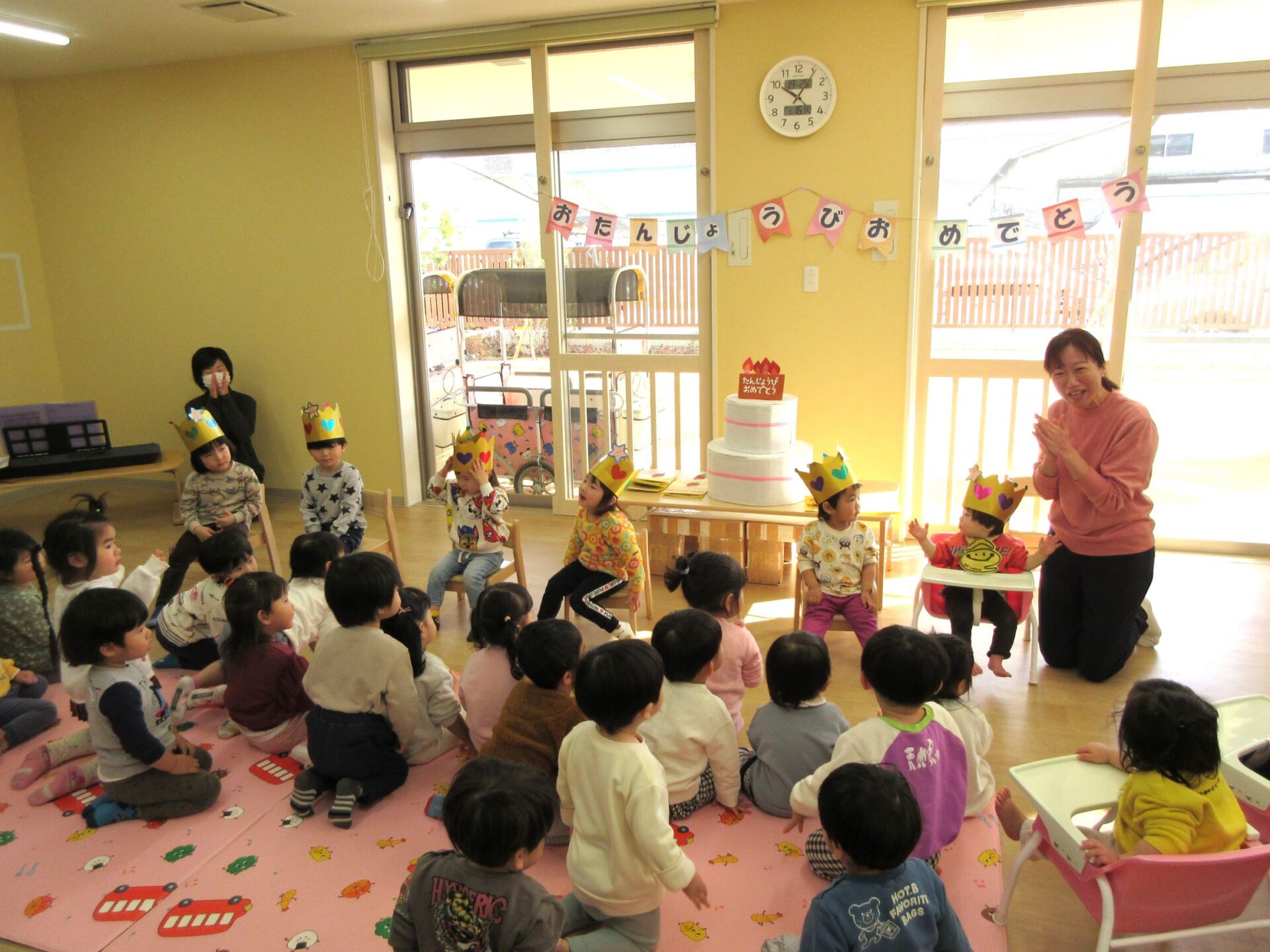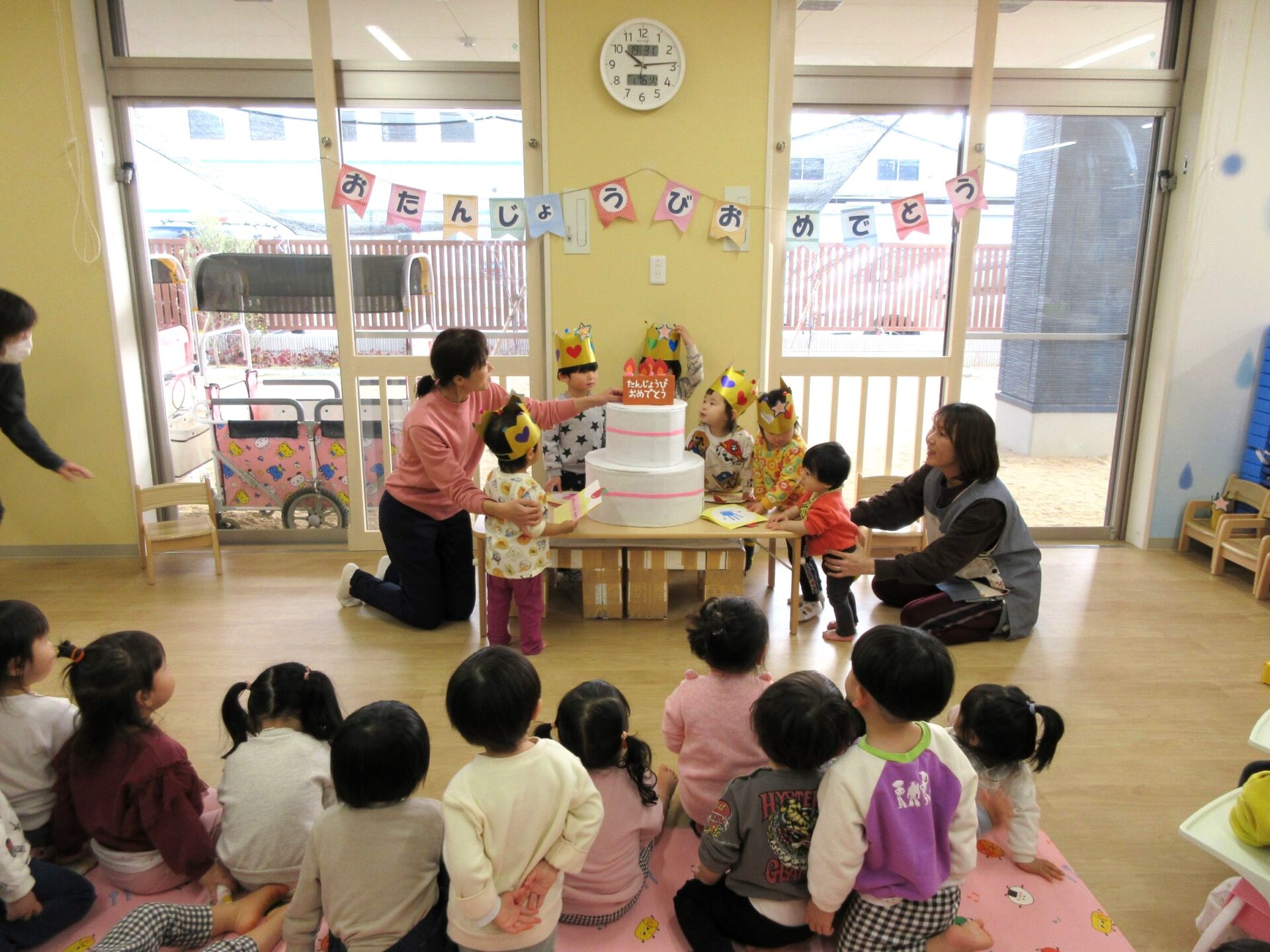 1月16日(火)10時より、1階だいち組の隣の部屋で、1月生まれの誕生会を行いました。