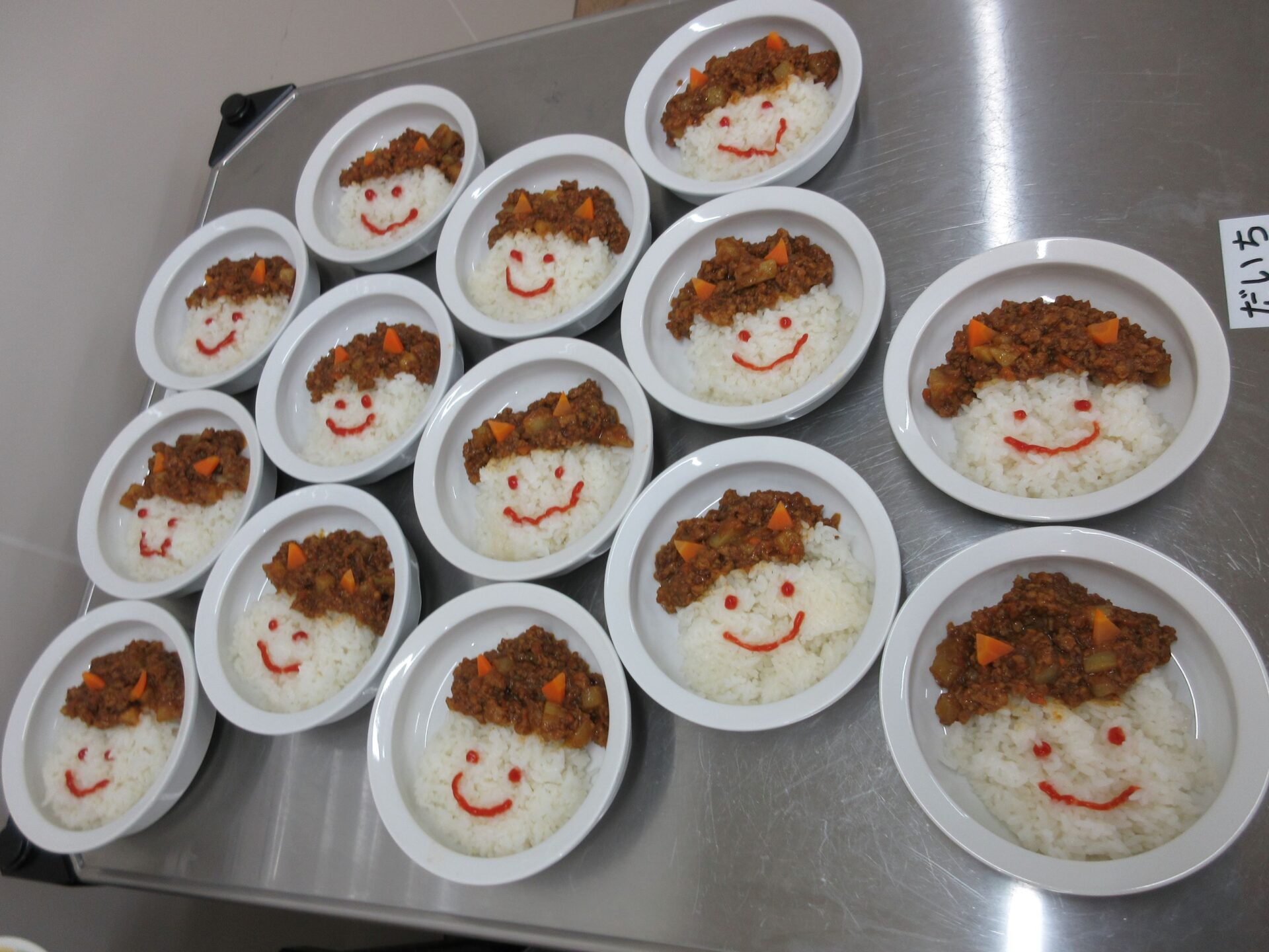 そして、今日の給食は、鬼カレーでした。かわいくて、美味しかったです。