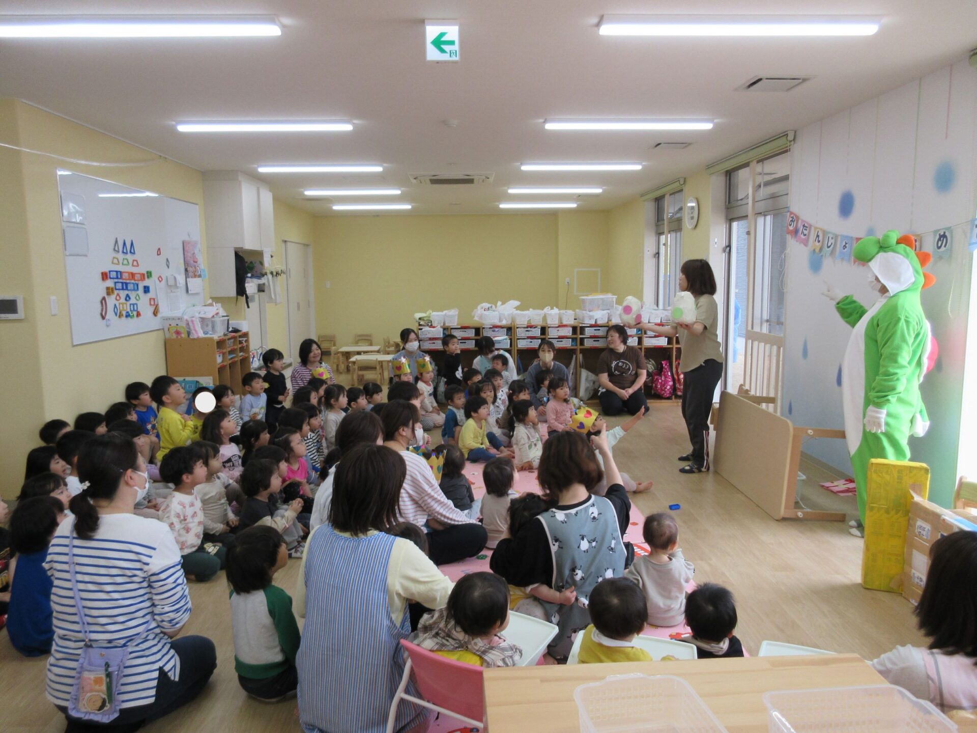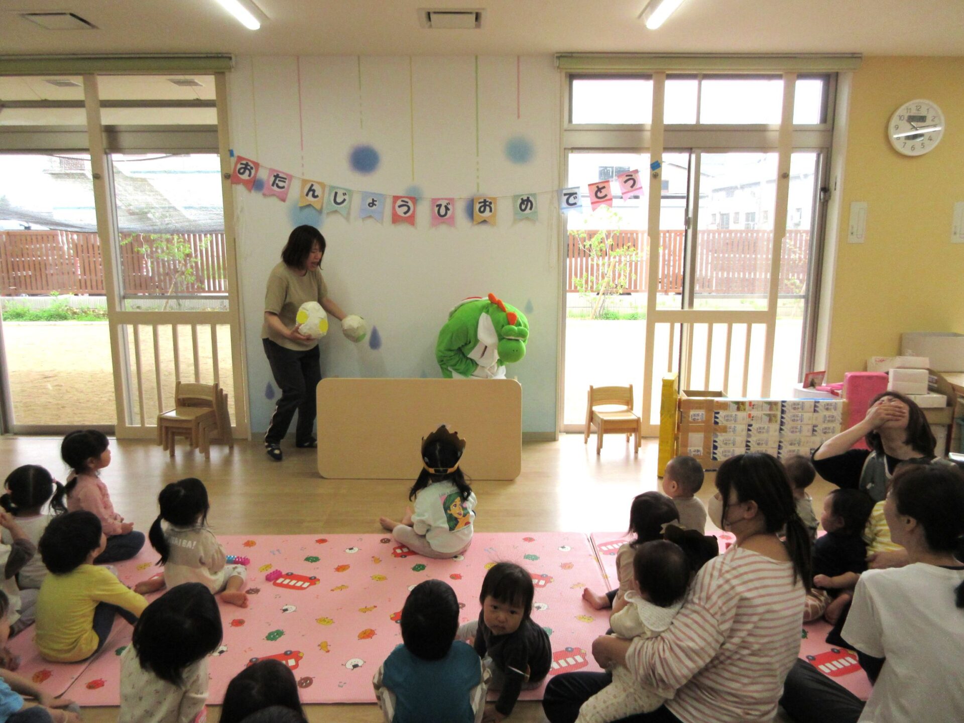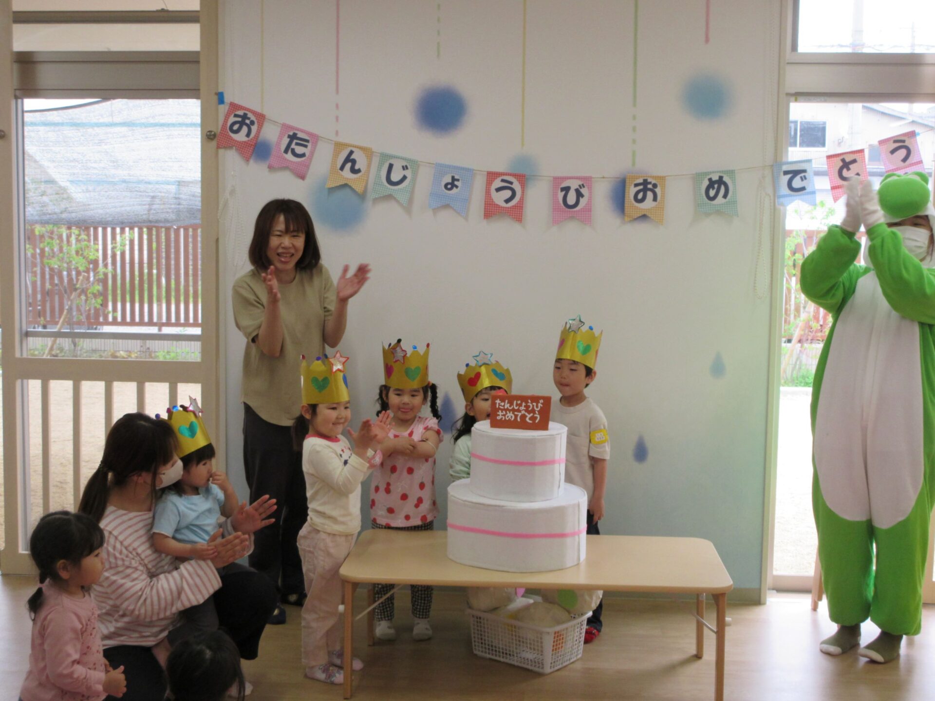お祝いの歌が終わった後、ヨッシーがお祝いに駆け付けて来てくれました。