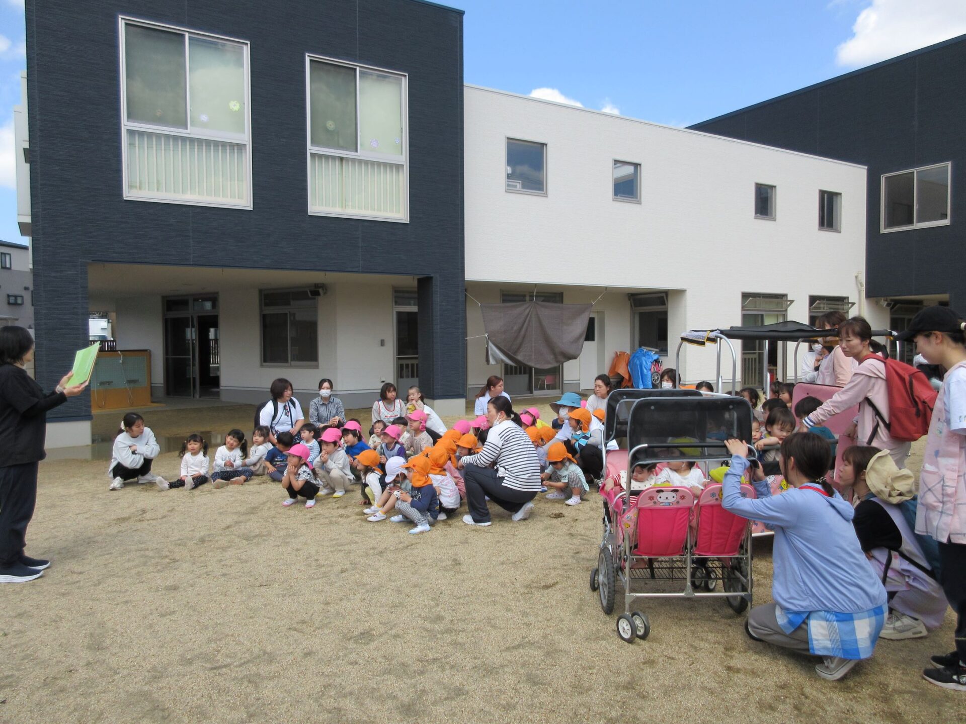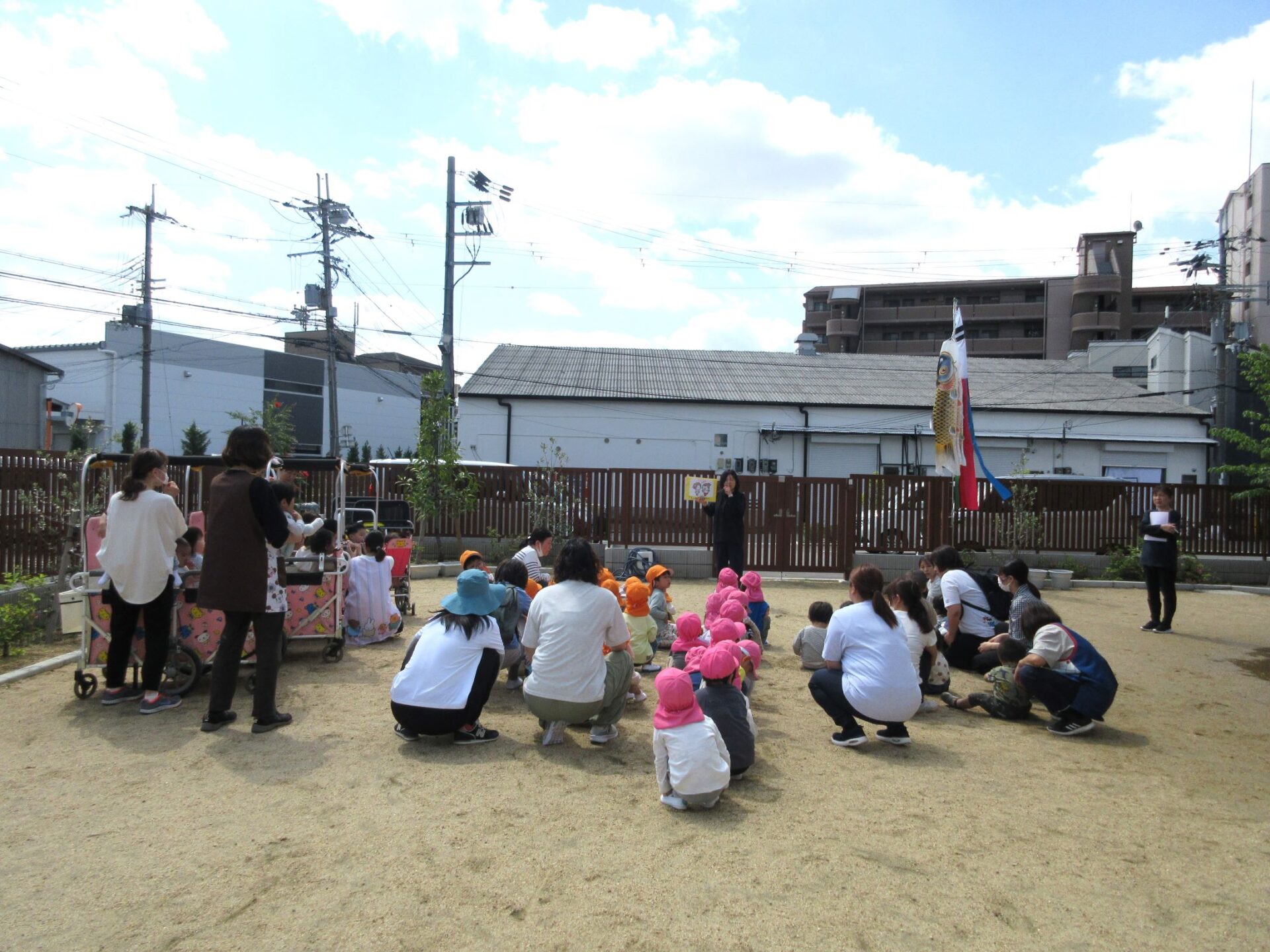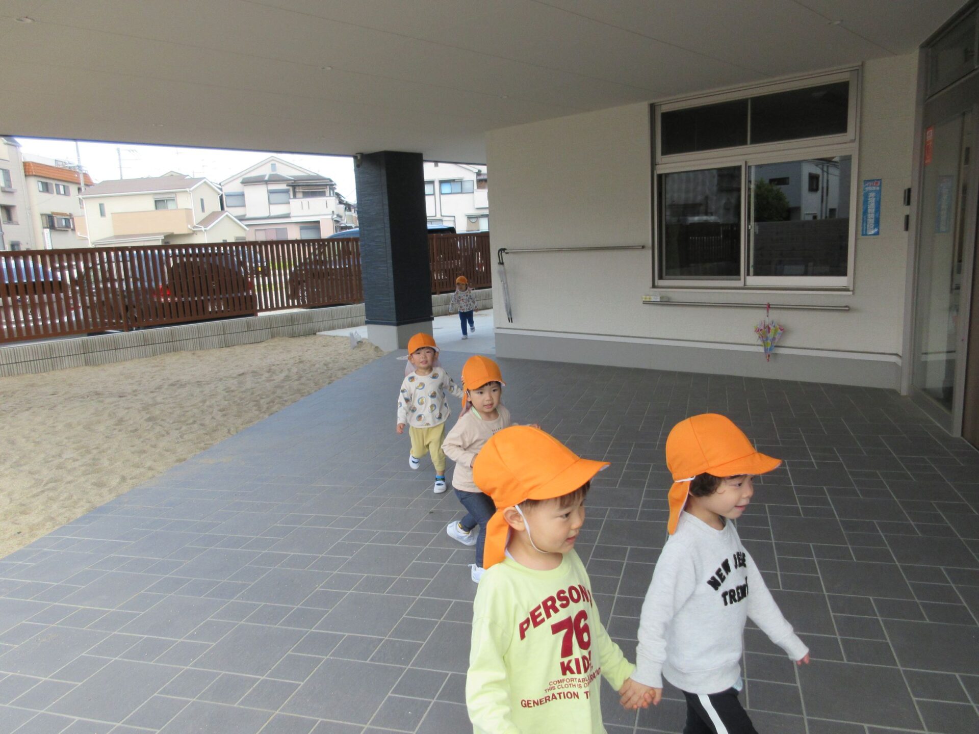 0歳うみ組、1歳だいち組、2歳あめ組は、1階保育室の園庭側の窓から避難しました。