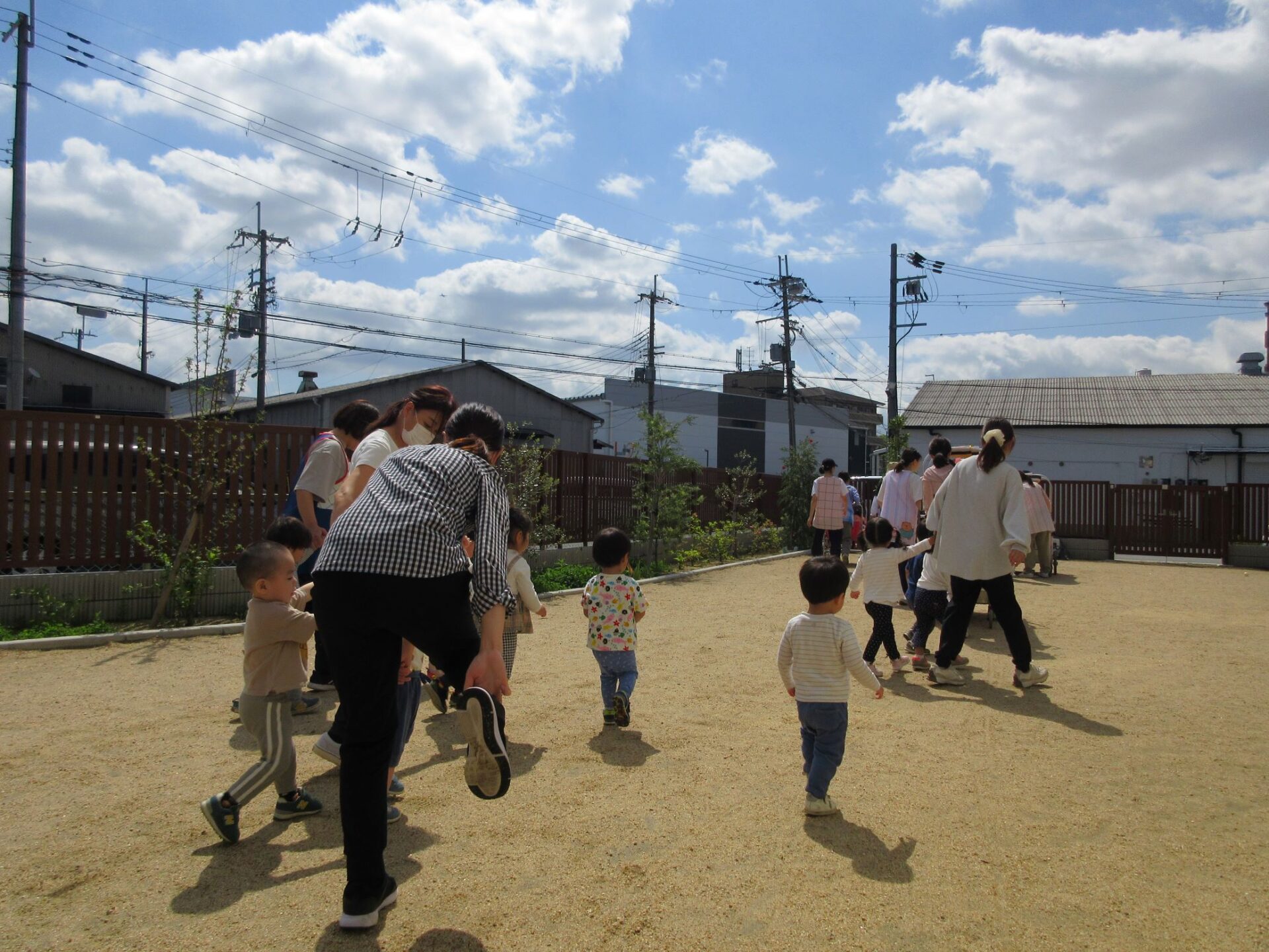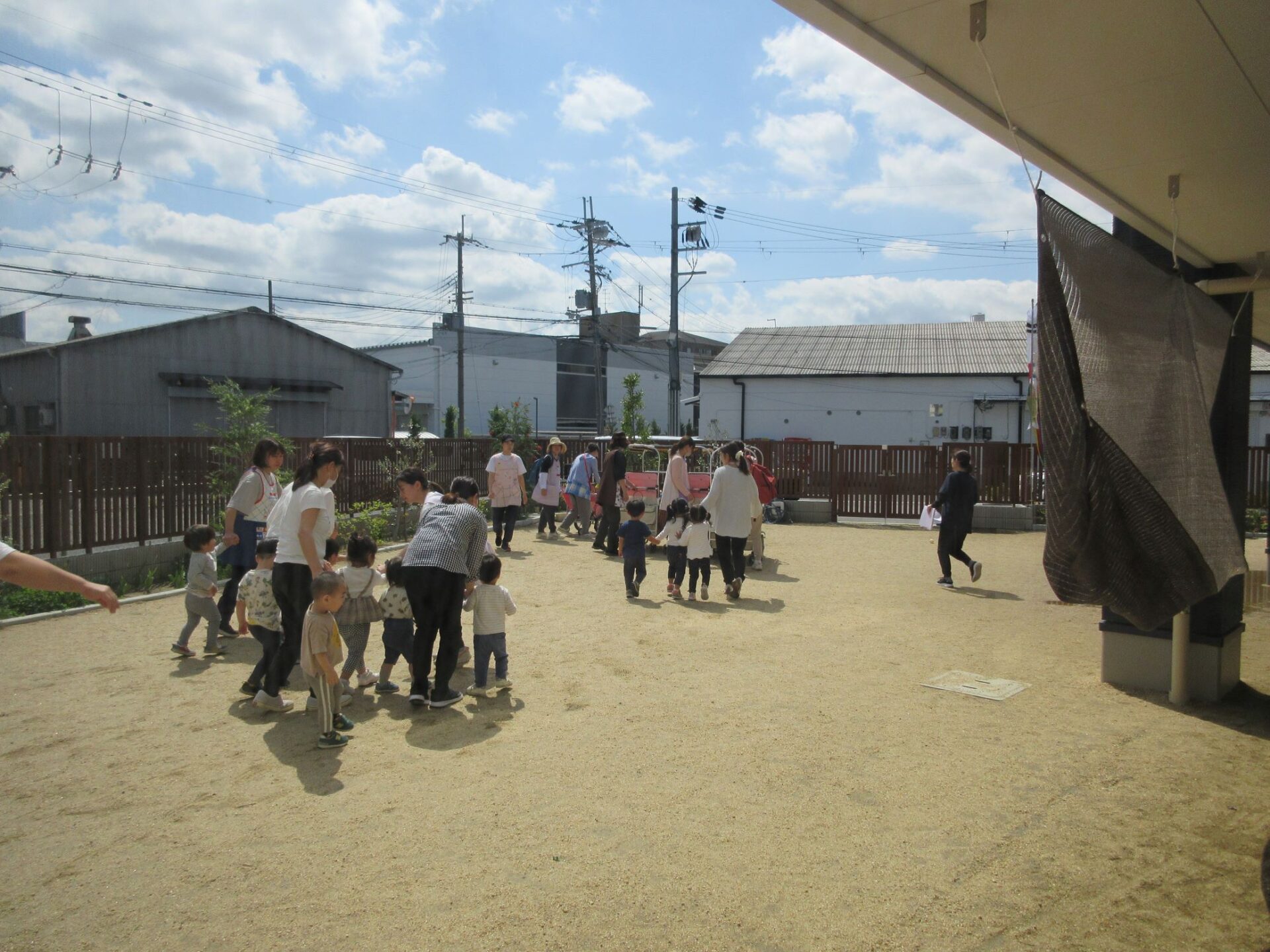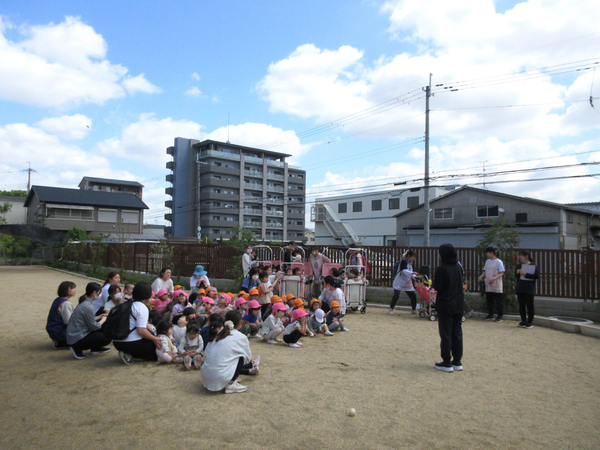 0歳うみ組、1歳だいち組、2歳あめ組は、1階保育室の園庭側の窓から避難しました。