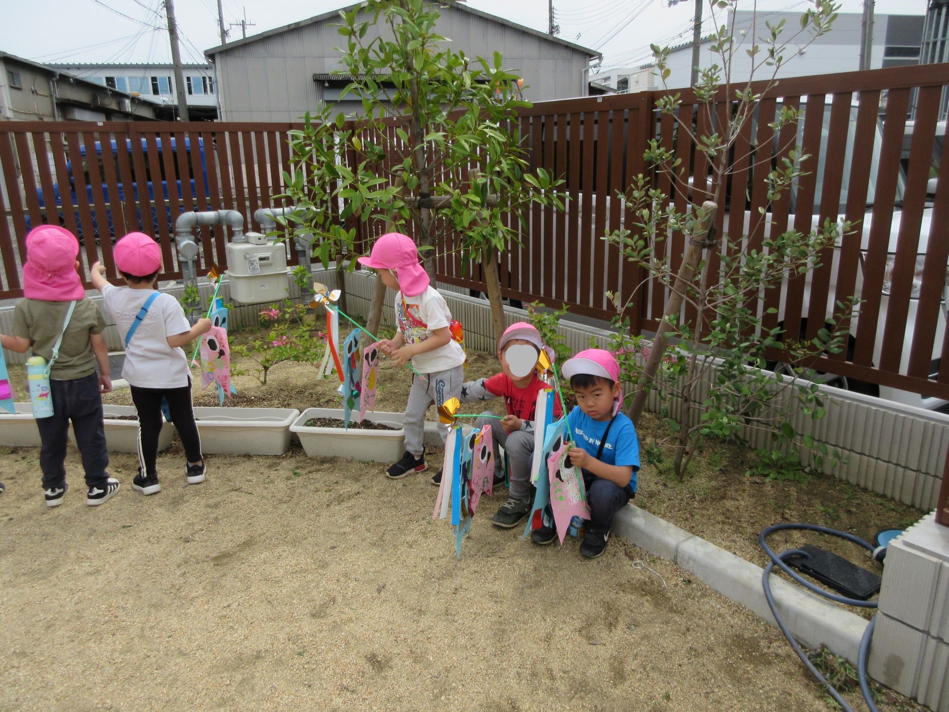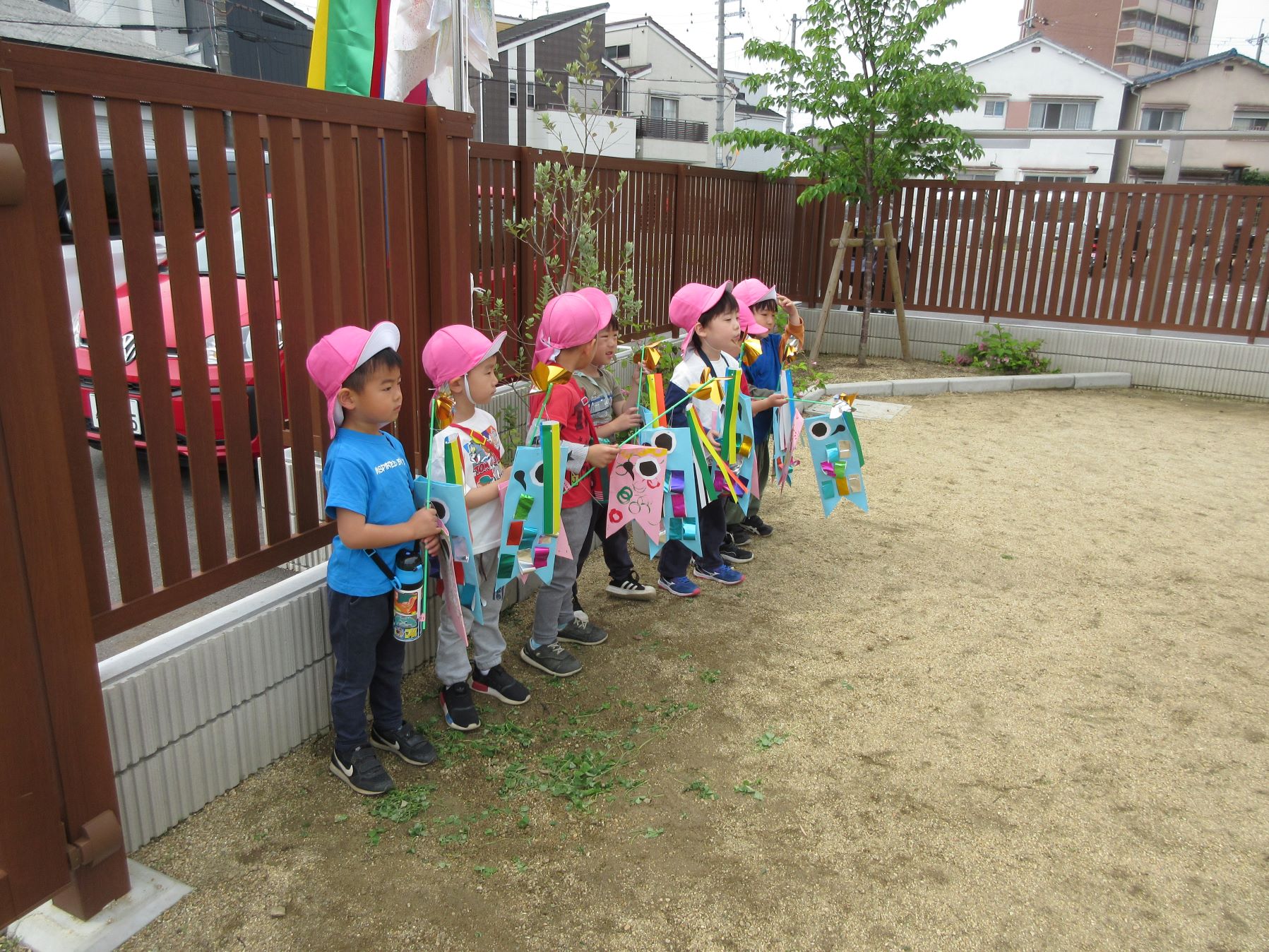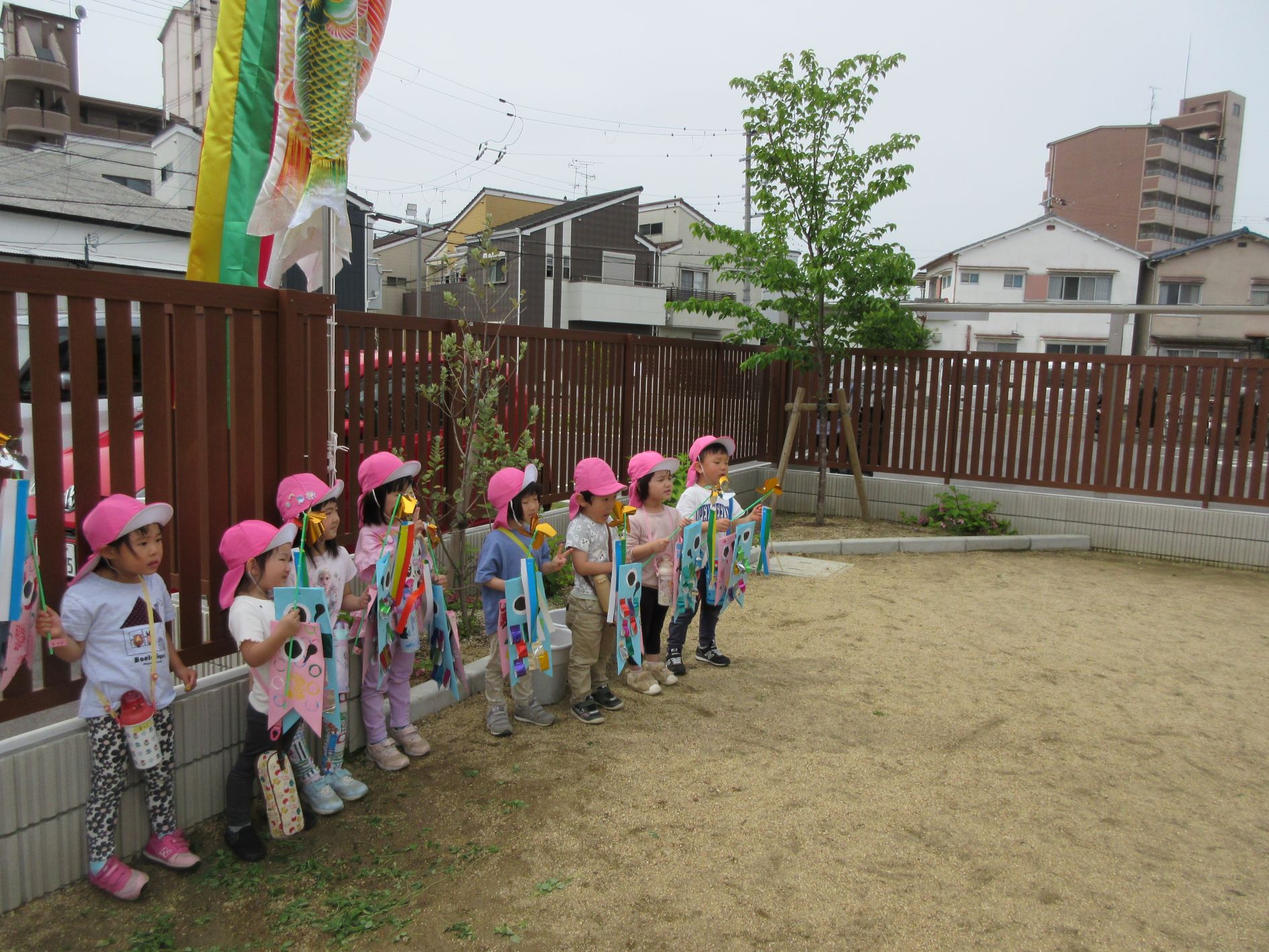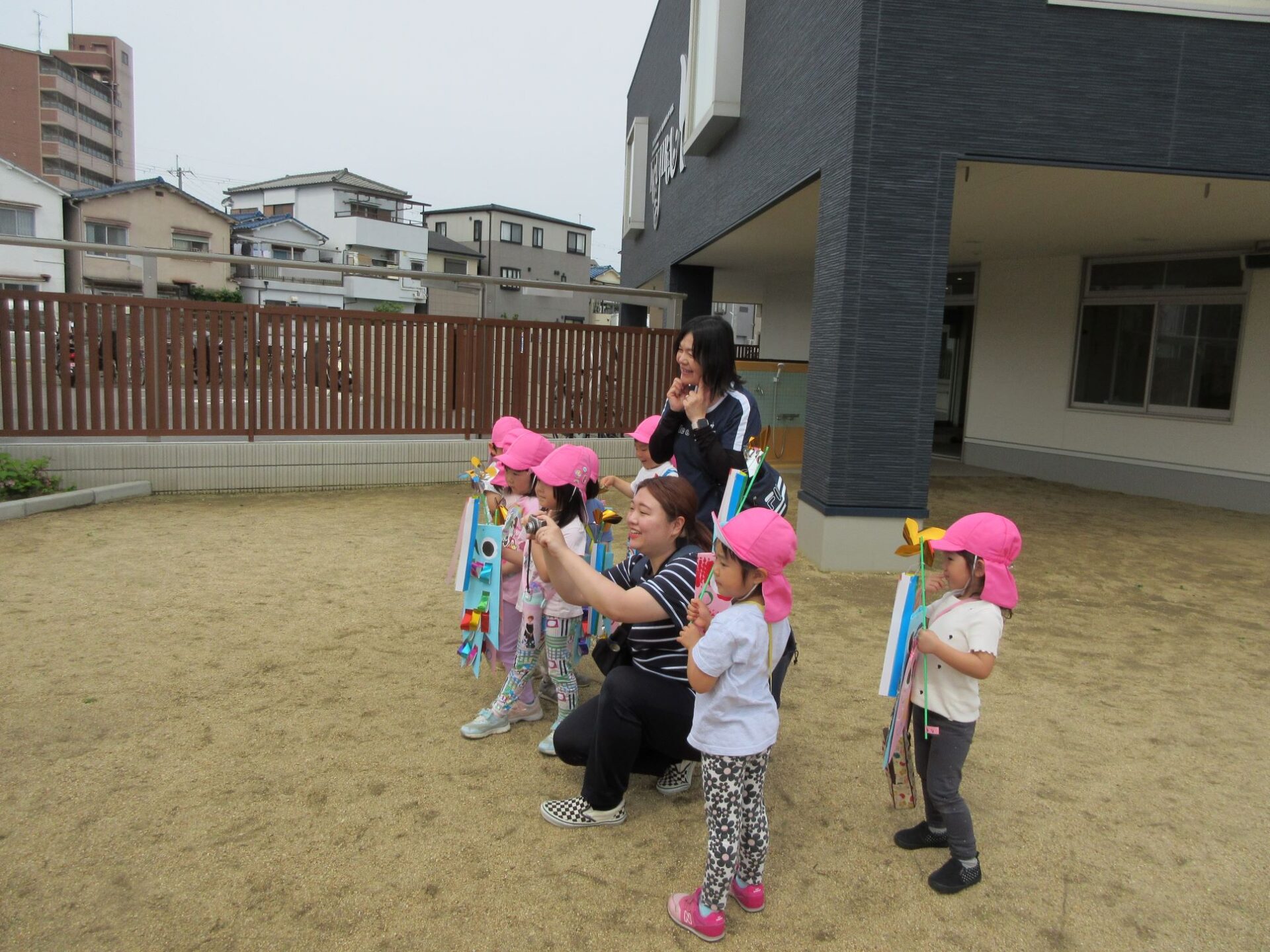 2024.05.07 お知らせ ブログ お散歩前の記念撮影 4月26日(金)、4歳そら組は、自分たちが作ったこいのぼりを持って、園庭に集まりました。園のこいのぼりの下で、こいのぼりを持っての記念撮影でした。 2組に分けれて撮影しました。自分で作ったお気に入りのこいのぼりです。 担任の先生が、「こっちだよ。こっち向いて。」って、声をかけています。 子どもたちも一緒に、見守っています。 そして、交代しました。 終わった組です。 記念写真のあとは、公園への散歩へ出発しました。 「いってらっしゃーい!」 一覧へ戻る