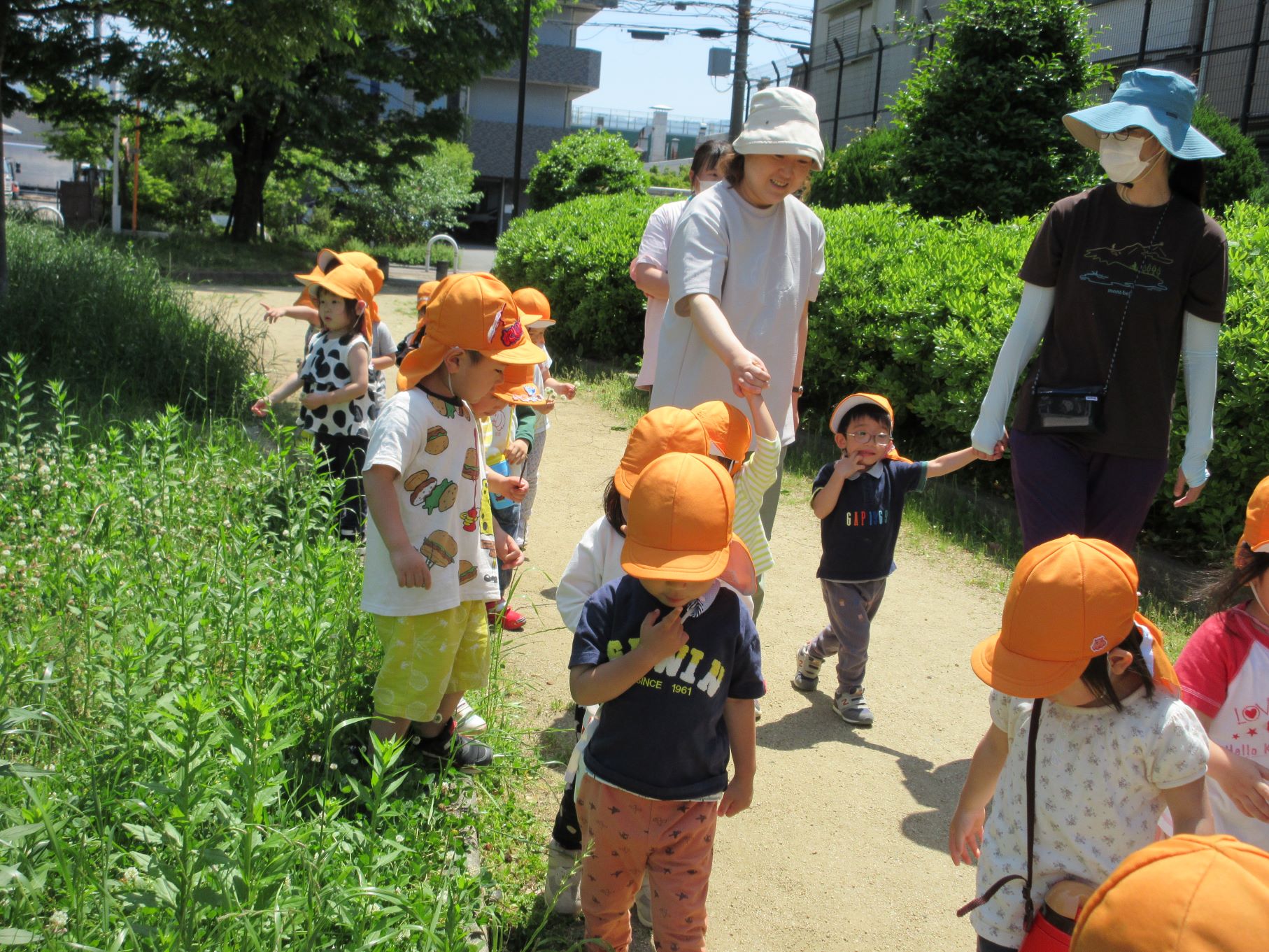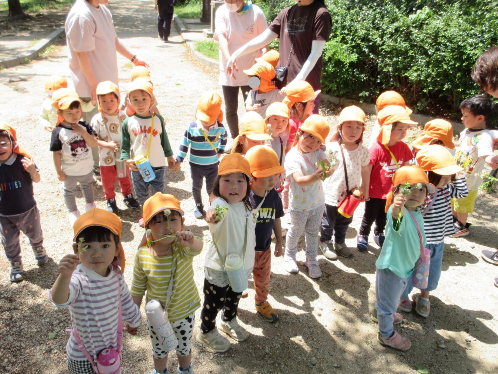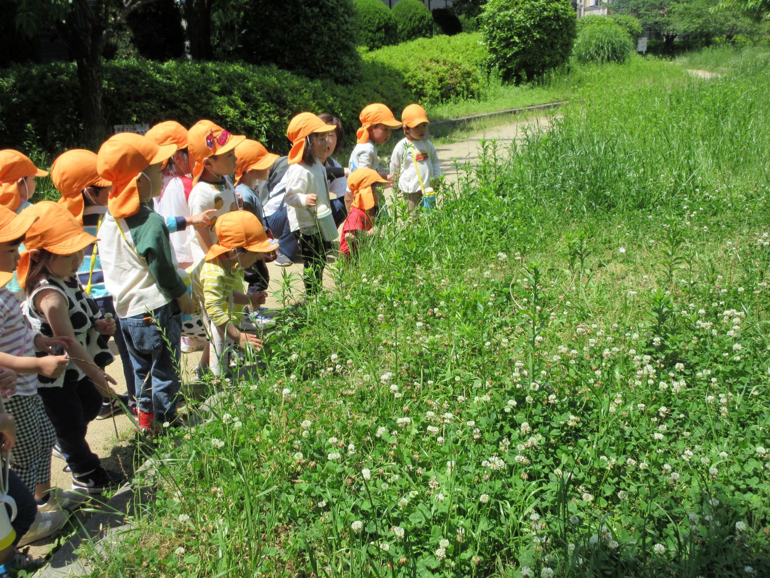 2024.05.21 お知らせ ブログ 美園公園に行ったよ(にじ組) 5月17日(金)、3歳にじ組は、美園公園へ散歩へ行きました。 とても気持ちのいいお天気でした。 暑くなってきたので、水分補給のため水筒を持ってきました。 いろいろな自然物に興味しんしんです。 シロツメクサがたくさん。 どんどん進みます。 摘みました。 「こんなの見つけたよ。」 一覧へ戻る