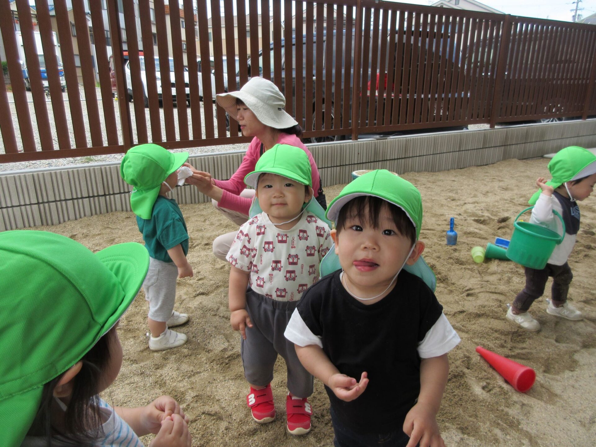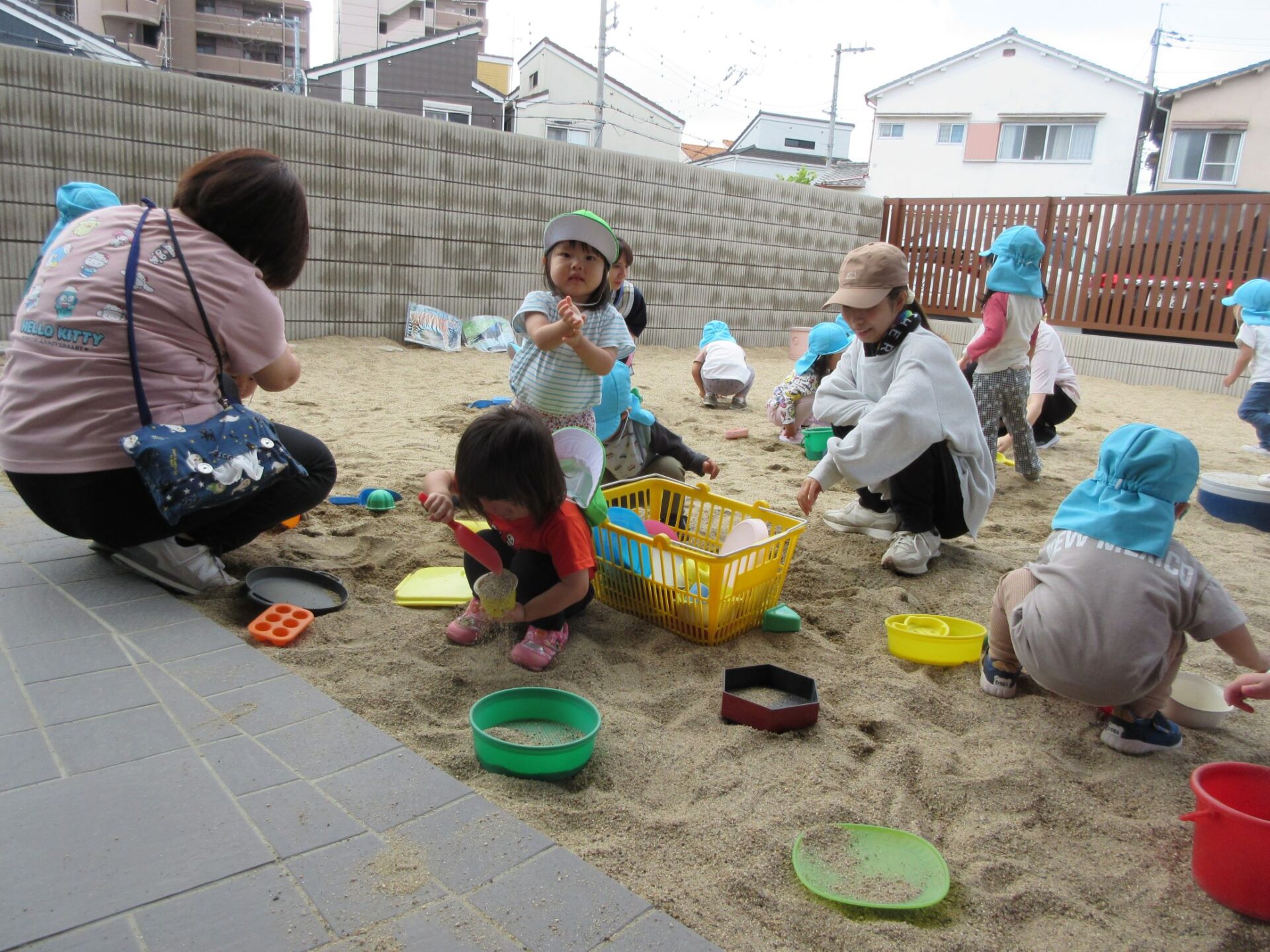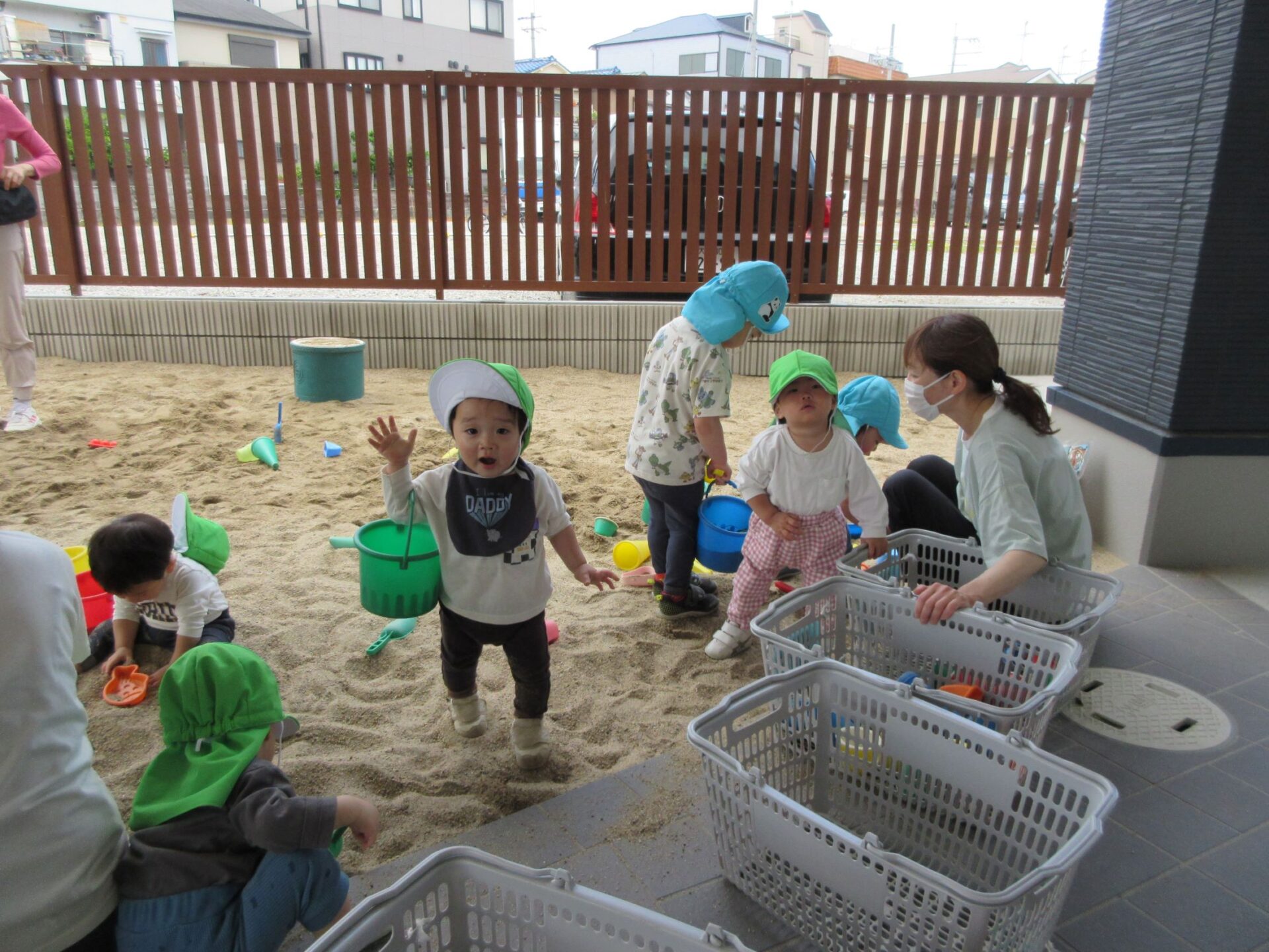 2024.05.22 お知らせ ブログ 砂場遊び(だいち組・あめ組) 5月20日(月)、1歳だいち組と2歳あめ組は、砂場で遊びました。 水色帽子はあめ組です。 葉っぱも少し見えています。何を作るのでしょうか。 黄緑色帽子は、だいち組です。 みんな、楽しく遊べましたか。 一覧へ戻る