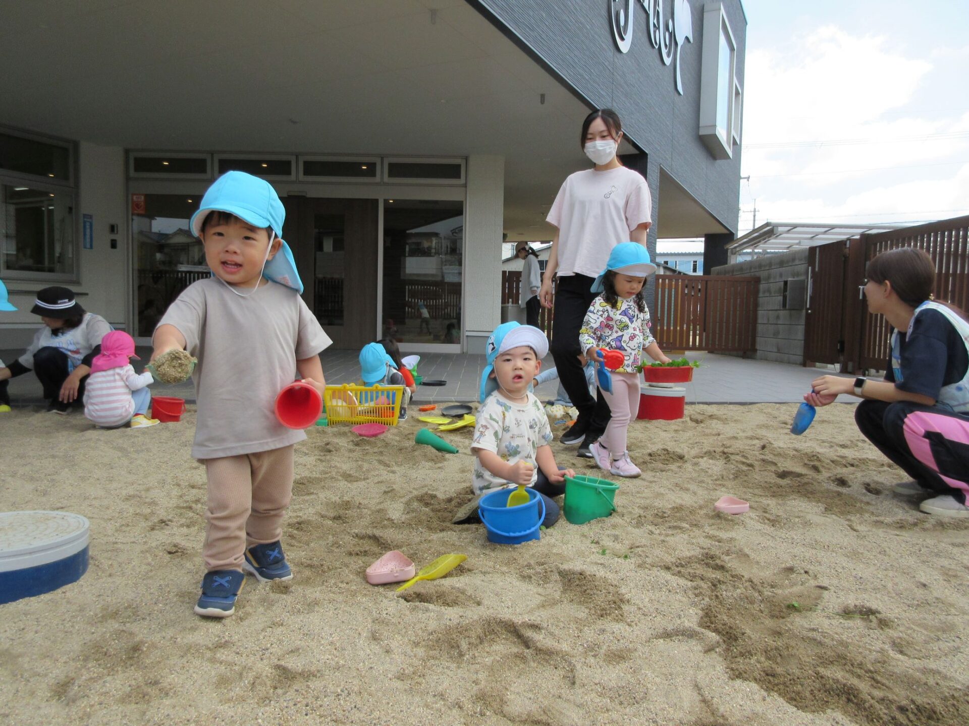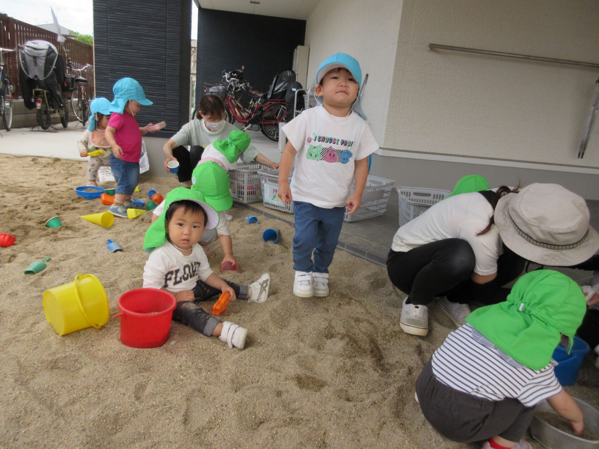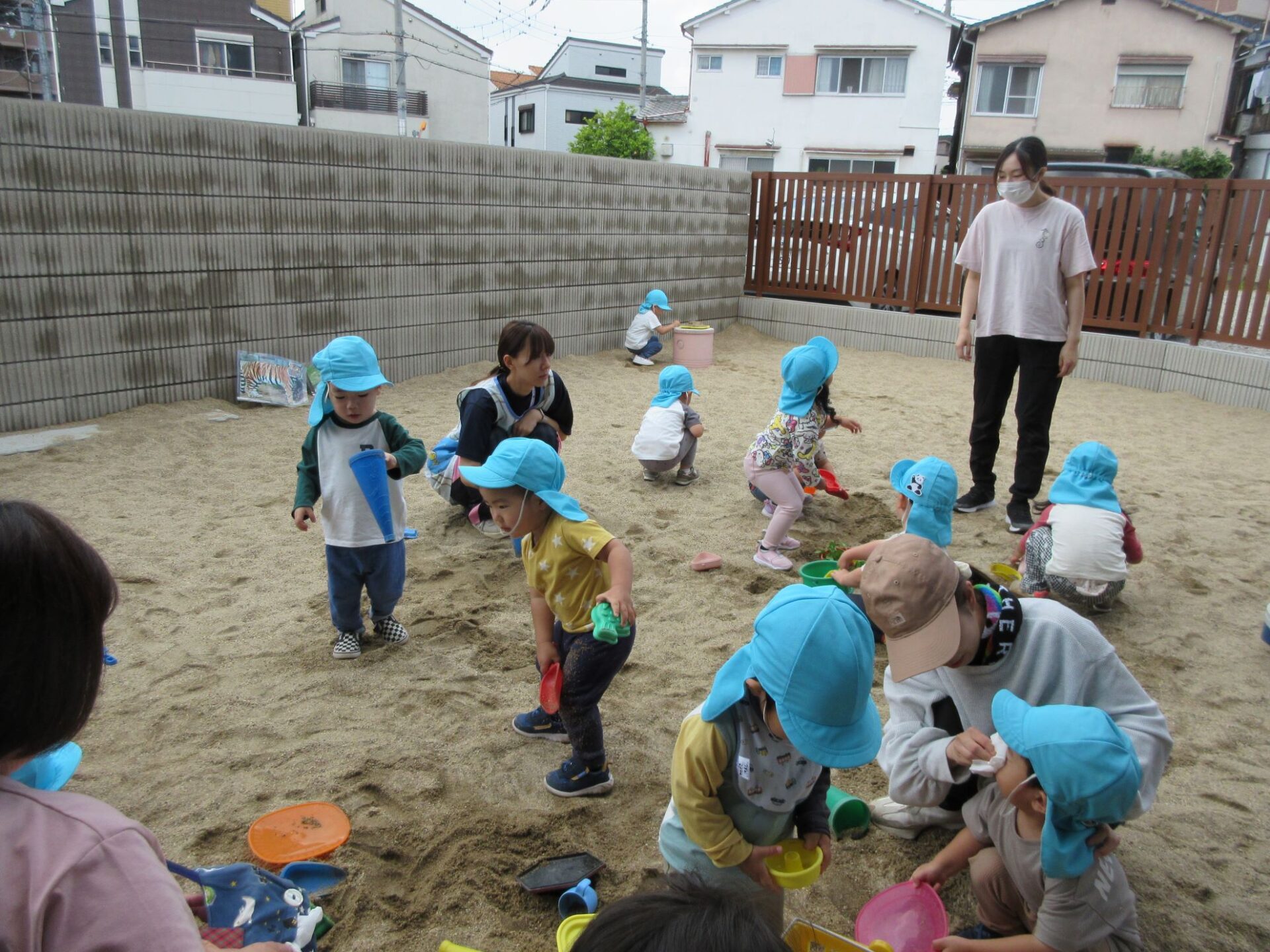 2024.05.22 お知らせ ブログ 砂場遊び(だいち組・あめ組) 5月20日(月)、1歳だいち組と2歳あめ組は、砂場で遊びました。 水色帽子はあめ組です。 葉っぱも少し見えています。何を作るのでしょうか。 黄緑色帽子は、だいち組です。 みんな、楽しく遊べましたか。 一覧へ戻る