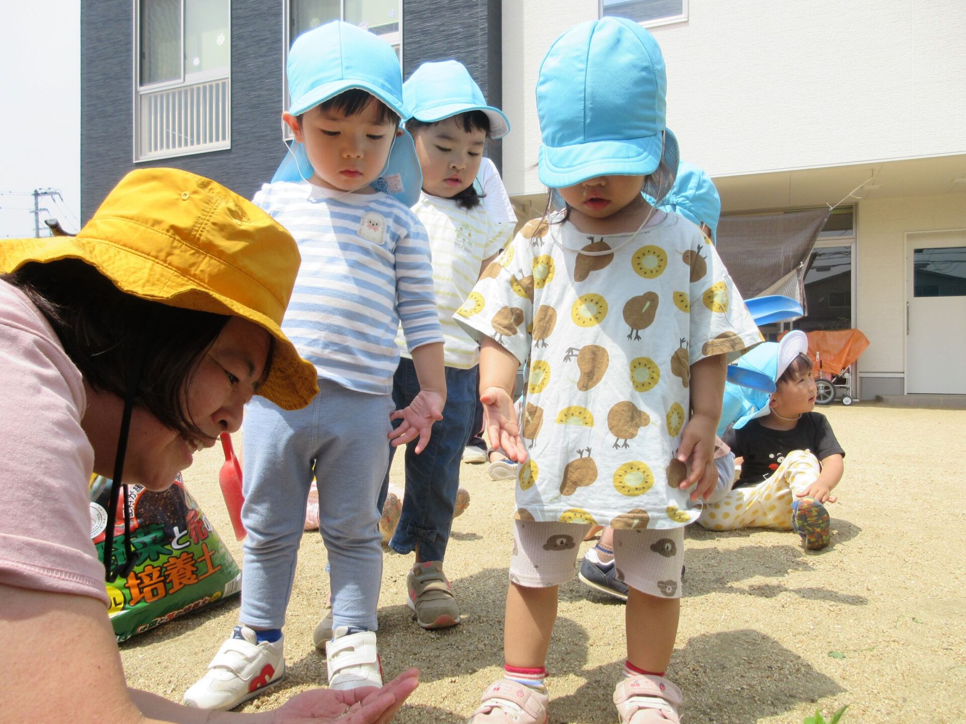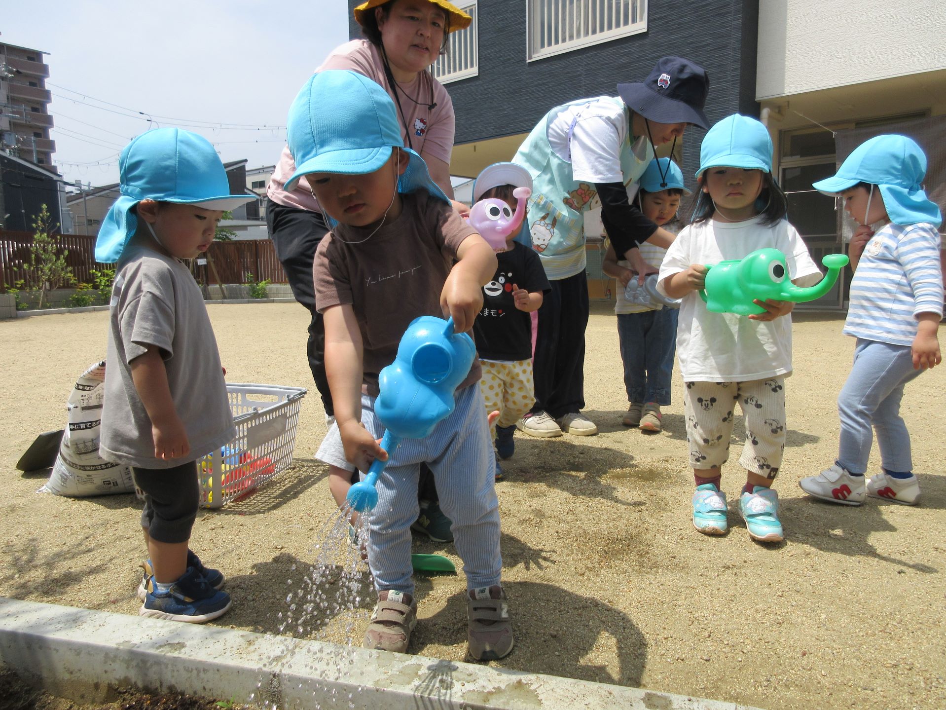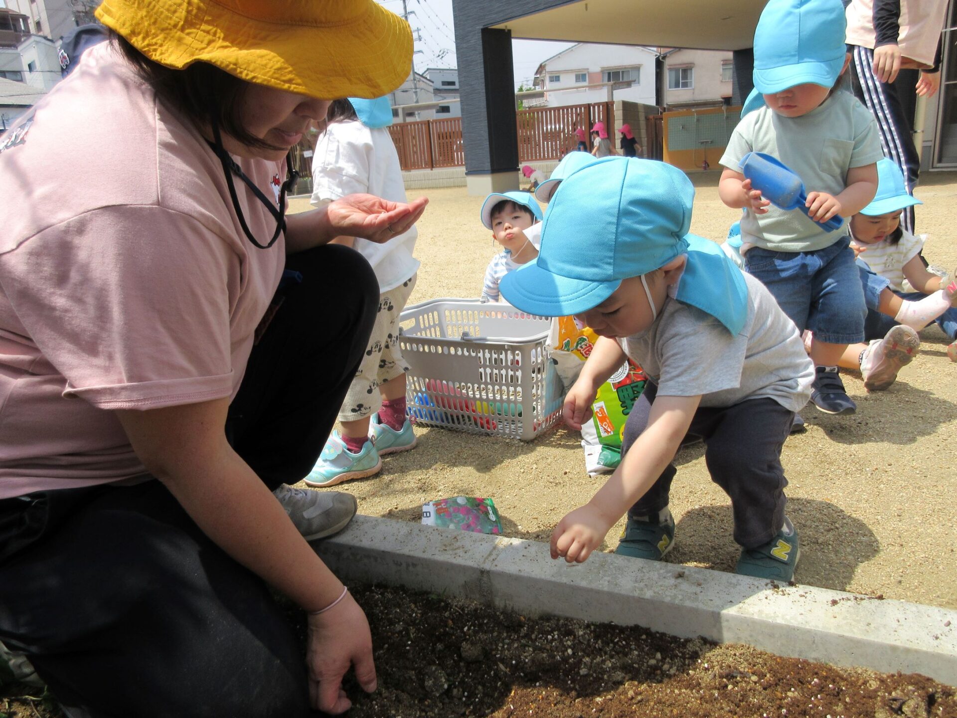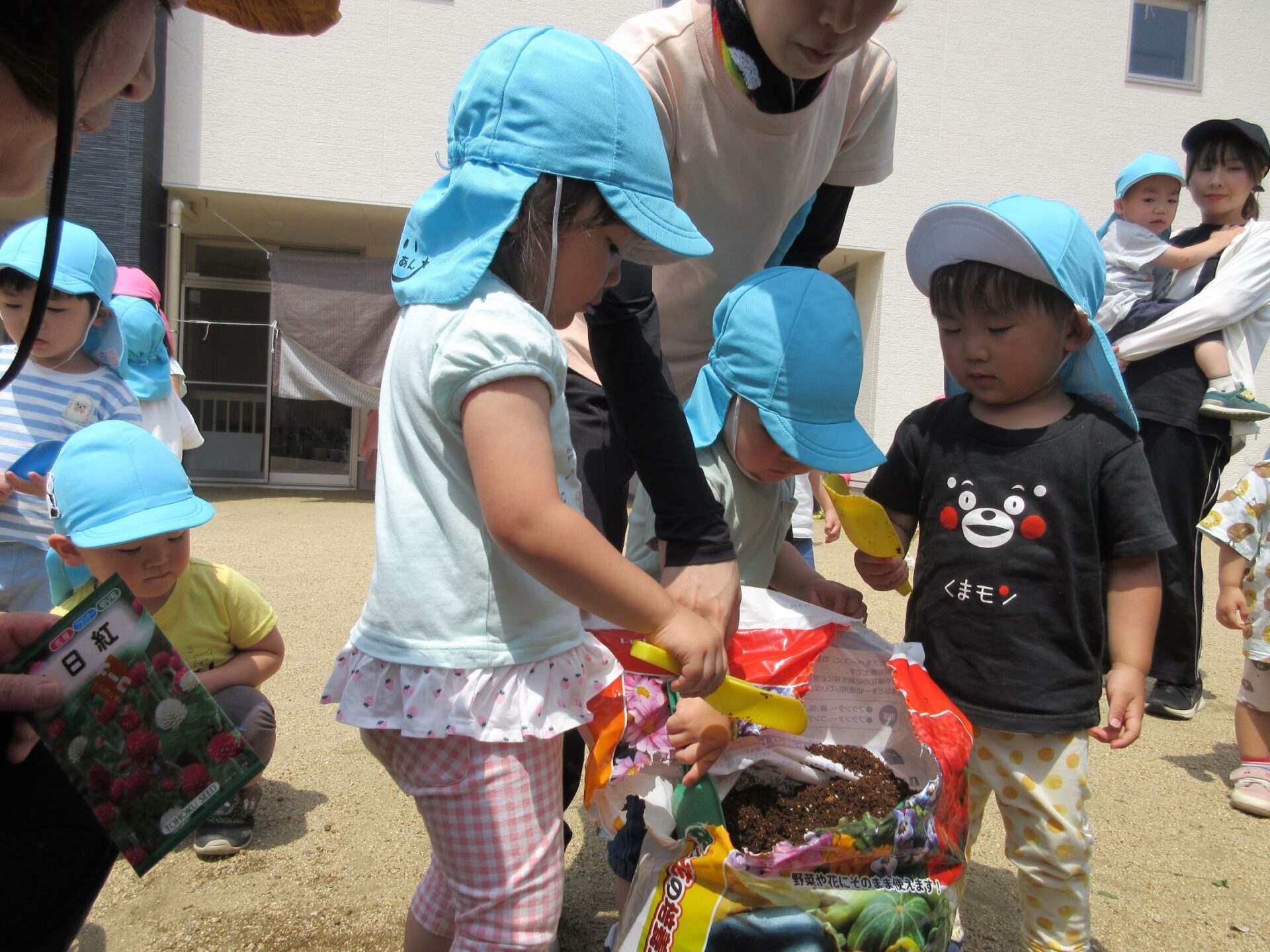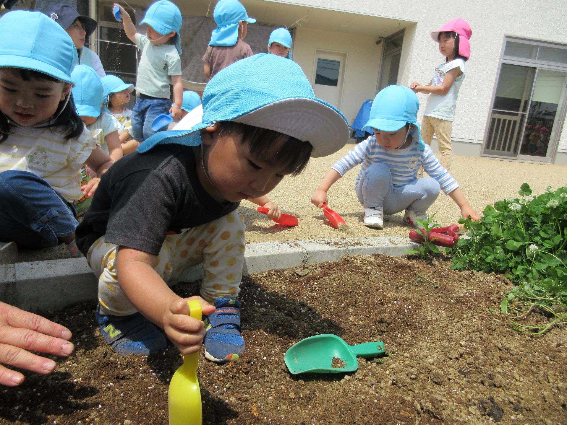 2024.05.30 お知らせ ブログ 花の種まき 5月24日(金)、2歳あめ組が、園庭の花壇に花の種まきをしました。 はじめに土を入れて、そのあと先生から種を受け取ります。 そのあと、種をまきました。 順番に種をまきました。 種まきのあとは、水やりです。 交代しながら、たっぷり水やりをしました。 たっぷり。 「きれいなお花が咲きますように。」 一覧へ戻る