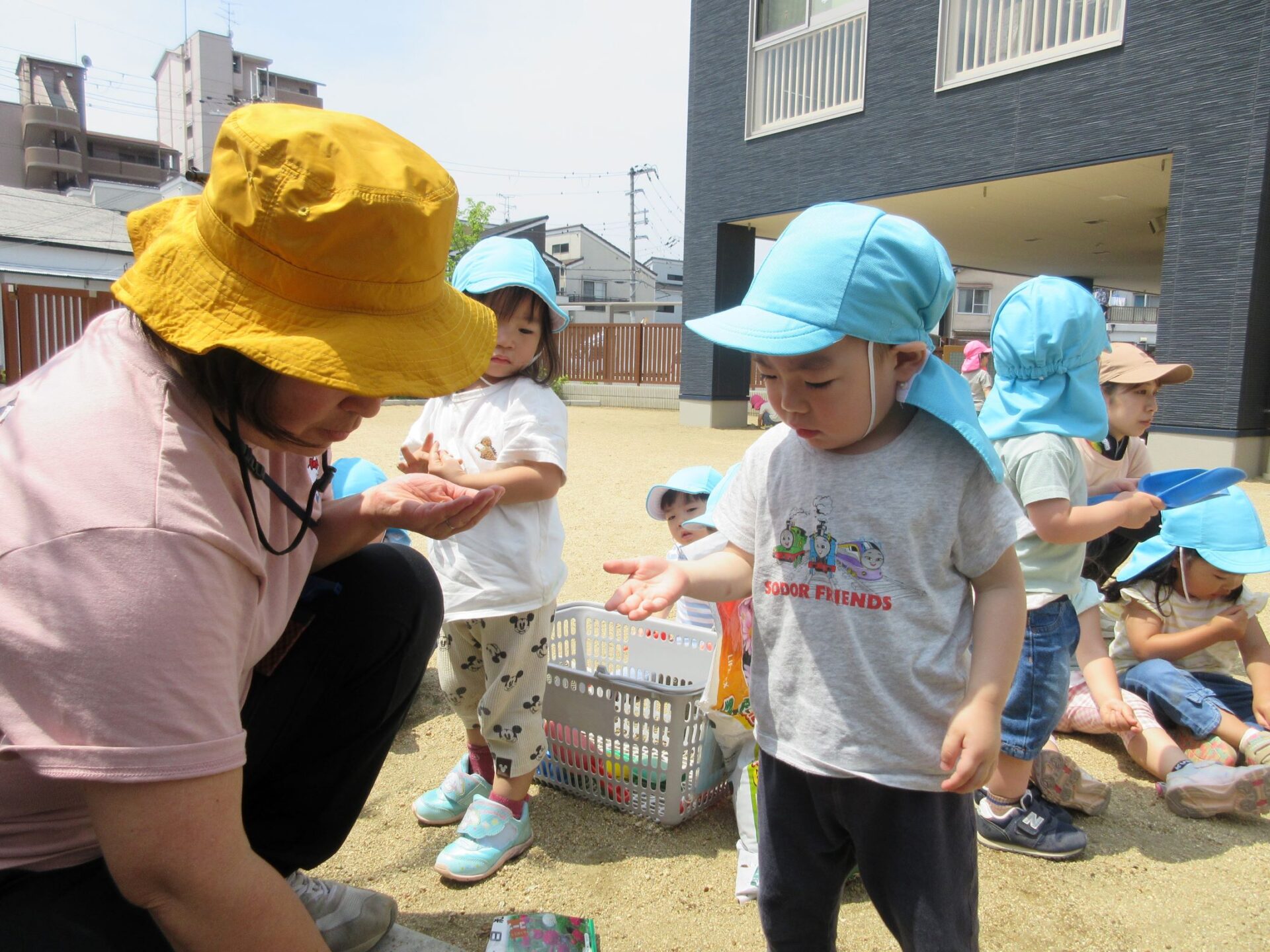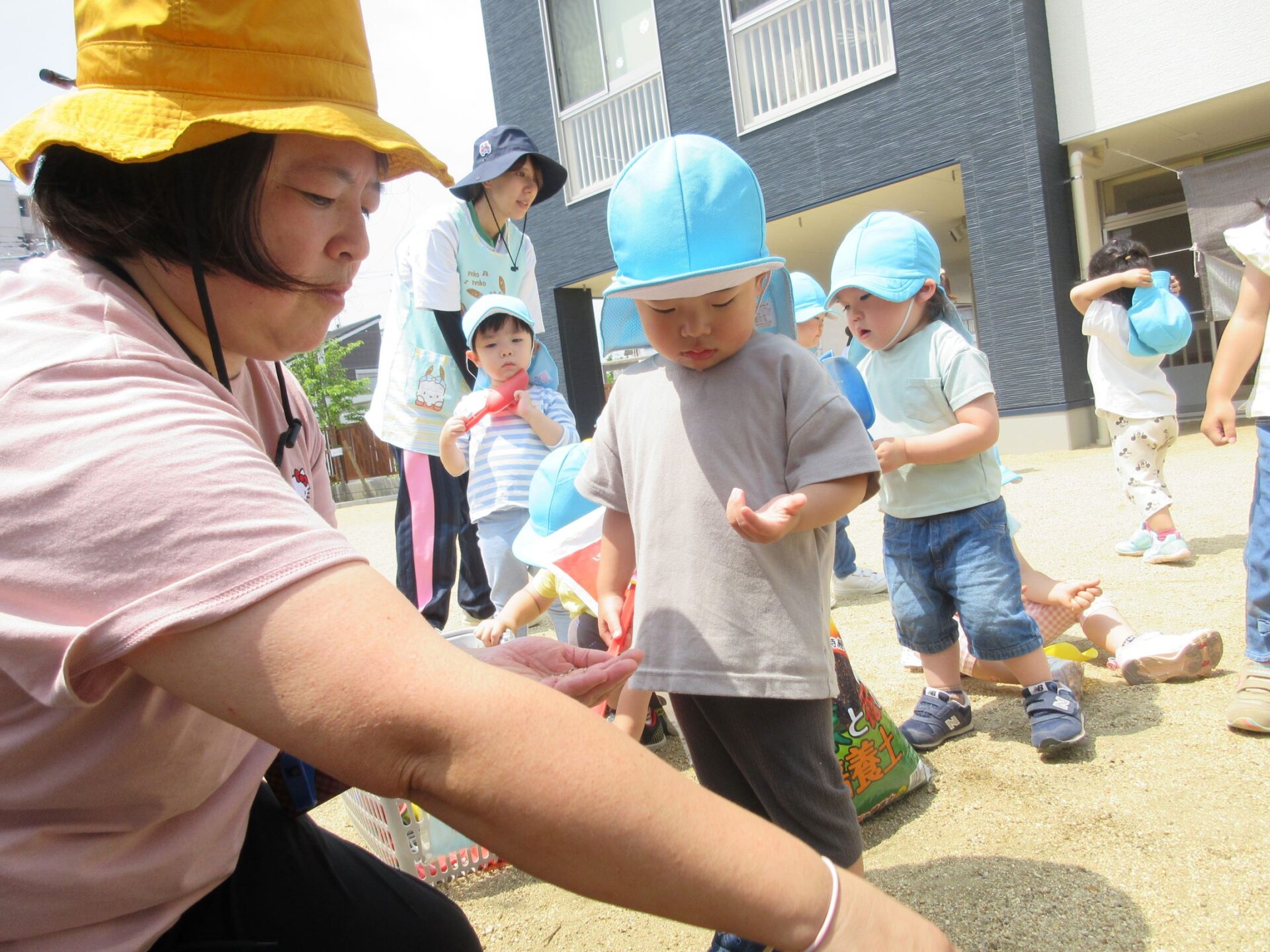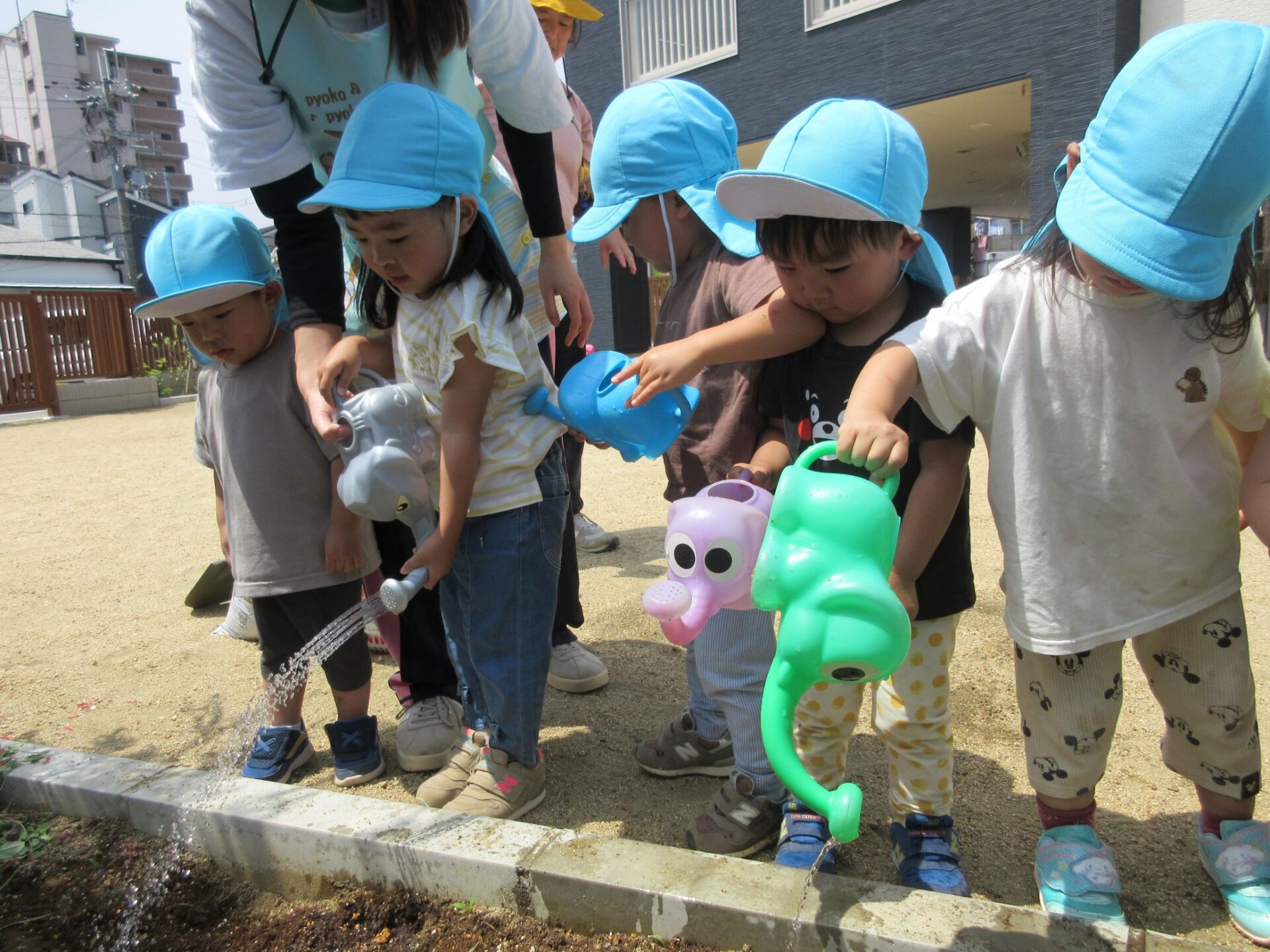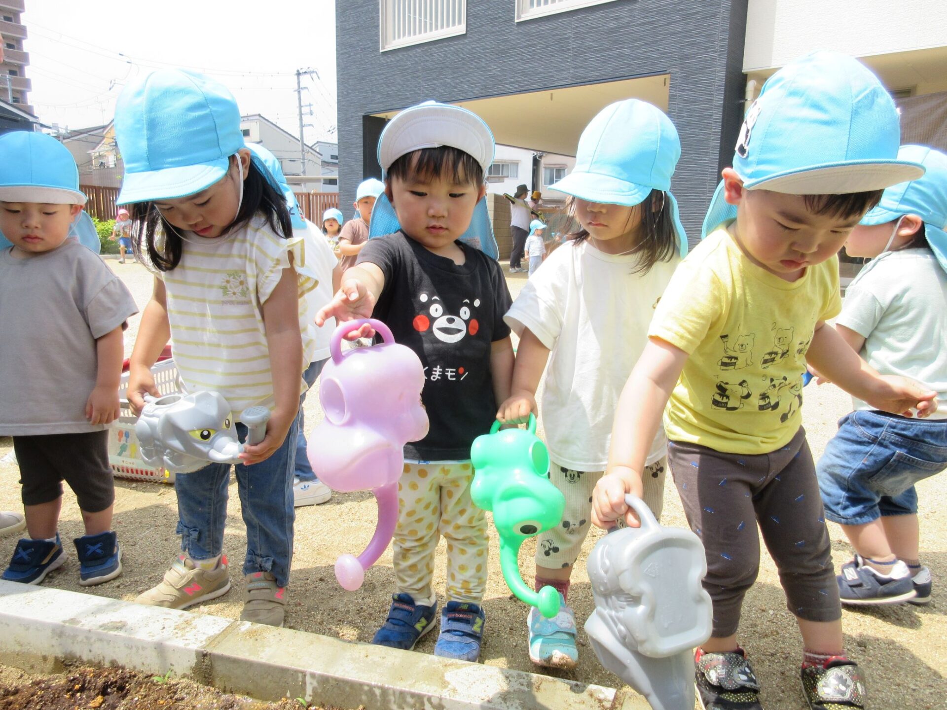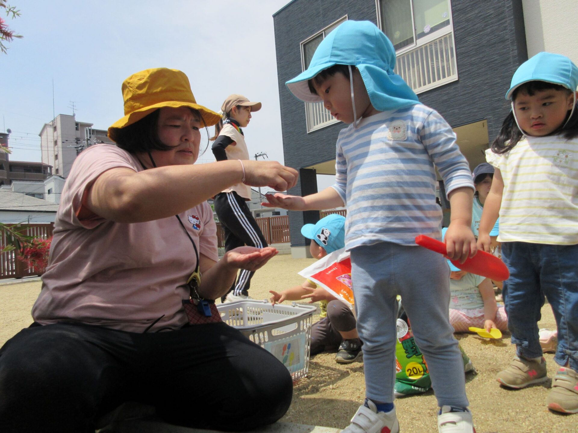 2024.05.30 お知らせ ブログ 花の種まき 5月24日(金)、2歳あめ組が、園庭の花壇に花の種まきをしました。 はじめに土を入れて、そのあと先生から種を受け取ります。 そのあと、種をまきました。 順番に種をまきました。 種まきのあとは、水やりです。 交代しながら、たっぷり水やりをしました。 たっぷり。 「きれいなお花が咲きますように。」 一覧へ戻る