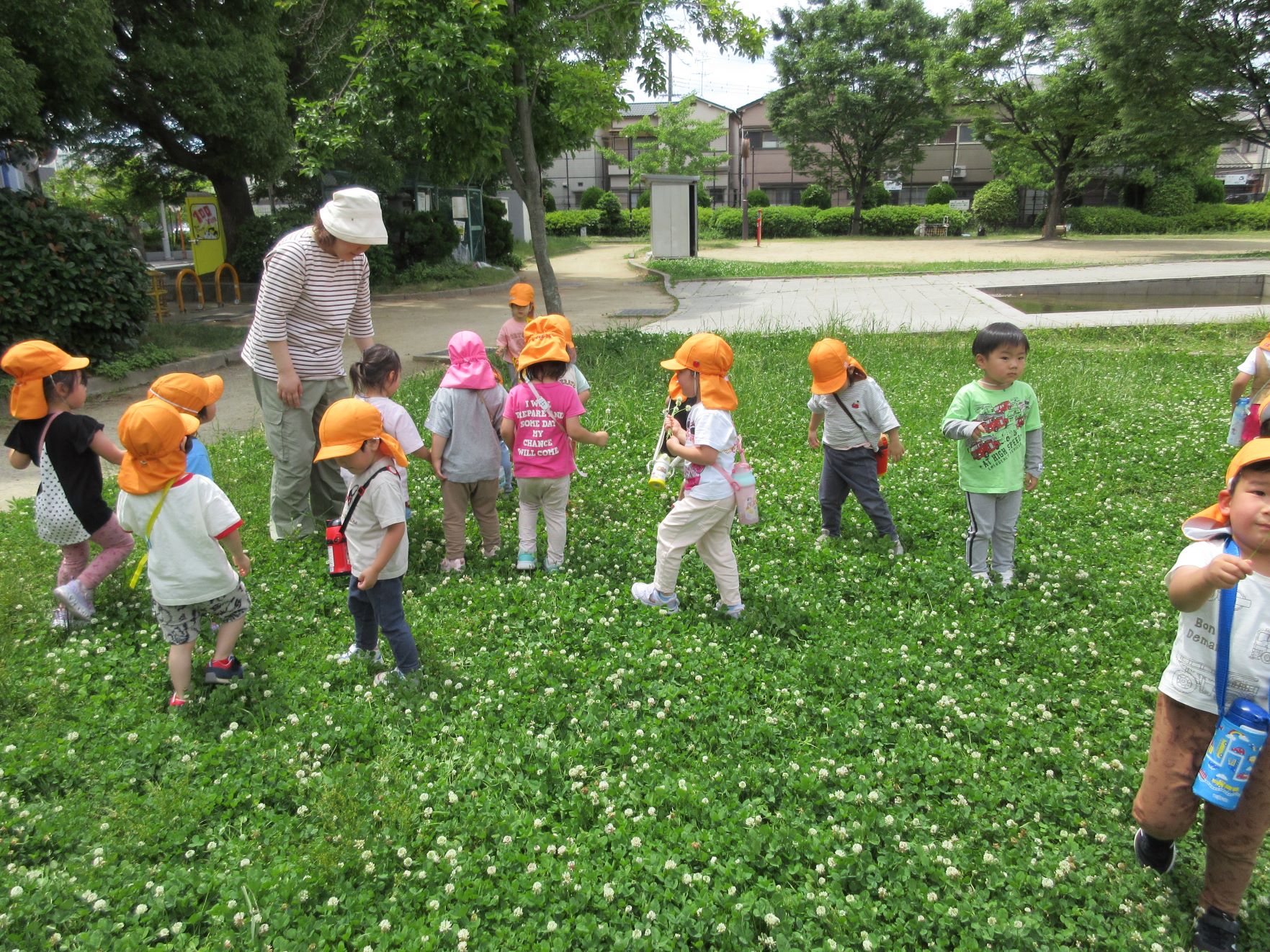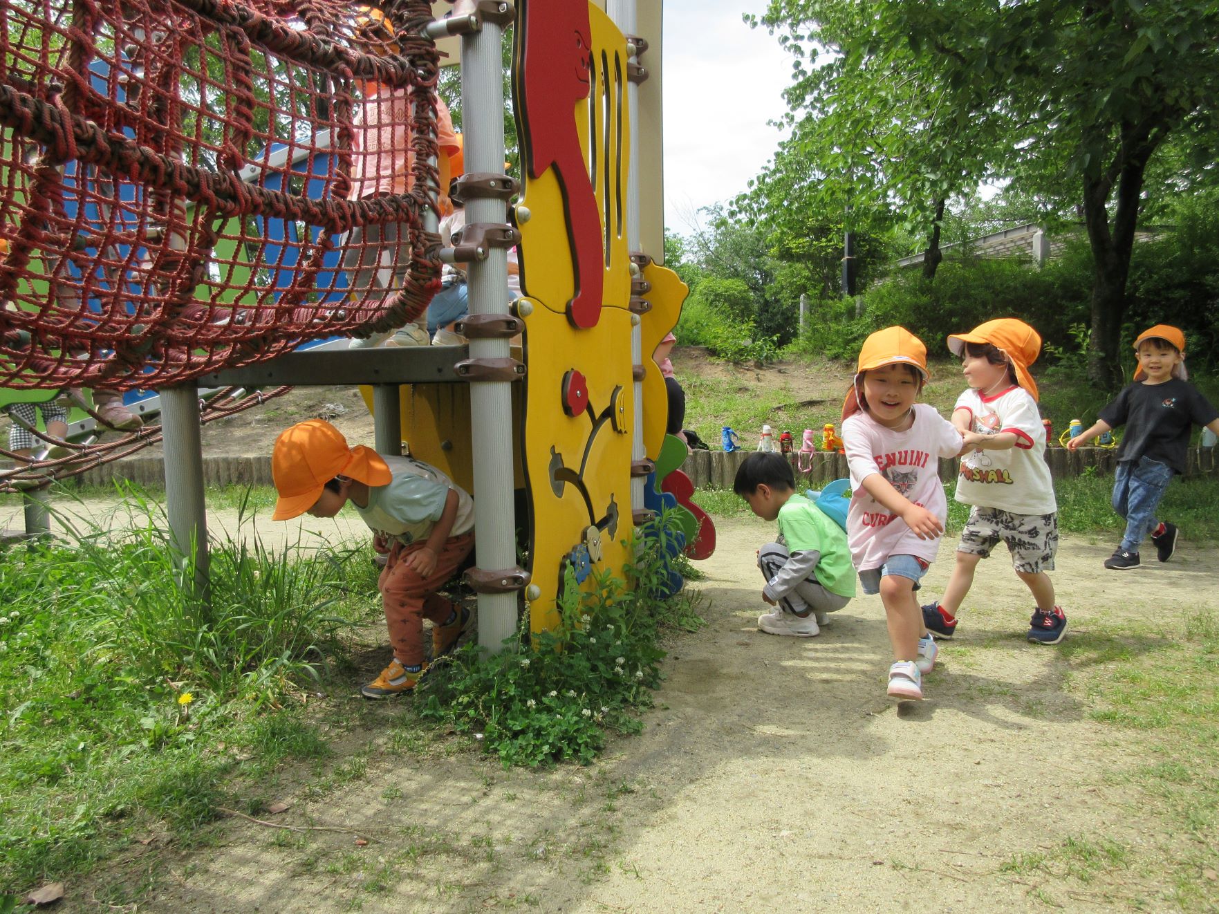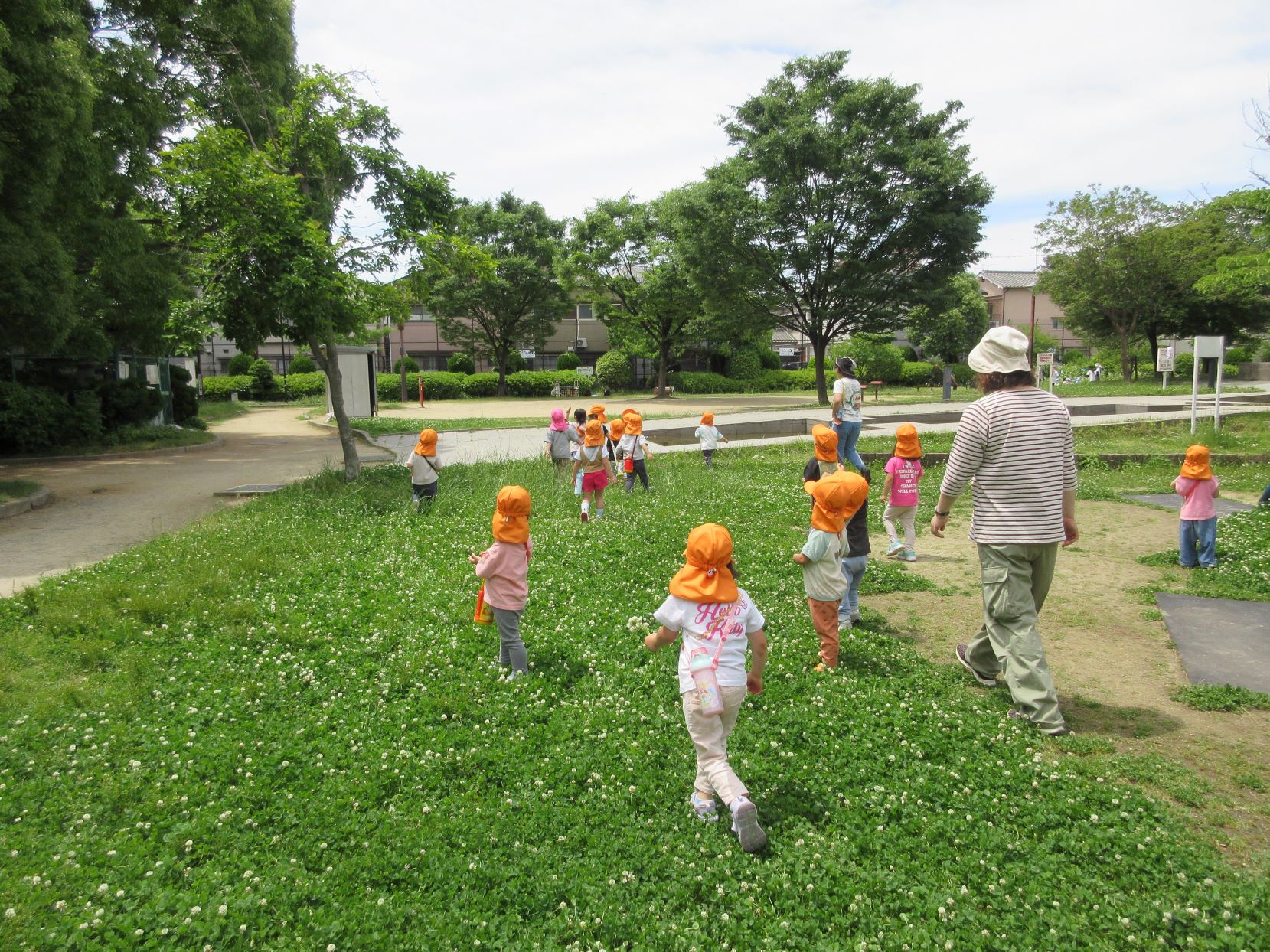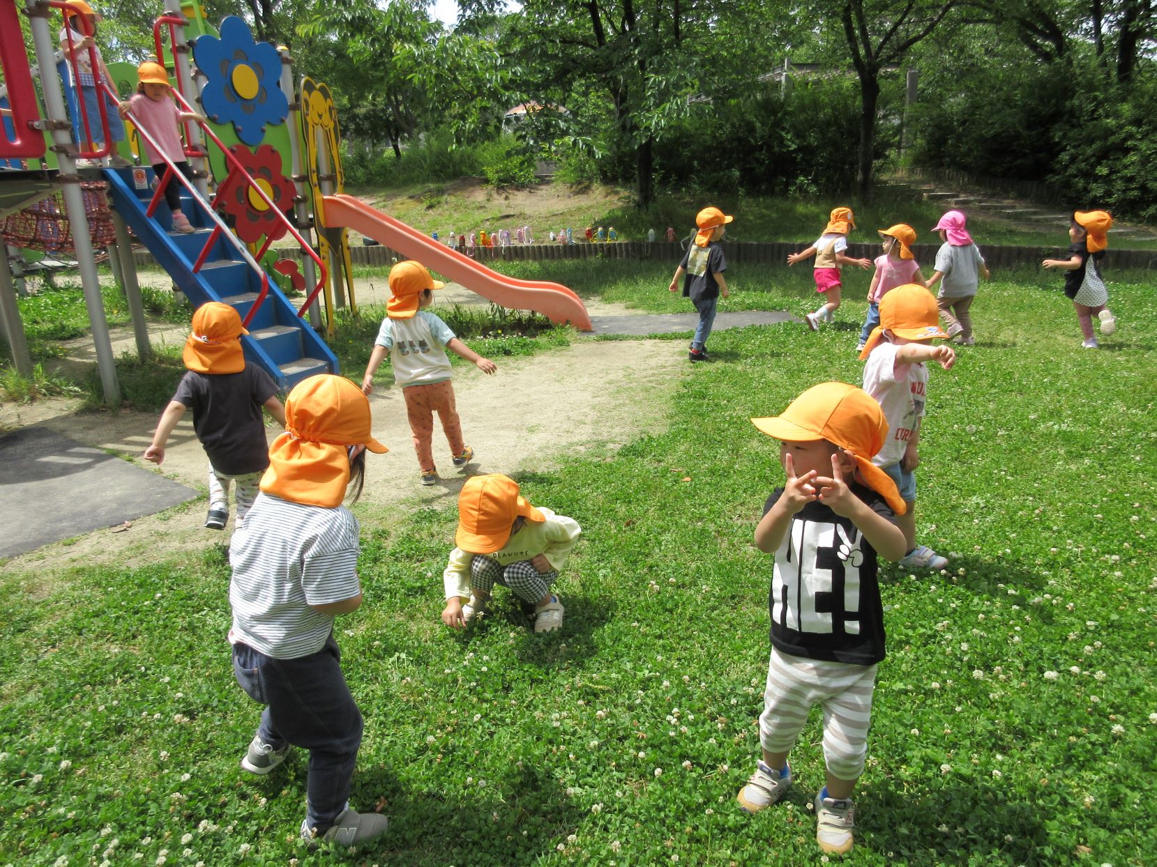 2024.06.06 お知らせ ブログ 美園公園で遊びました(にじ組) 5月30日(木)、3歳にじ組は、美園公園へ行きました。 よく行く、子どもたちの大好きな公園です。 遊具も自然もいっぱい。 シロツメクサがたくさん咲いていました。 遊具でしっかり遊べるようになってきました。 遊ぶ、観察する、走る、探す、見つける・・・。 水分補給もきっちりします。 熱中症防止には、こまめな水分補給。 良いお天気で、楽しく遊びました。 一覧へ戻る