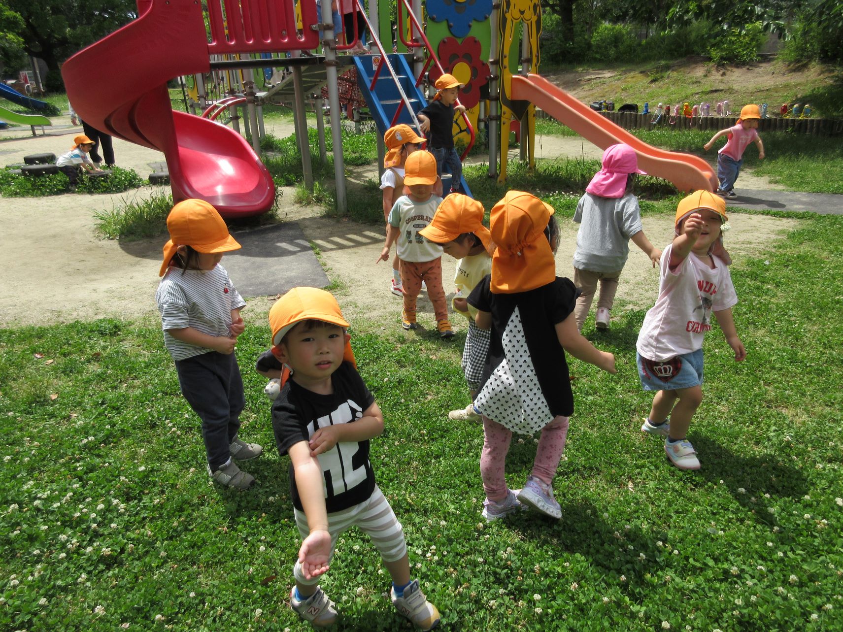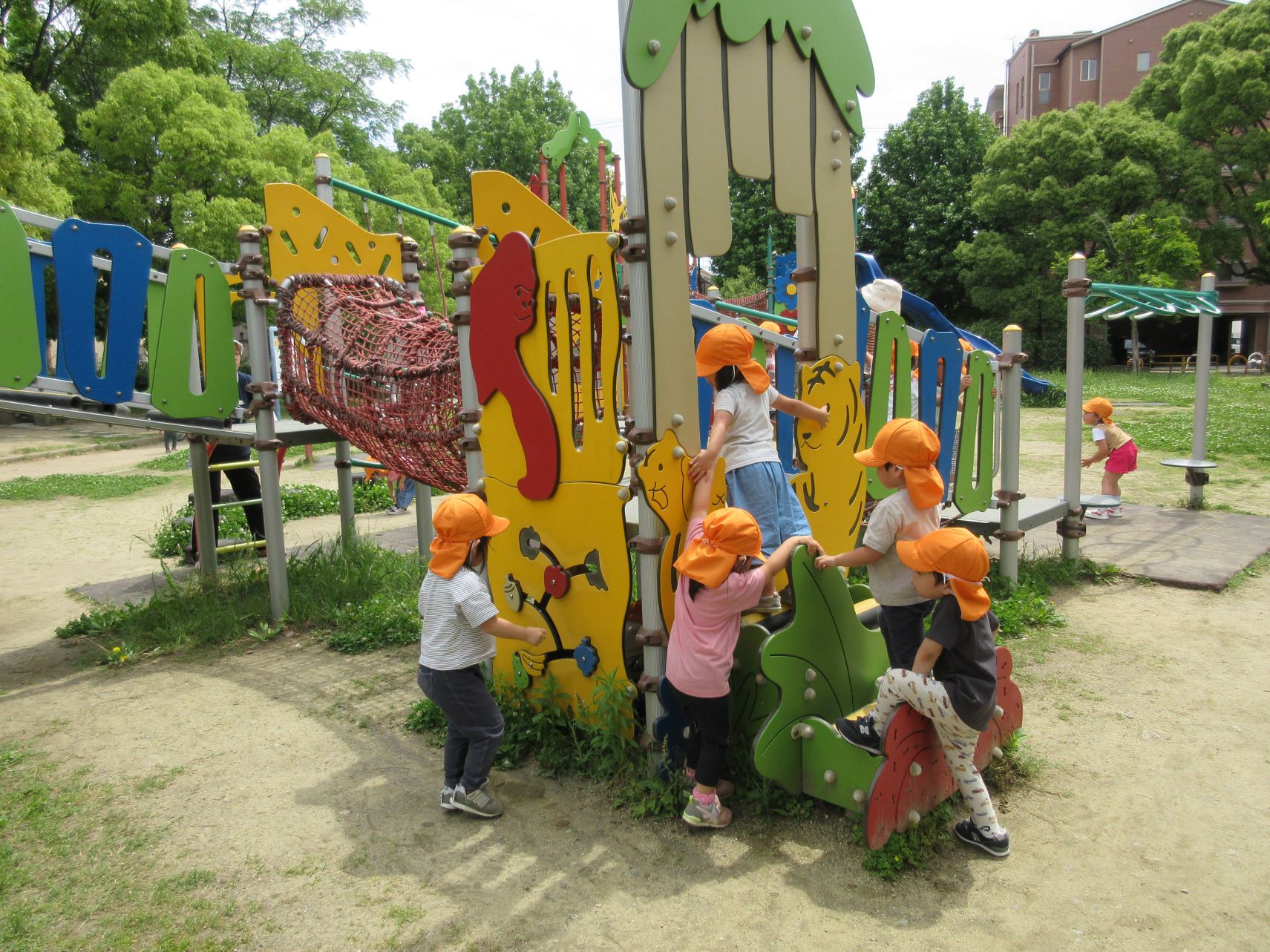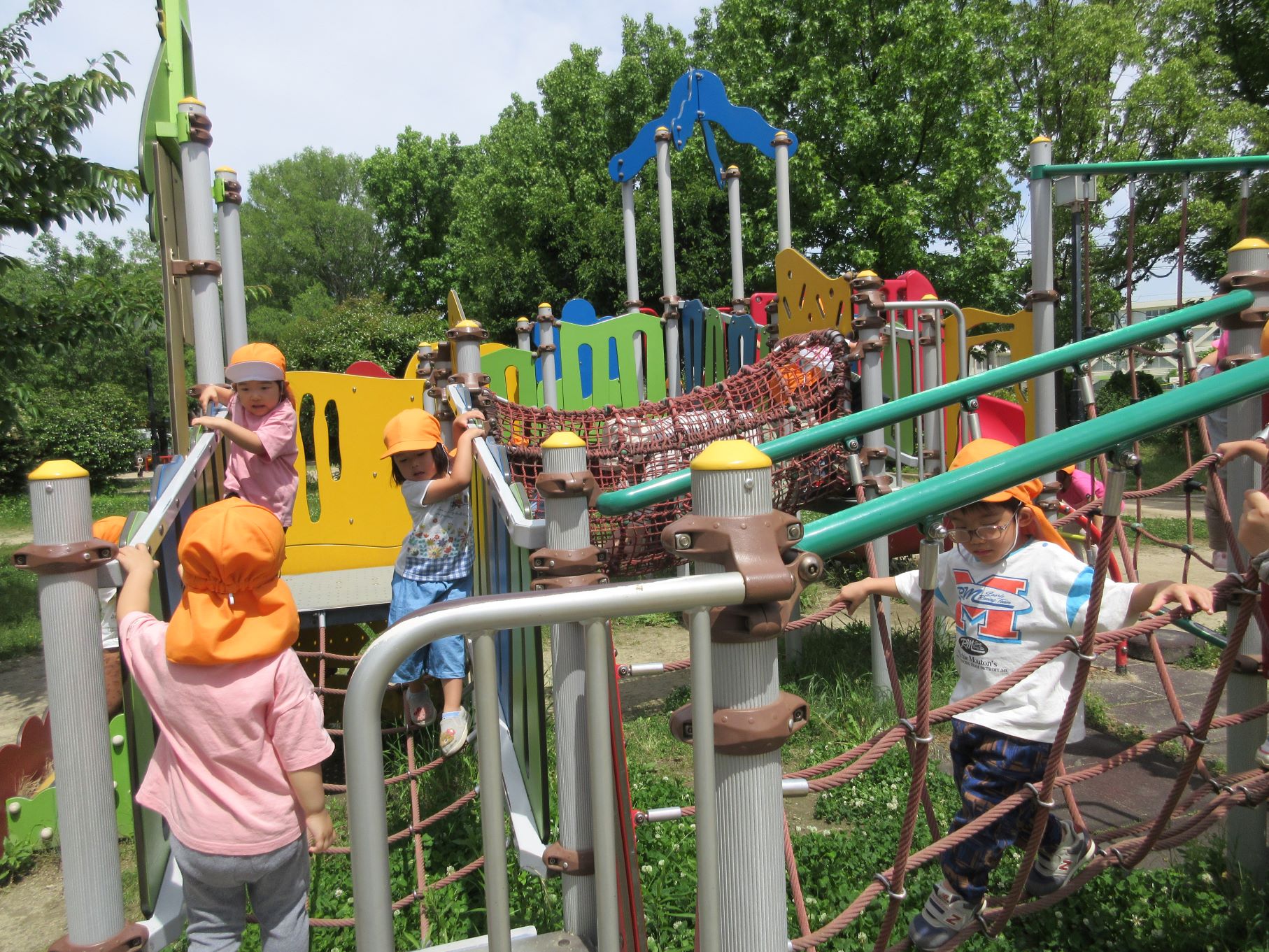 2024.06.06 お知らせ ブログ 美園公園で遊びました(にじ組) 5月30日(木)、3歳にじ組は、美園公園へ行きました。 よく行く、子どもたちの大好きな公園です。 遊具も自然もいっぱい。 シロツメクサがたくさん咲いていました。 遊具でしっかり遊べるようになってきました。 遊ぶ、観察する、走る、探す、見つける・・・。 水分補給もきっちりします。 熱中症防止には、こまめな水分補給。 良いお天気で、楽しく遊びました。 一覧へ戻る