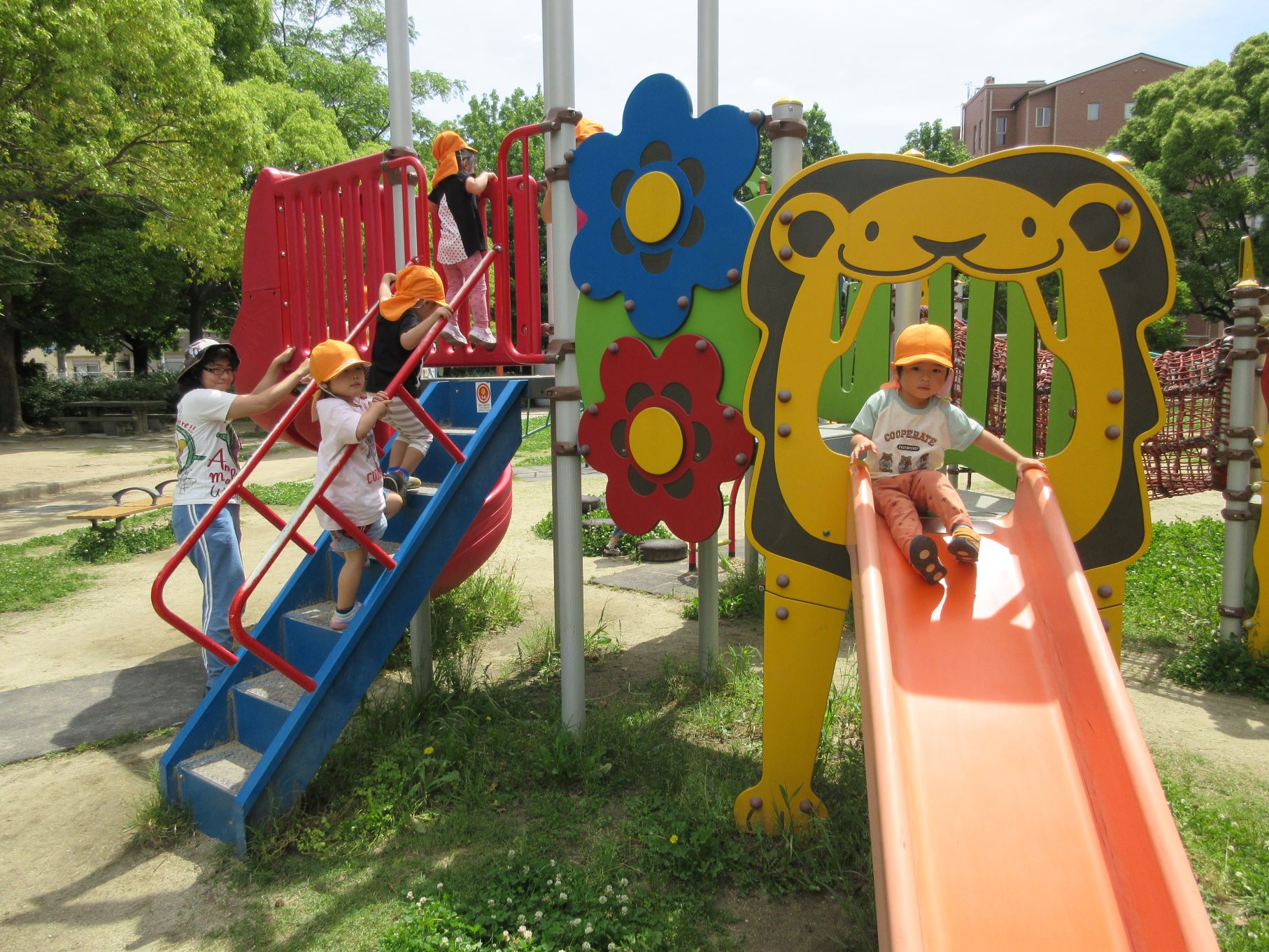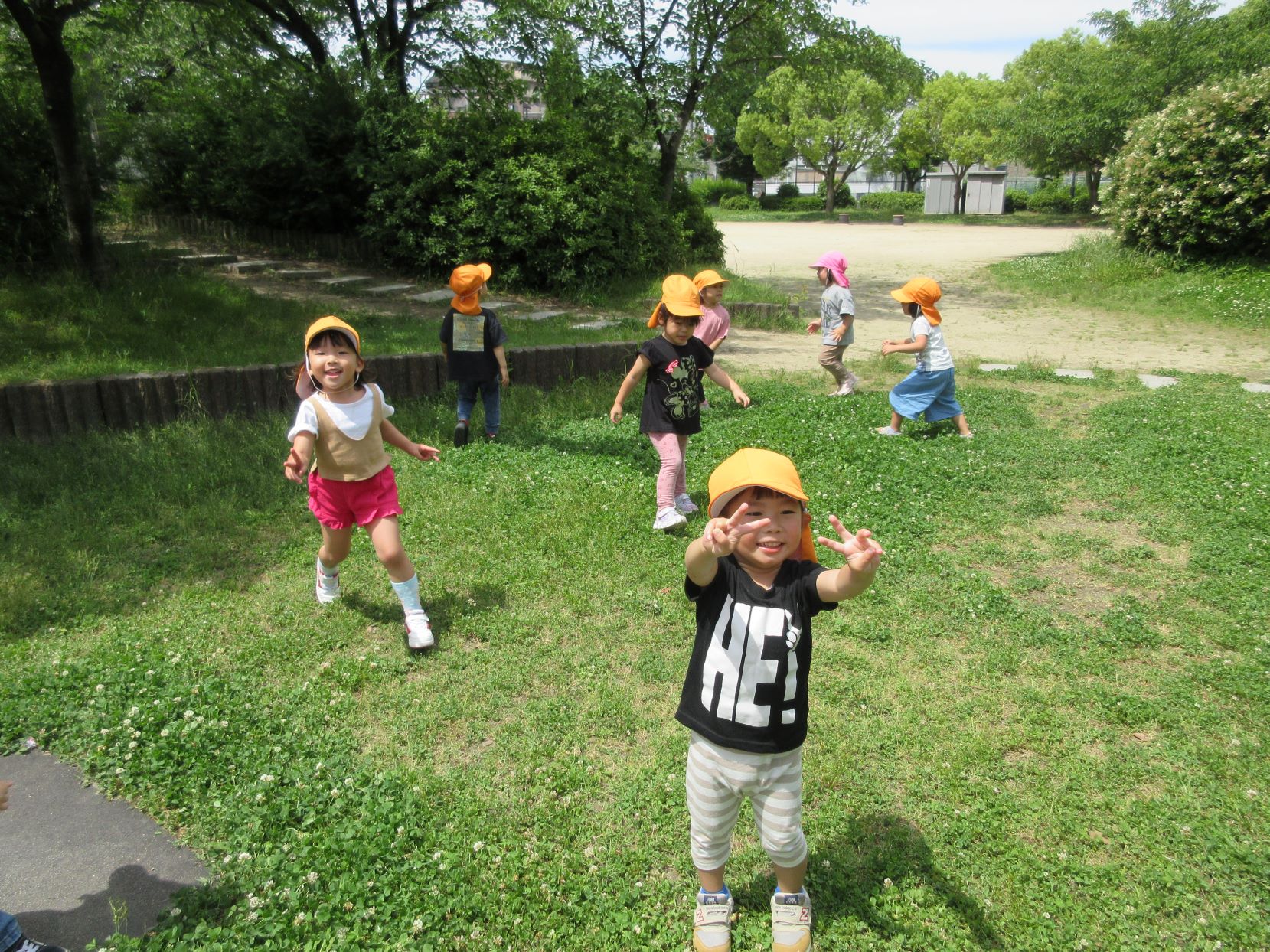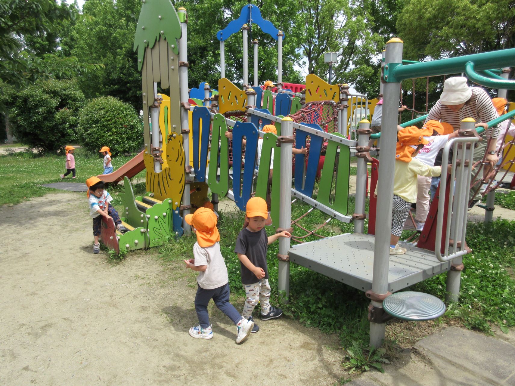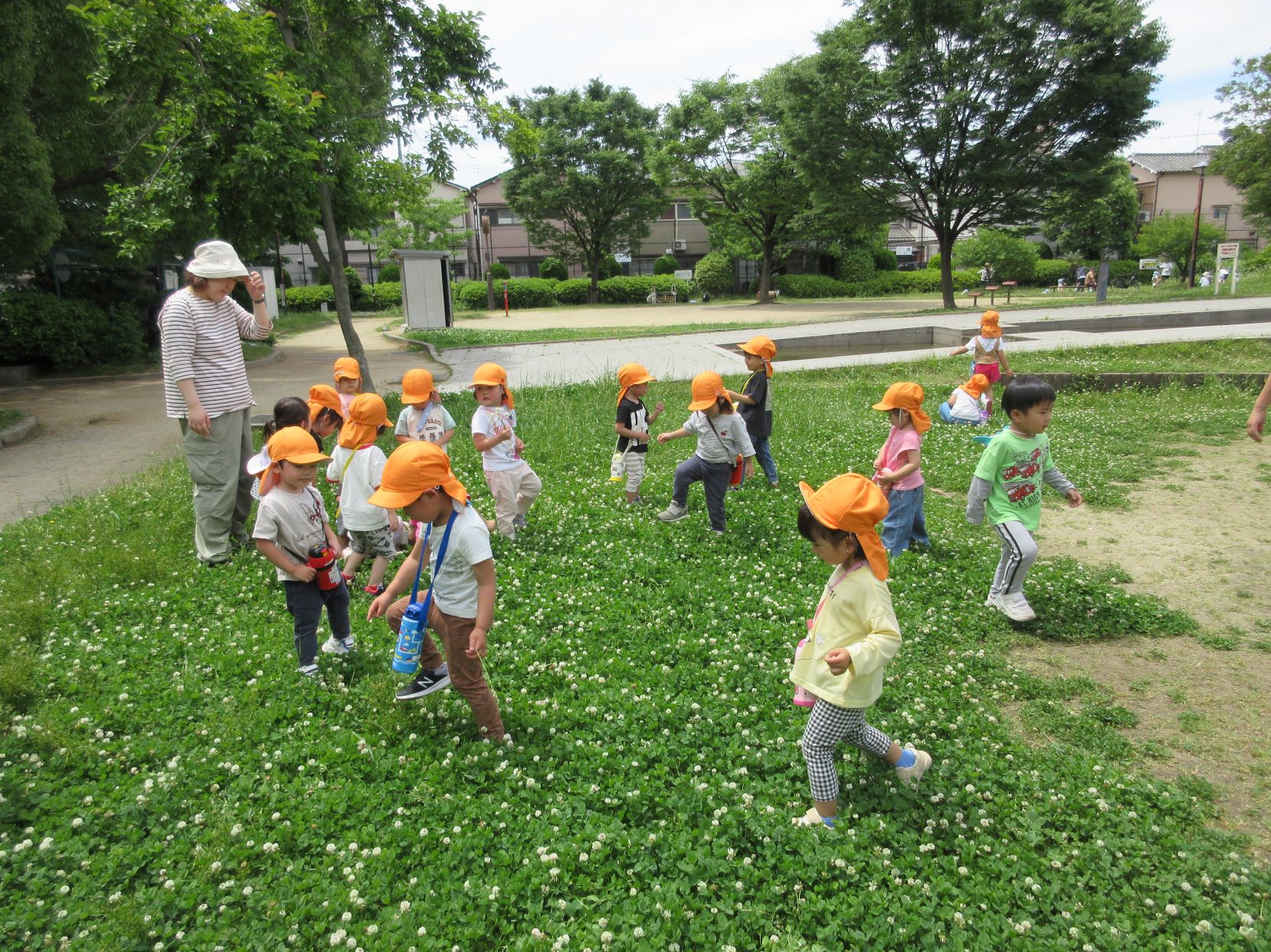 2024.06.06 お知らせ ブログ 美園公園で遊びました(にじ組) 5月30日(木)、3歳にじ組は、美園公園へ行きました。 よく行く、子どもたちの大好きな公園です。 遊具も自然もいっぱい。 シロツメクサがたくさん咲いていました。 遊具でしっかり遊べるようになってきました。 遊ぶ、観察する、走る、探す、見つける・・・。 水分補給もきっちりします。 熱中症防止には、こまめな水分補給。 良いお天気で、楽しく遊びました。 一覧へ戻る
