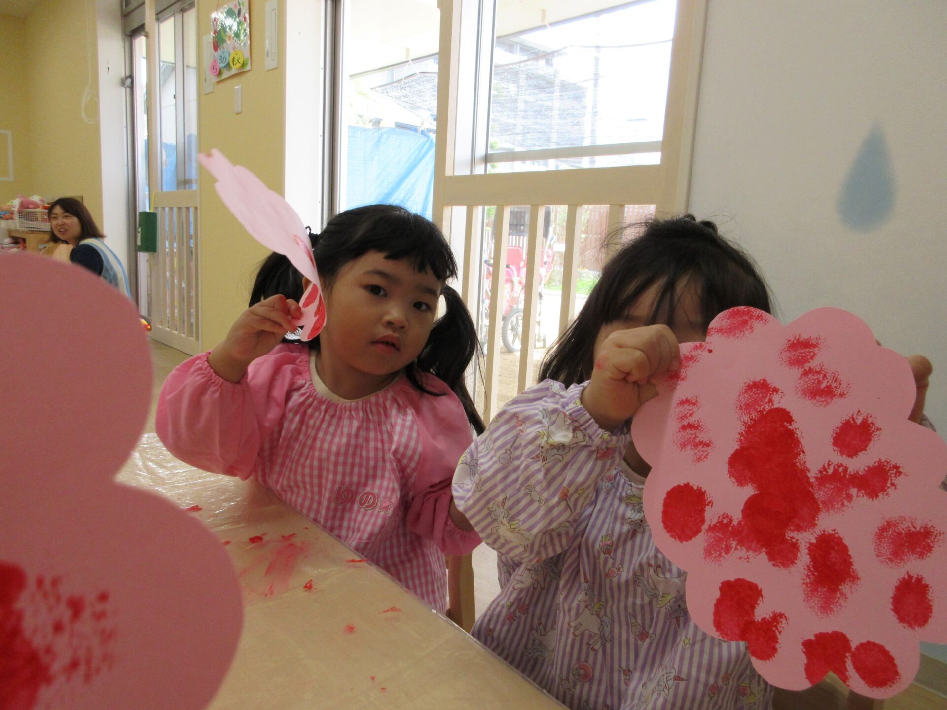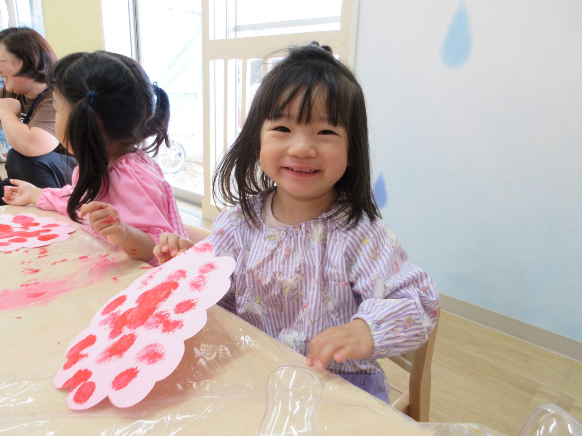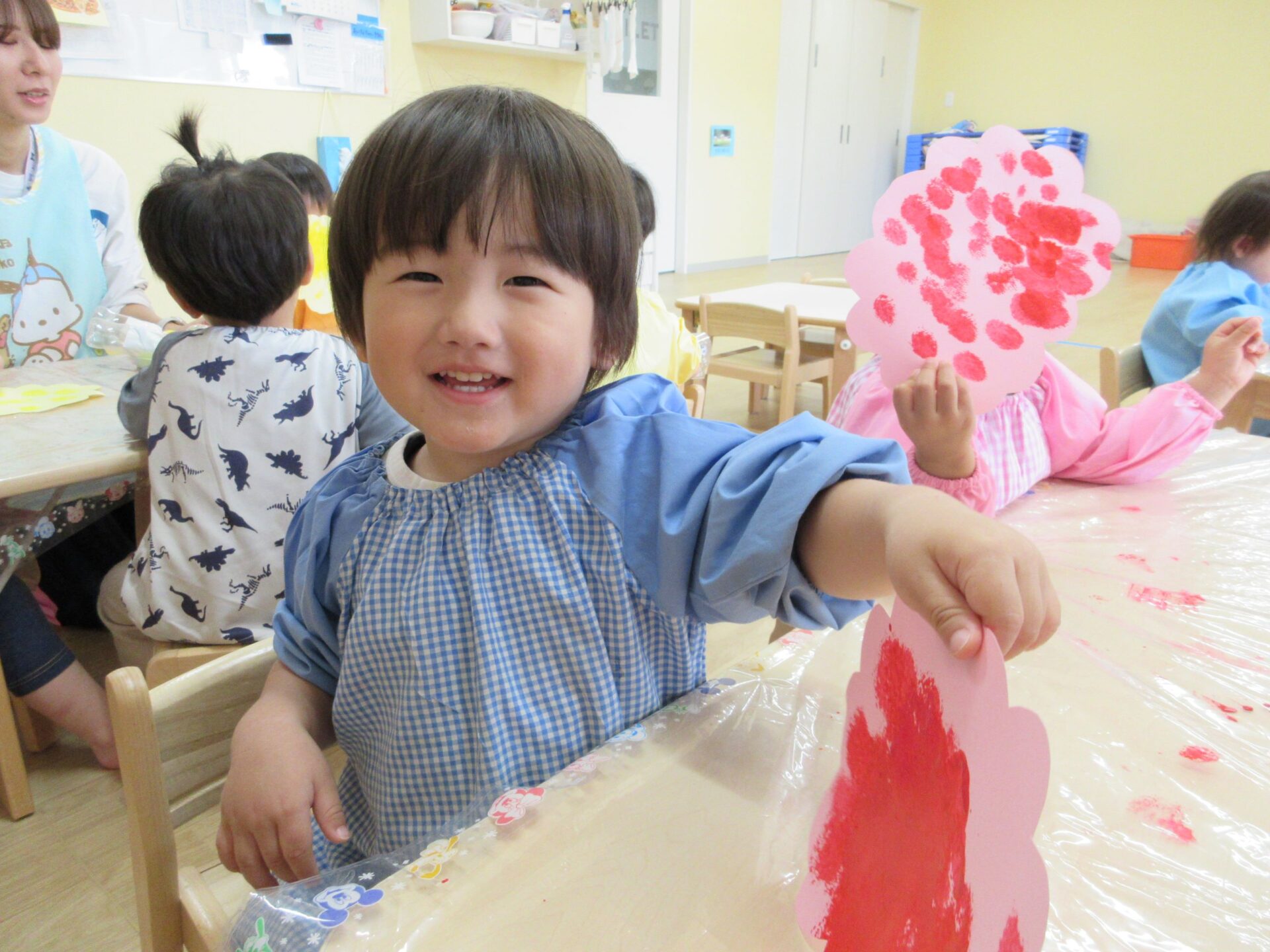 2024.06.17 お知らせ ブログ 6月の製作 あじさいづくり(あめ組) 5月30日(木)、2歳あめ組が、タオルタンポをして、あじさいを作りました。 ♪「あめふりくまのこ」の絵本の中に出てくるあじさい、写真のあじさい、お散歩で見つけたあじさい… イメージを膨らませてポンポンと押します! 黄色のあじさい 青色のあじさい 赤色のあじさい かわいいあじさいの出来上がりです!製作を通して、季節を感じて欲しいなと思います(^^) 一覧へ戻る