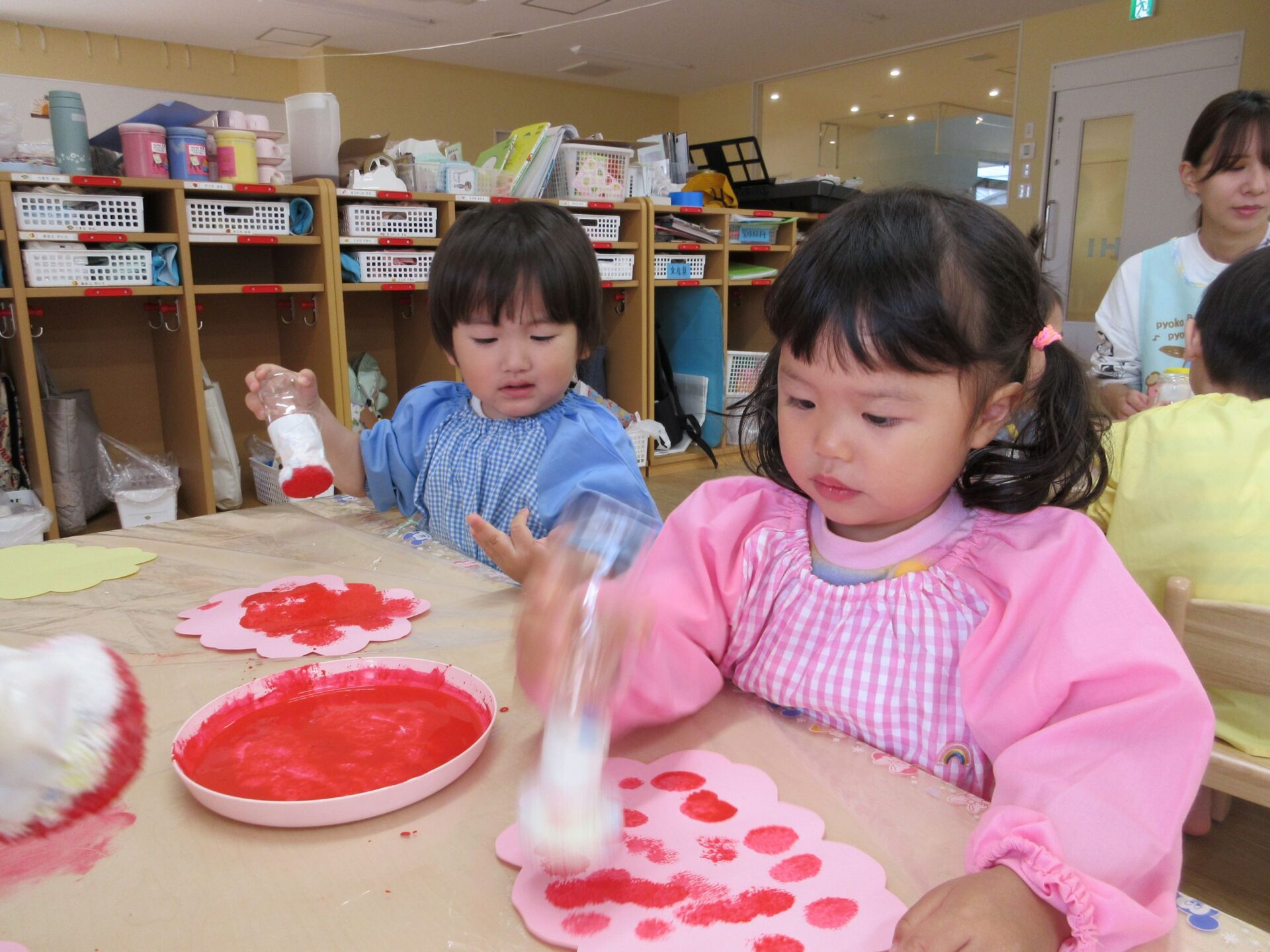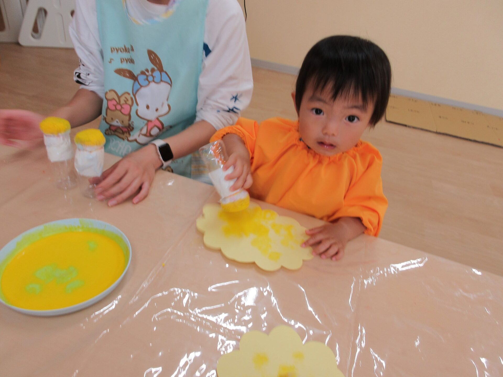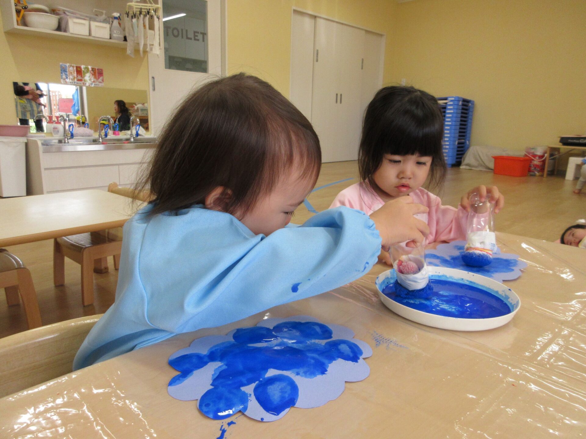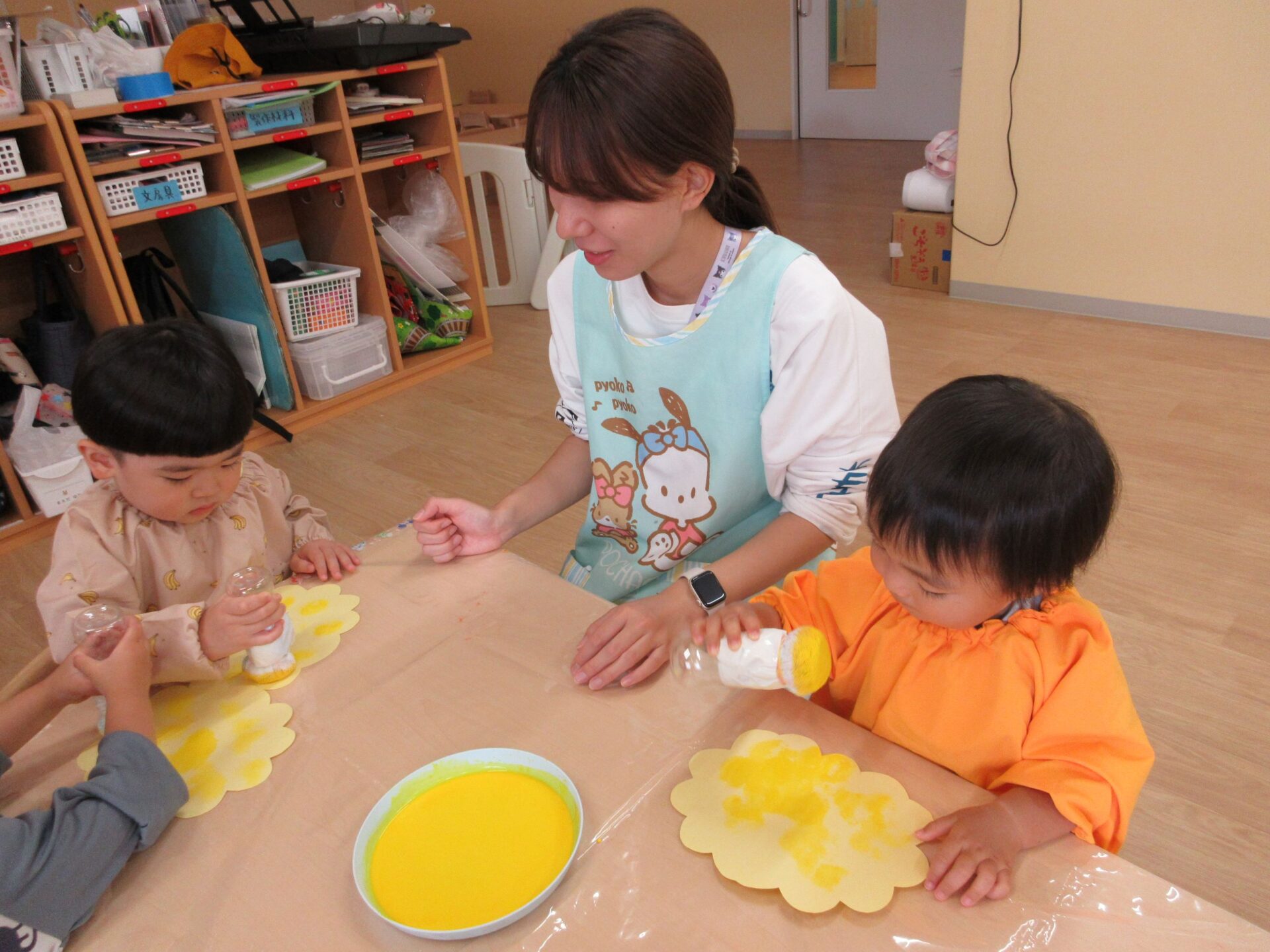 2024.06.17 お知らせ ブログ 6月の製作 あじさいづくり(あめ組) 5月30日(木)、2歳あめ組が、タオルタンポをして、あじさいを作りました。 ♪「あめふりくまのこ」の絵本の中に出てくるあじさい、写真のあじさい、お散歩で見つけたあじさい… イメージを膨らませてポンポンと押します! 黄色のあじさい 青色のあじさい 赤色のあじさい かわいいあじさいの出来上がりです!製作を通して、季節を感じて欲しいなと思います(^^) 一覧へ戻る