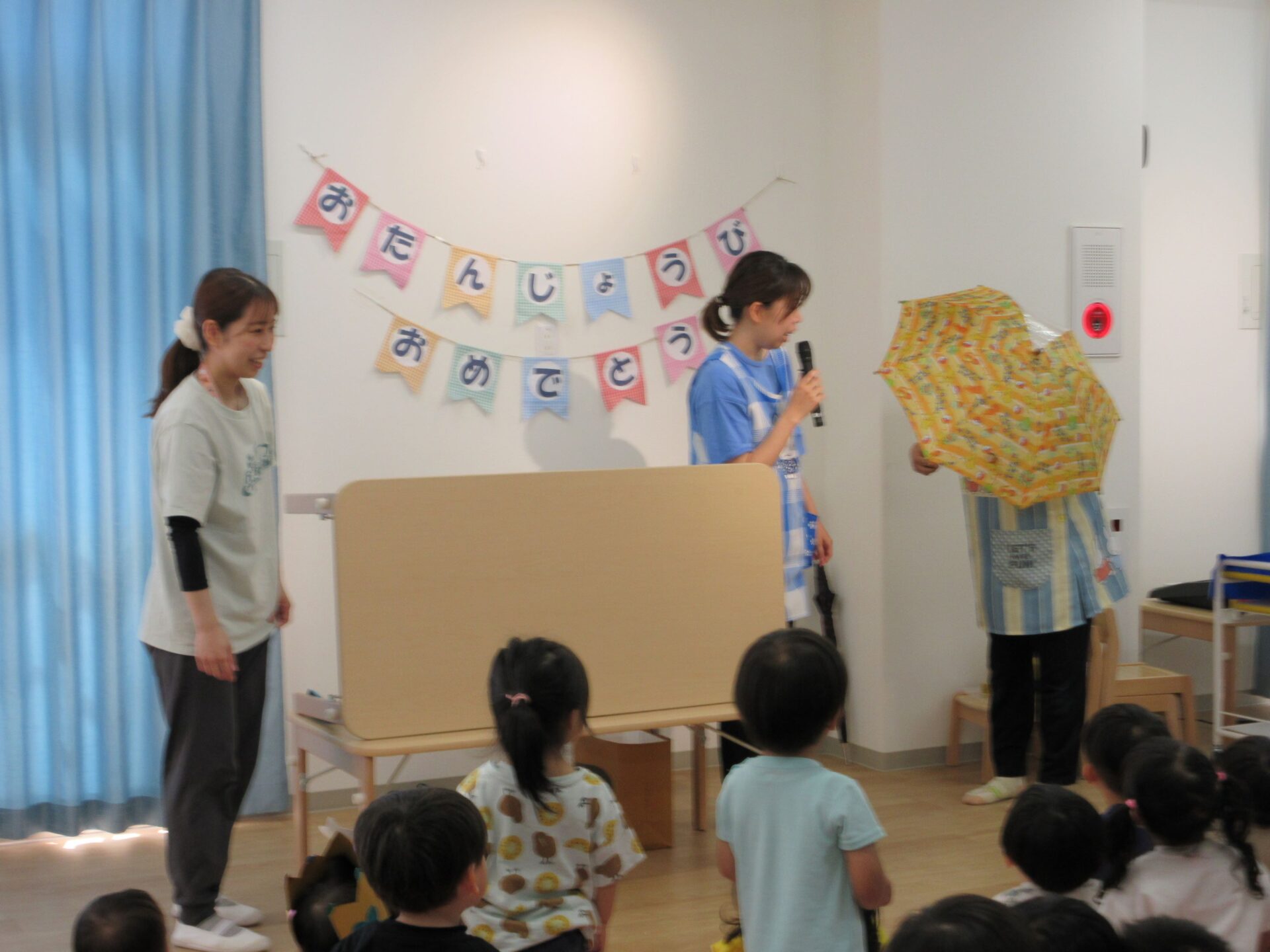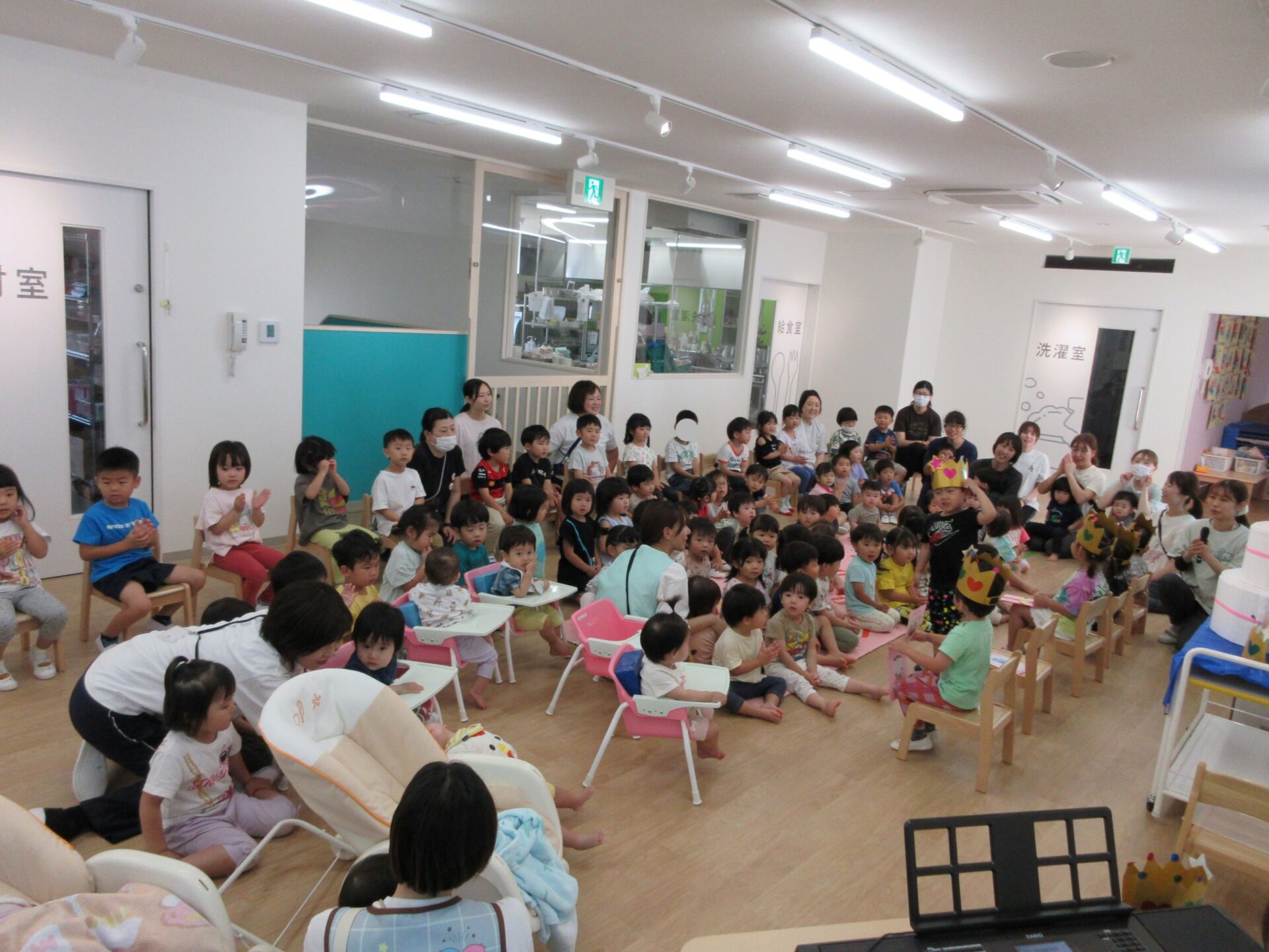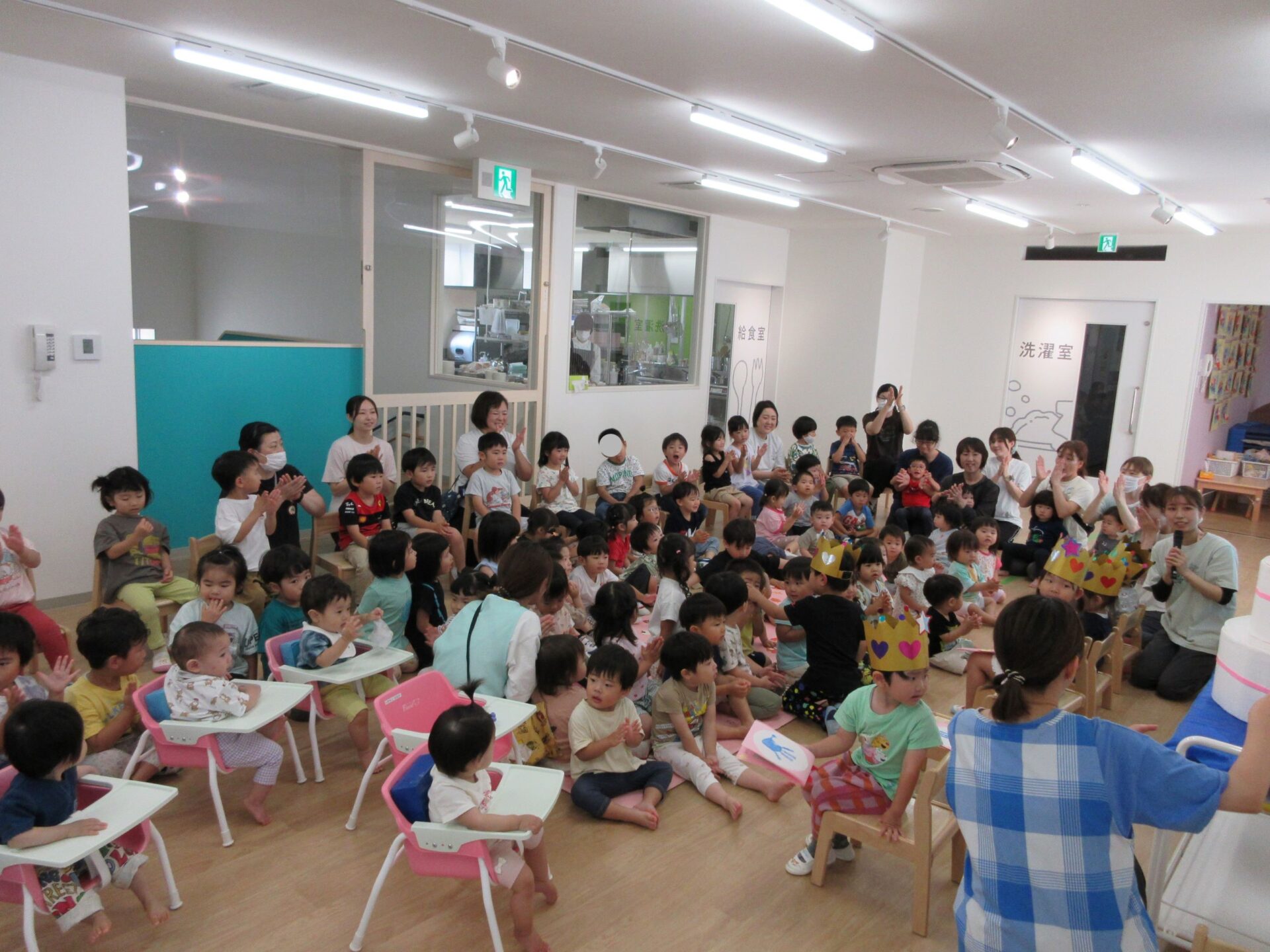 6月19日(水)、6月の誕生会を行いました。今月の場所は、2階のランチルームです。
