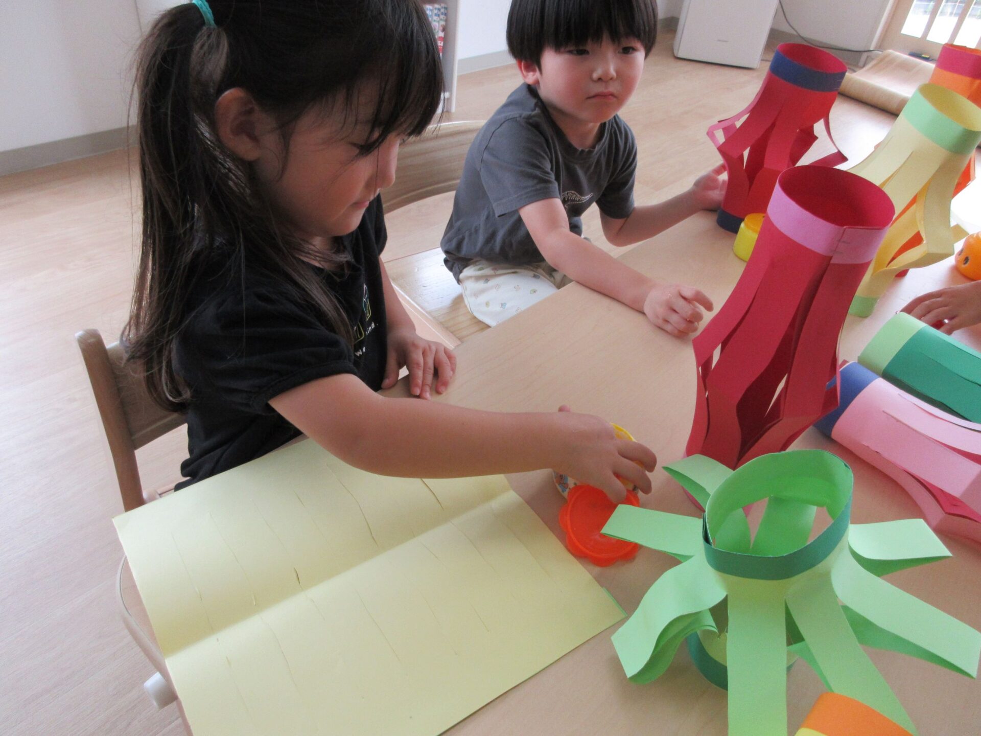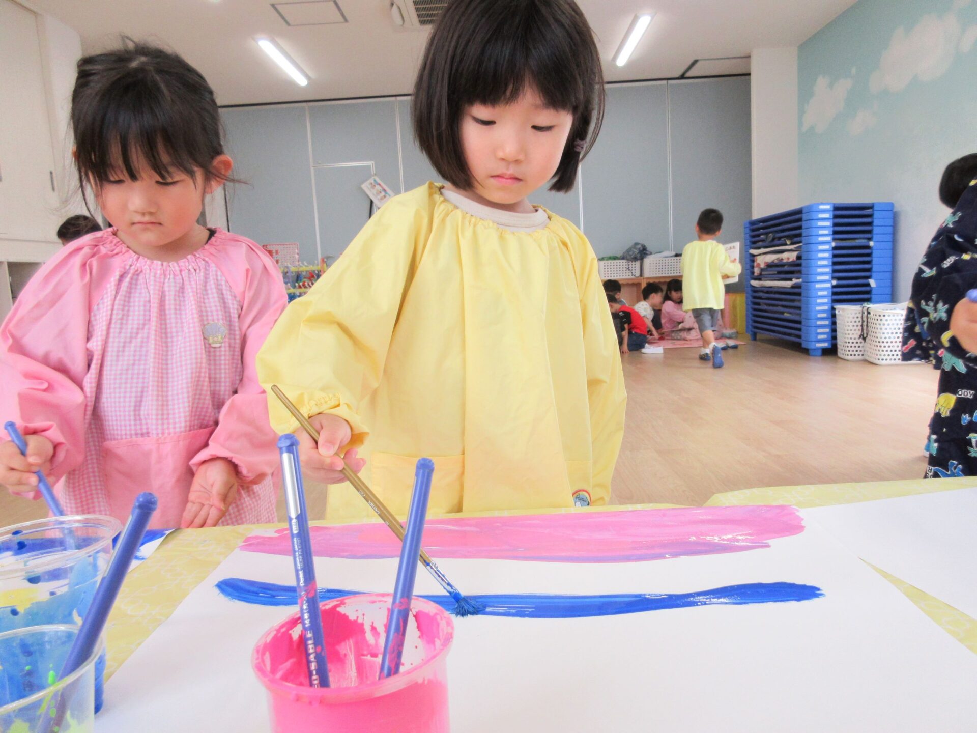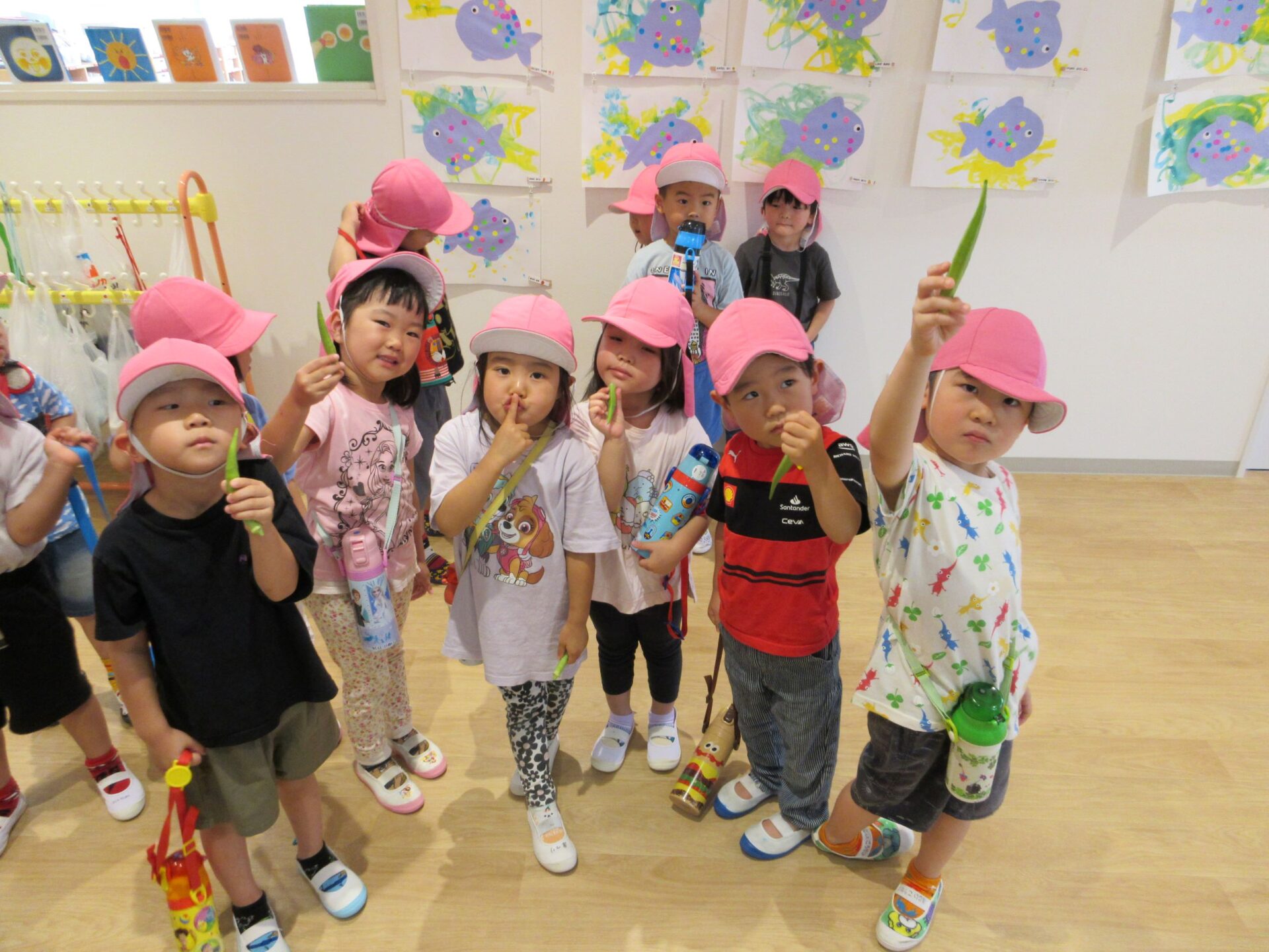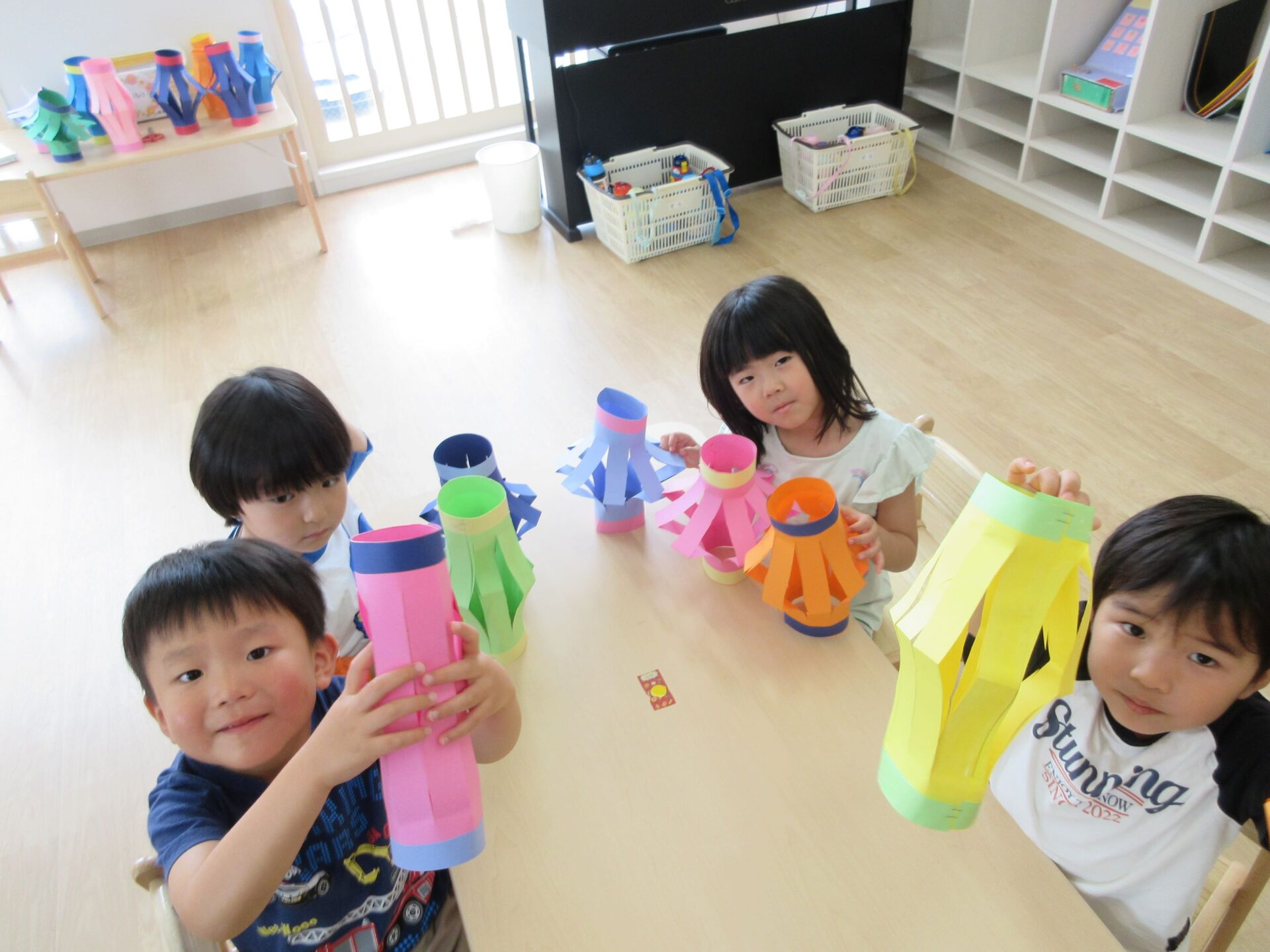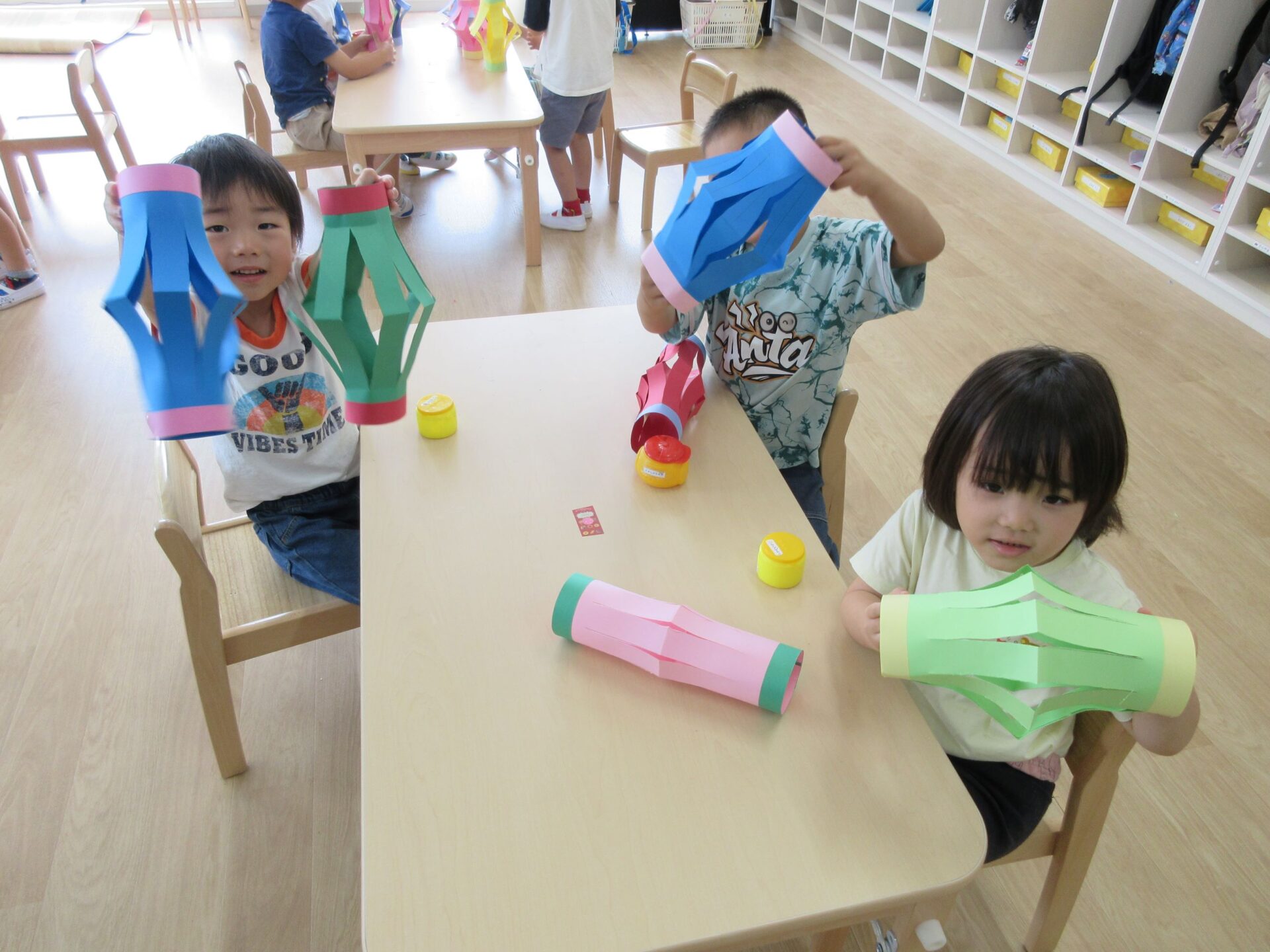 2024.07.25 お知らせ ブログ そら組の7月 もうすぐクジラ祭りですね、そらぐみさんがお祭りの準備をしていますよ。 絵具を塗って何を作っているのかな? 楽しいね! これは、そらぐみさんで育てているオクラです。大きいのが採れましたね。給食で出してもらいますよ。 そして、もう一つ。こちらもお祭りで使いますよ。のりでペタペタ~。 糊の使い方も上手ですね! 可愛く出来ました。お祭りの時に飾りますね。お楽しみに~。 一覧へ戻る
