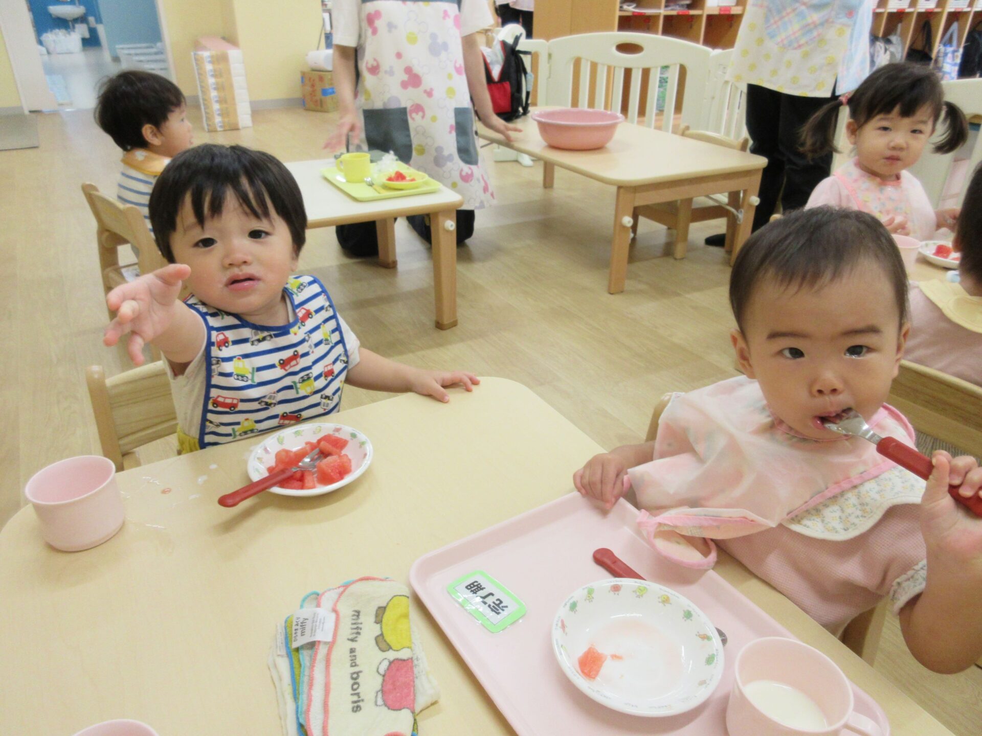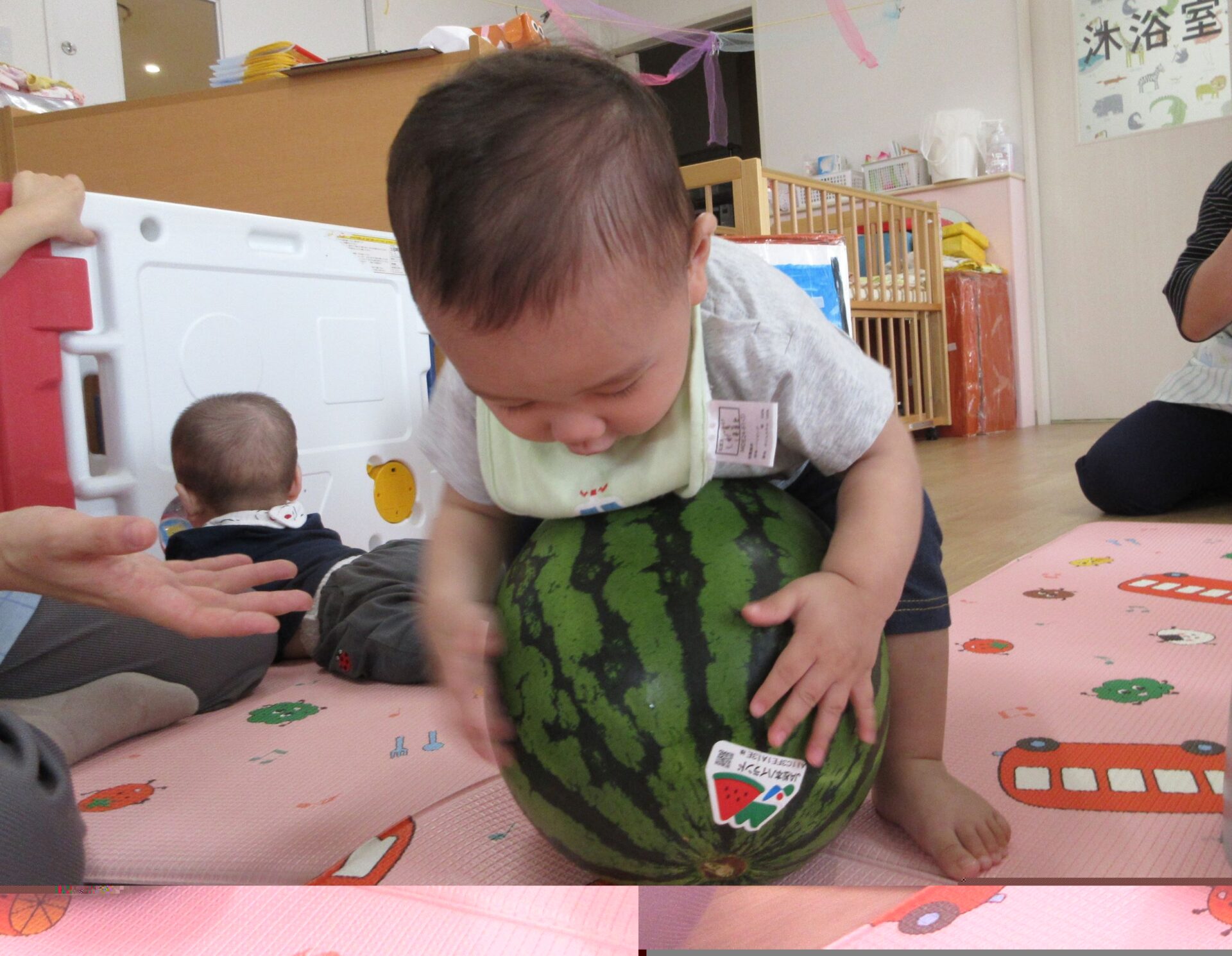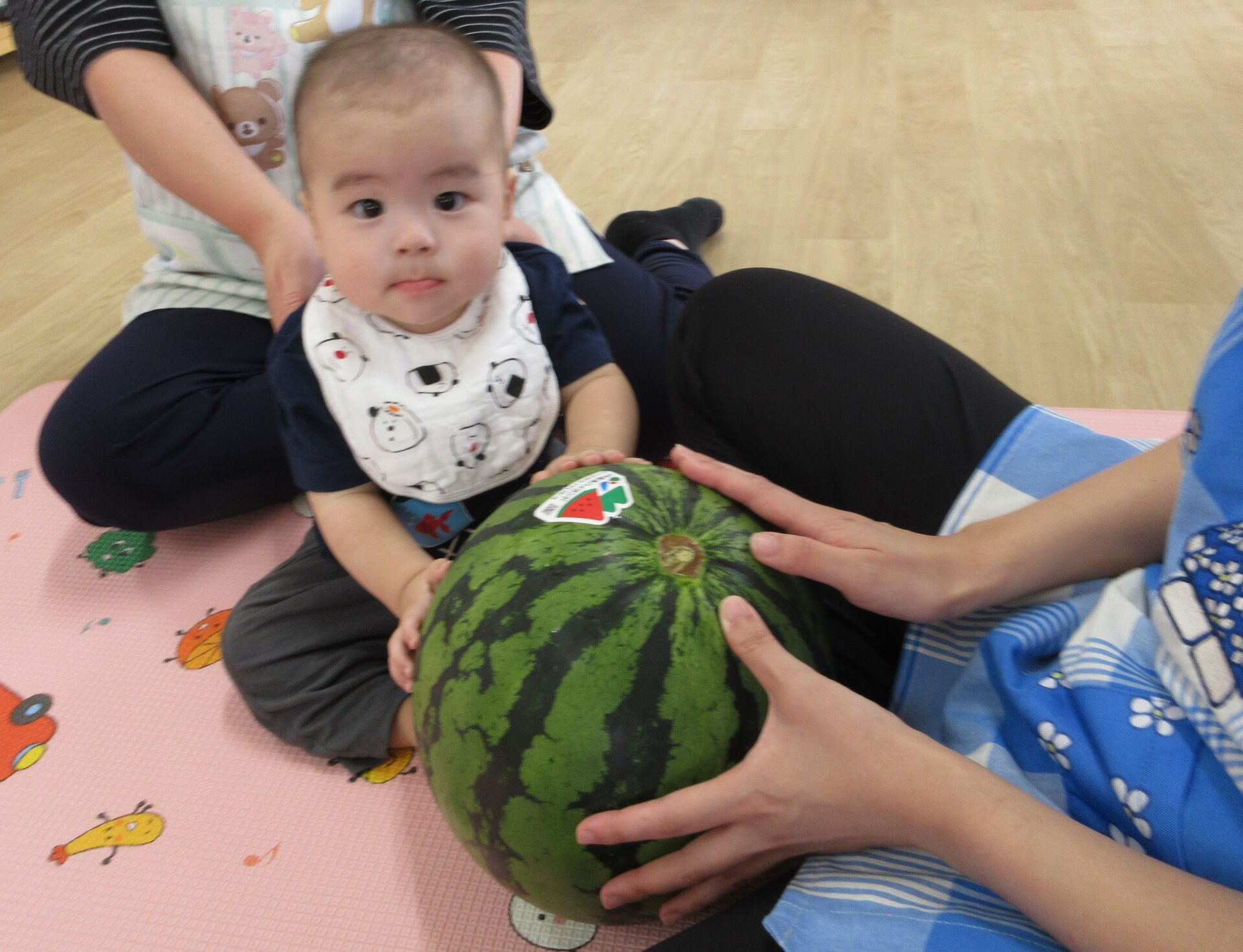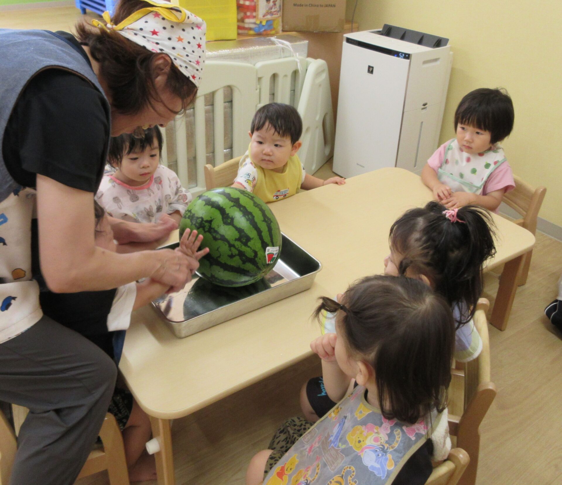 8/22(木)のおやつに出るスイカを、うみぐみとだいちぐみで見せてもらいました!