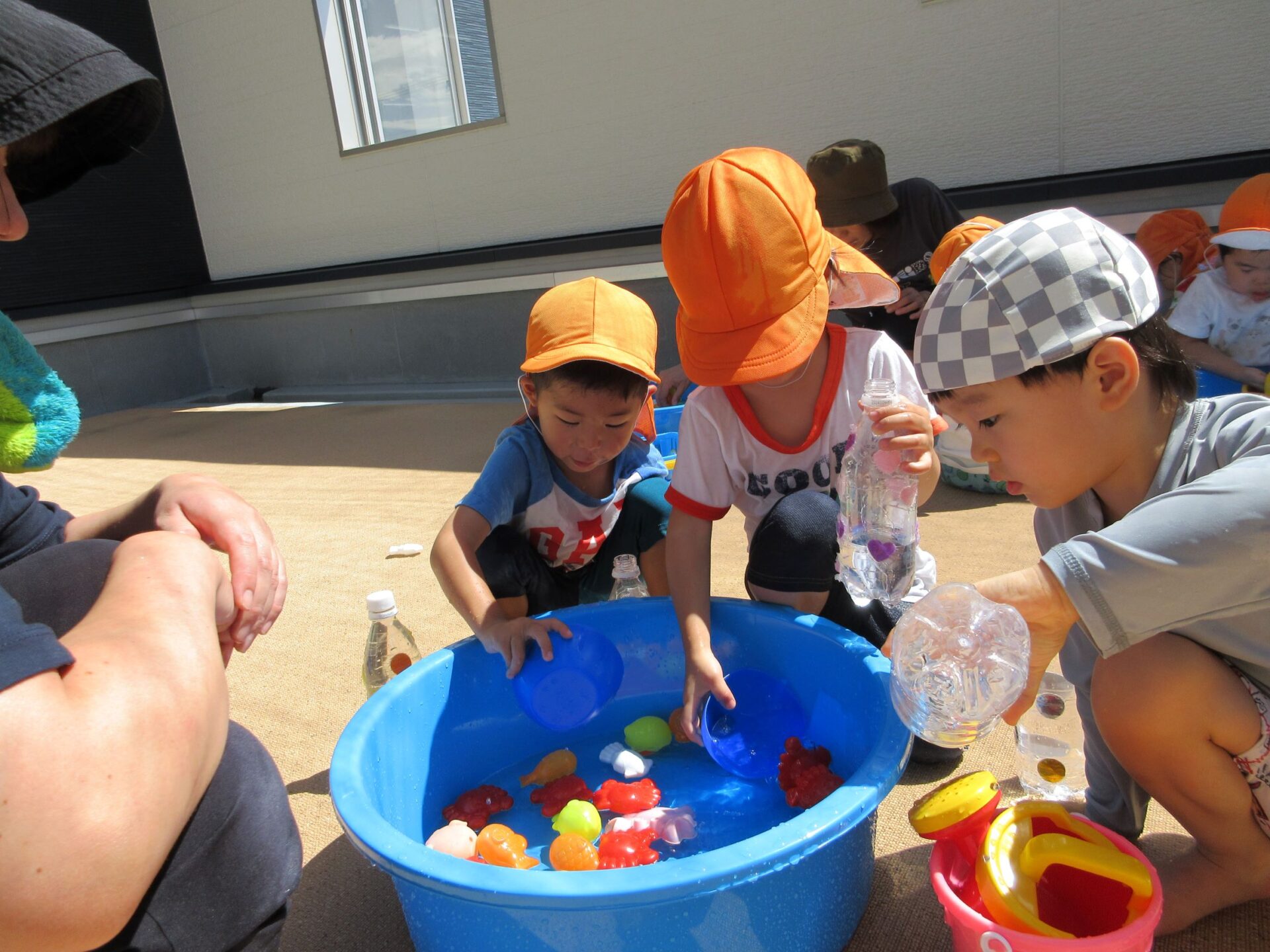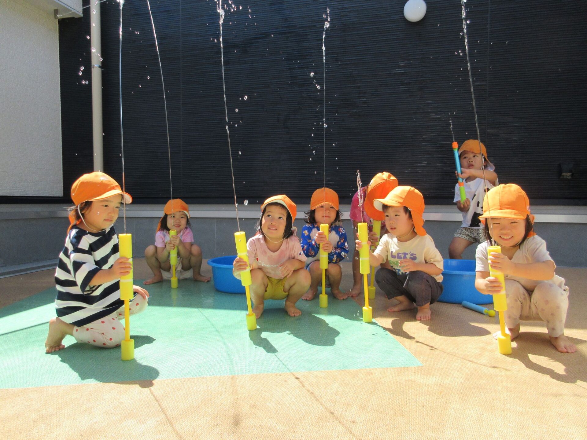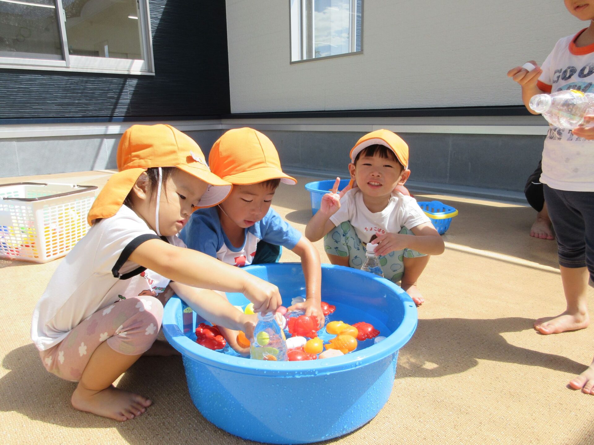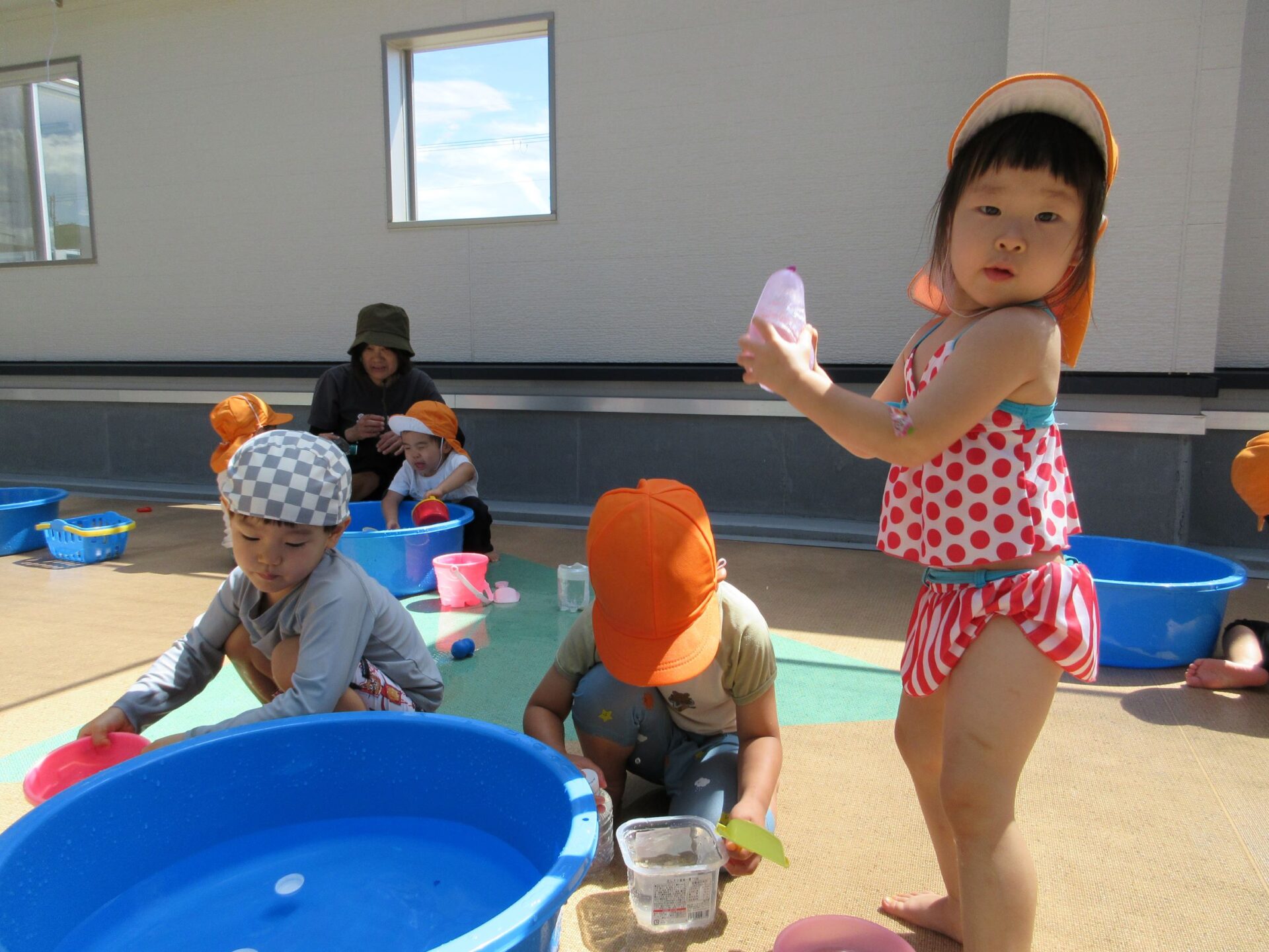 2024.09.04 お知らせ ブログ 水遊びをしました(にじ組) 8月28日(水)にじ組は水遊びをしました。的に向かってお水を発射~! ペットボトルにお水のおもちゃ入るかな? お空に向かってビューン!発射!! お水ちょっとぬるいけど、気持ちいいな! お水~全部発射できたよ~。 どうぞ! 水風船、ぷにゅぷにゅ お魚、ゲット! 発射~!ビューン! もう一つ、水風船をゆっくりゆっくり・・・ 高ーい所から、お水を入れよう!暑いけど、やっぱり夏は楽しいな! 一覧へ戻る