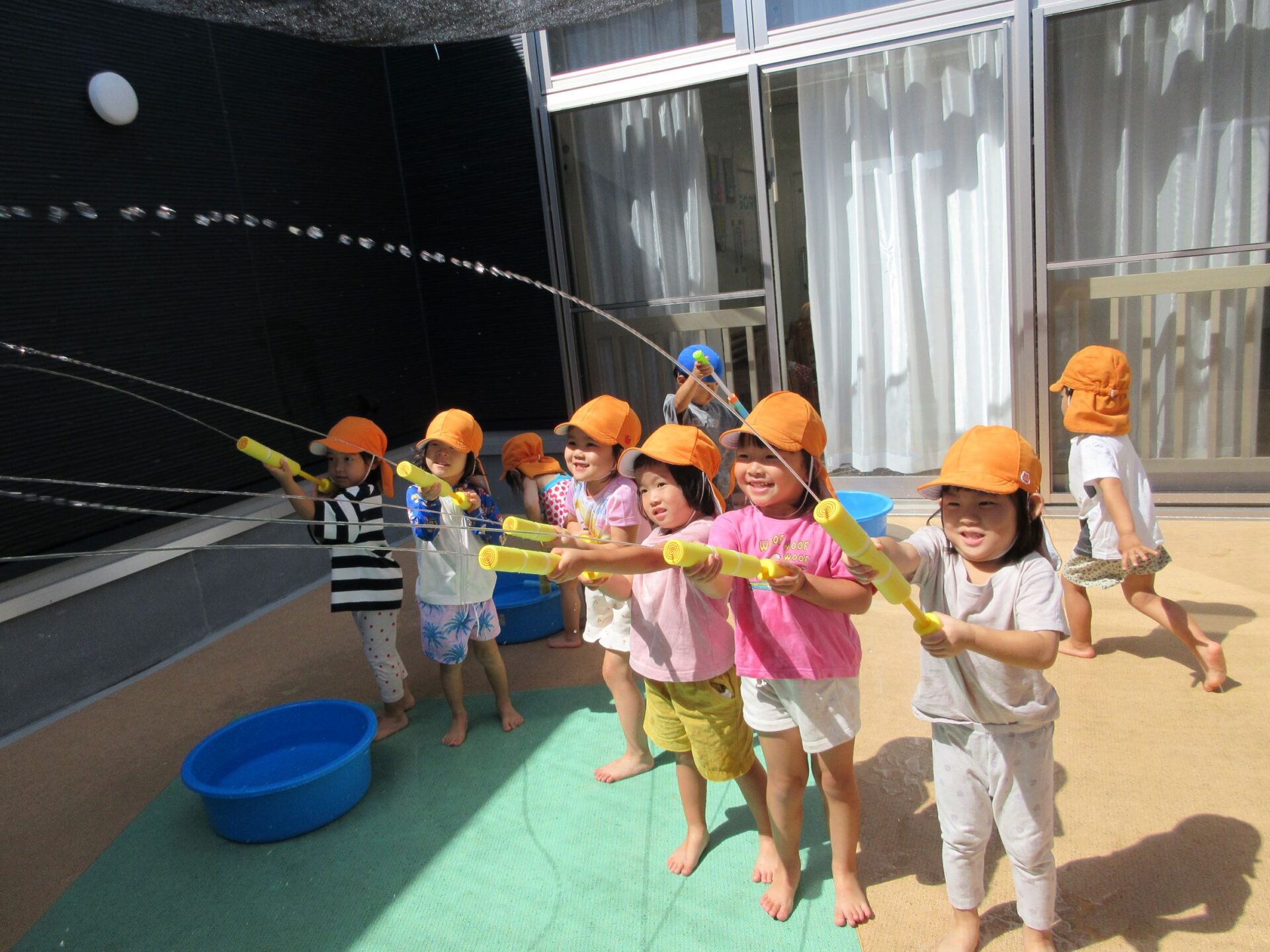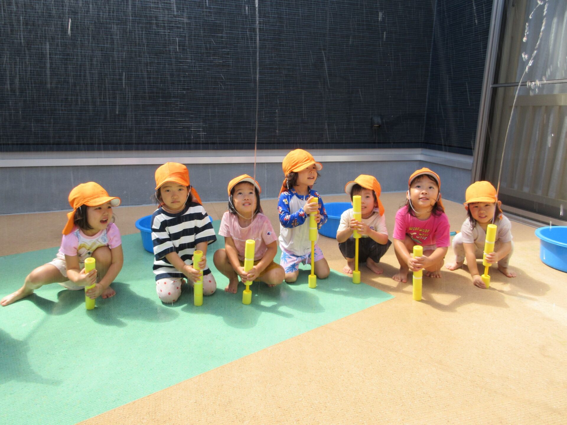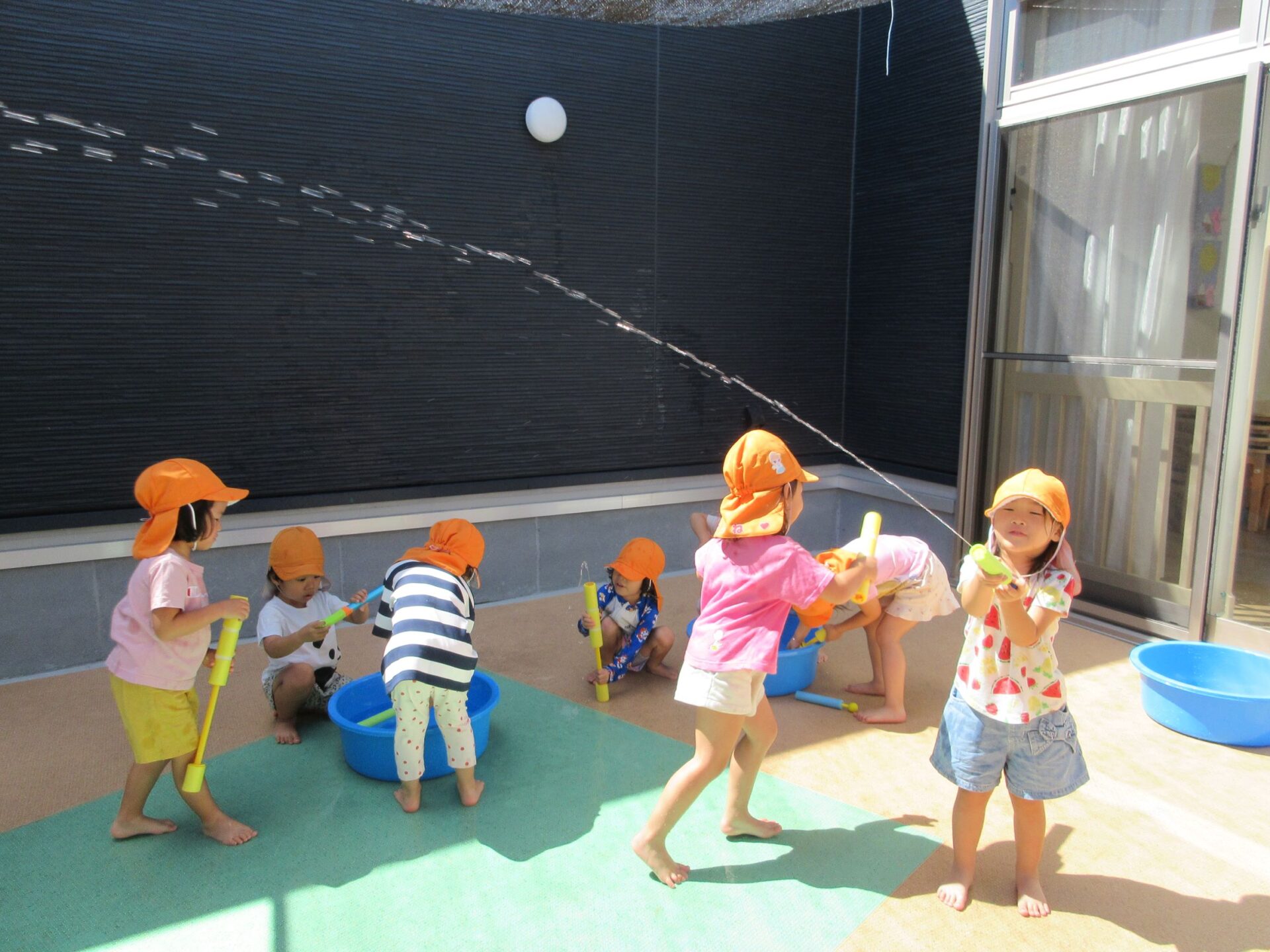 2024.09.04 お知らせ ブログ 水遊びをしました(にじ組) 8月28日(水)にじ組は水遊びをしました。的に向かってお水を発射~! ペットボトルにお水のおもちゃ入るかな? お空に向かってビューン!発射!! お水ちょっとぬるいけど、気持ちいいな! お水~全部発射できたよ~。 どうぞ! 水風船、ぷにゅぷにゅ お魚、ゲット! 発射~!ビューン! もう一つ、水風船をゆっくりゆっくり・・・ 高ーい所から、お水を入れよう!暑いけど、やっぱり夏は楽しいな! 一覧へ戻る