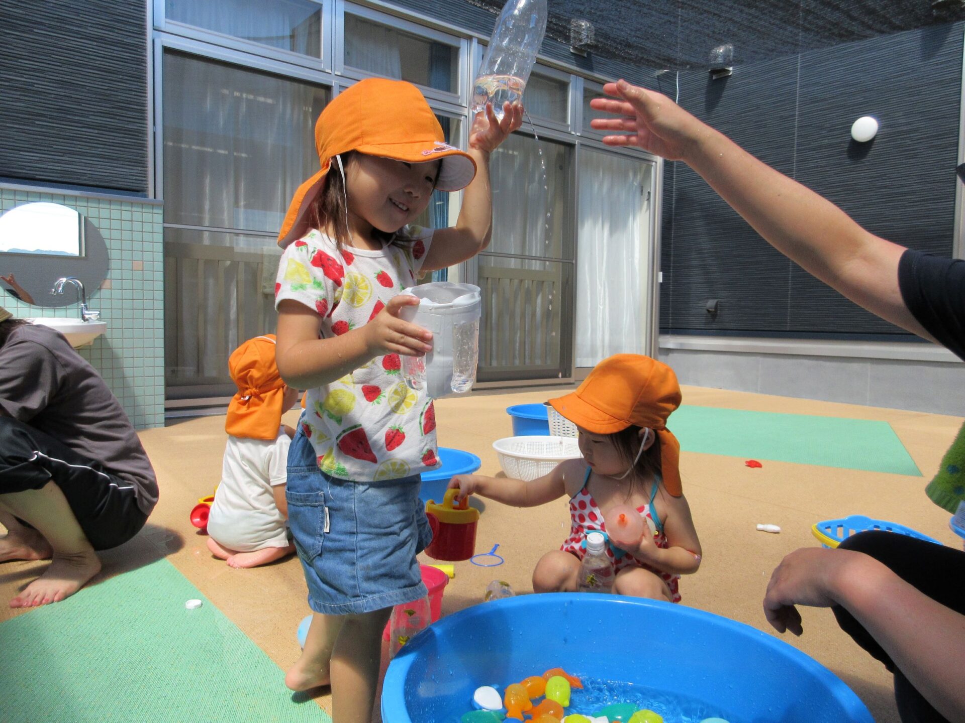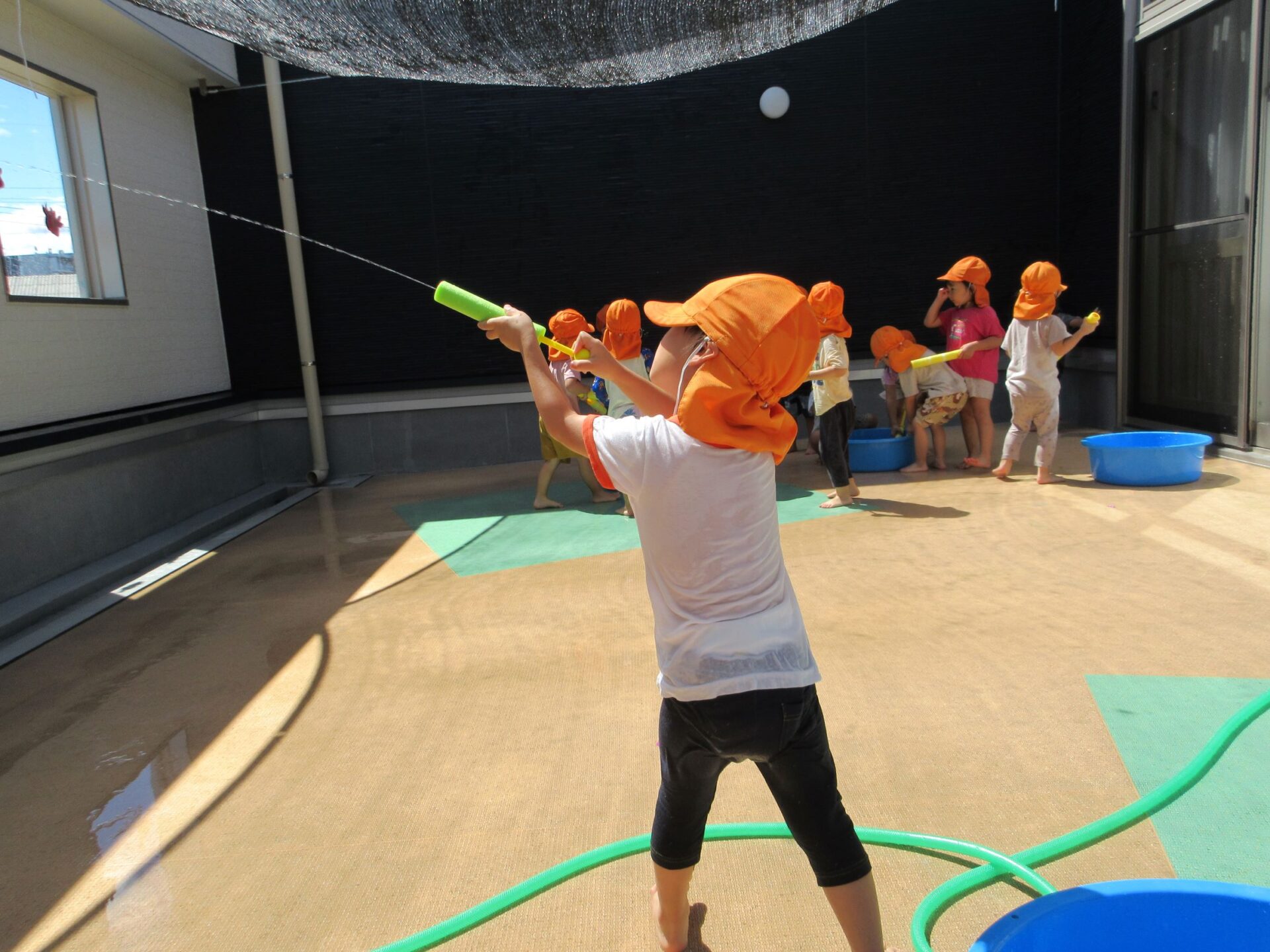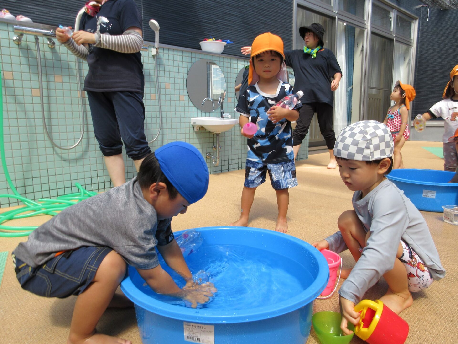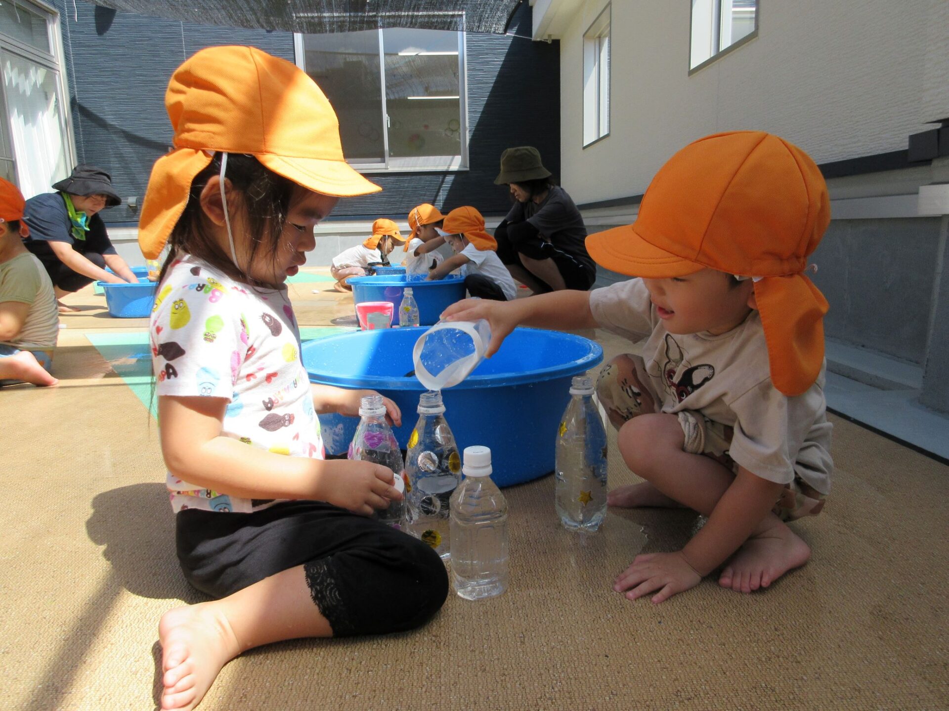 2024.09.04 お知らせ ブログ 水遊びをしました(にじ組) 8月28日(水)にじ組は水遊びをしました。的に向かってお水を発射~! ペットボトルにお水のおもちゃ入るかな? お空に向かってビューン!発射!! お水ちょっとぬるいけど、気持ちいいな! お水~全部発射できたよ~。 どうぞ! 水風船、ぷにゅぷにゅ お魚、ゲット! 発射~!ビューン! もう一つ、水風船をゆっくりゆっくり・・・ 高ーい所から、お水を入れよう!暑いけど、やっぱり夏は楽しいな! 一覧へ戻る