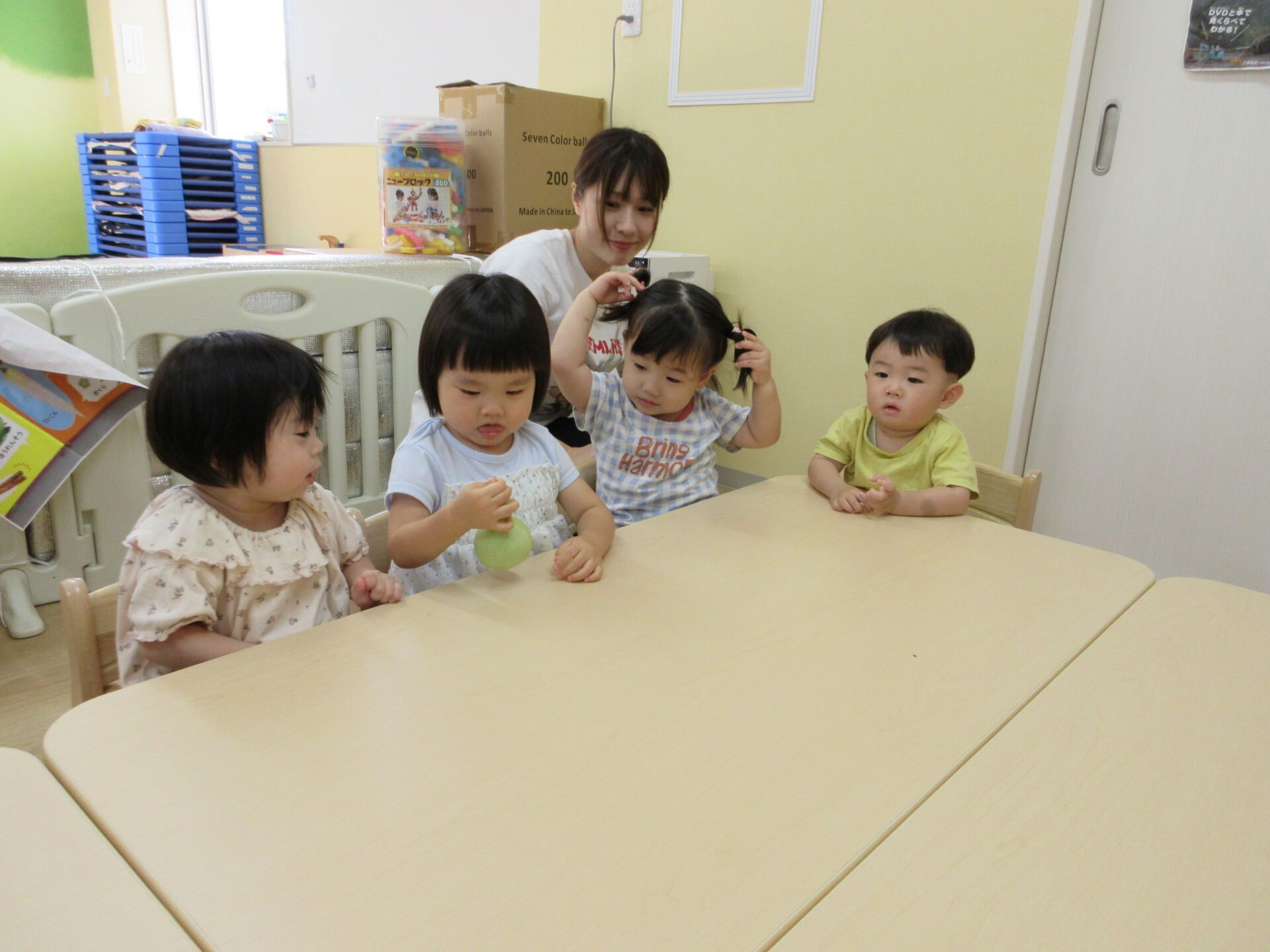 ちぎったり丸めたり、つぶしたり、それぞれ楽しんでいます。
