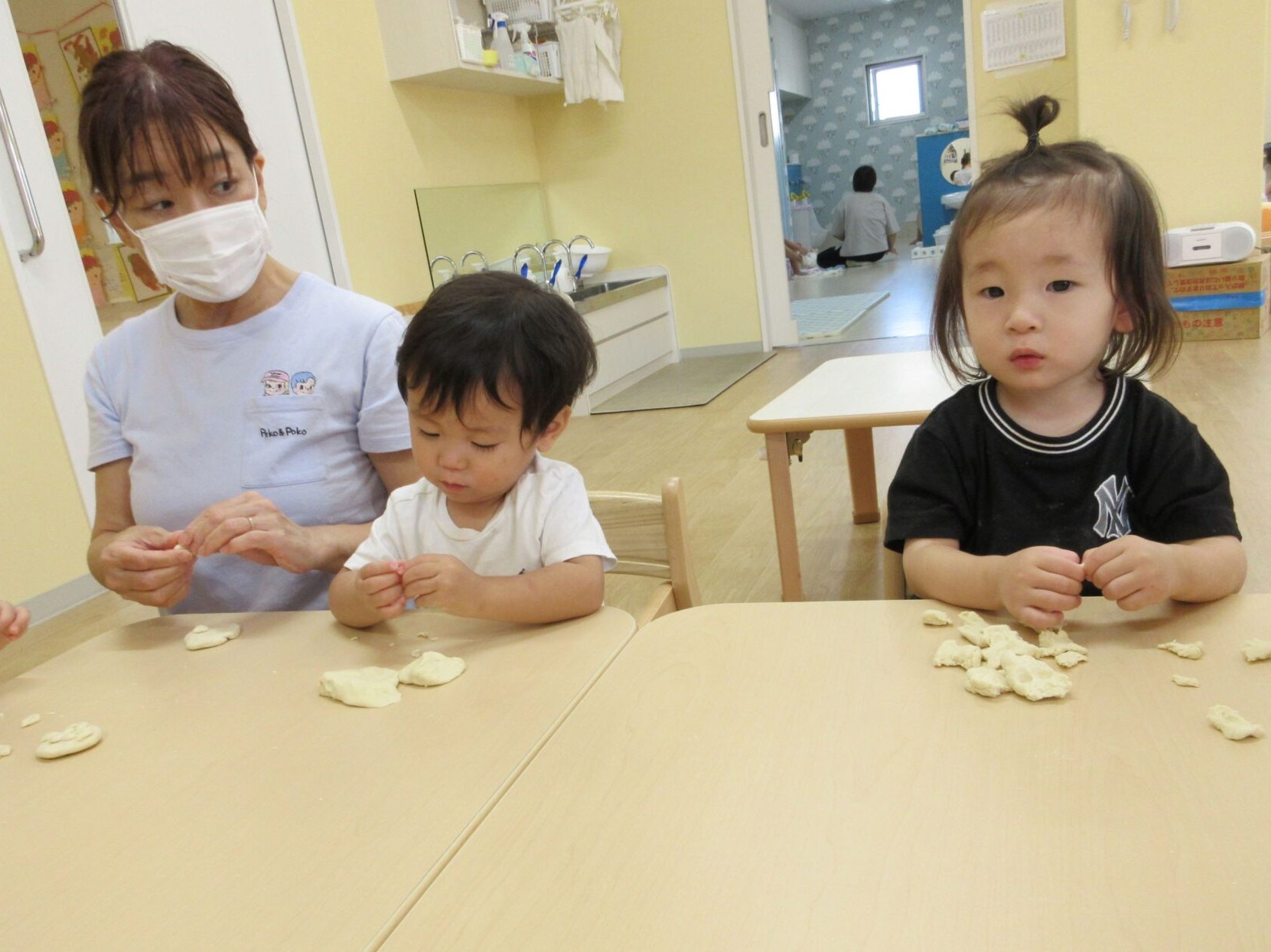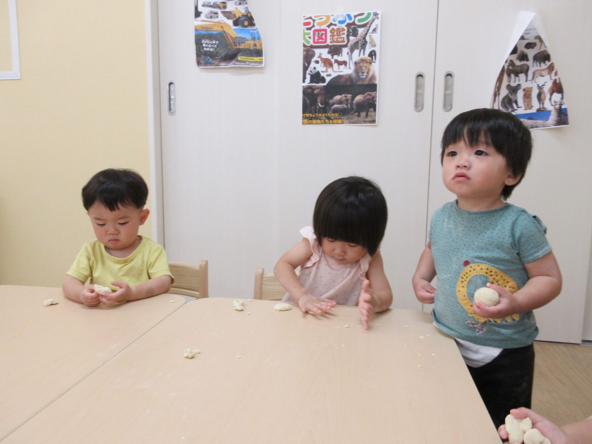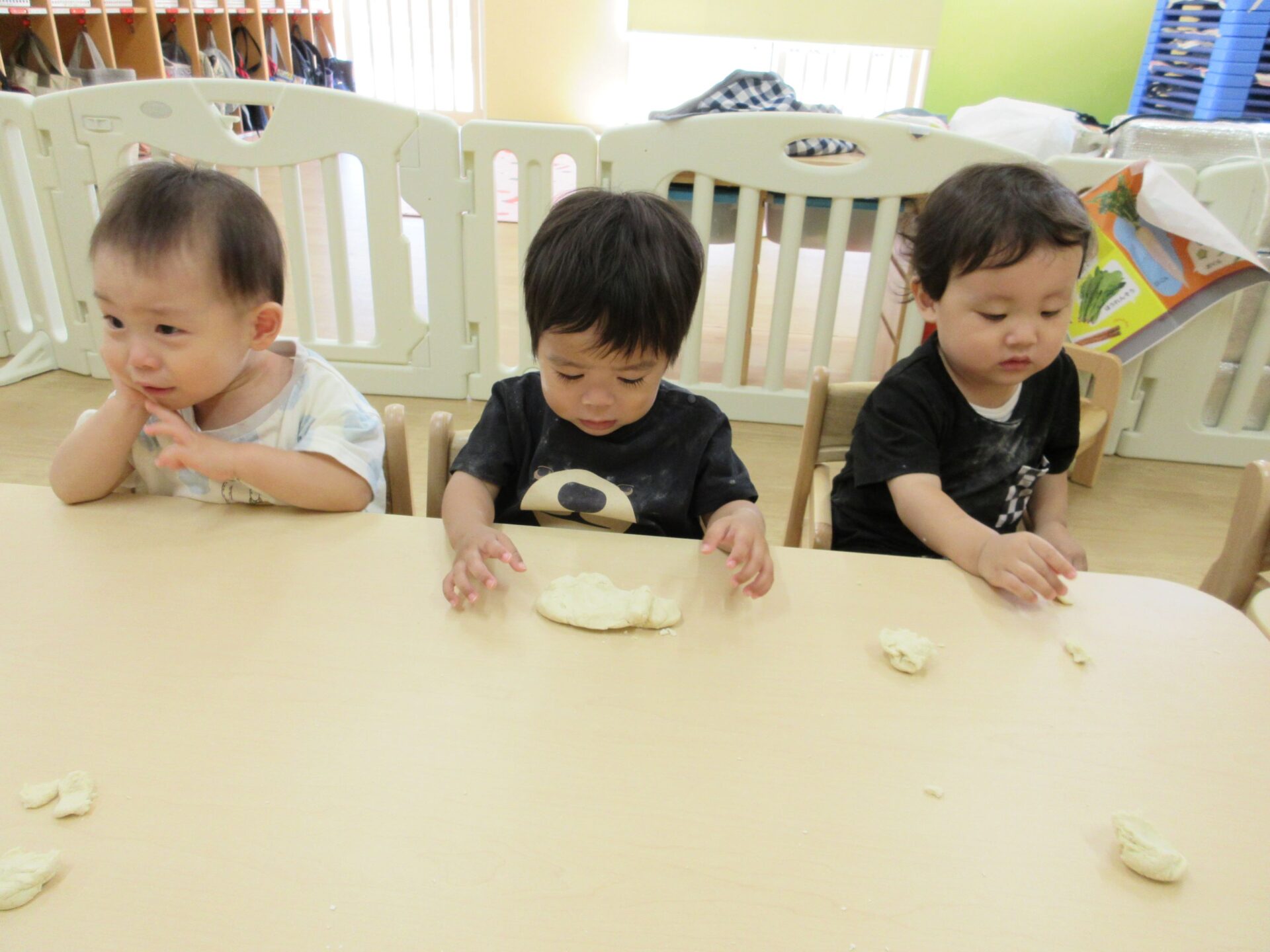 そのあとは、みんなで小麦粉ねんどをして遊びました。小麦粉粘土は二回目です。もう、扱いもお手の物ですね。