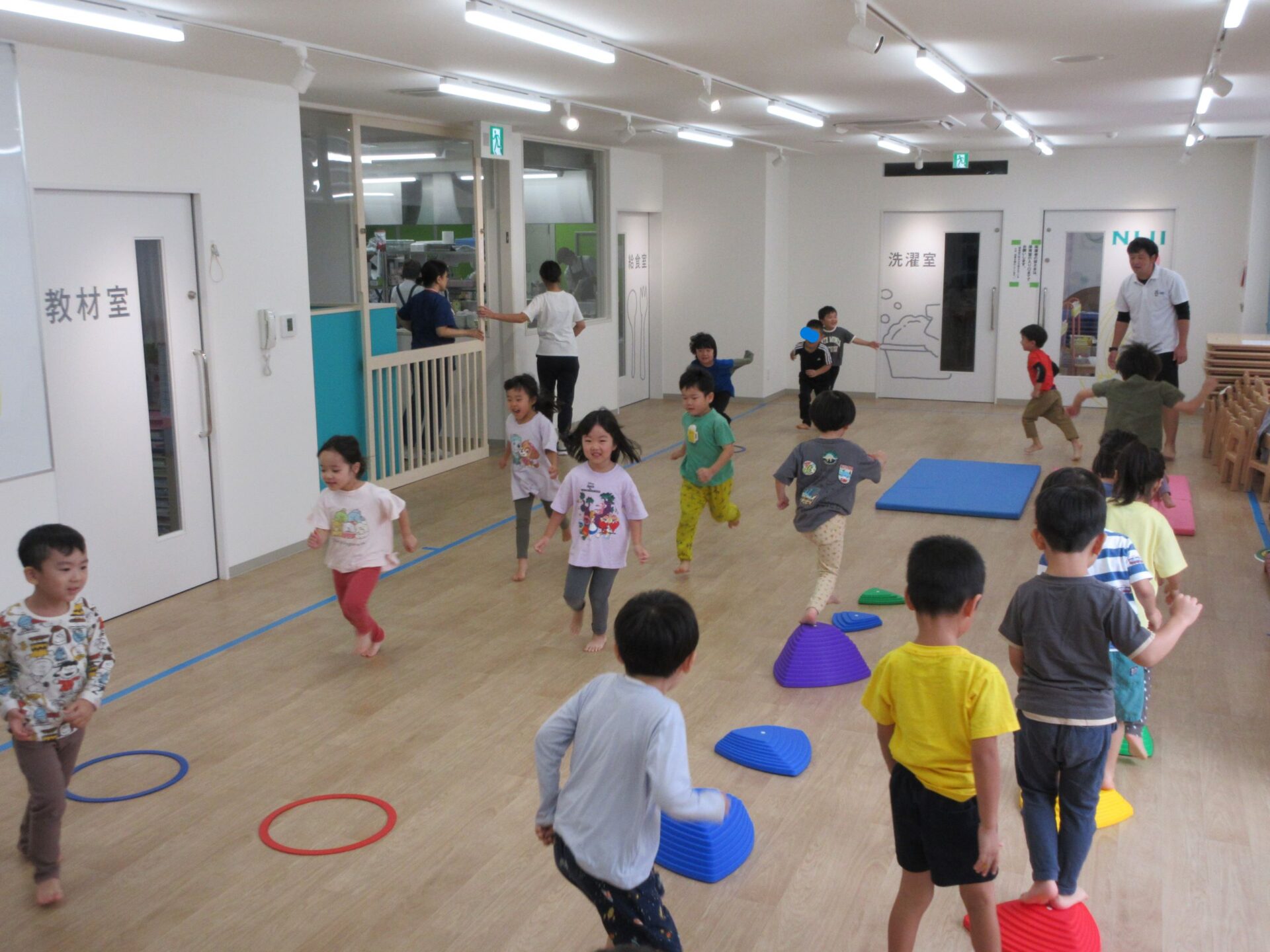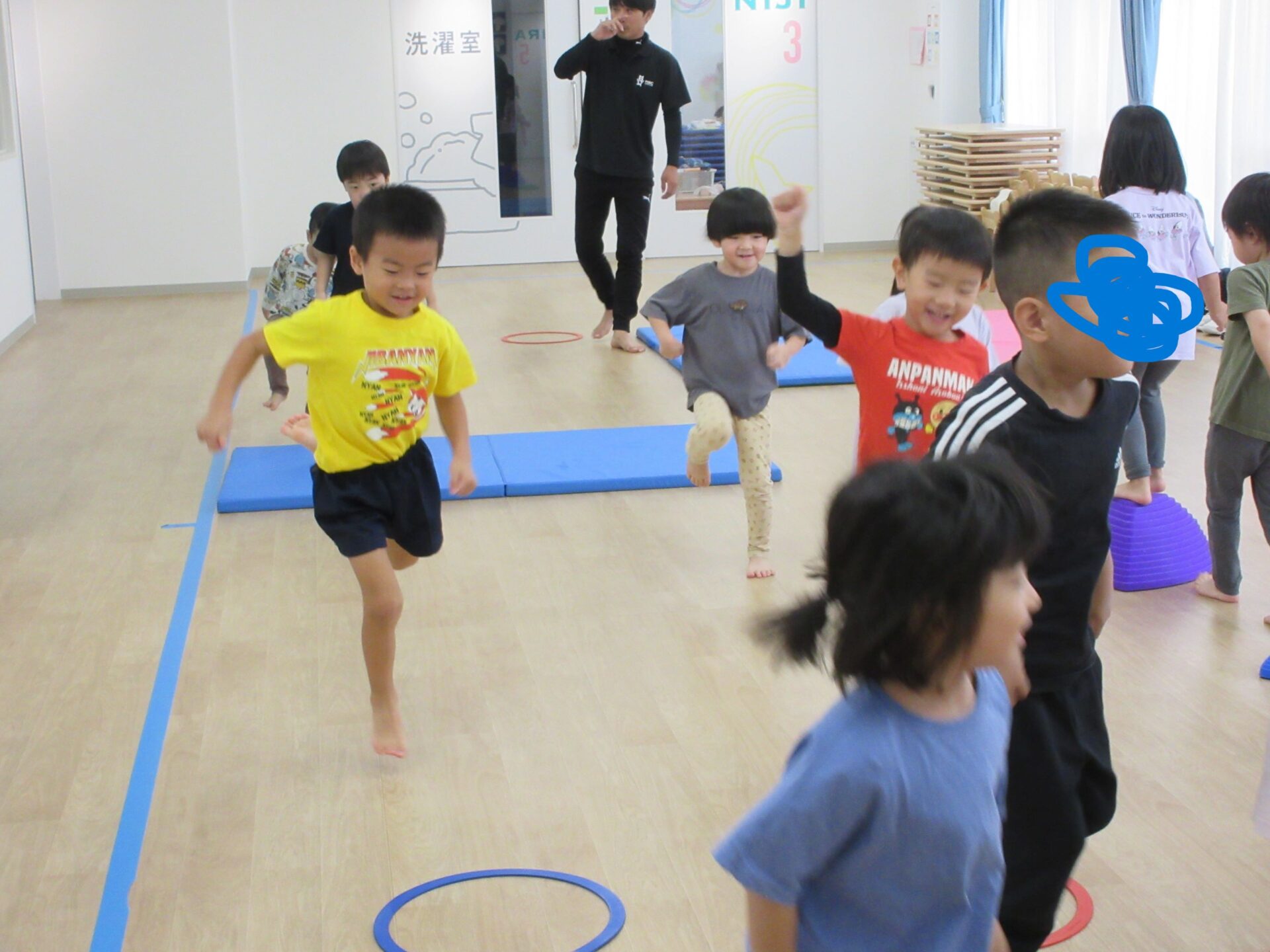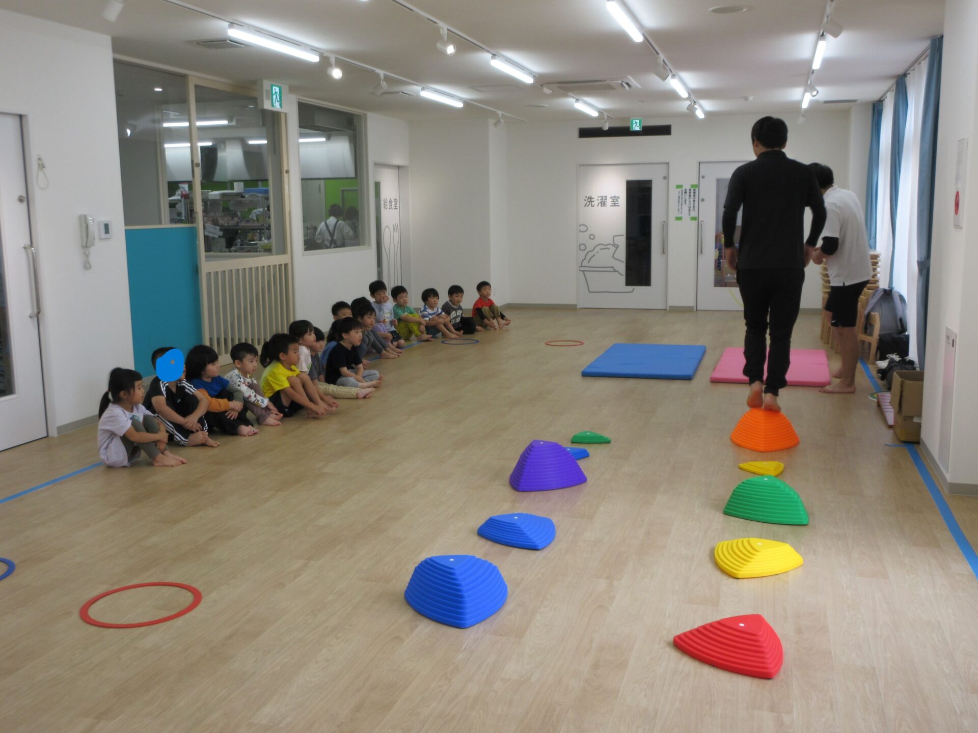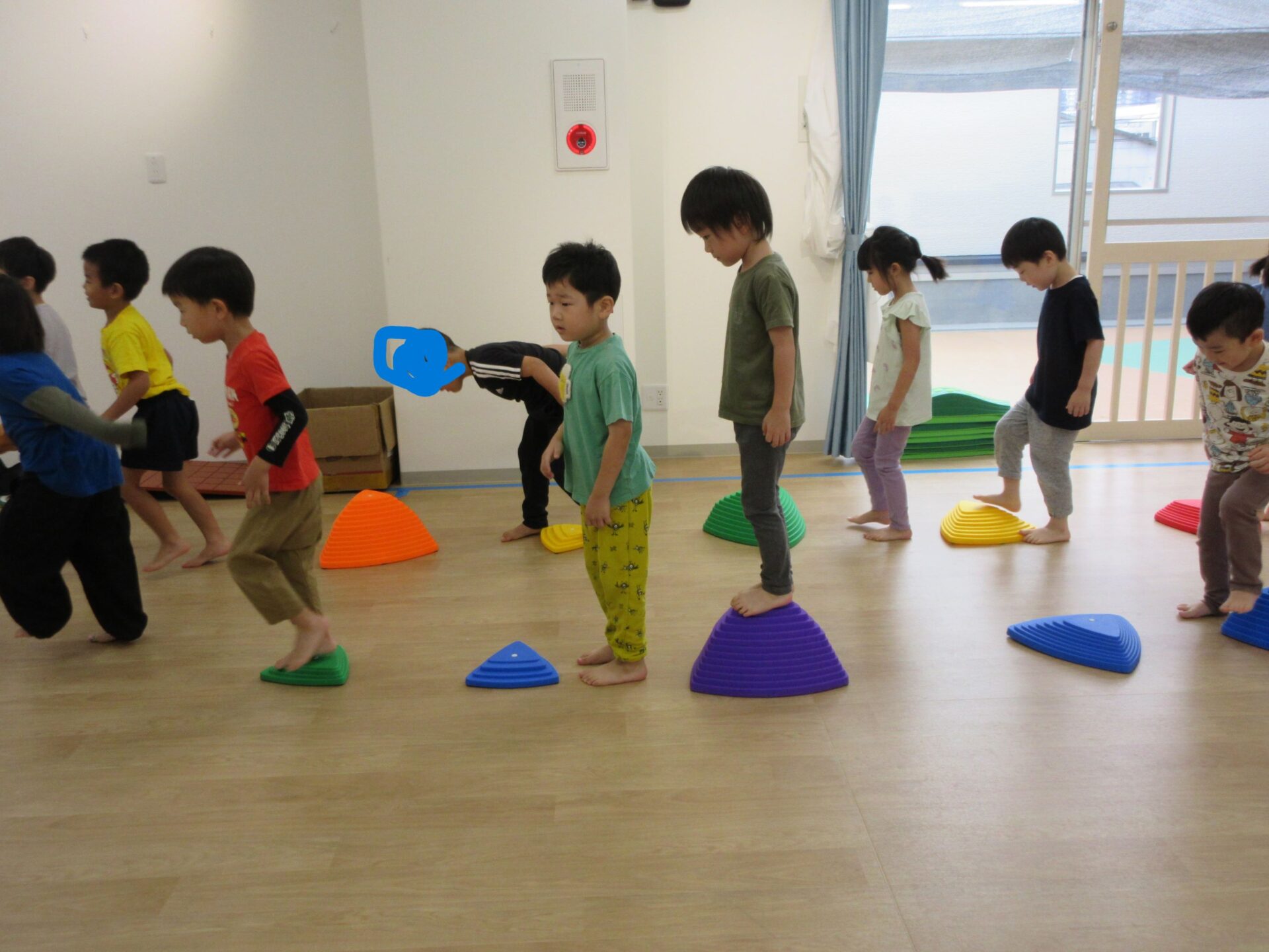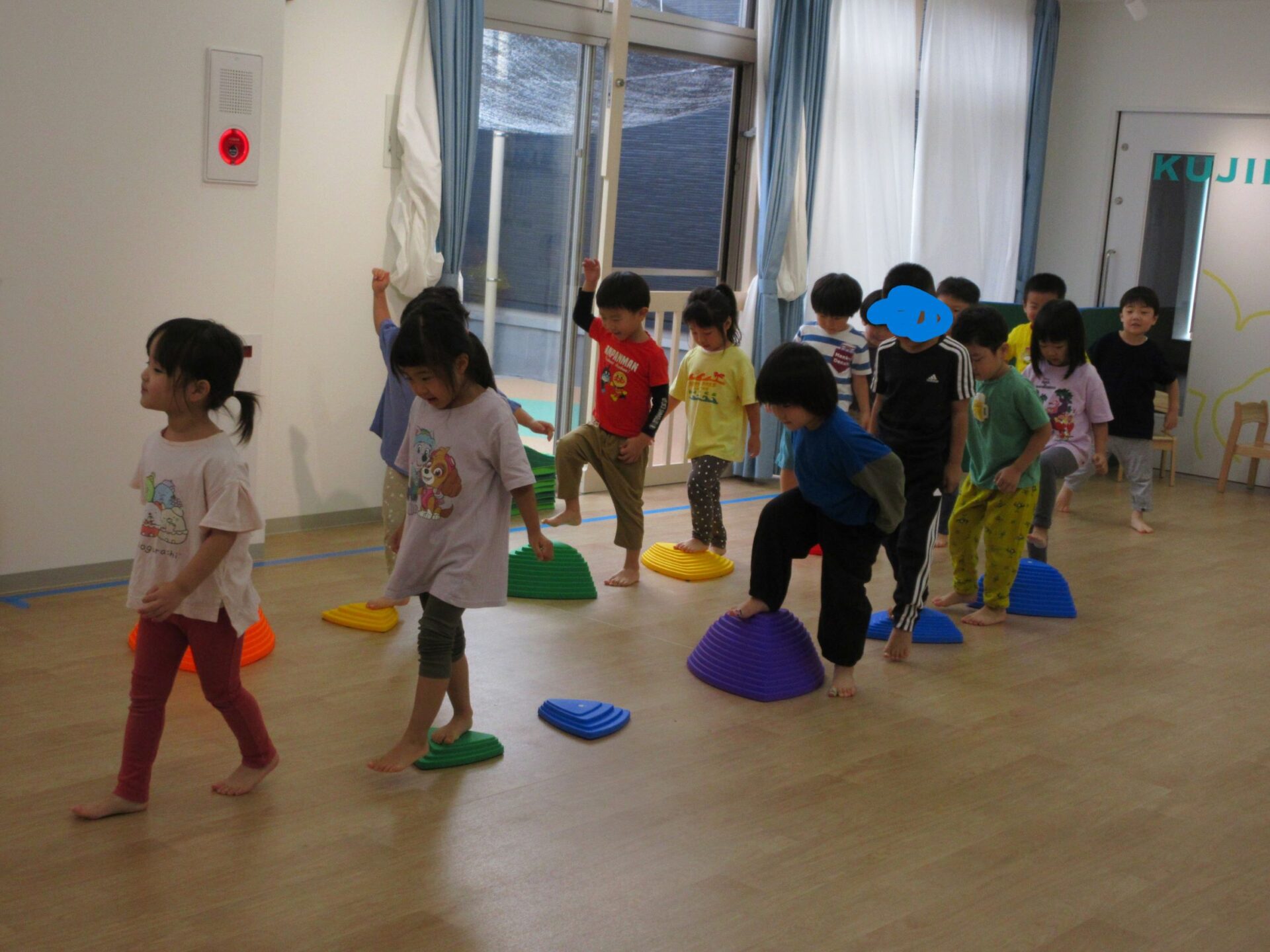 2024.10.15 お知らせ ブログ 運動遊び教室2回目(そら組) 今日はドキドキ二回目の運動遊びです。体操の先生と一緒に体を動かしますよ~。ケンケンしたり、かた足立ちをしまーす。 でこぼこ小山を歩きますよ。楽しいな! 高い山と低い山がありますね。上手にあるけたかな? マットのところで左ケンケンと右ケンケンを交代です。できたかな?ちょっと難しい! ここで前転です。くるり。みんな、上手に回ってました。すごいですね! 今日はこれでおしまいです。また来月をお楽しみに! 一覧へ戻る