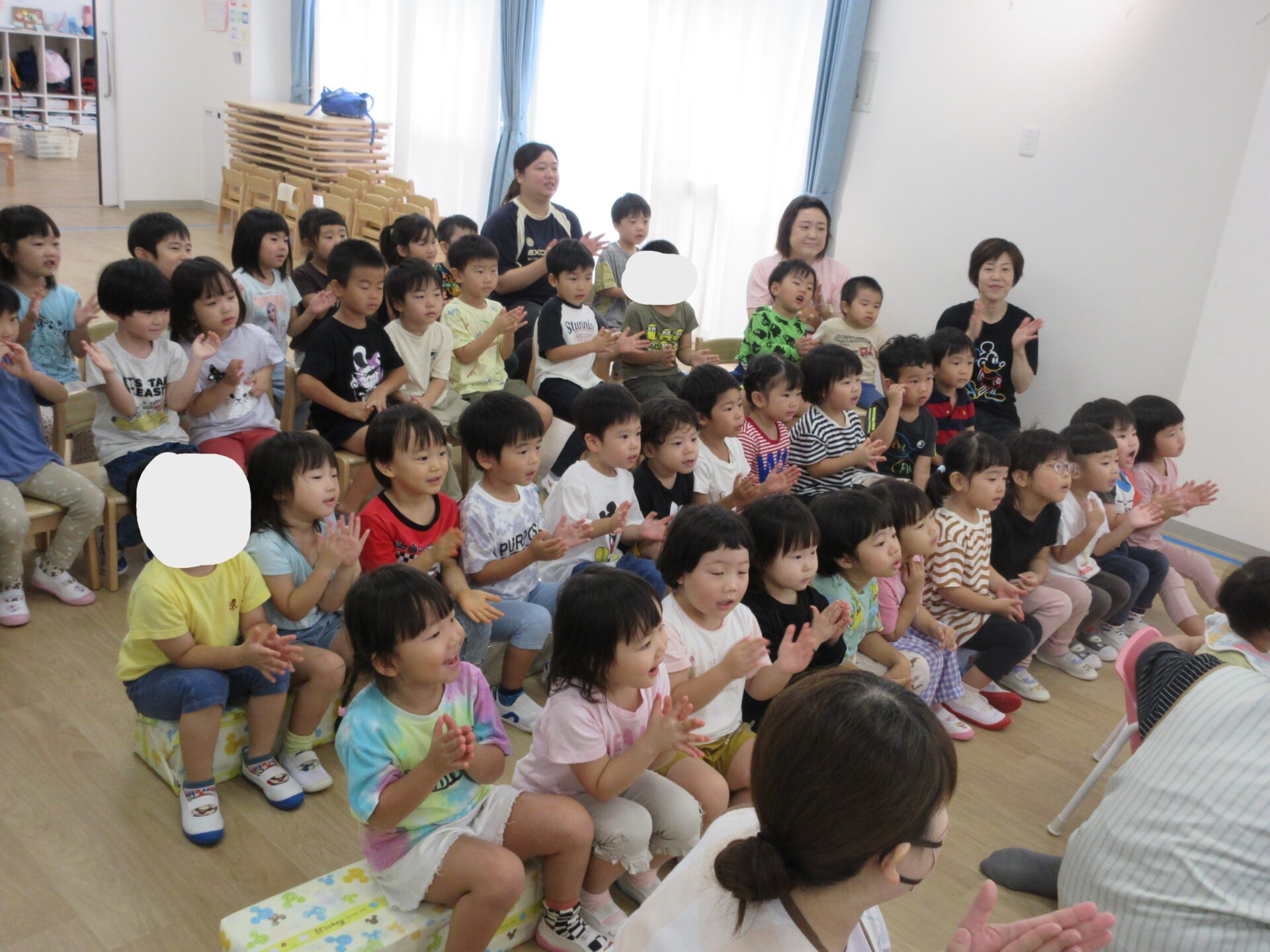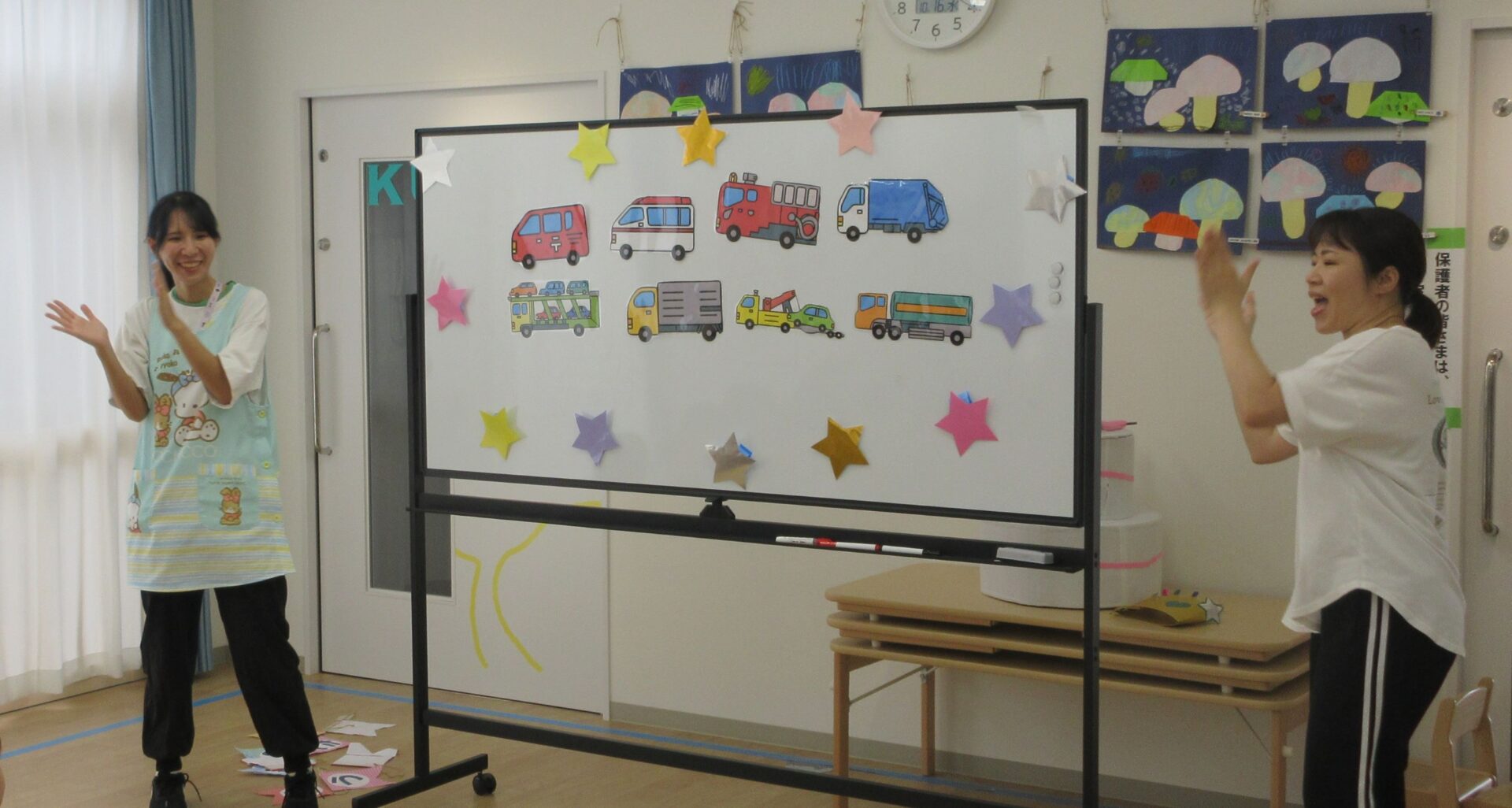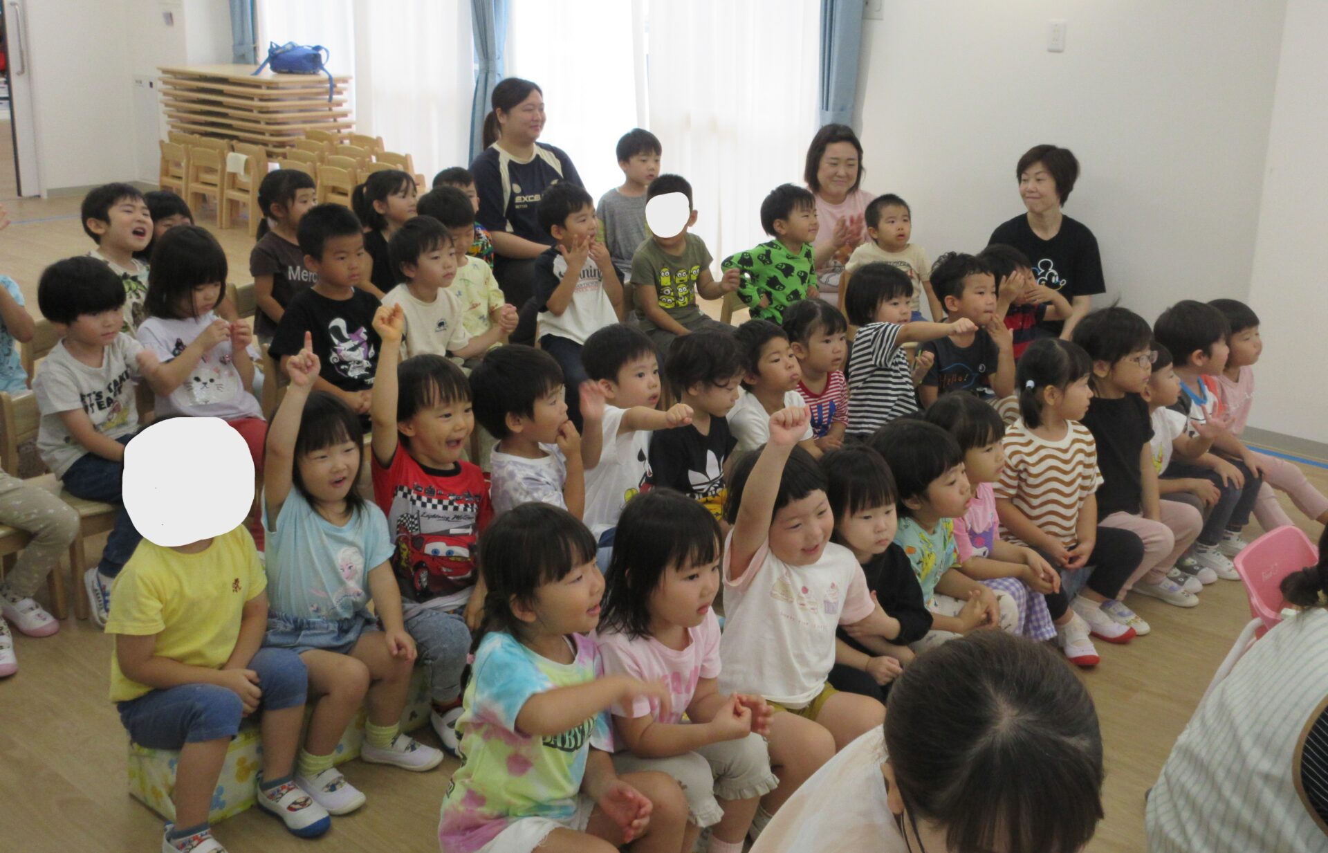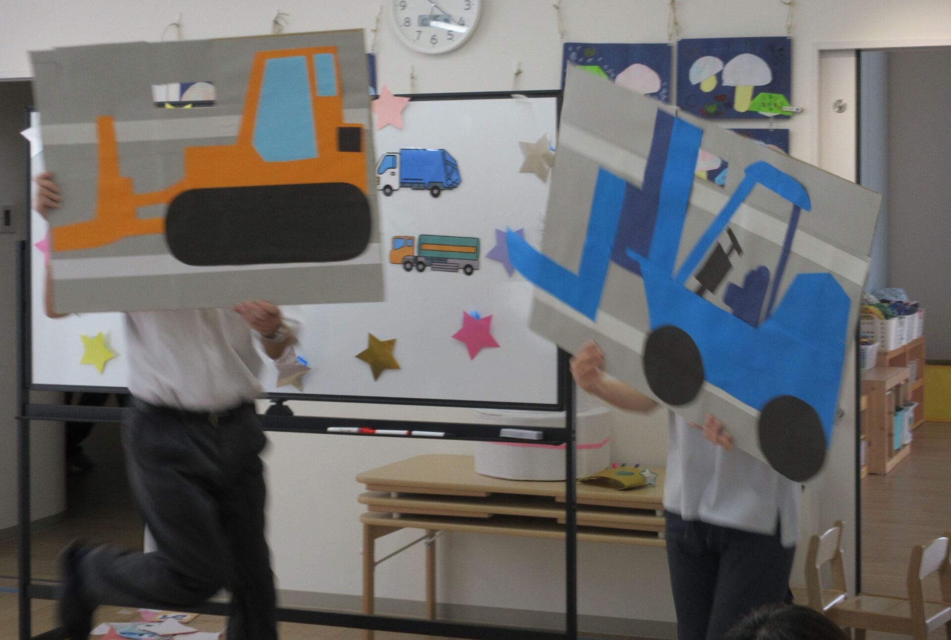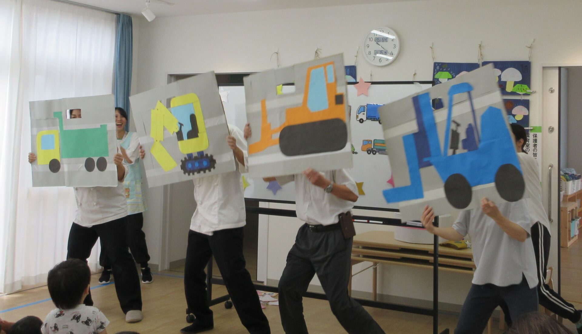 2024.10.17 お知らせ ブログ 10月の誕生会🎂 10/16(水)10月生まれのお友だちの誕生会がありました。10月は3名のお友だちが誕生日を迎えます✨(1名欠席) みんなの前に出て少しドキドキしたけれど、インタビューにもこたえられましたよ! おたんじょうびおめでとうございます!! 「はたらくくるま」のペープサートがはじまりました🚙色々な車が次々に出てきます♪ みんなも音楽に合わせてノリノリです♪ 大きい車も出てきましたよ!こちらもノリノリです♪ お顔が少し見えます!誰が運転していたのかな??みんなにクイズです。 給食の先生も出てきました!!お名前分かったかな!? 「10月生まれのみんな!おたんじょうびおめでとう!!」 一覧へ戻る