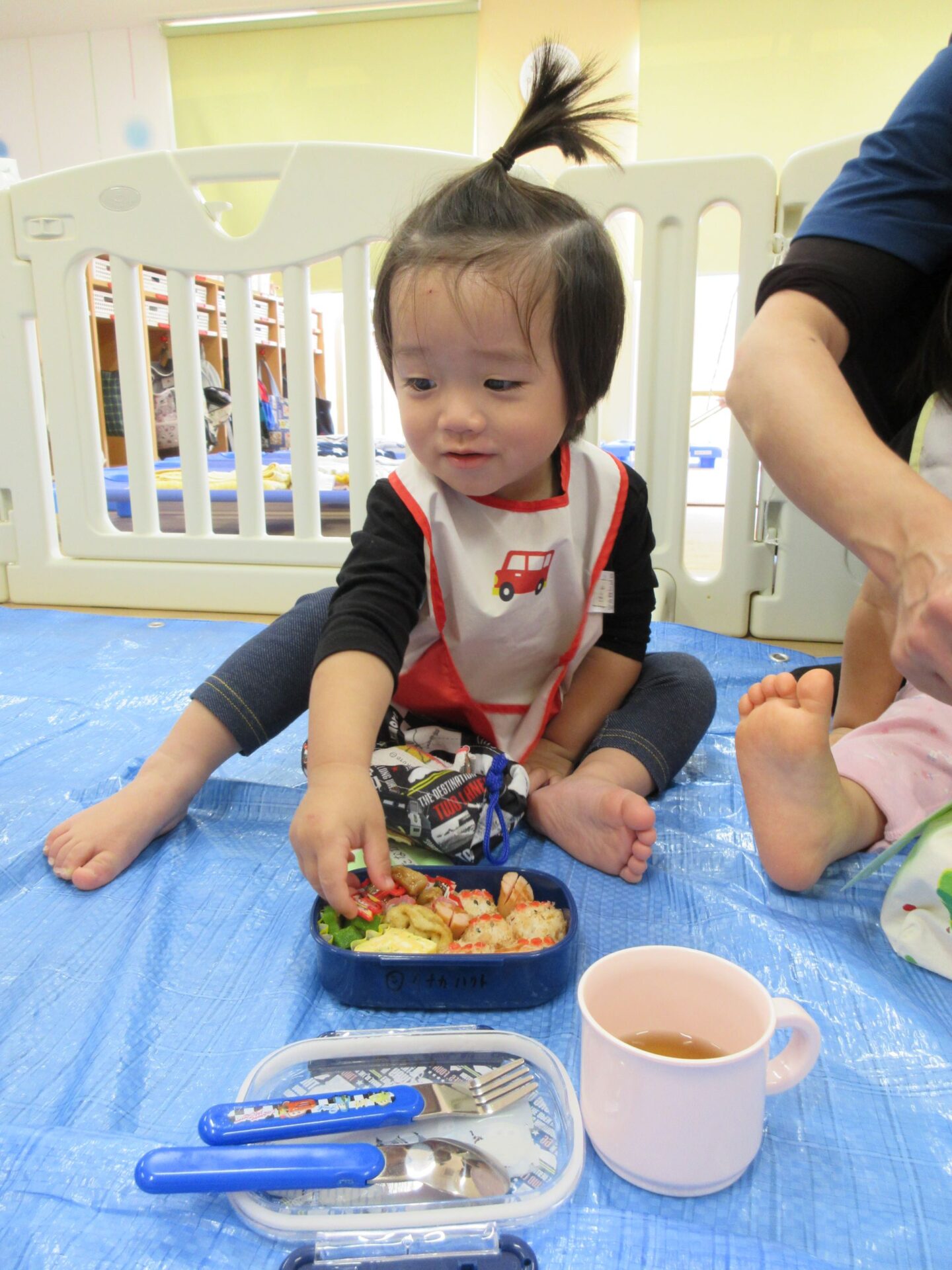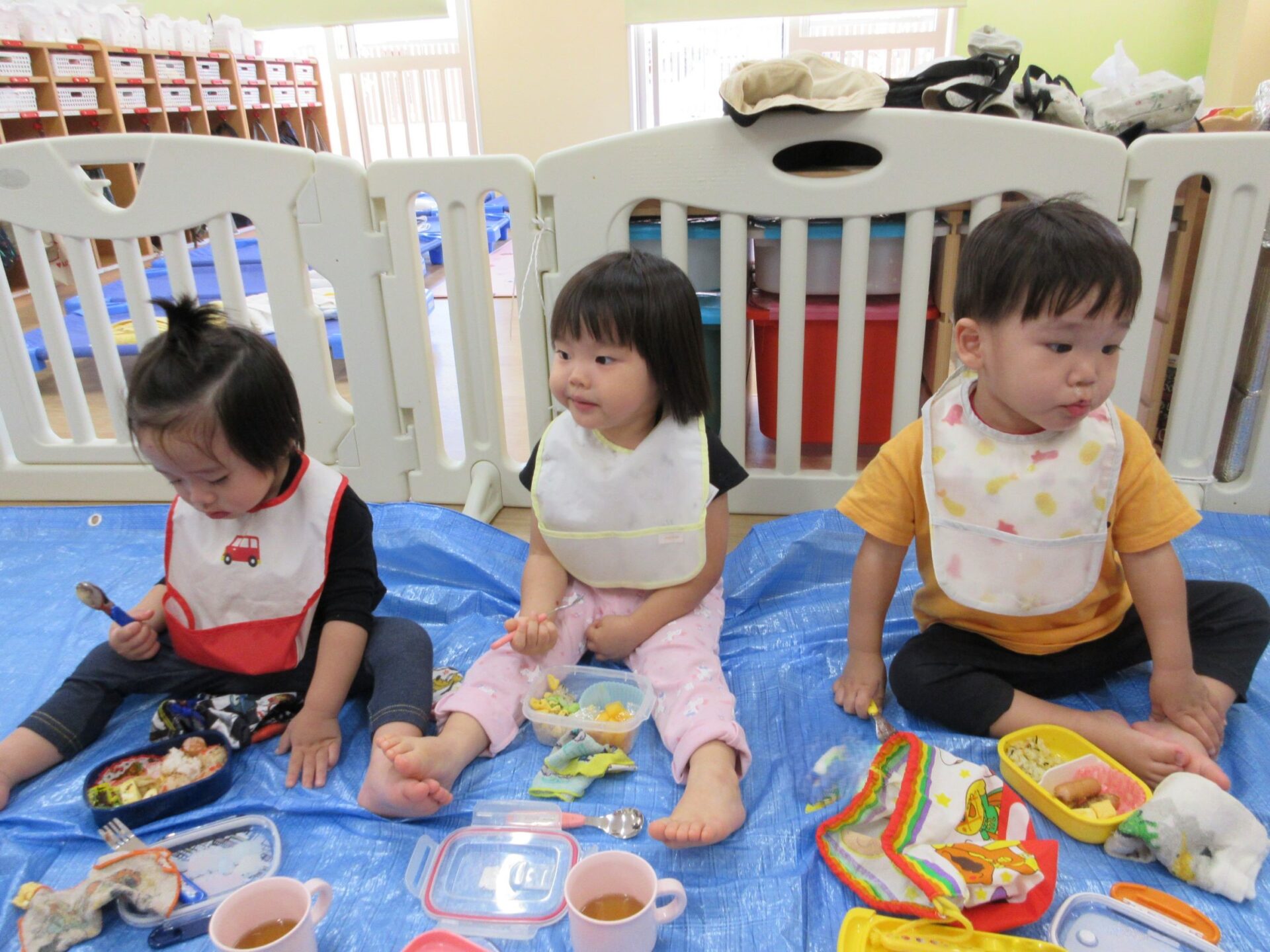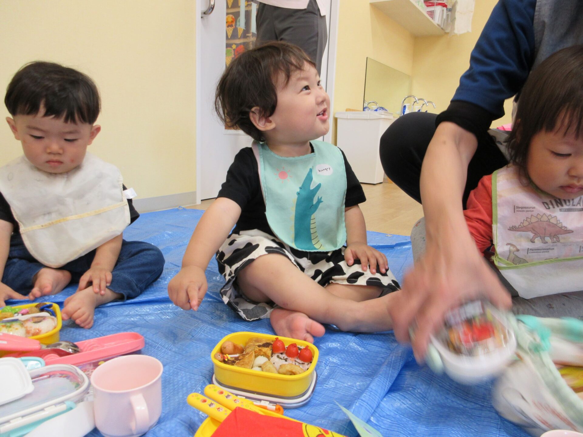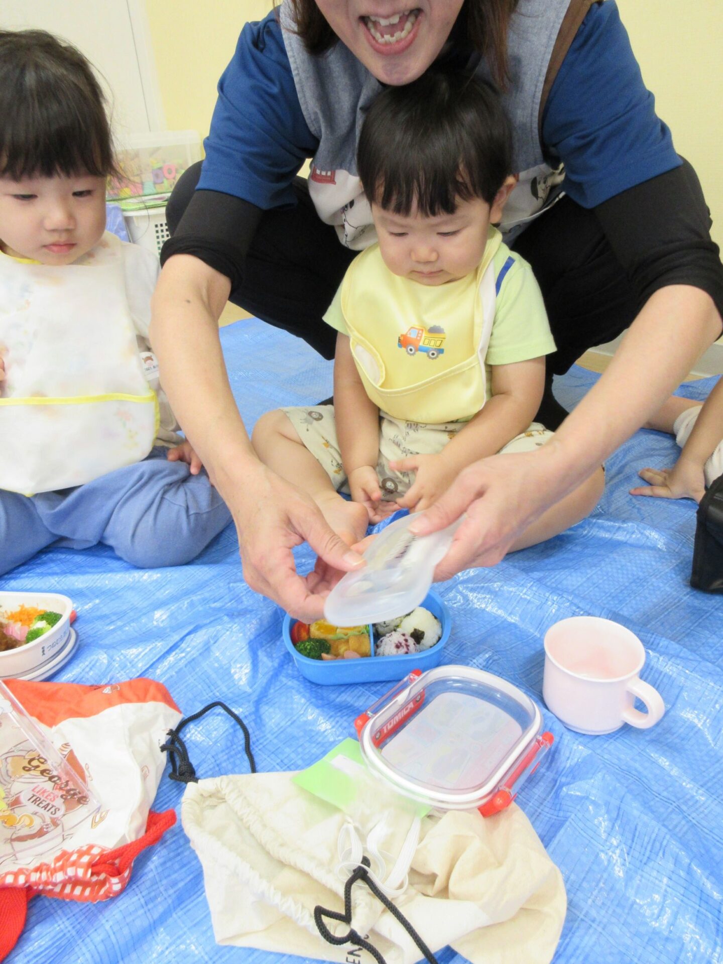 2024.10.23 お知らせ ブログ 楽しかったよ、お散歩遠足 (だいち組)後半 さあ、公園で遊んだ後はお楽しみのお弁当です!先生と一緒に開けますよ~。わくわく!どんなお弁当かな? お友だちのも、気になりますね。おいしそう! みてみて、ぼくのおべんとう!おいしそうでしょ! お家の人の愛情がいっぱいのお弁当ですね。 にこり! 早くたべたいな! いただきまーす♪ もぐもぐ、おいしいね! いっぱい食べますよ~ 公園は楽しかったし、お弁当もおいしかったし、大満足の一日でした! 一覧へ戻る