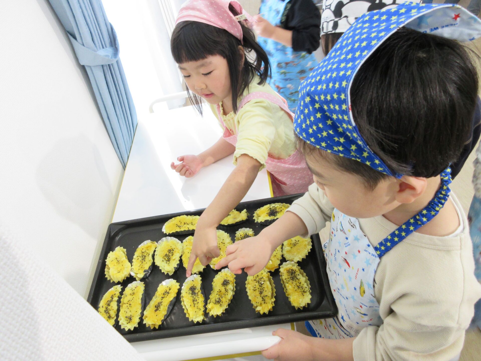 そして、黒ゴマをパラパラ。ポテトが隠れるくらいたっぷりのお友だちもいました!