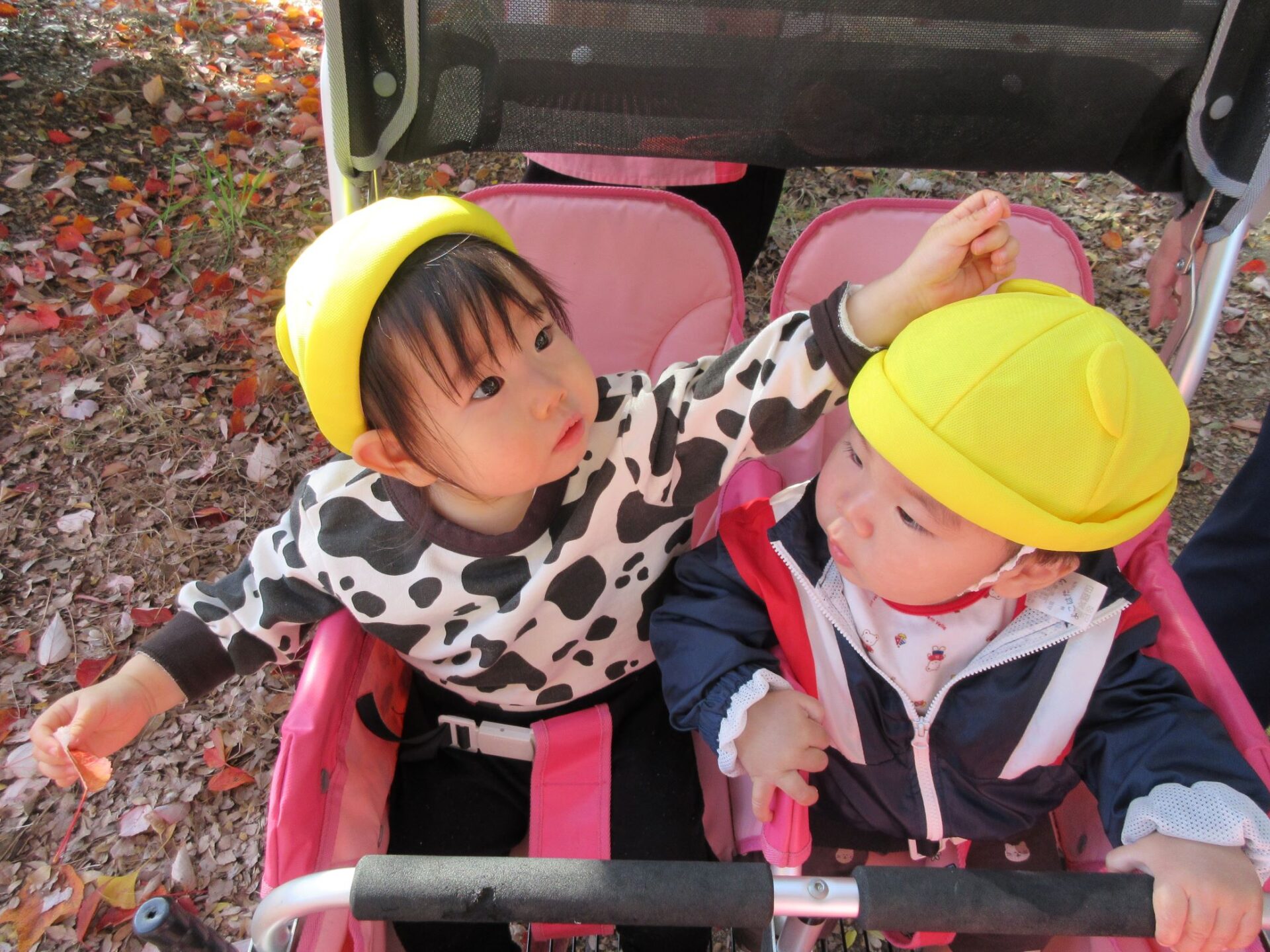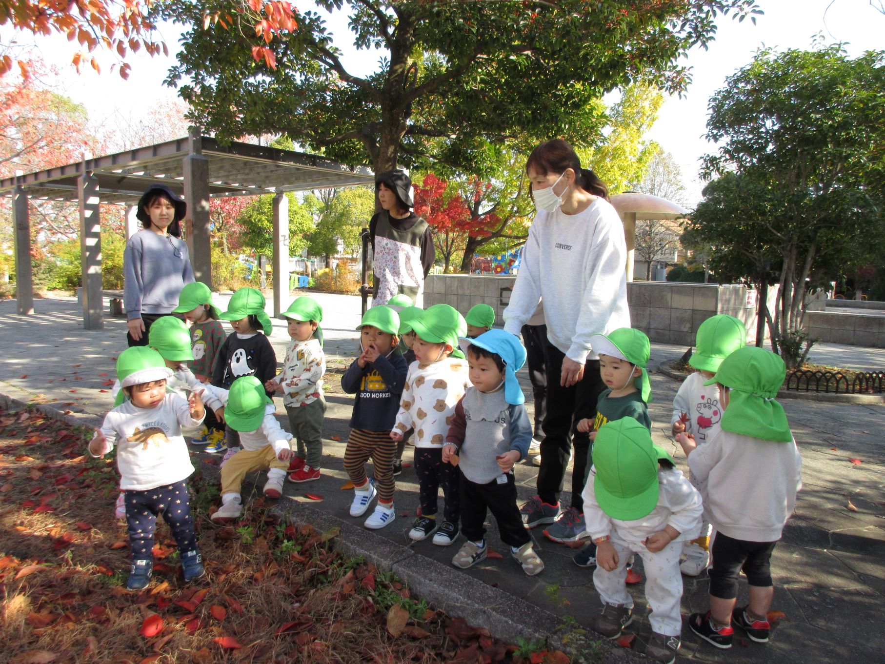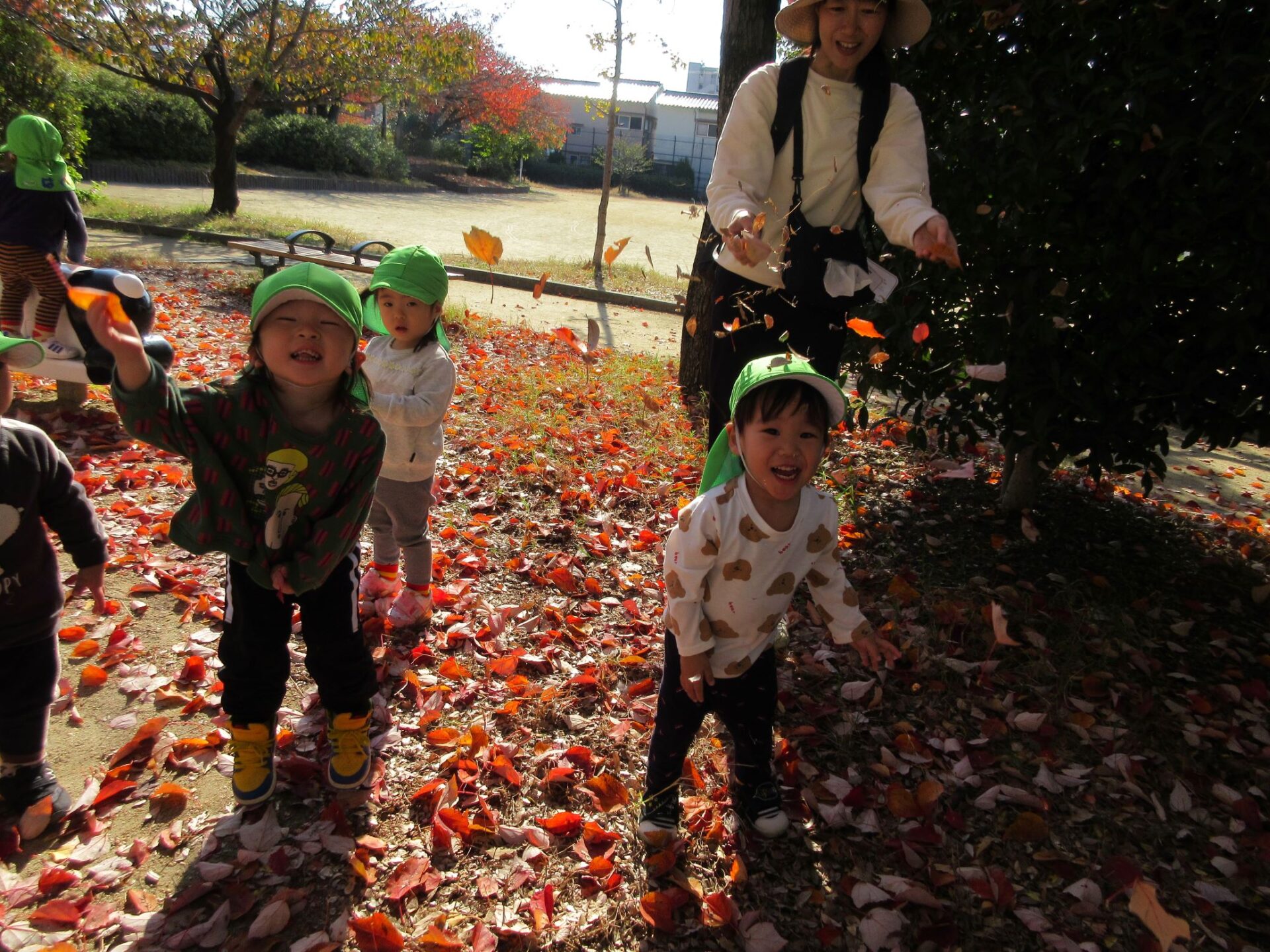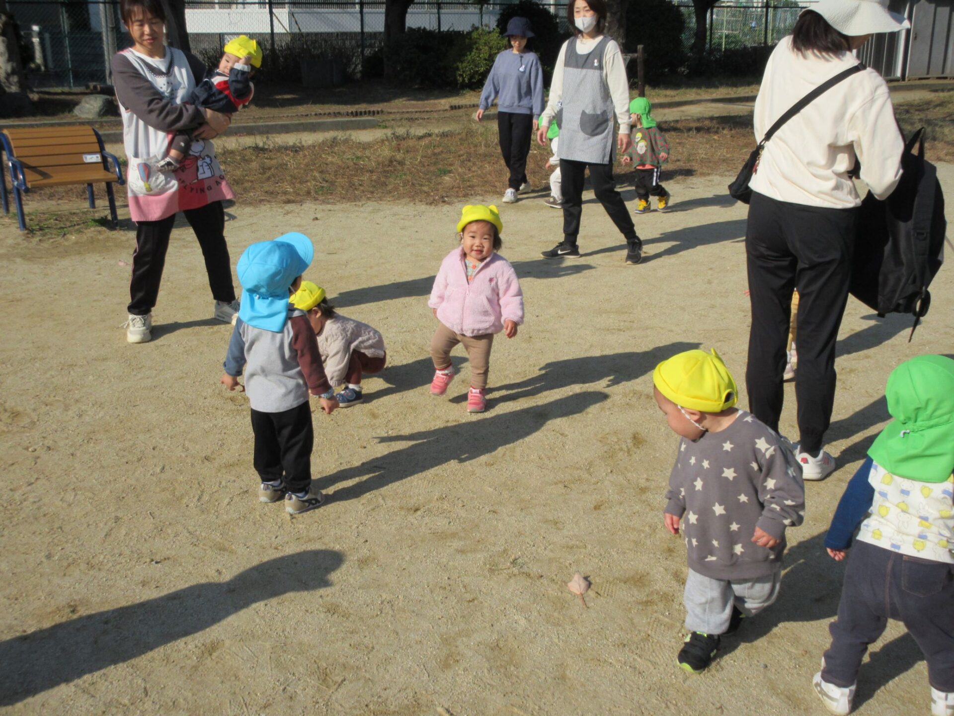 2024.12.09 お知らせ ブログ 美園公園におさんぽ(うみ組・だいち組) 12/3(火)今日はお天気が良かったので、美園公園におさんぽです! 美園公園に到着♪紅葉が綺麗ですね。あれれ?あそこに誰かいますよ。 うみぐみさんが、先に到着していました!一緒にあそぼ~ よーいどん!元気に走りますよ。 木にタッチ! 見つけた紅葉を持ってます。 イスにちょこん♪ 先生も一緒に座って良いですか? 赤い葉っぱがいっぱい! ぱらぱら~きれいだね! お土産に葉っぱを持ってます。 楽しかったですね、また行きましょうね! 一覧へ戻る