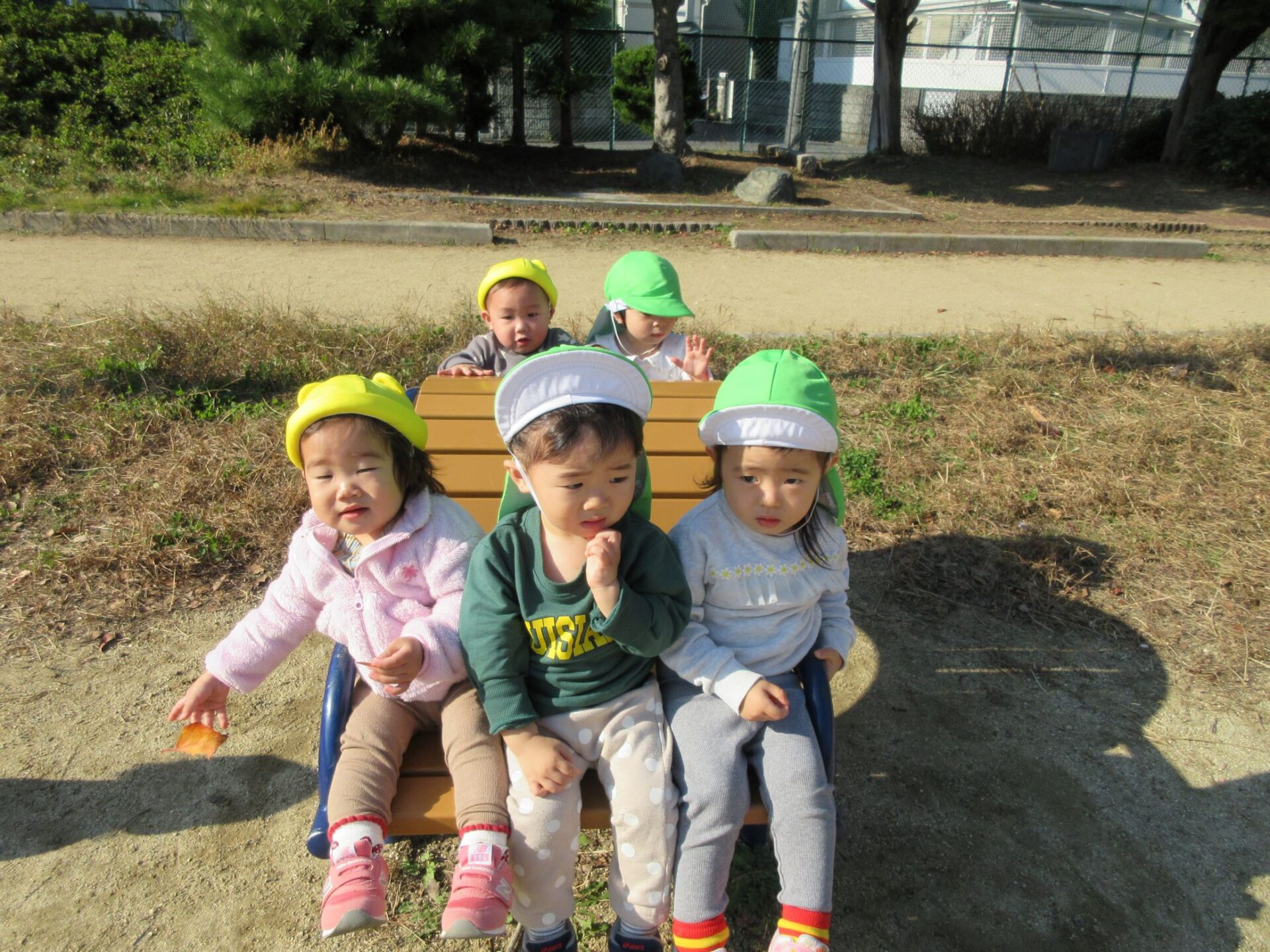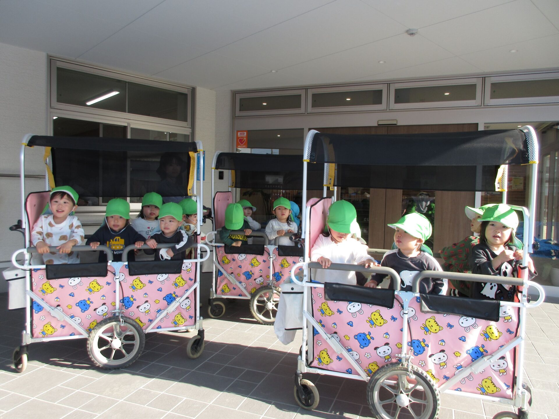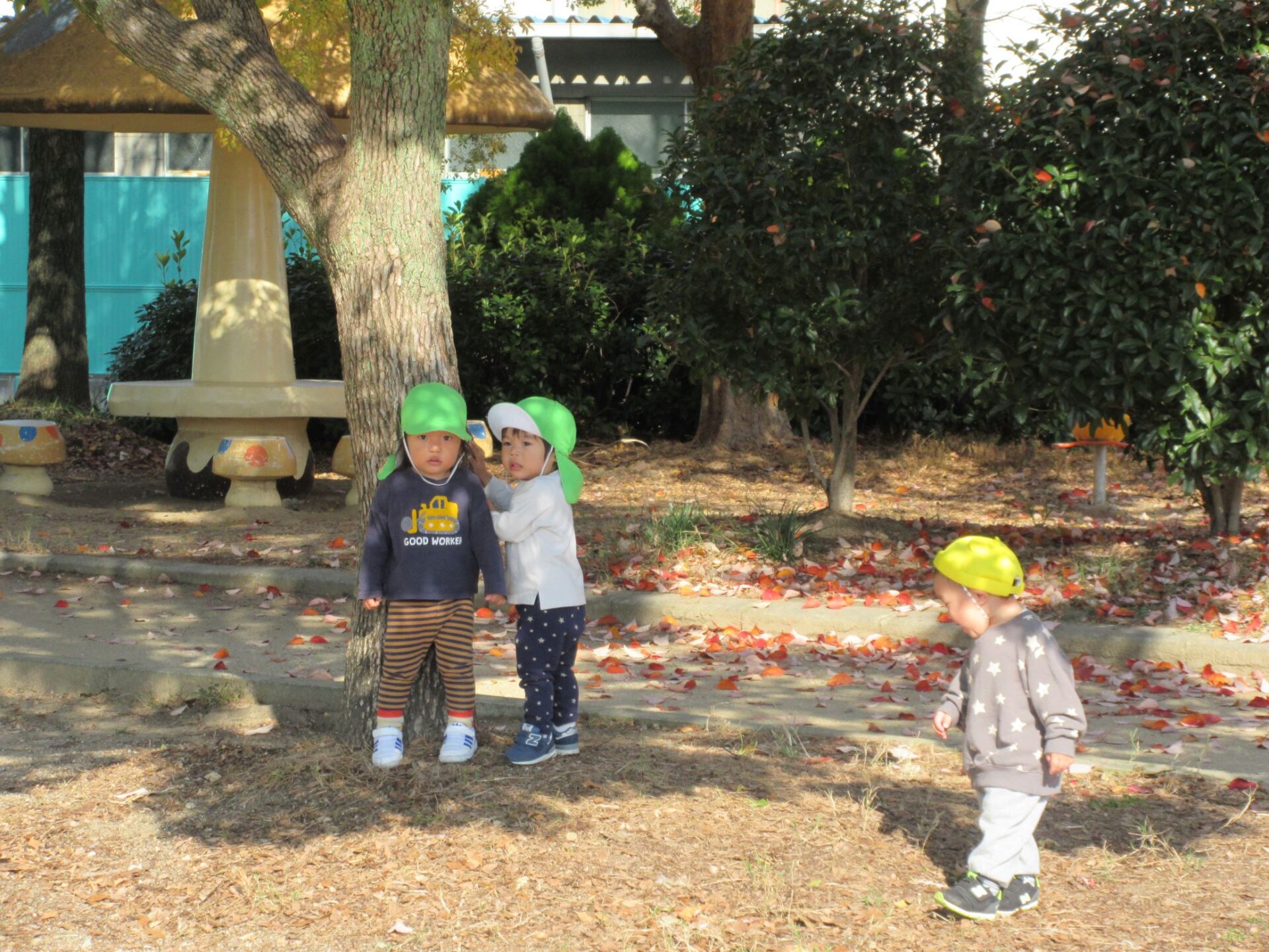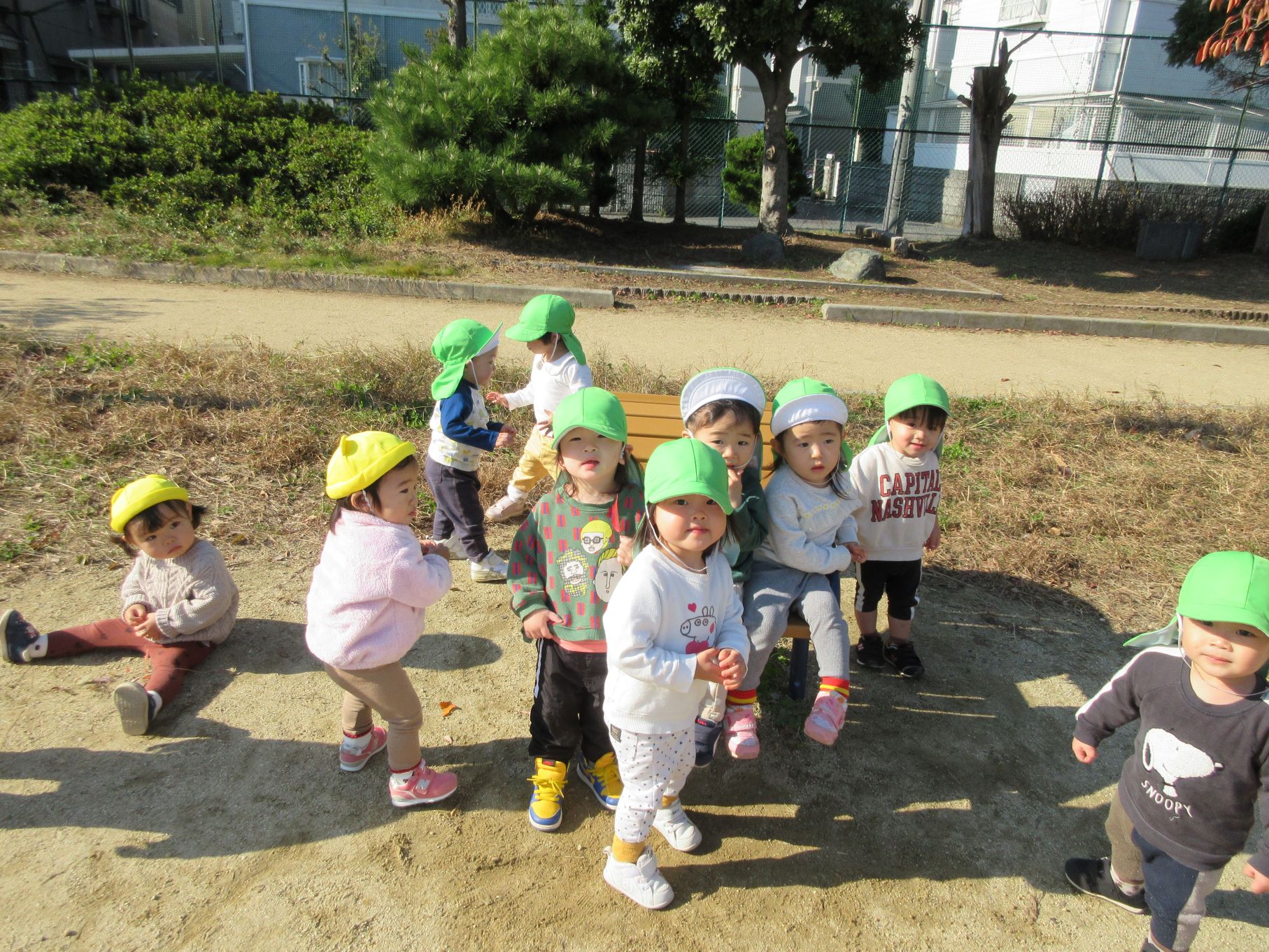 2024.12.09 お知らせ ブログ 美園公園におさんぽ(うみ組・だいち組) 12/3(火)今日はお天気が良かったので、美園公園におさんぽです! 美園公園に到着♪紅葉が綺麗ですね。あれれ?あそこに誰かいますよ。 うみぐみさんが、先に到着していました!一緒にあそぼ~ よーいどん!元気に走りますよ。 木にタッチ! 見つけた紅葉を持ってます。 イスにちょこん♪ 先生も一緒に座って良いですか? 赤い葉っぱがいっぱい! ぱらぱら~きれいだね! お土産に葉っぱを持ってます。 楽しかったですね、また行きましょうね! 一覧へ戻る