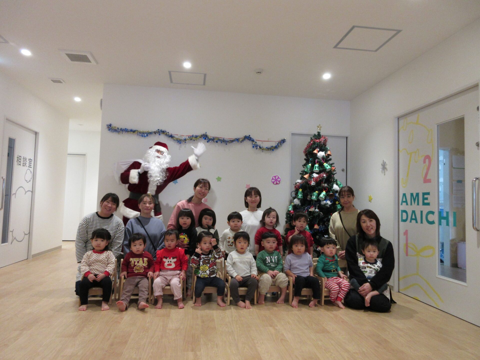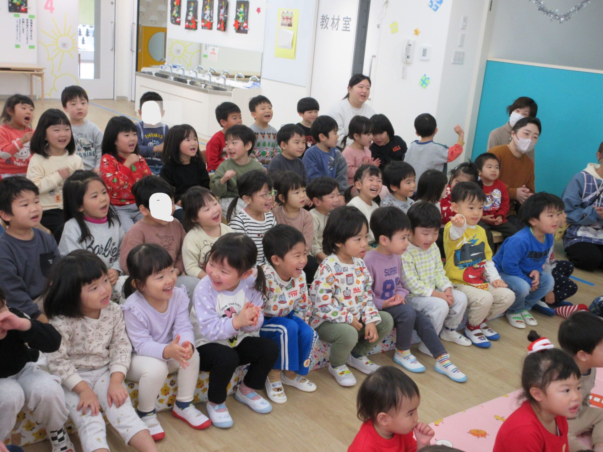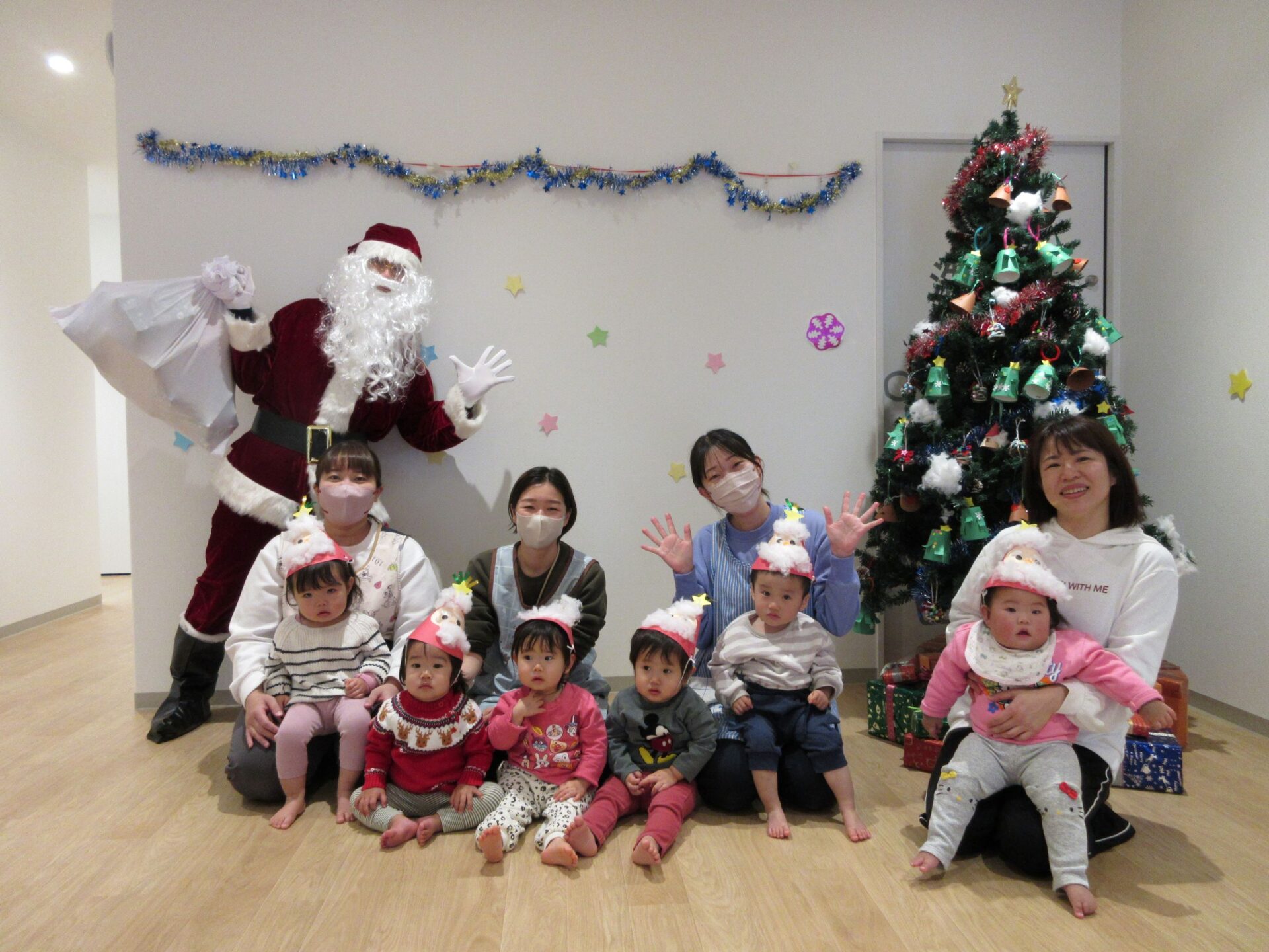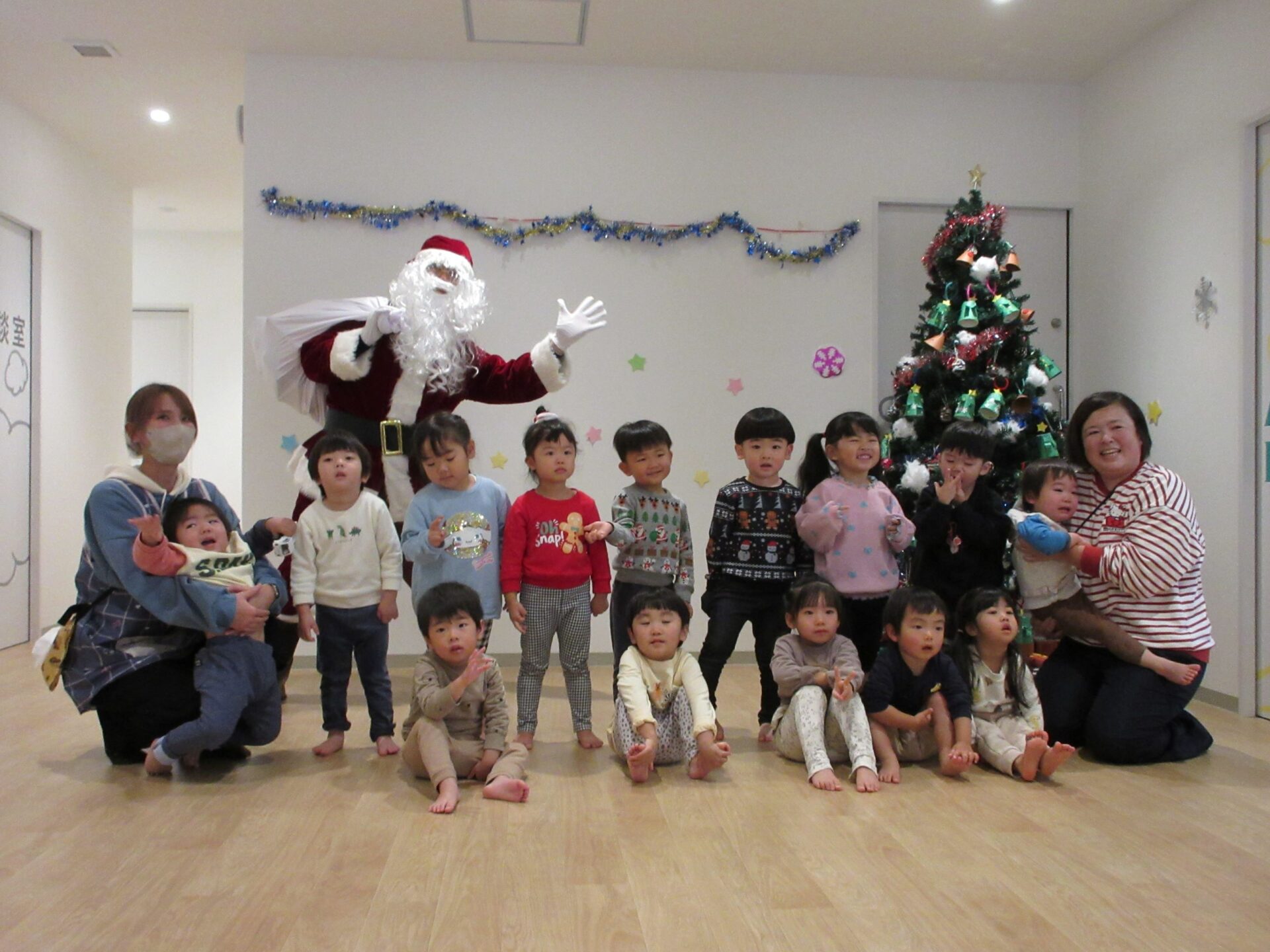 2024.12.25 お知らせ ブログ クリスマス会🎄サンタさんが来たよ! 12月23日、今日はくじらこども園でクリスマス会です♪先生たちが「ウサギ野原のクリスマス」のペープサートをしてくれましたよ。 「楽しいね~」みんな真剣に見ています。 じゃじゃーん!!サンタクロースさんの登場です!!びっくりしているお友だちもいましたが、みんなにこにこで迎えていましたよ。 この笑顔!嬉しそう! クリスマスツリーと一緒に記念撮影♪うみぐみさんです。 だいち組です。あれ?いつの間にかサンタさんがいましたよ! あめ組さんです。みんなサンタさんに気づいたかな? にじ組さん、みんなにこり。 そら組さんはもうプレゼントを受け取っていますね!何が入っているのかな? だいち組さんのみんなも、プレゼント♪ 何かな?何かな?ワクワク うみ組さんのみんなも目を輝かせて見ていますね!メリークリスマス!みんなのお家にもサンタさん来てくれるかな? 一覧へ戻る